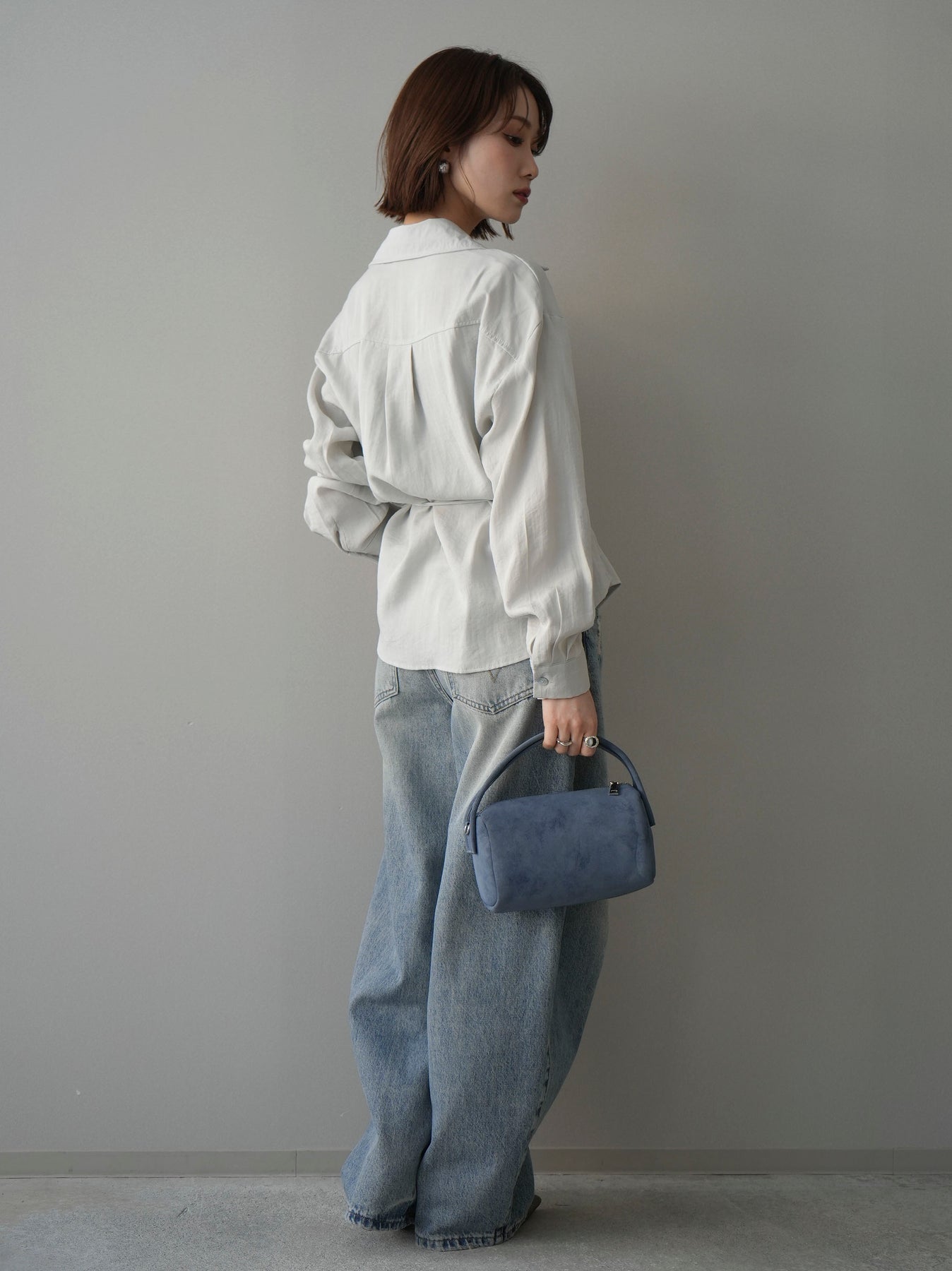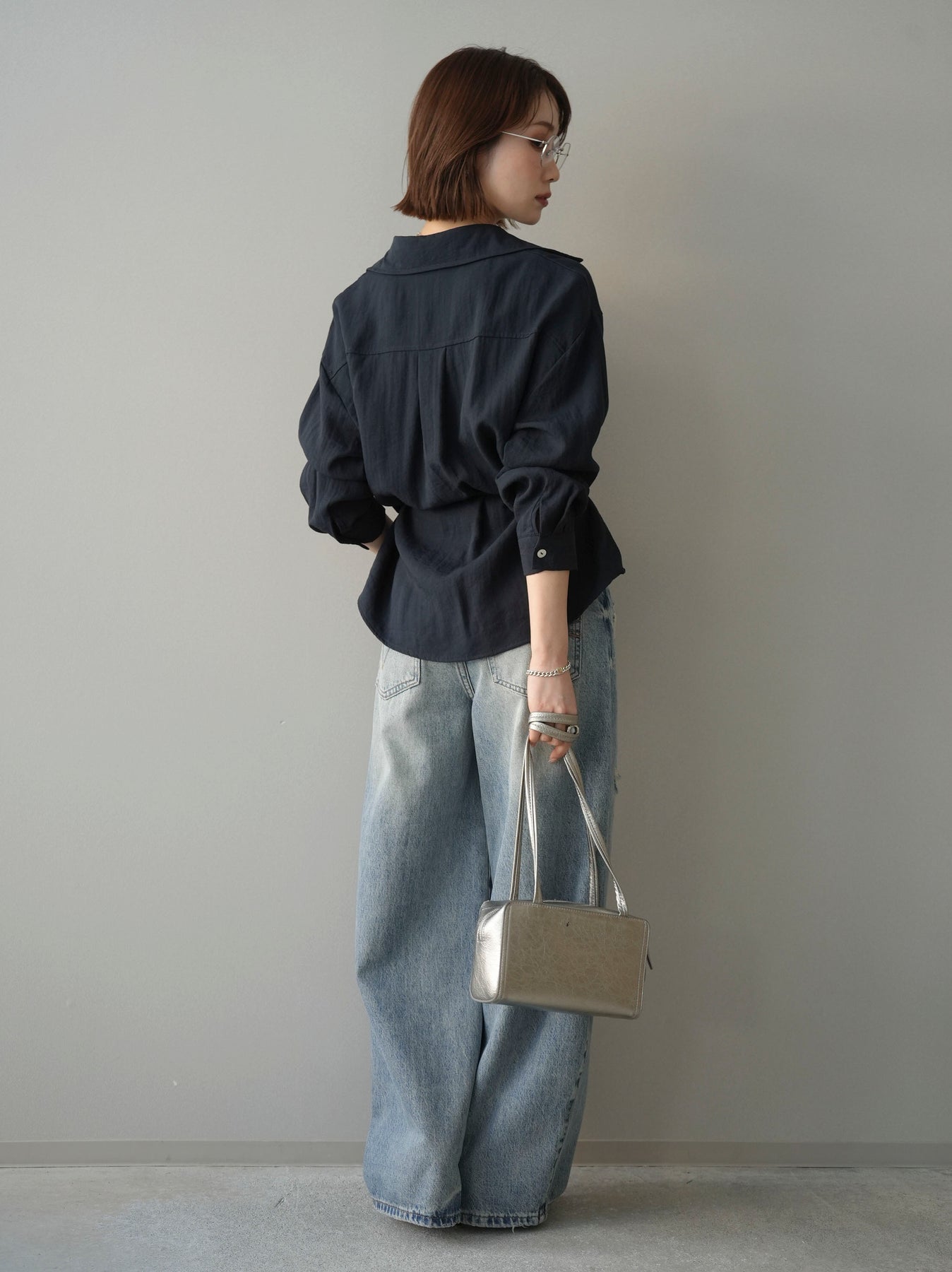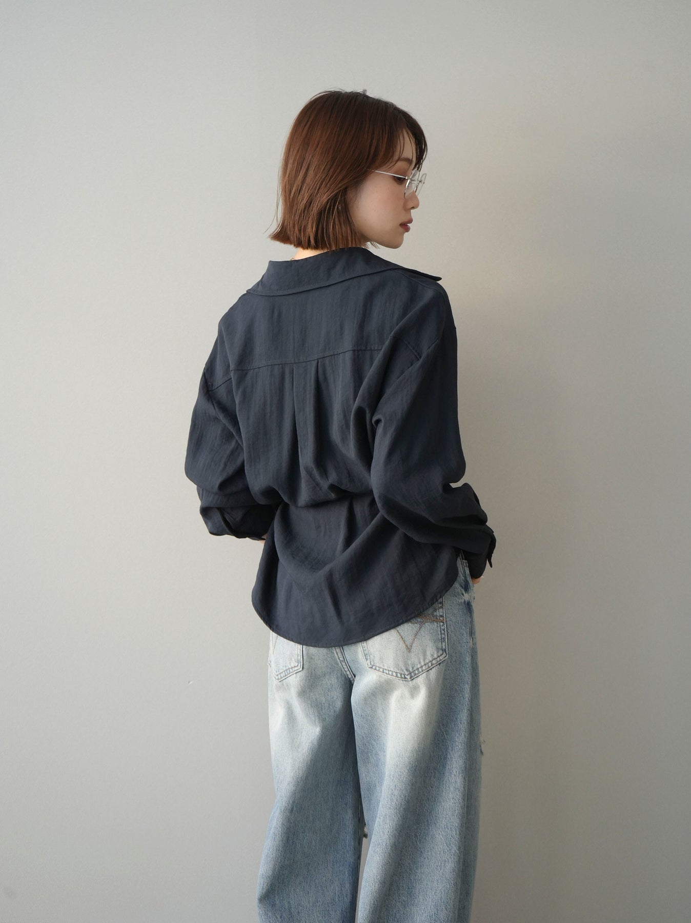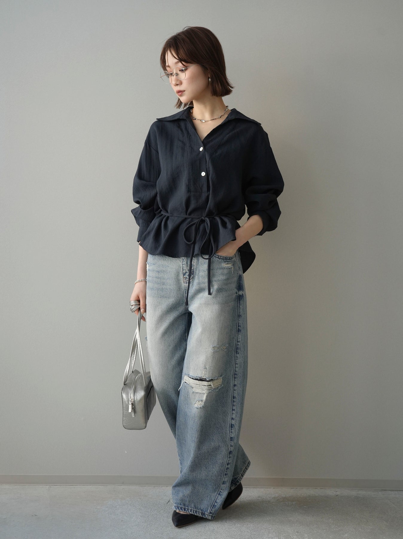 抜け感のあるスキッパーデザインが顔まわりをすっきりと見せてくれるシャツ。程よく落ち感のある素材で、さらりと軽やかな着心地に仕上げました。ウエストリボンでシルエットのアレンジができ、前を開けて羽織としても活躍。きれいめからカジュアルまで幅広いスタイリングに馴染む、着回し力の高い一枚です。 ※ボトムス、キャミソール(インナー)以外の商品は一律でインナーは付属していません