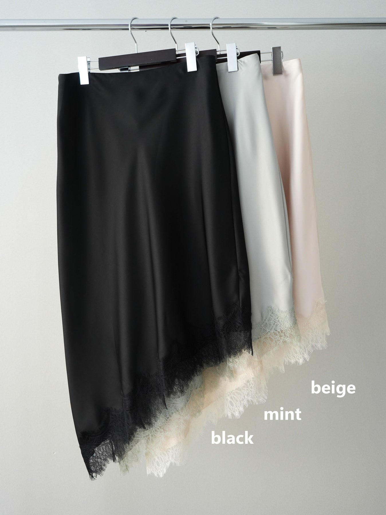 [予約]サテンライクアシメレーススカート + [予約]サテンライクアシメレーススカート