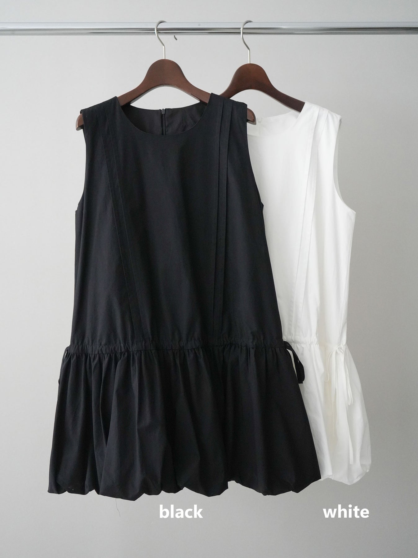 裾にボリュームを持たせたバルーンシルエットが目を惹くノースリーブミニワンピース。すとんと落ちるIラインに切り替えデザインを施し、甘さの中にモードな印象をプラスしました。サイドのリボンディテールがさりげないアクセントになり、シルエットの調整も楽しめる一枚。インナー次第でロングシーズン着回せる、主役級のミニワンピースです。