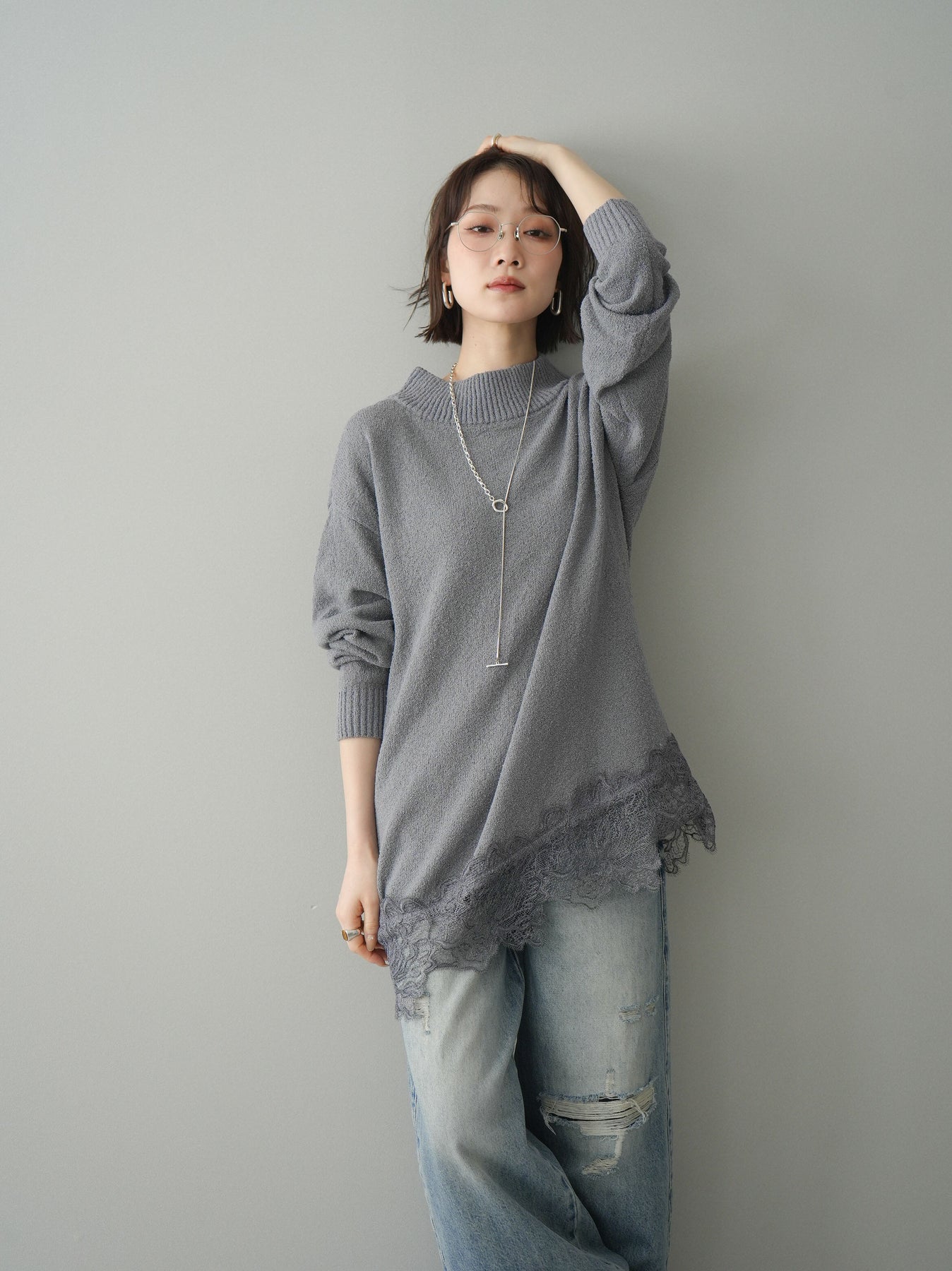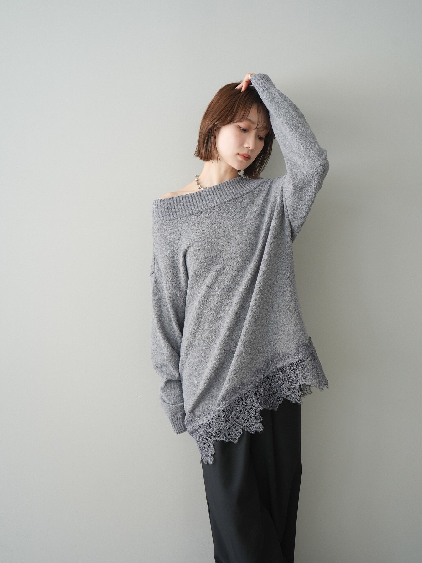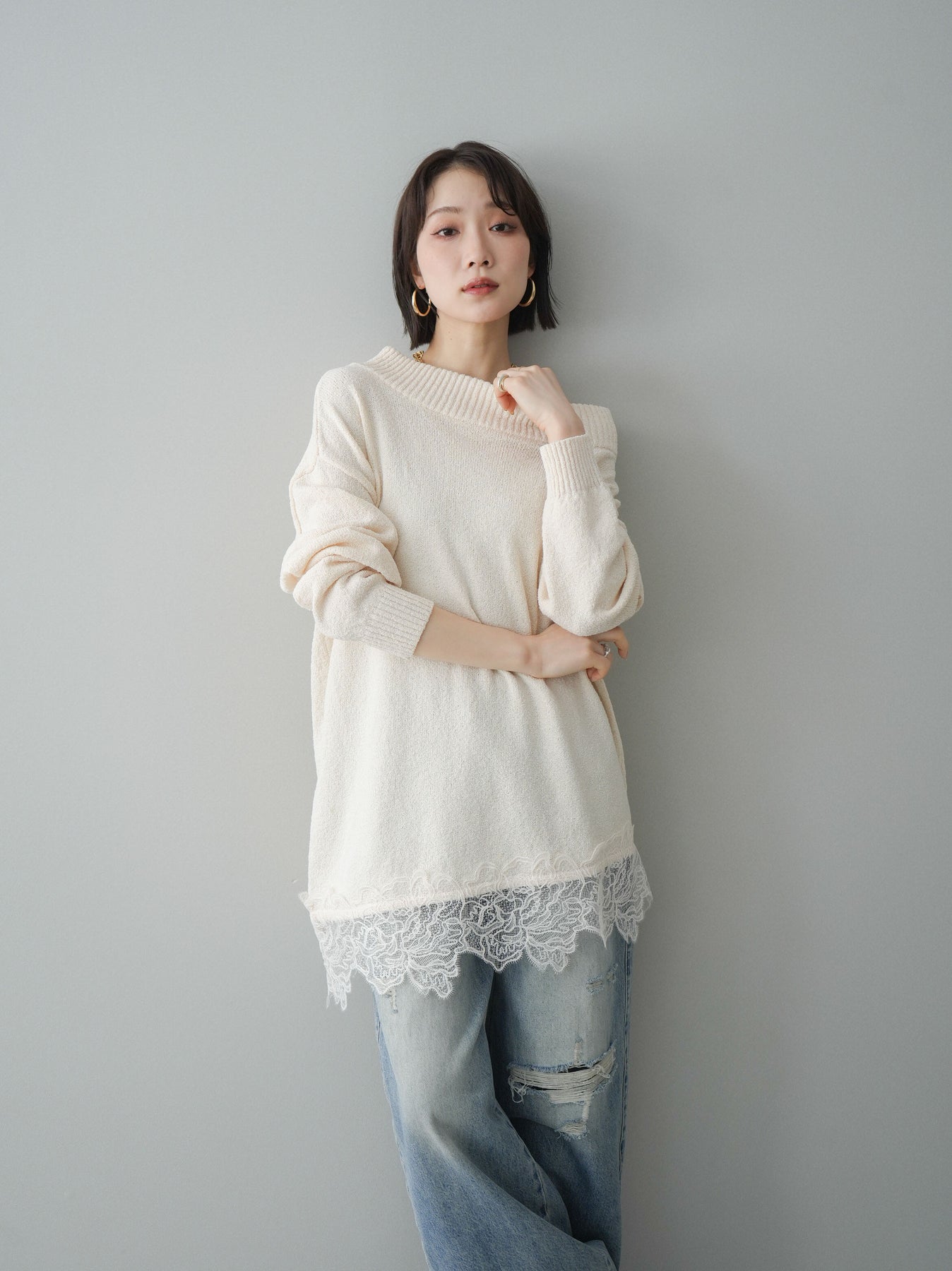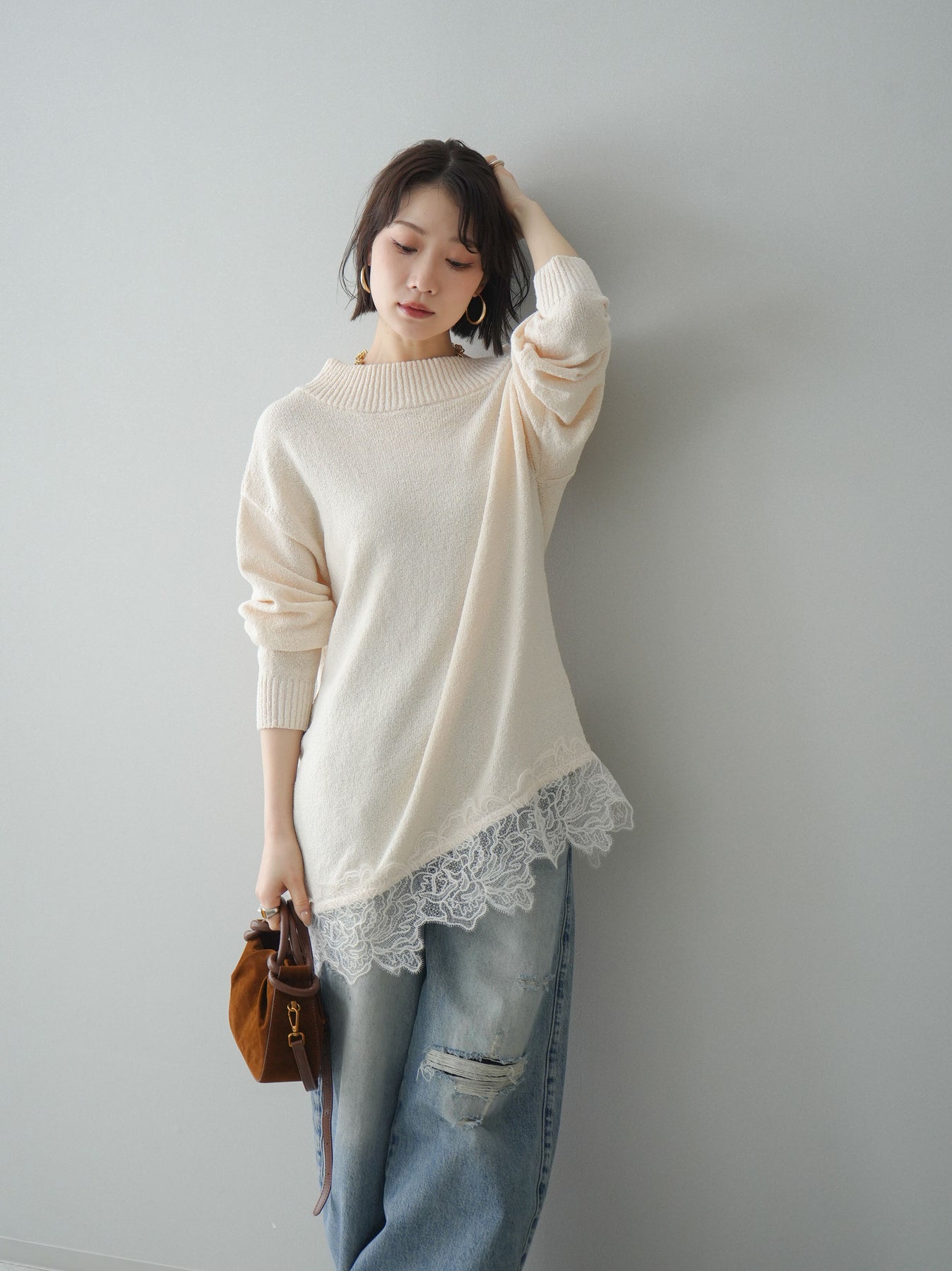 ◆ [予約]アシンメトリーレースヘムニットプルオーバー