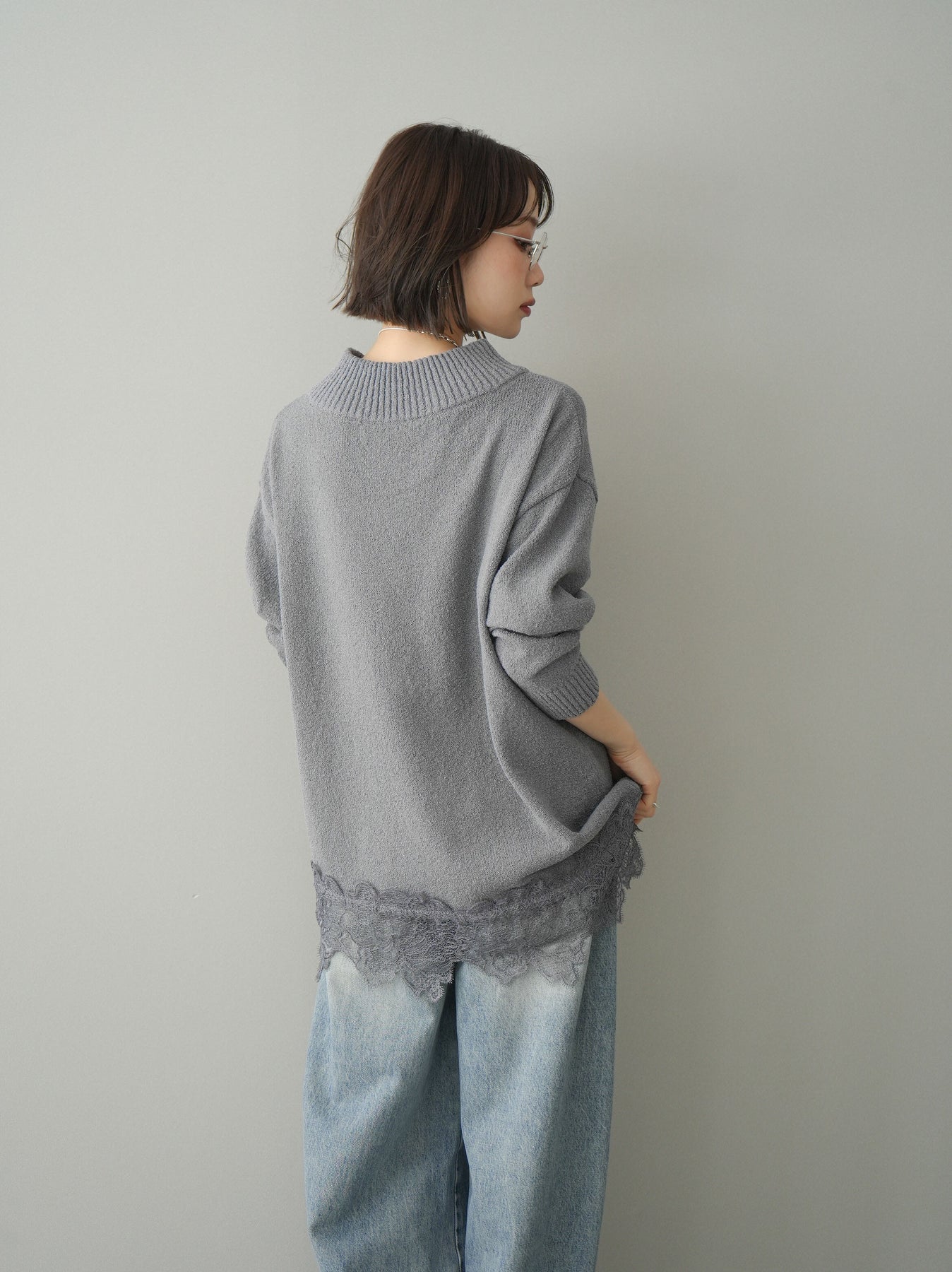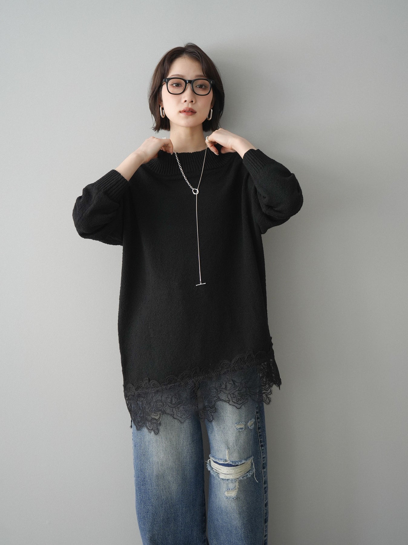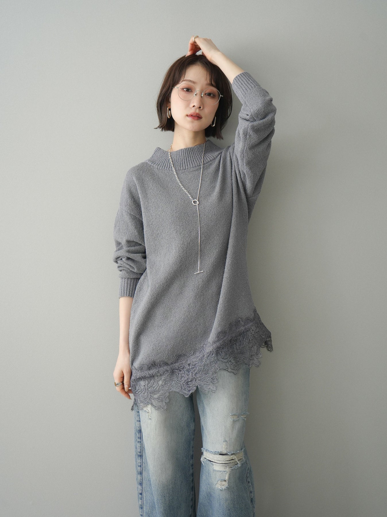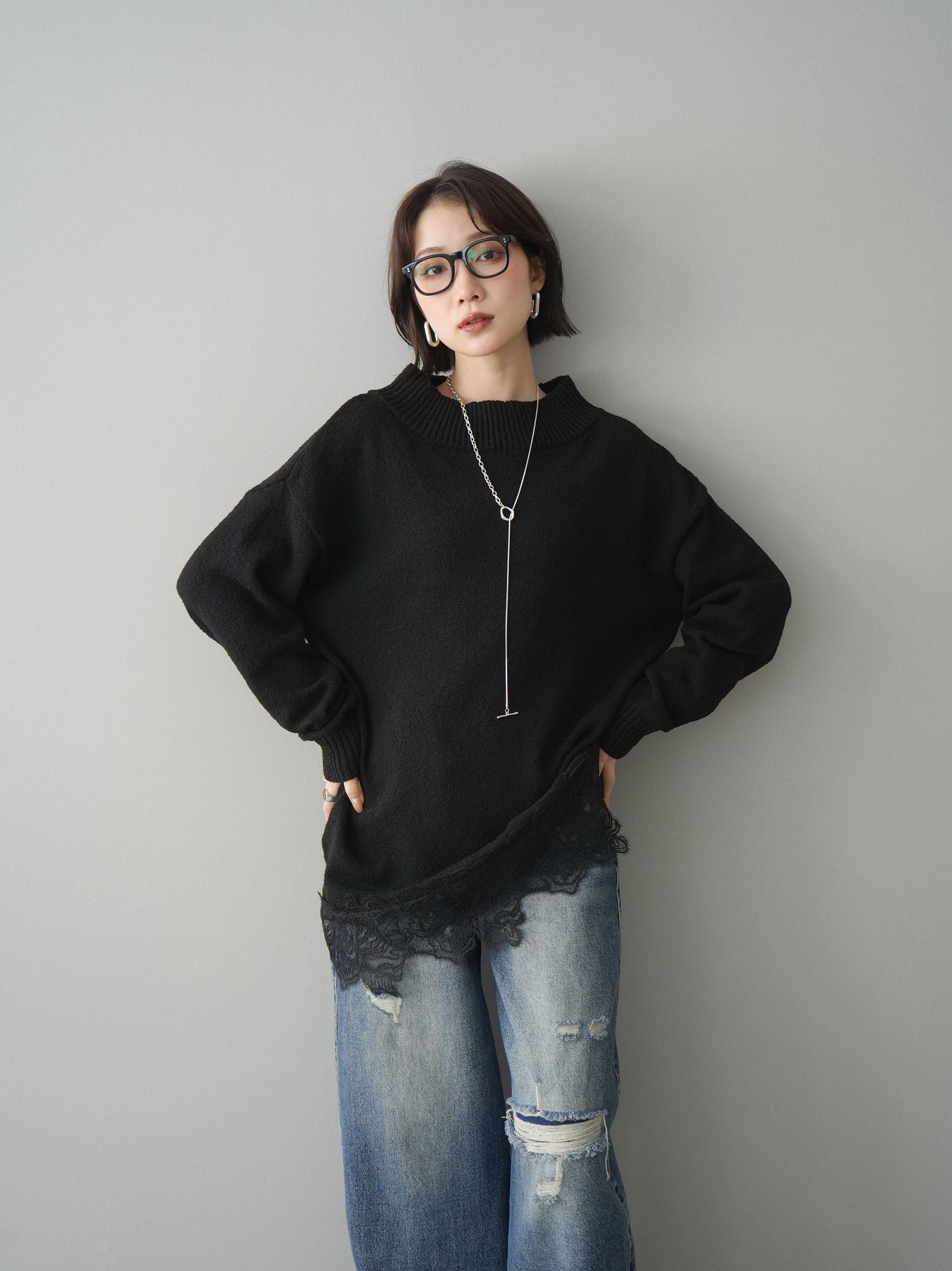◆ [予約]アシンメトリーレースヘムニットプルオーバー
