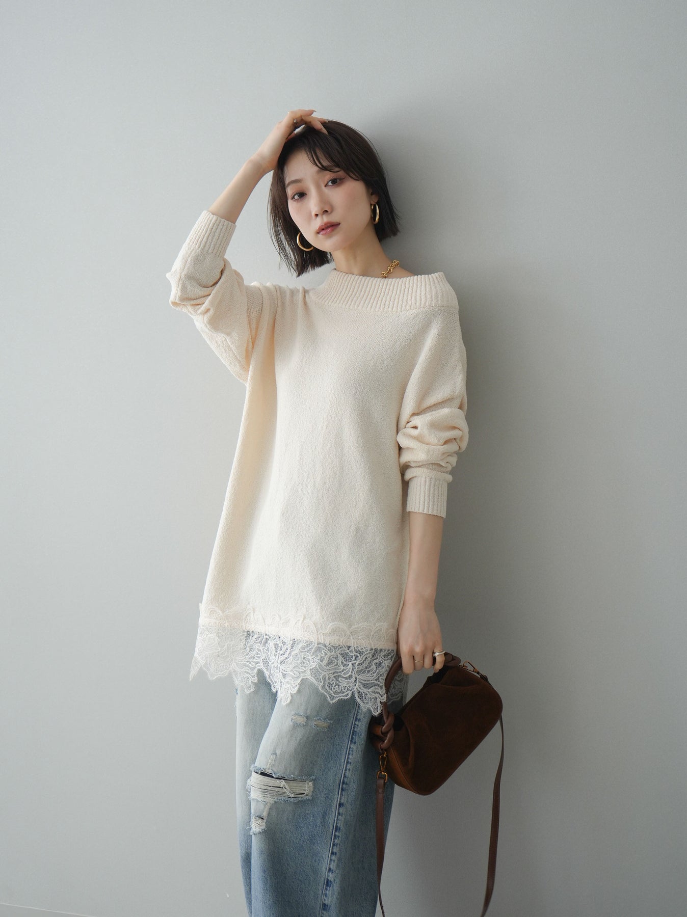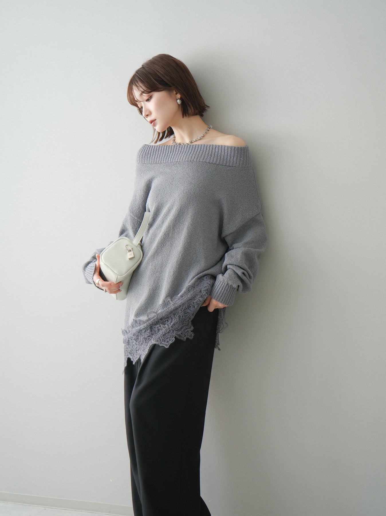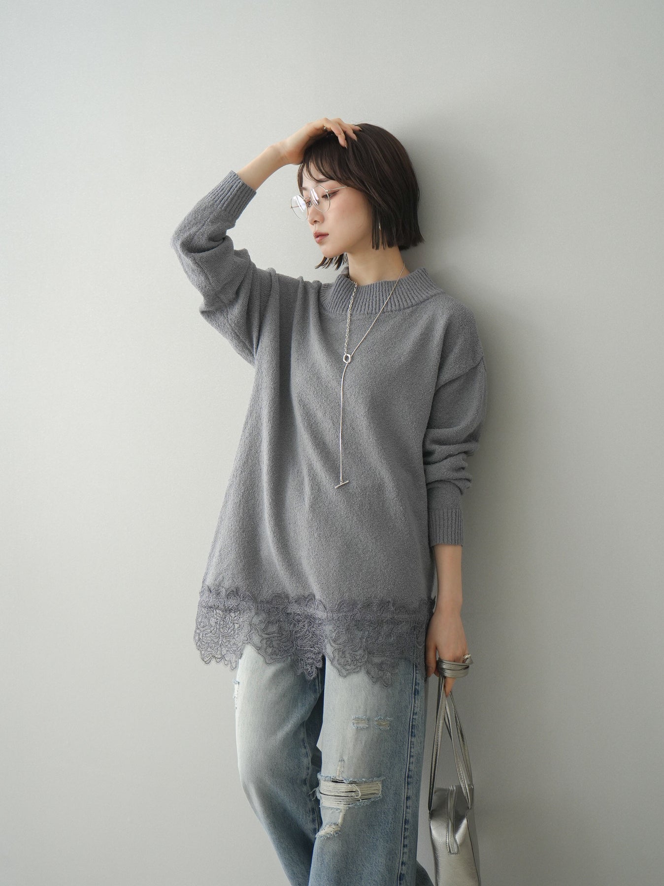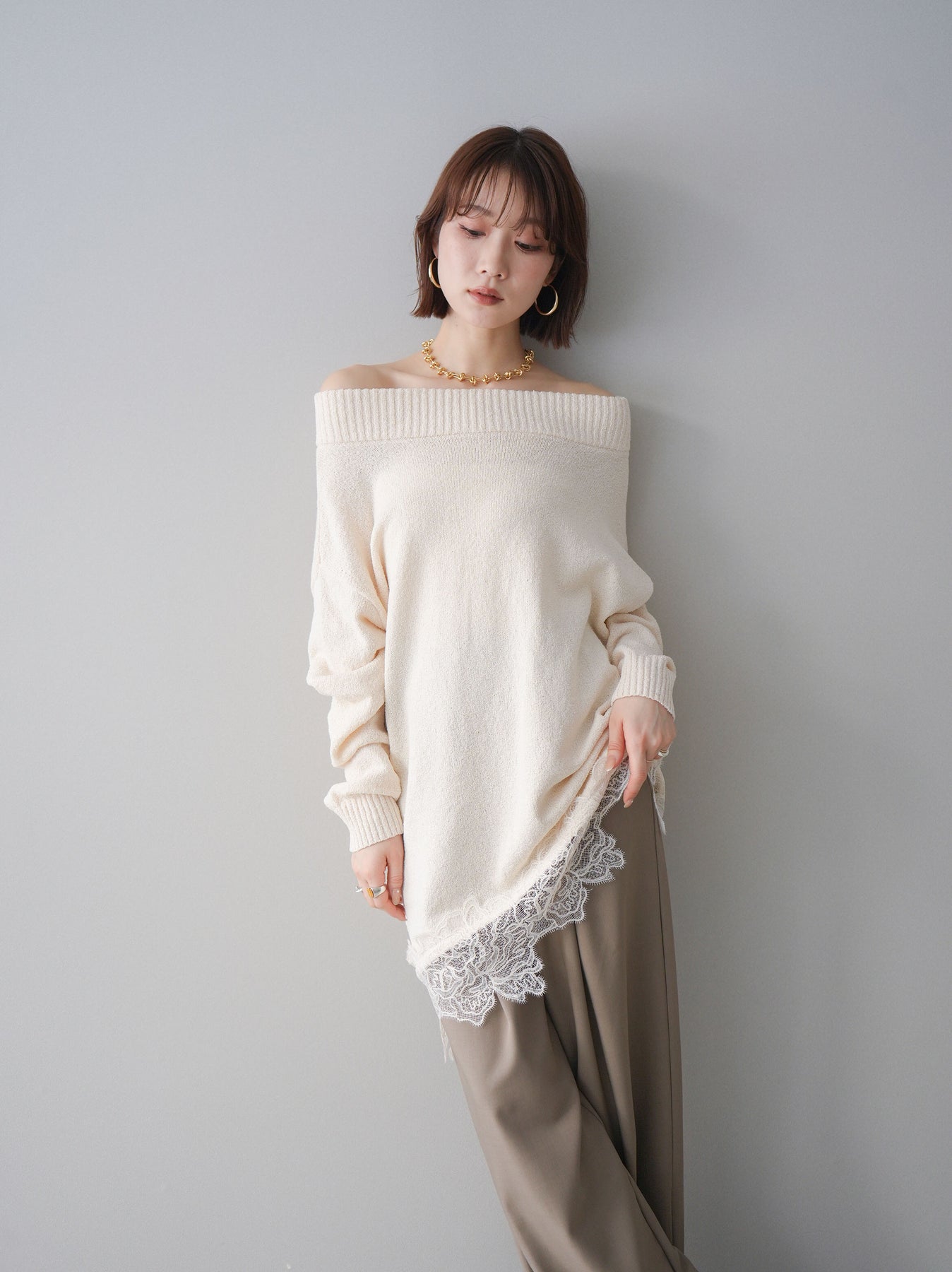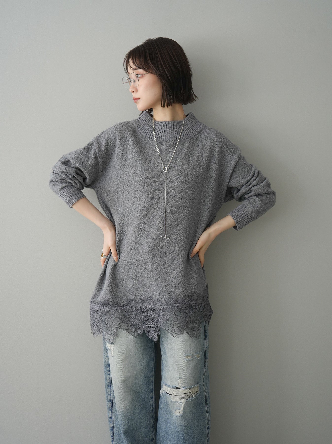 ◆ [予約]アシンメトリーレースヘムニットプルオーバー