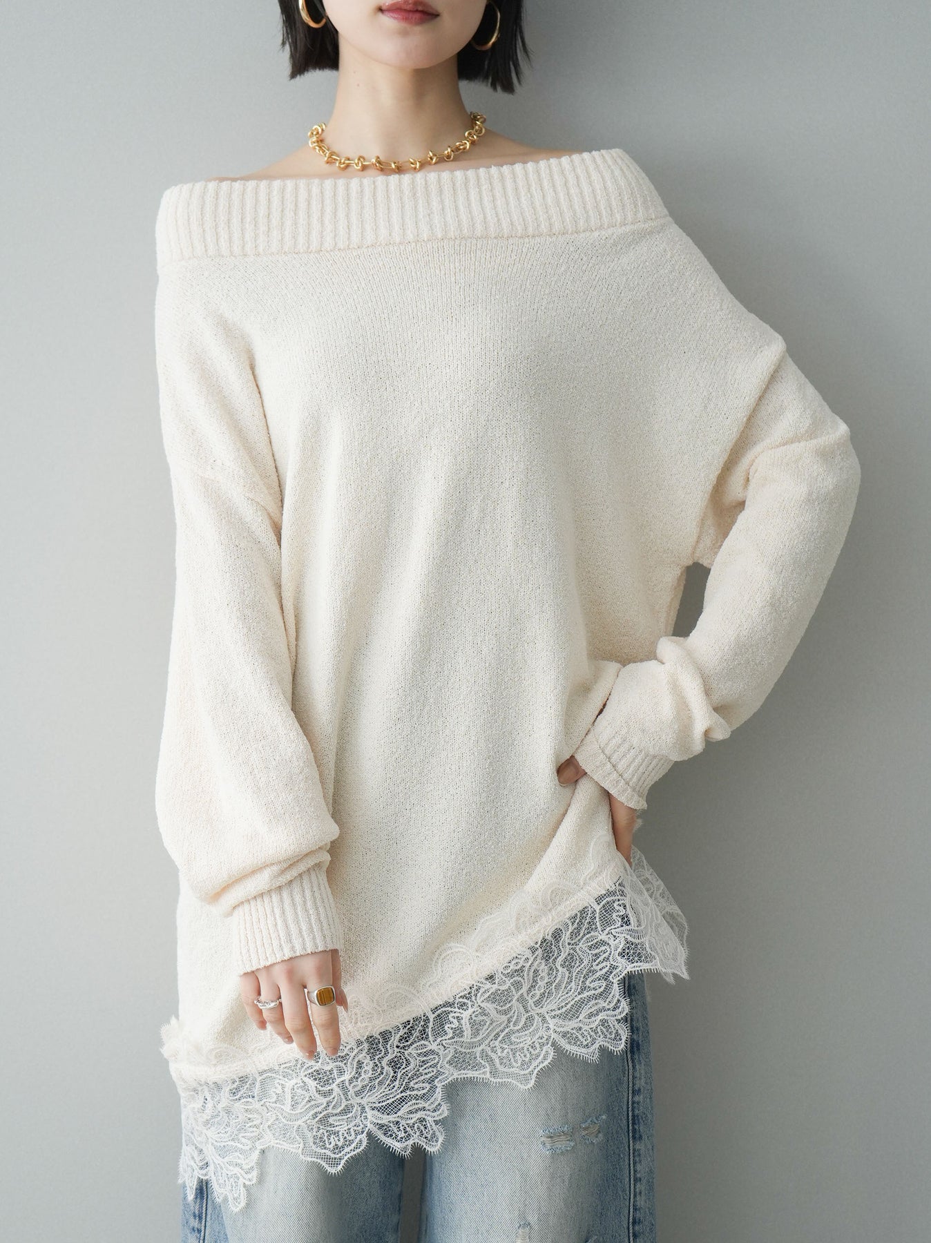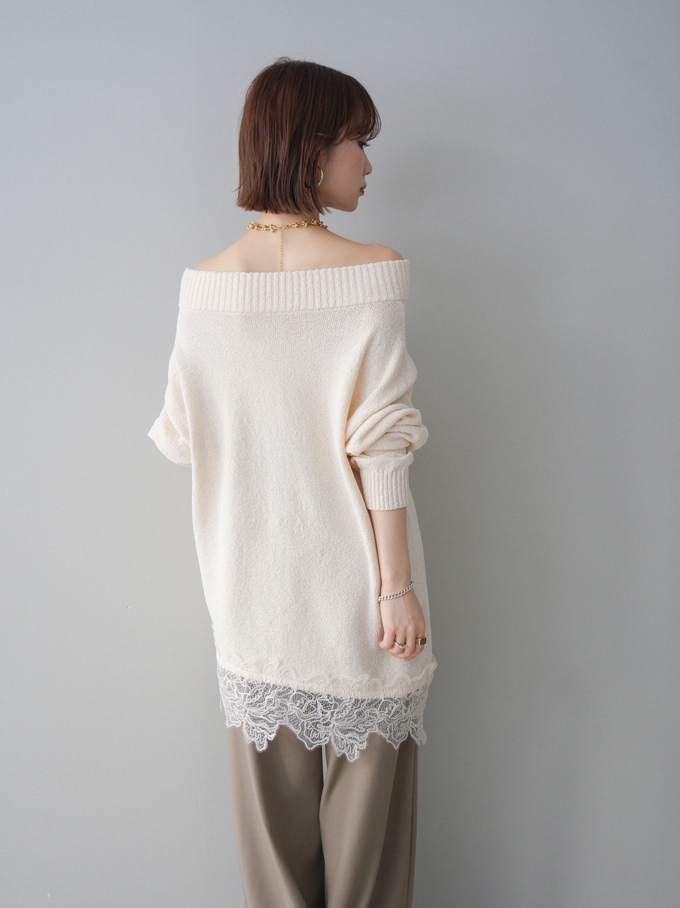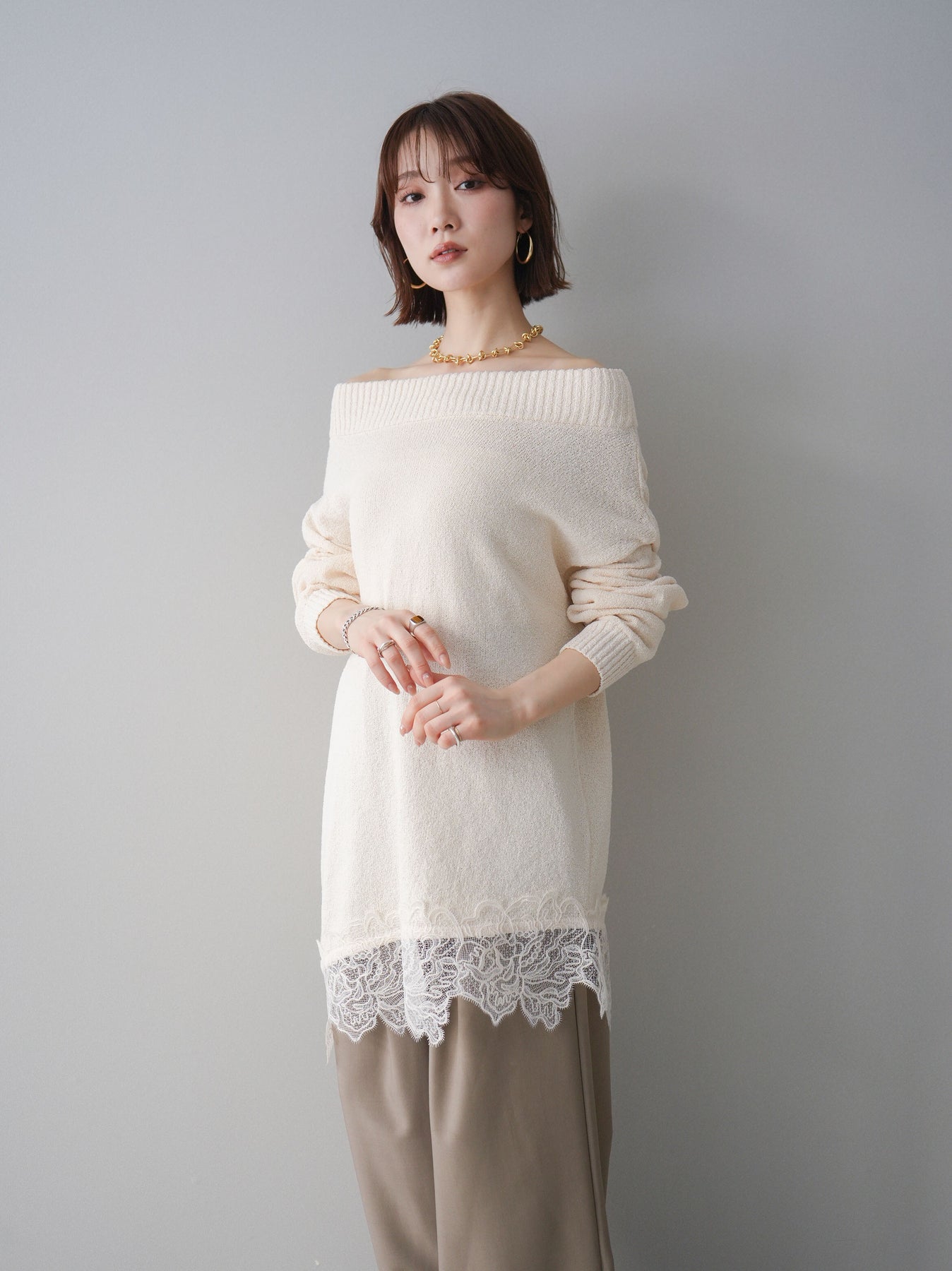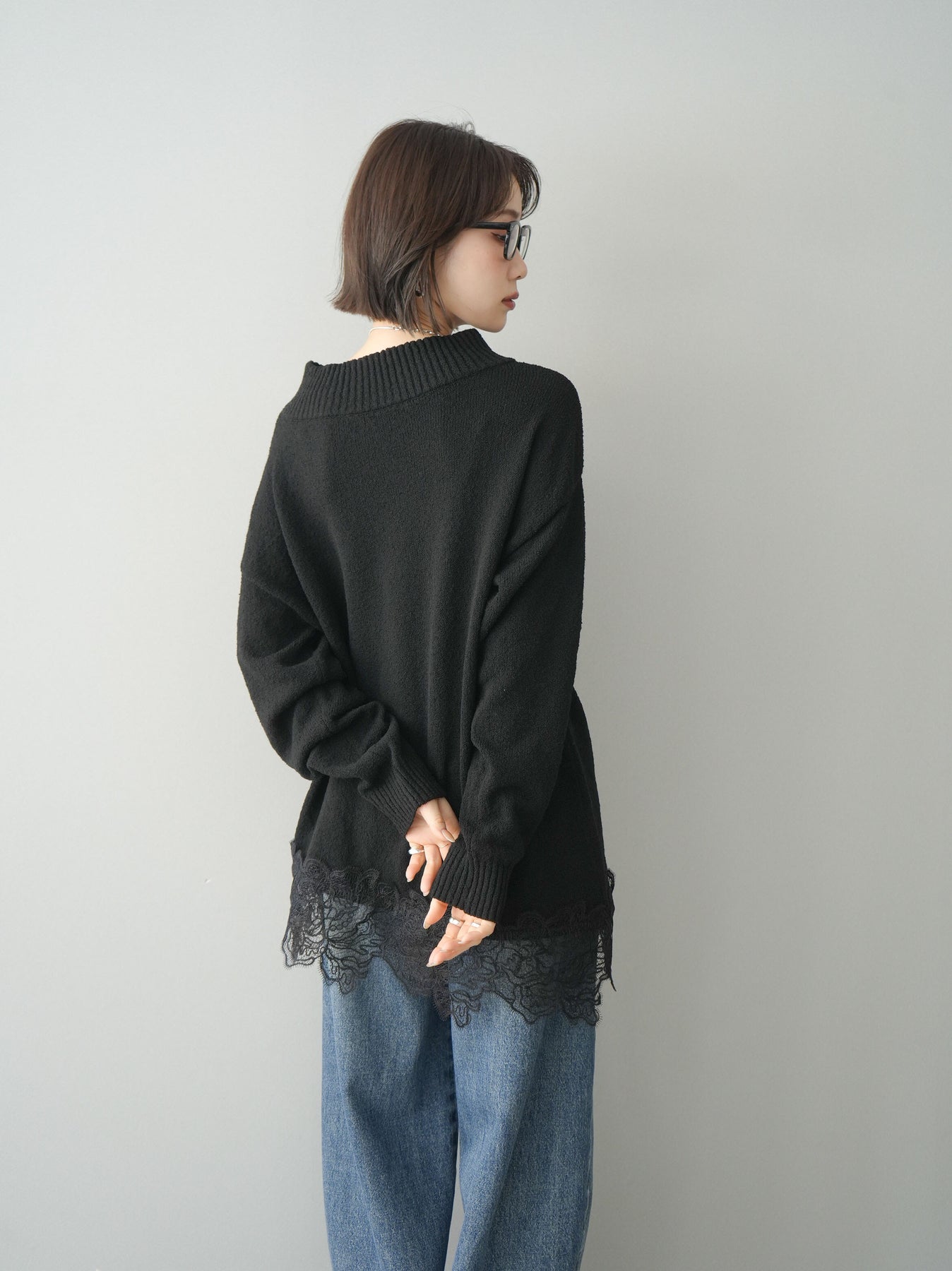 ◆ [予約]アシンメトリーレースヘムニットプルオーバー