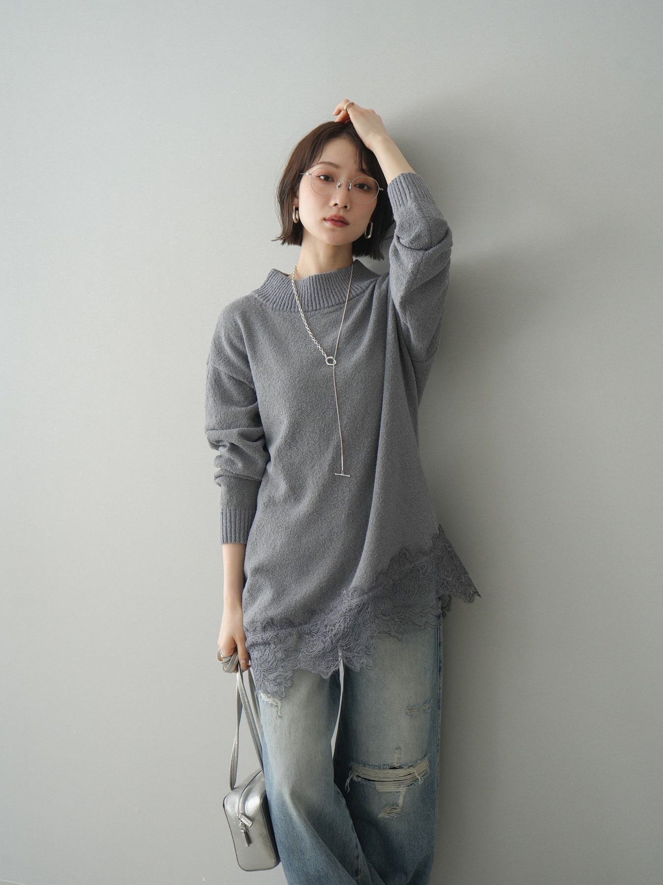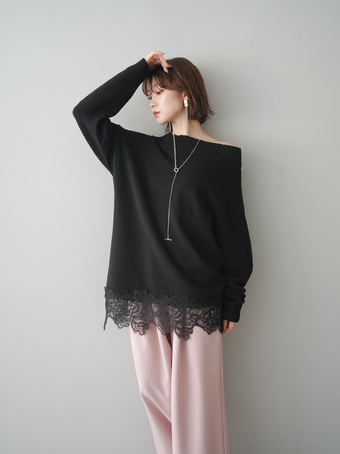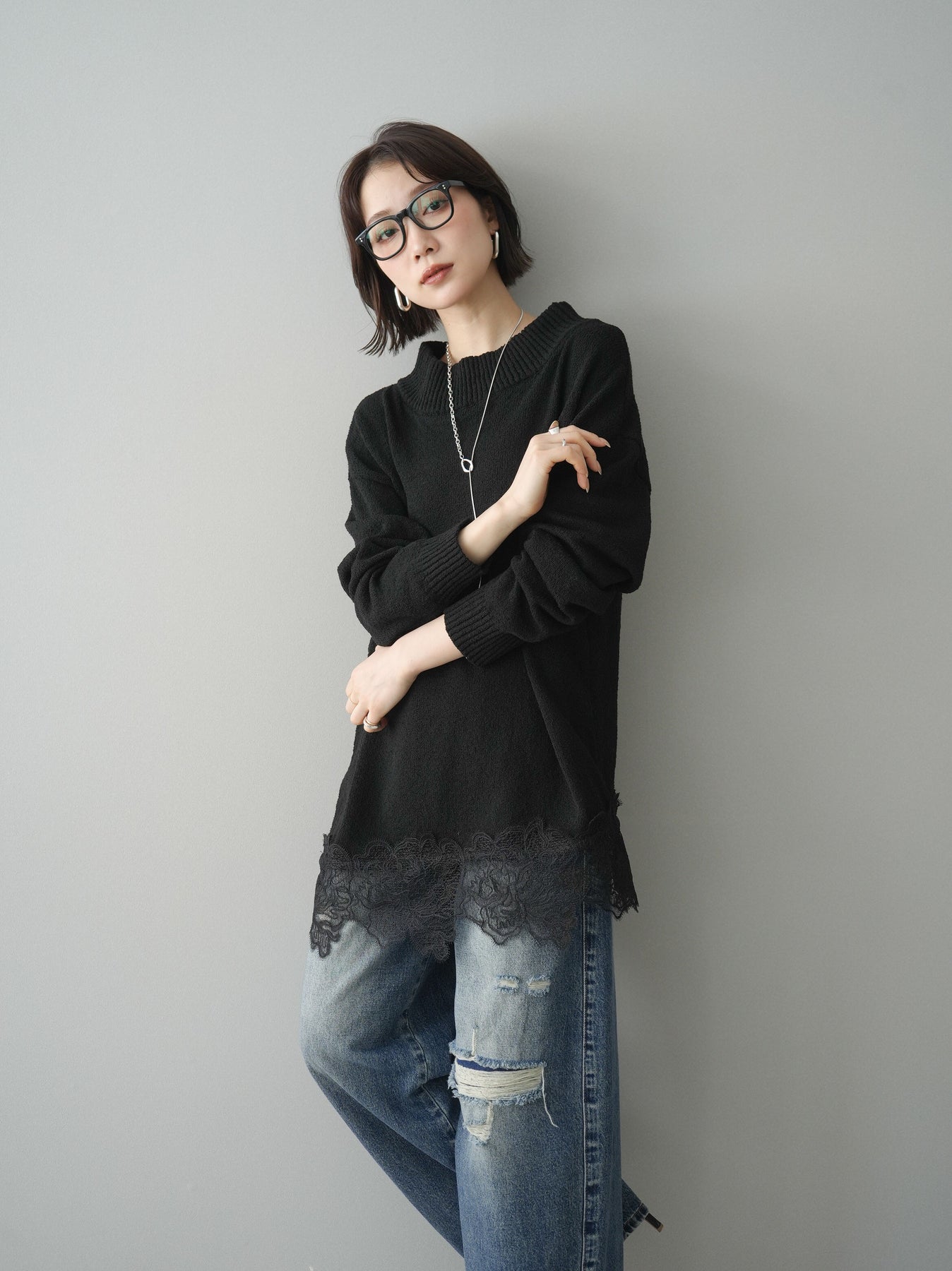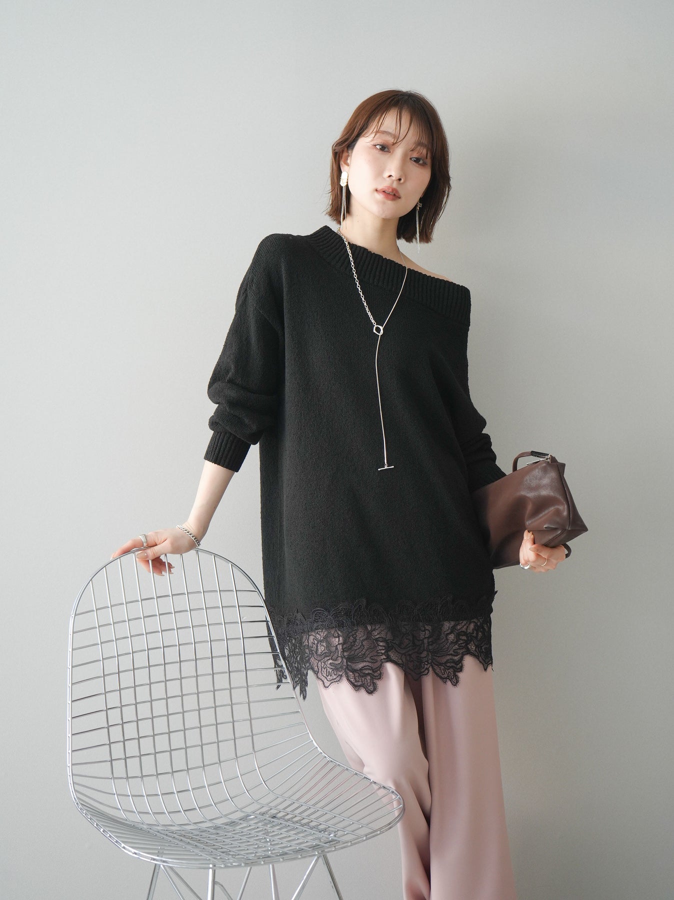[予約]アシンメトリーレースヘムニットプルオーバー + [予約]アシンメトリーレースヘムニットプルオーバー
