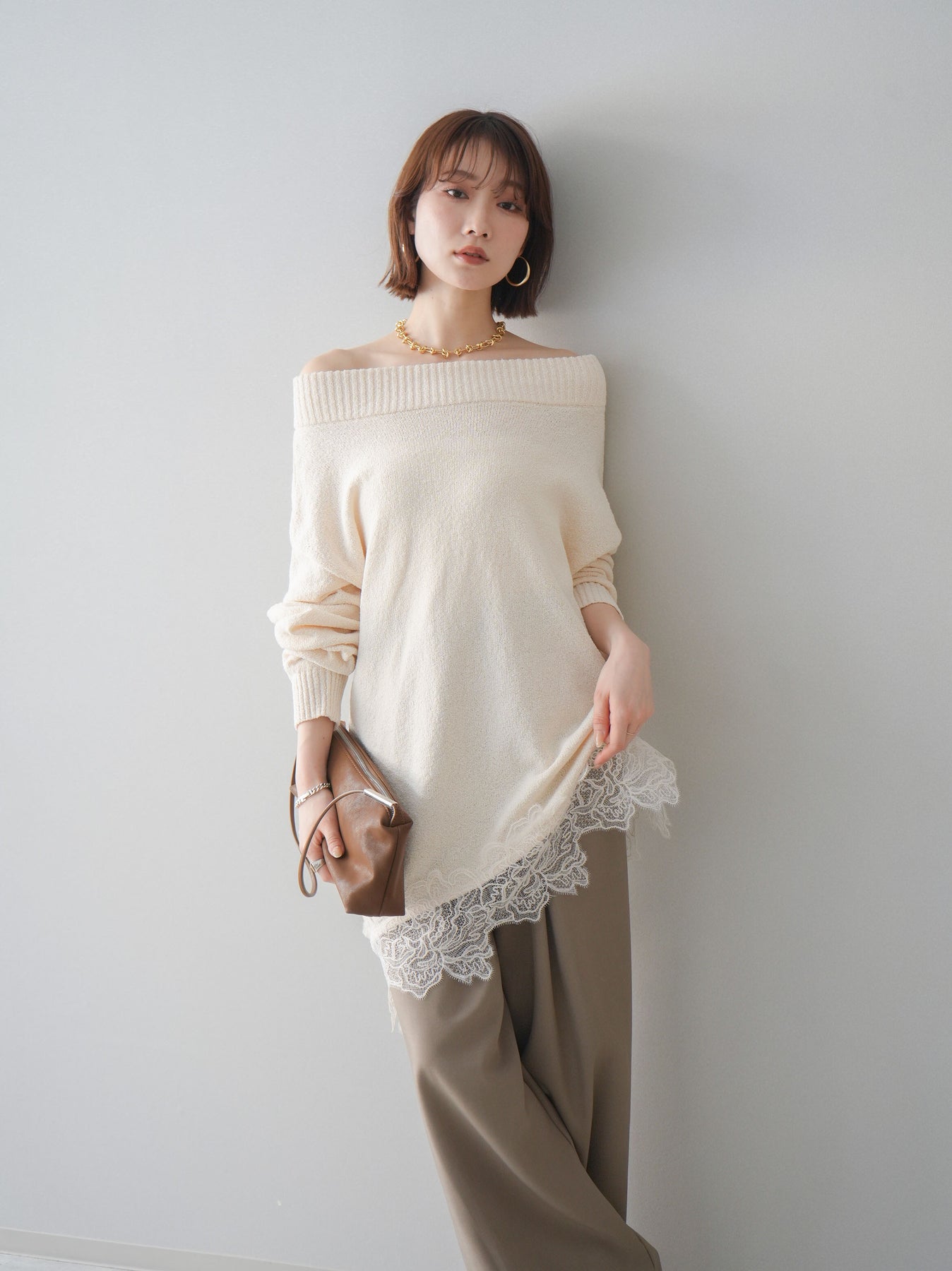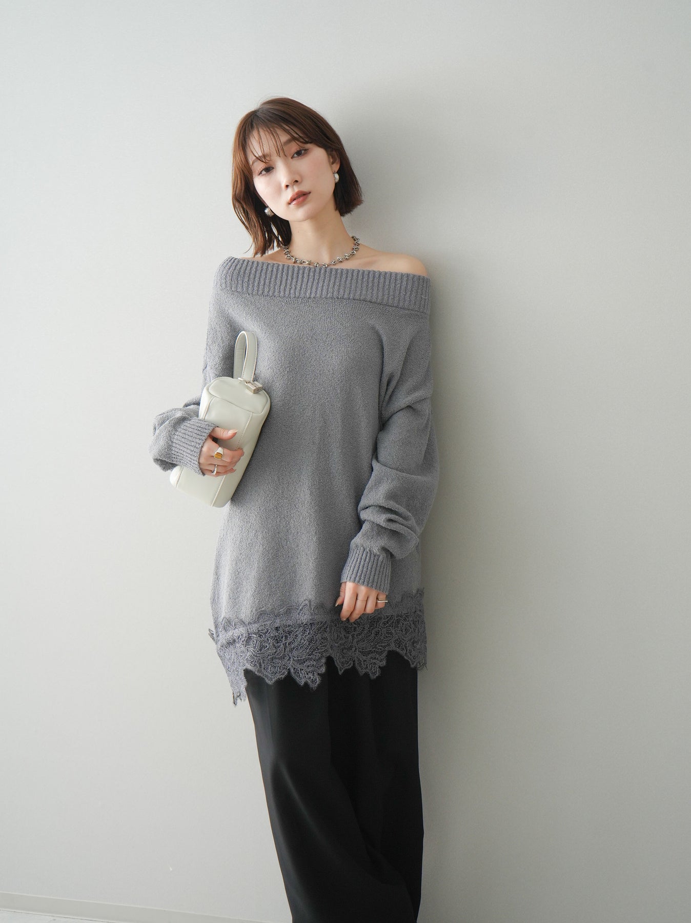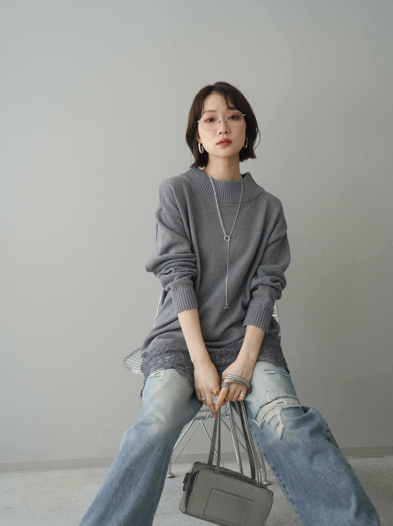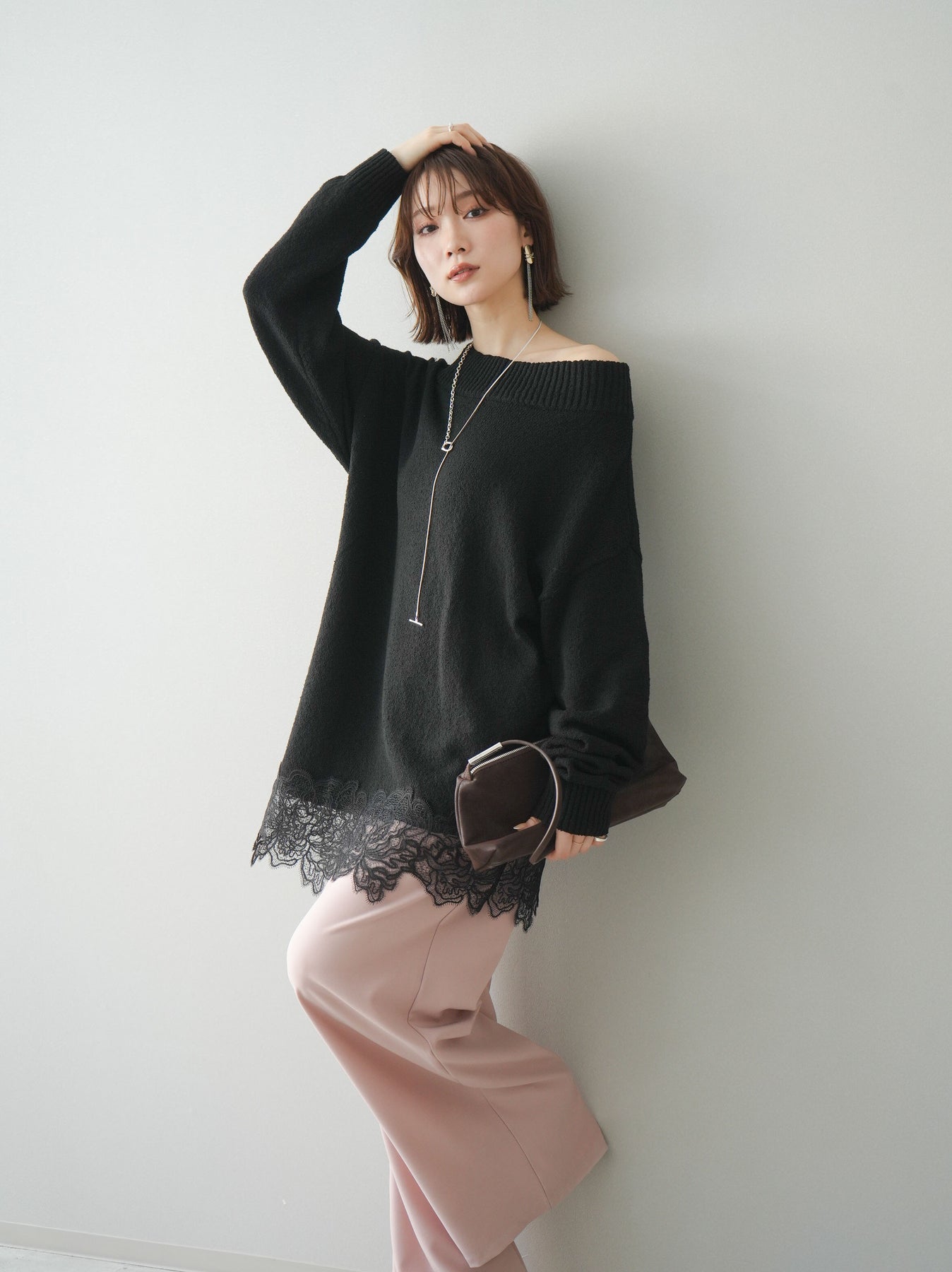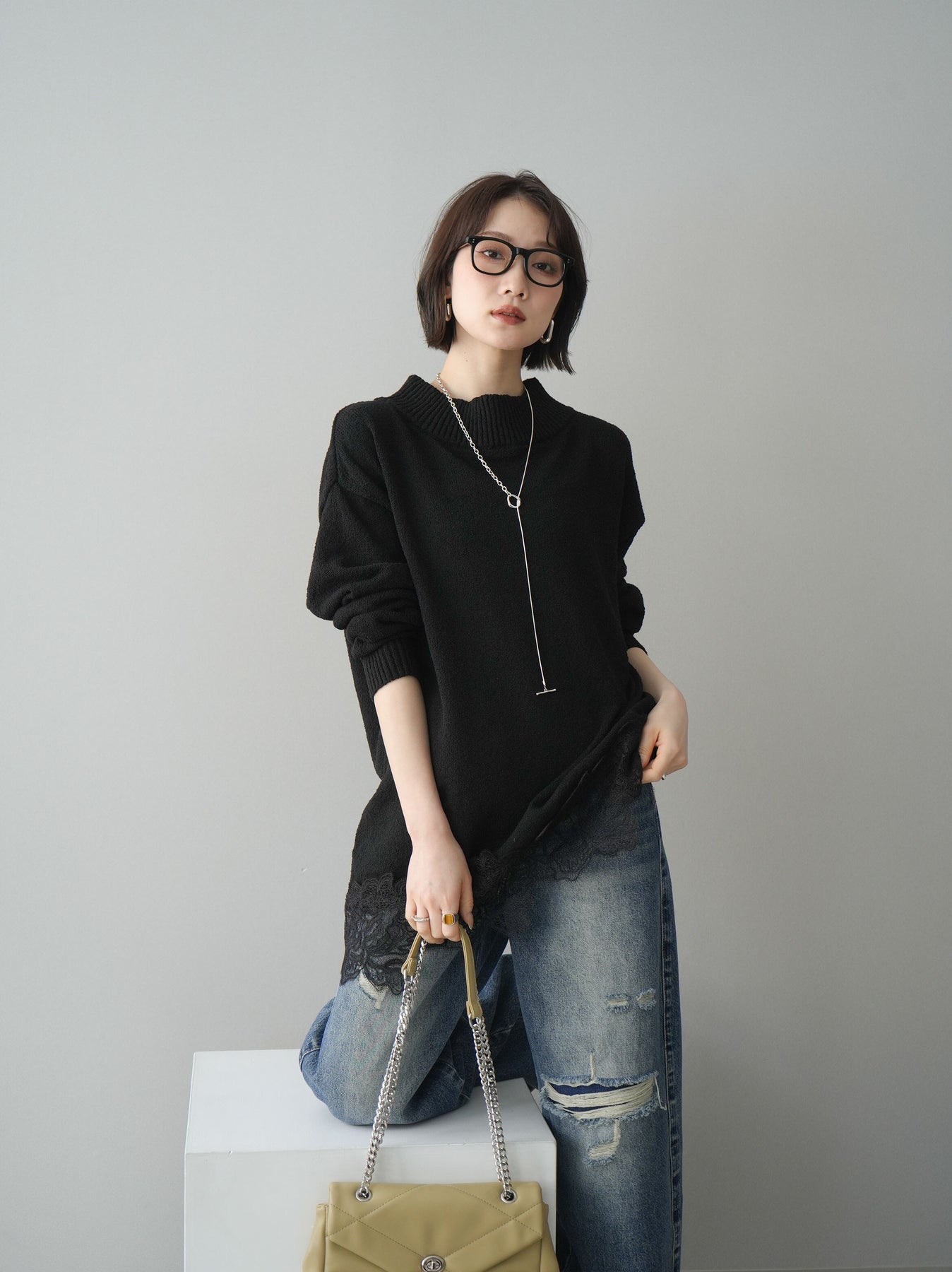 [予約]アシンメトリーレースヘムニットプルオーバー + [予約]アシンメトリーレースヘムニットプルオーバー