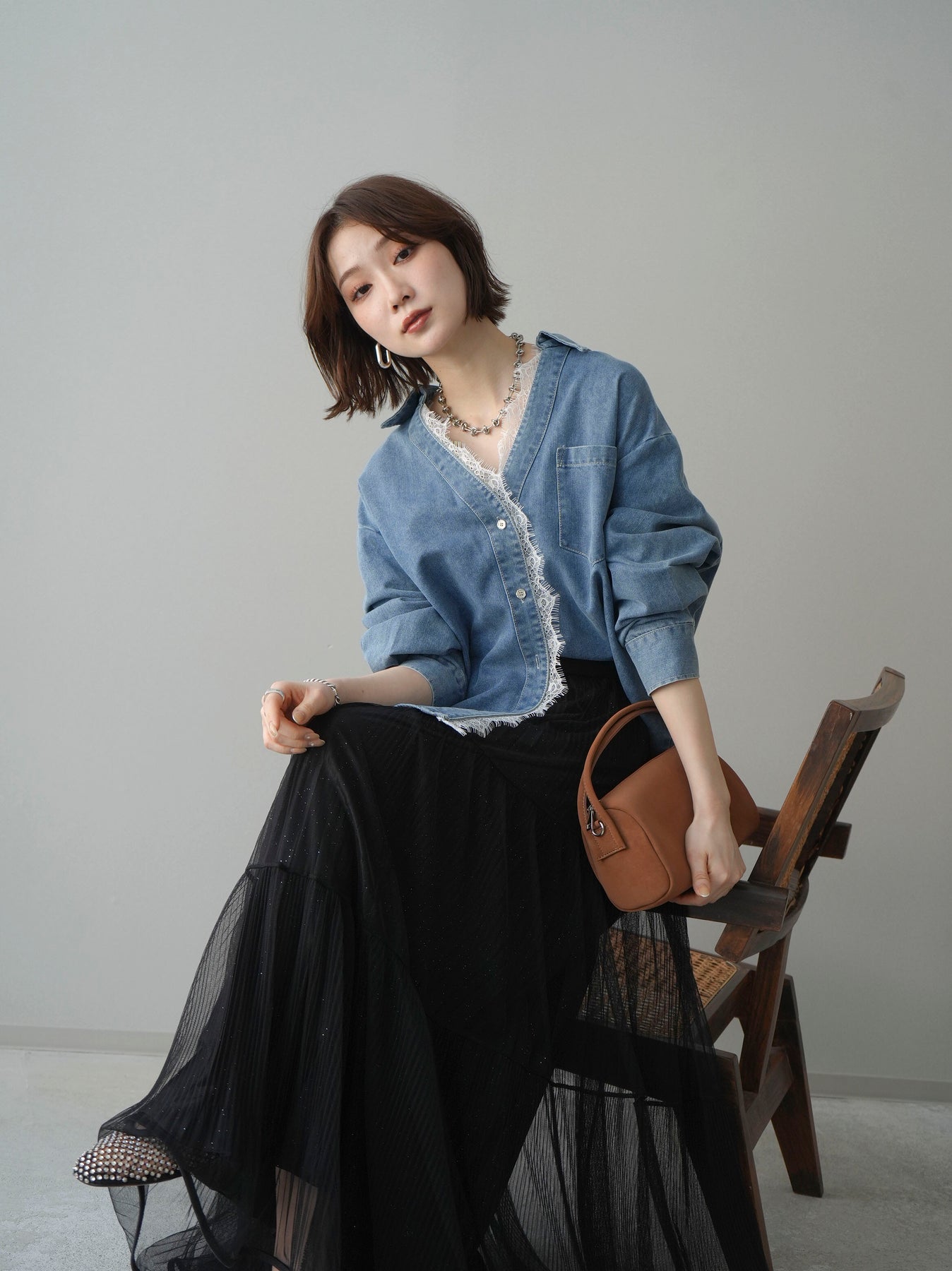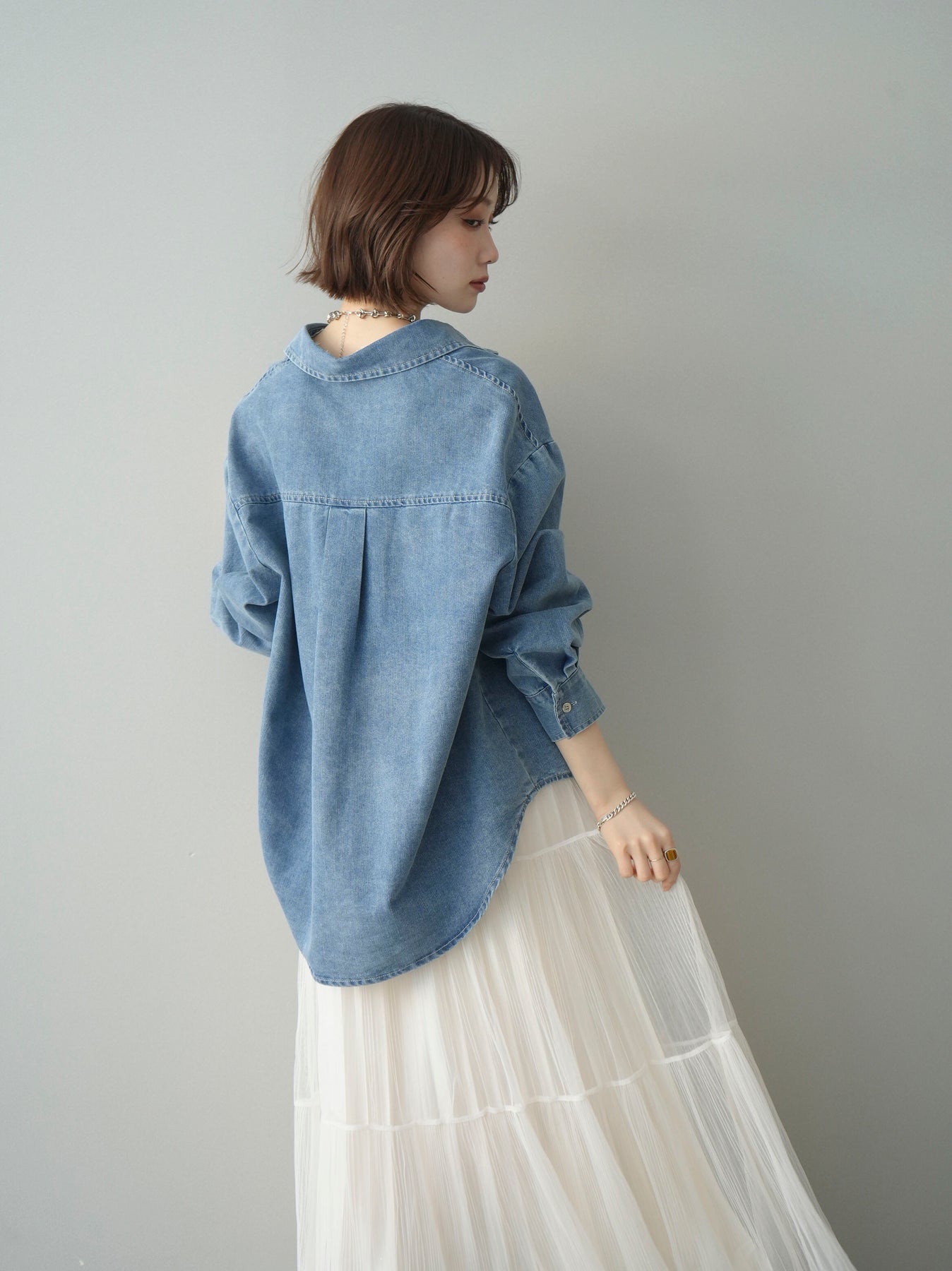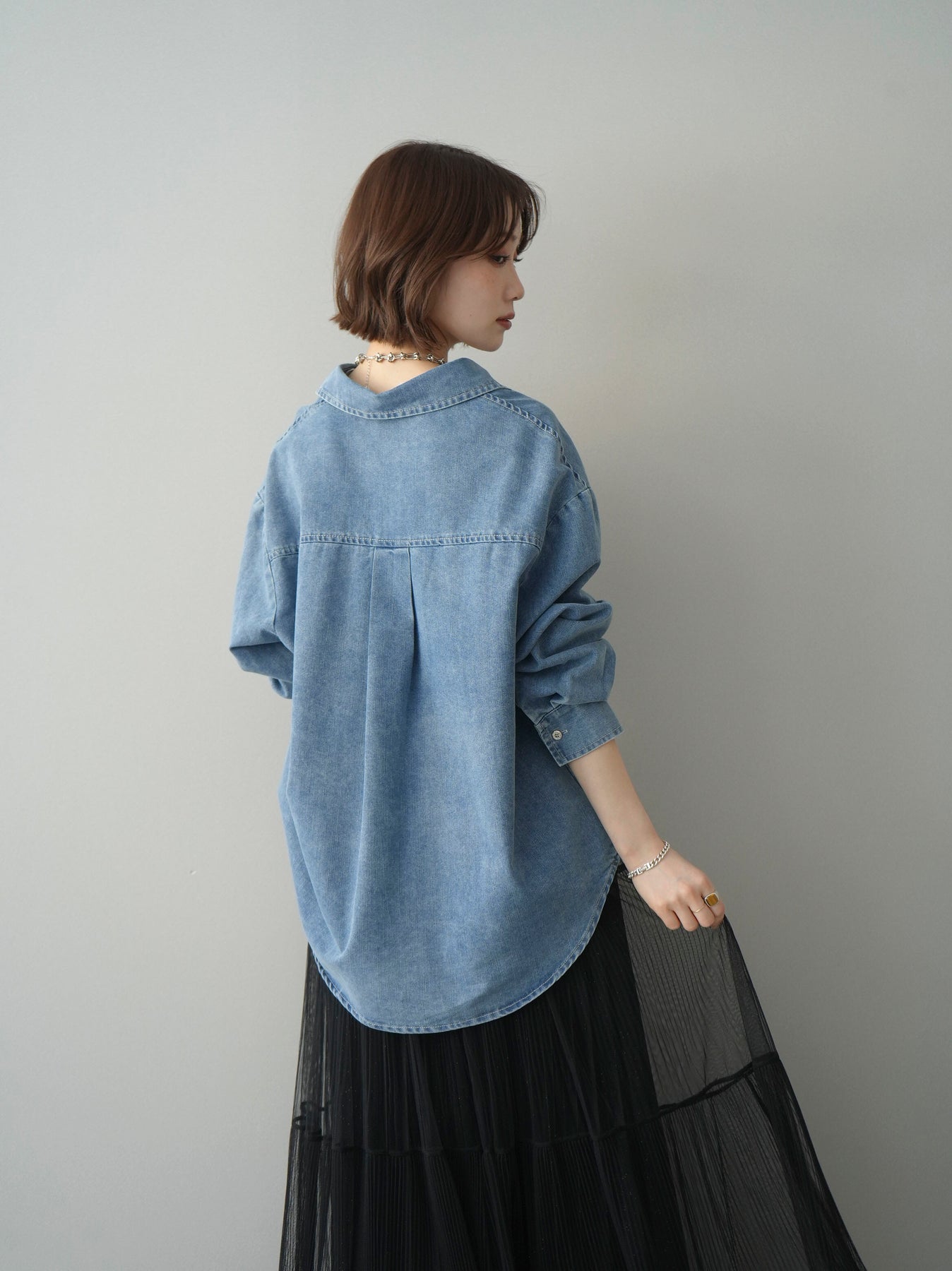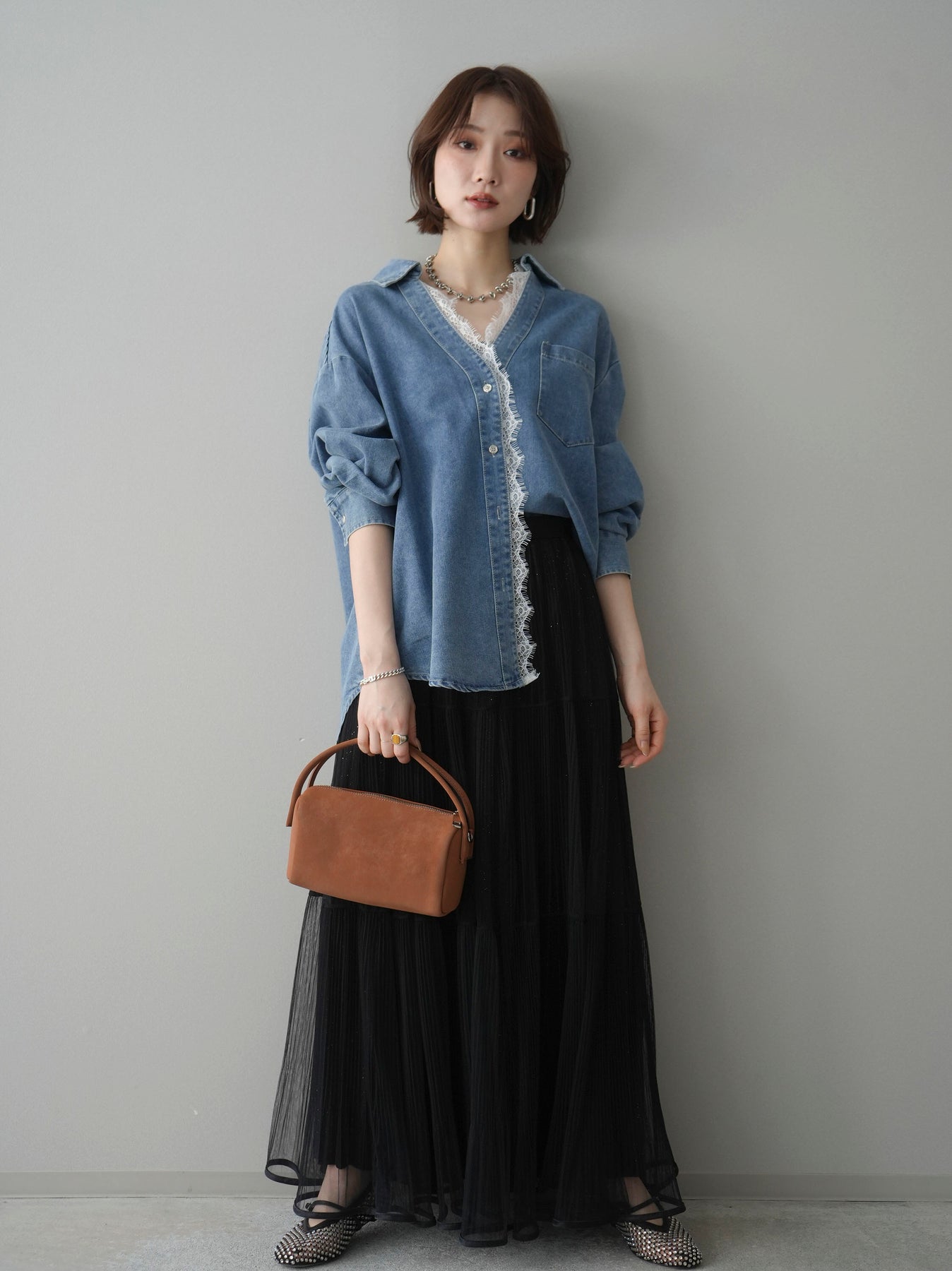 [SET]レースレイヤードデニム開襟シャツ+選べるアクセセット(2set)