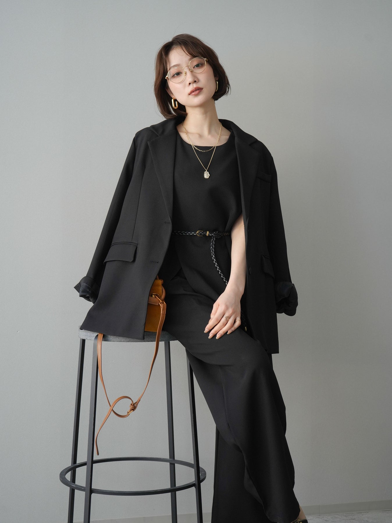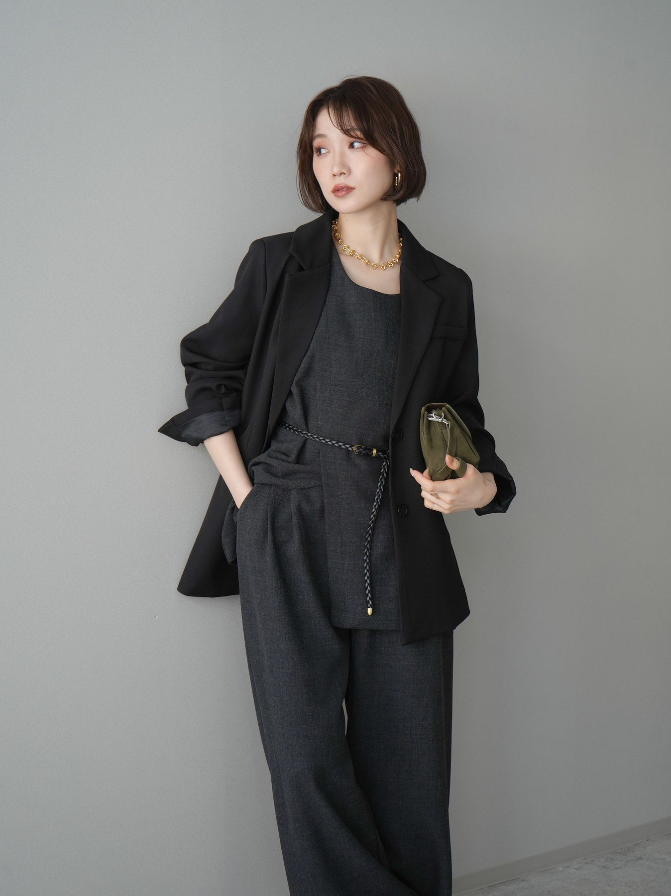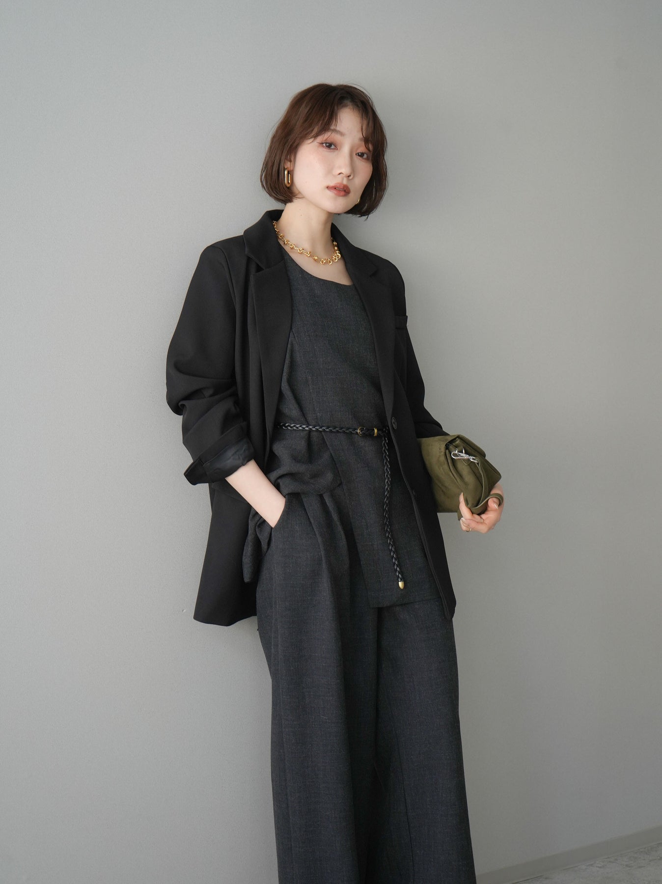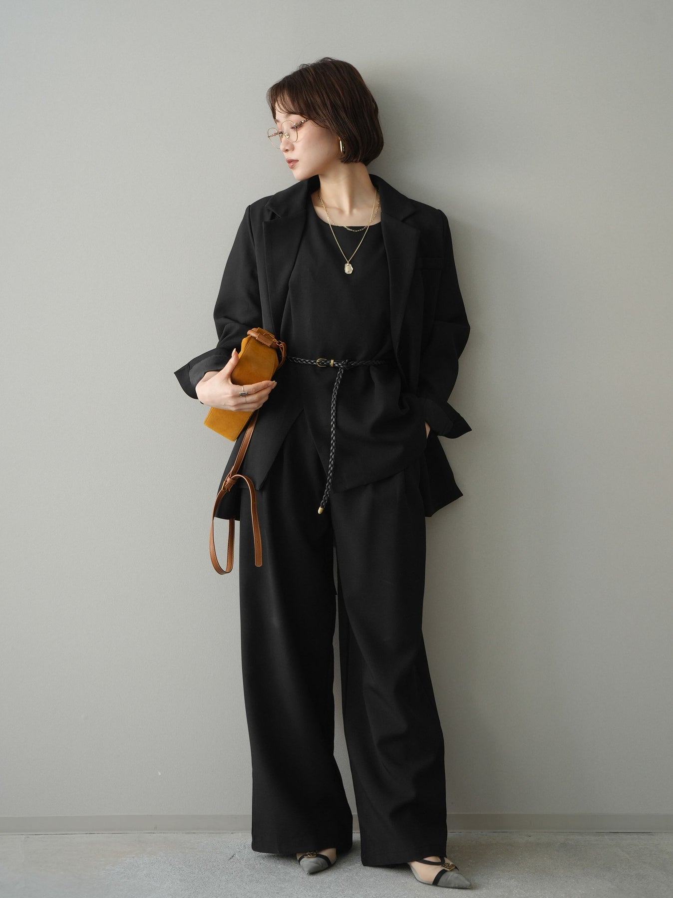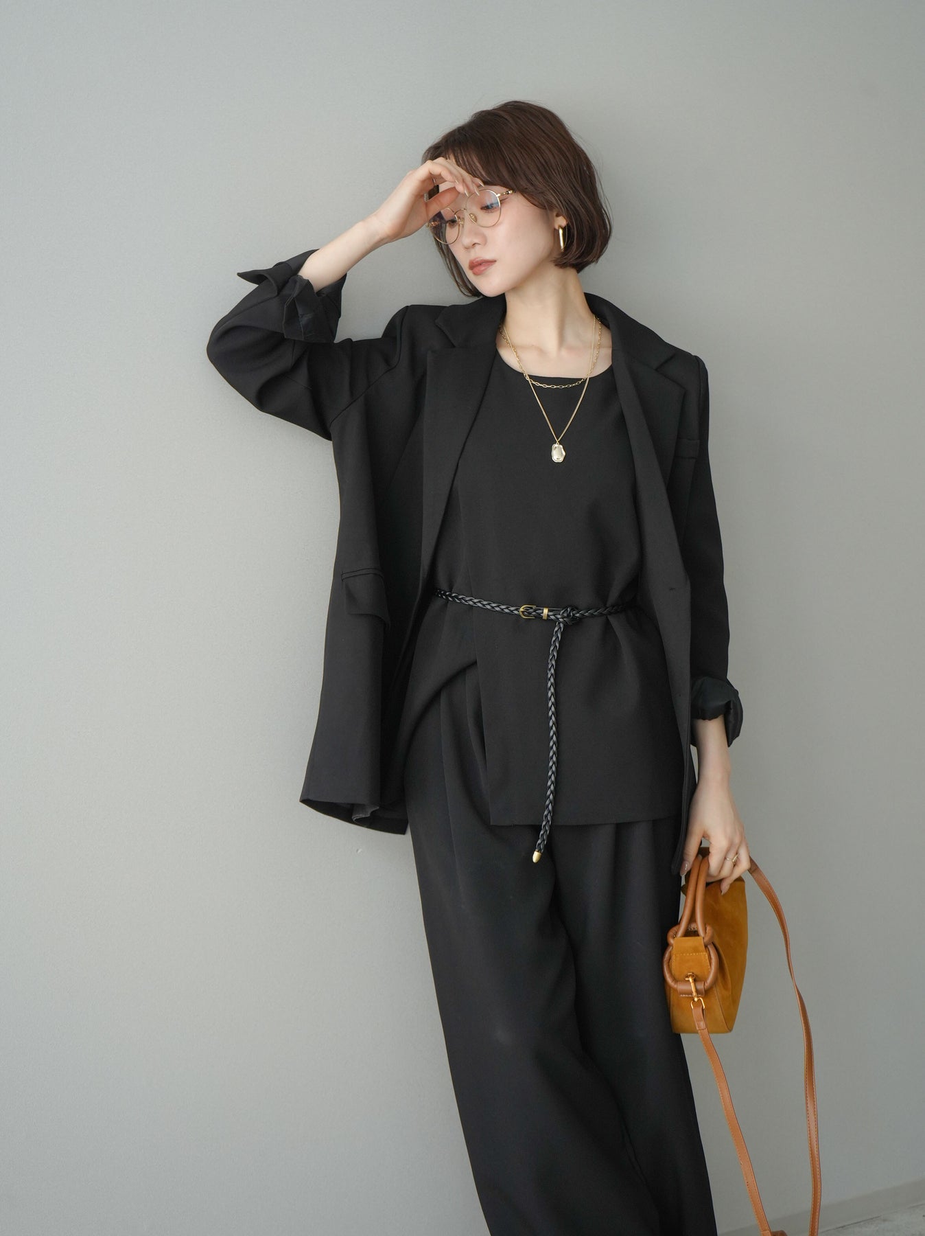 [SET]ベルト付ノースリーブトップス&ワイドパンツSETUP+バックスリットデザインジャケット(2set)