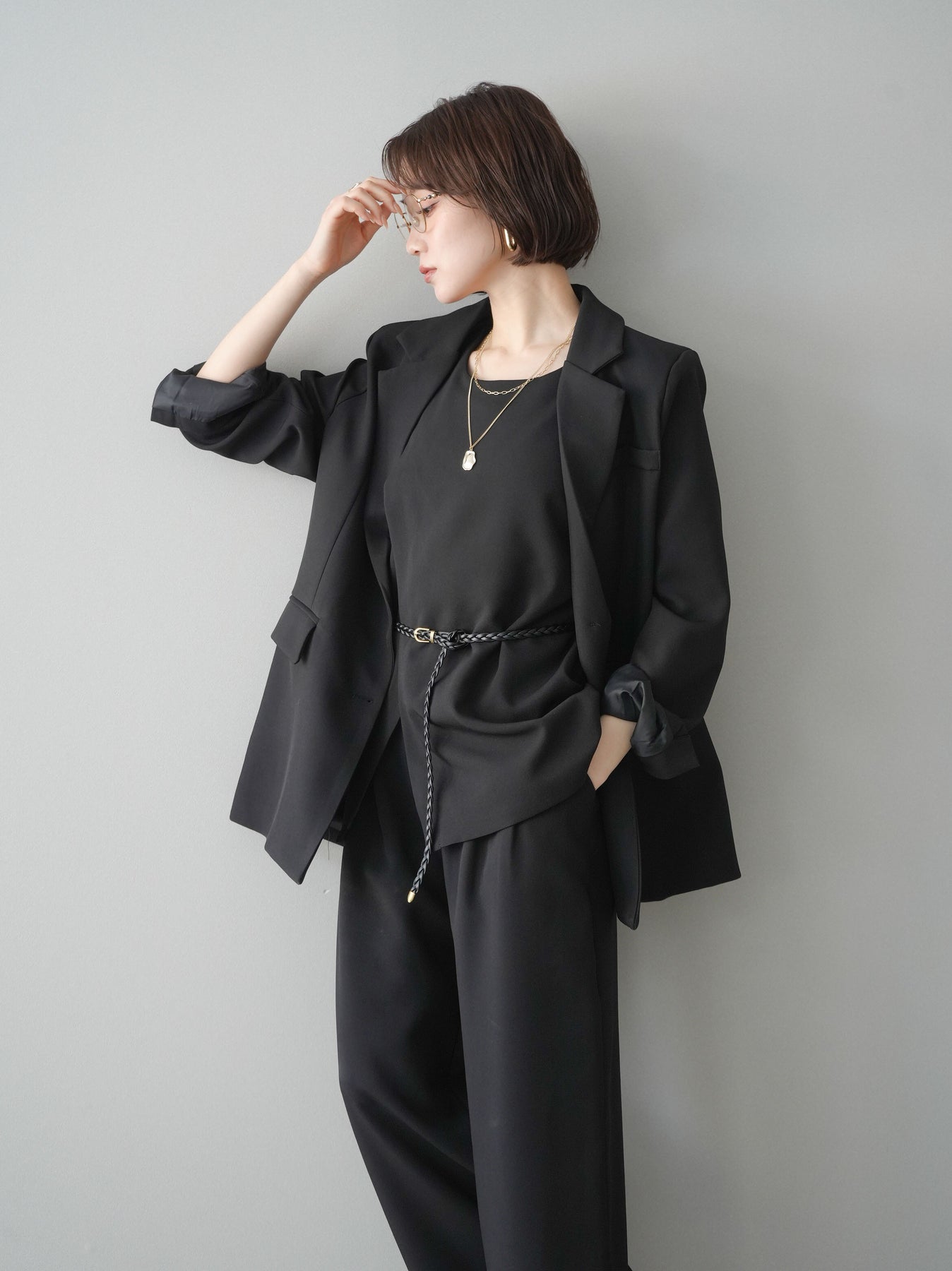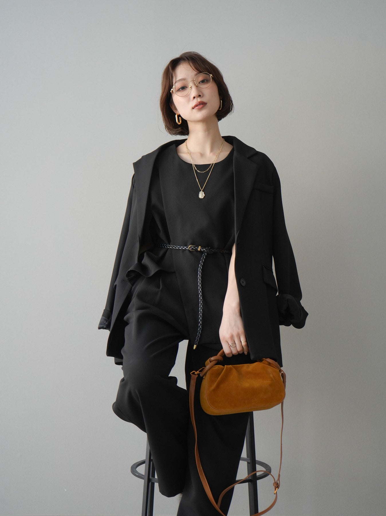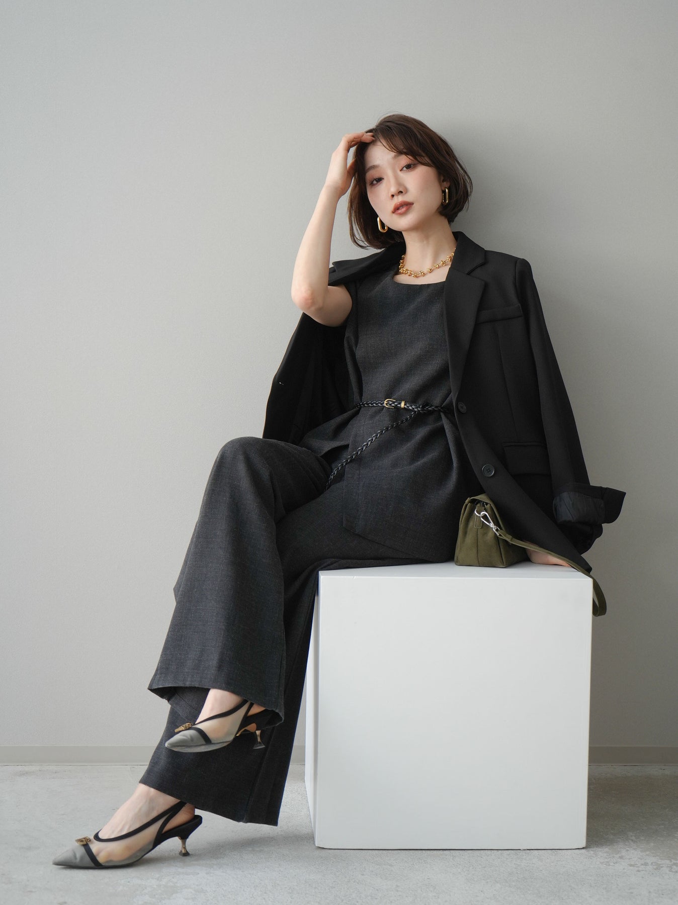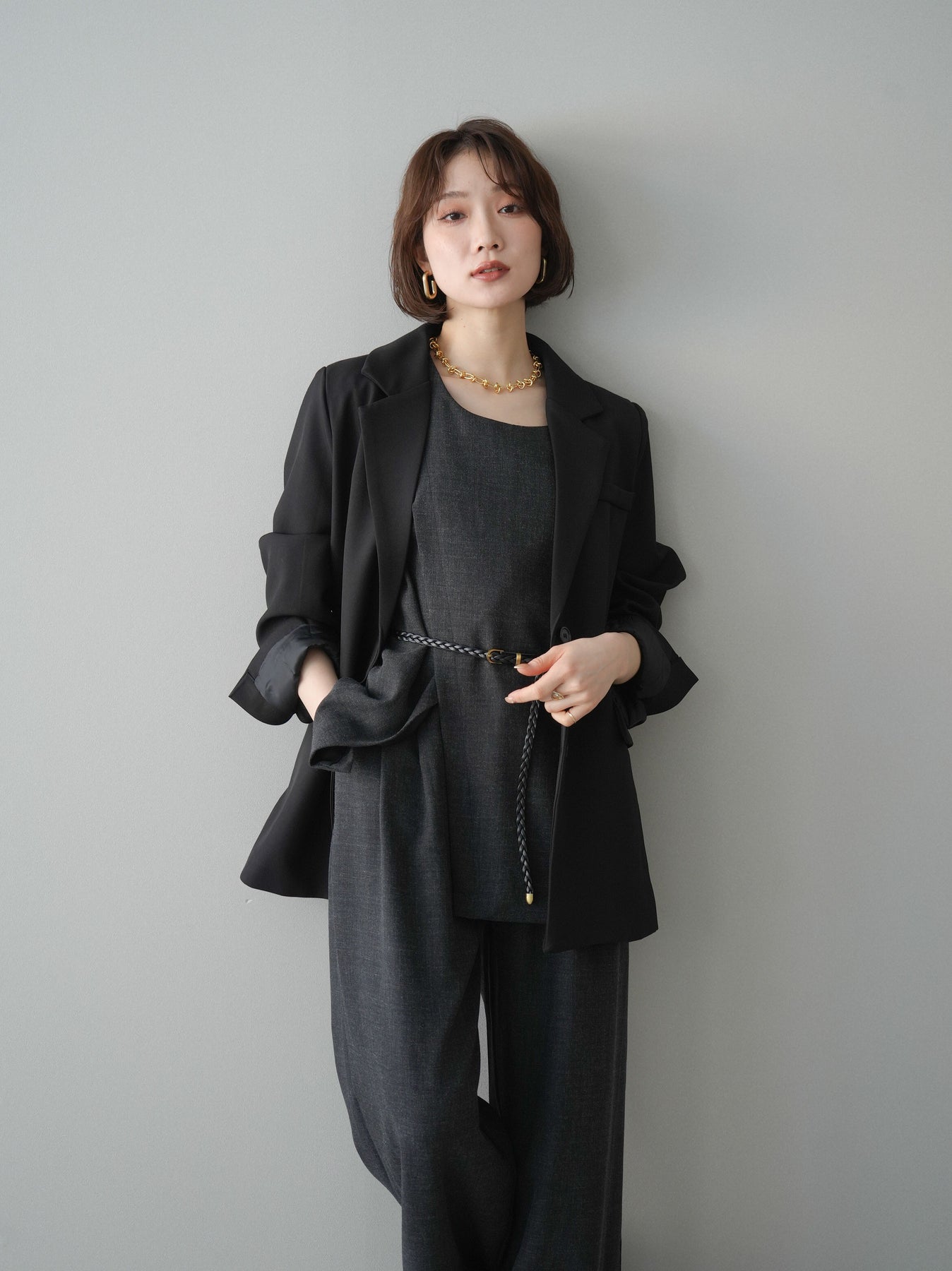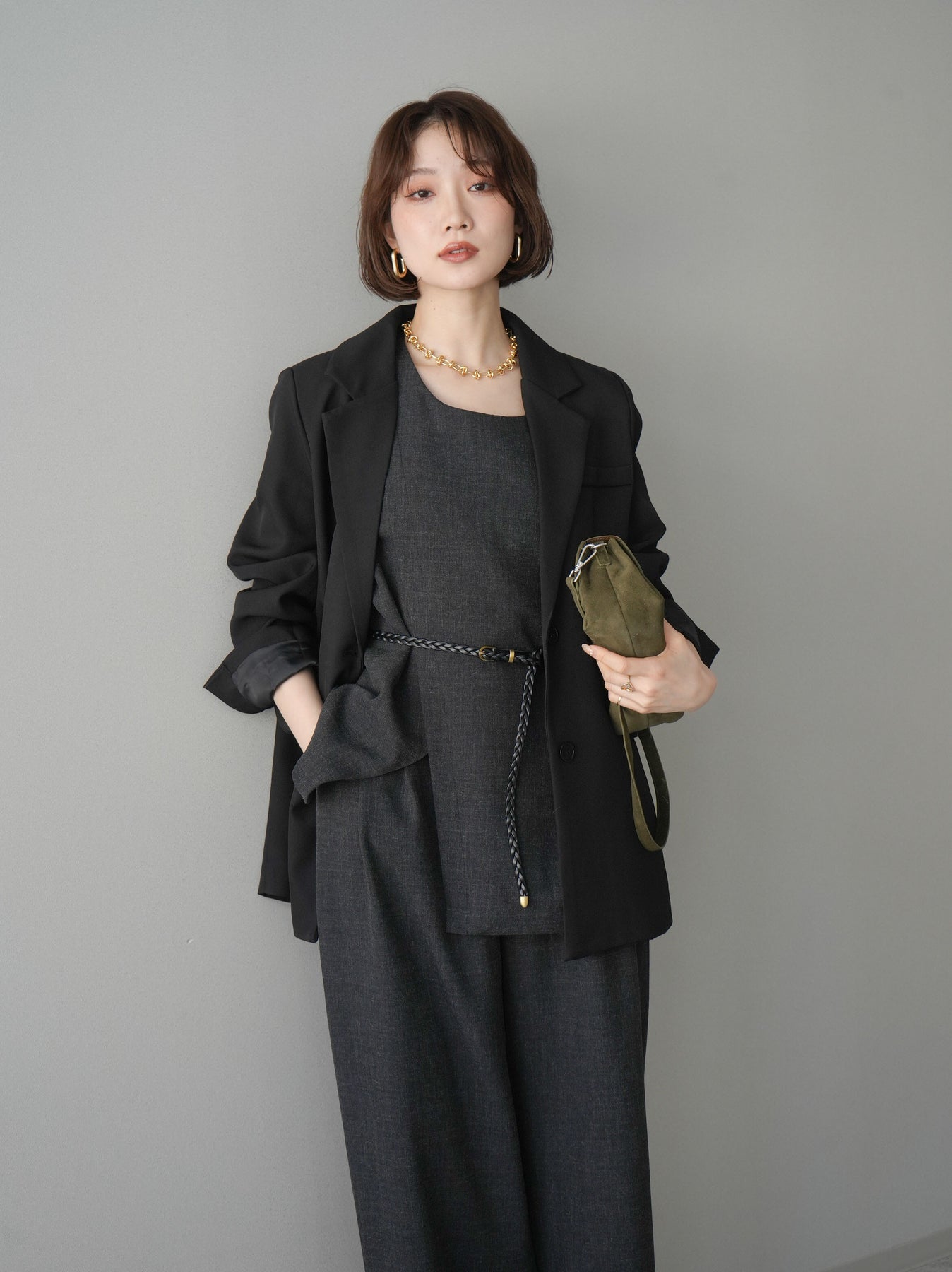 [SET]ベルト付ノースリーブトップス&ワイドパンツSETUP+バックスリットデザインジャケット(2set)
