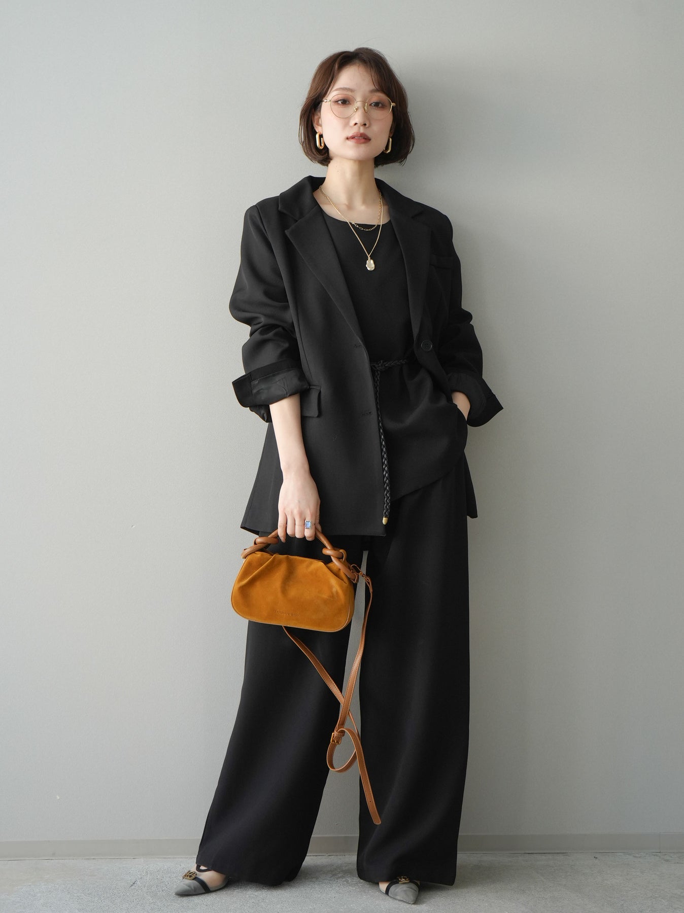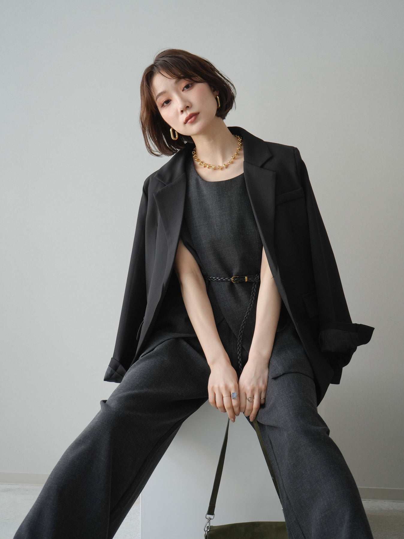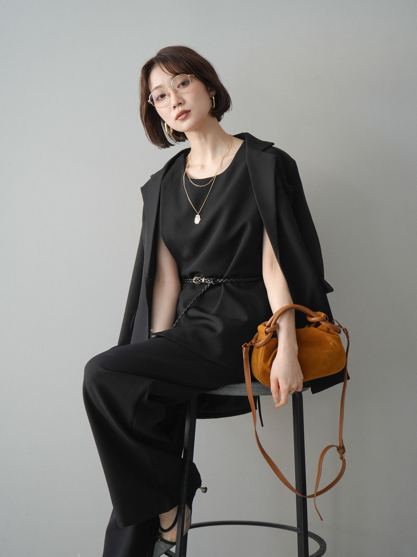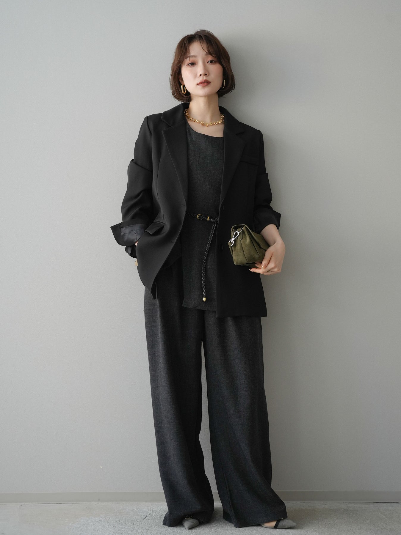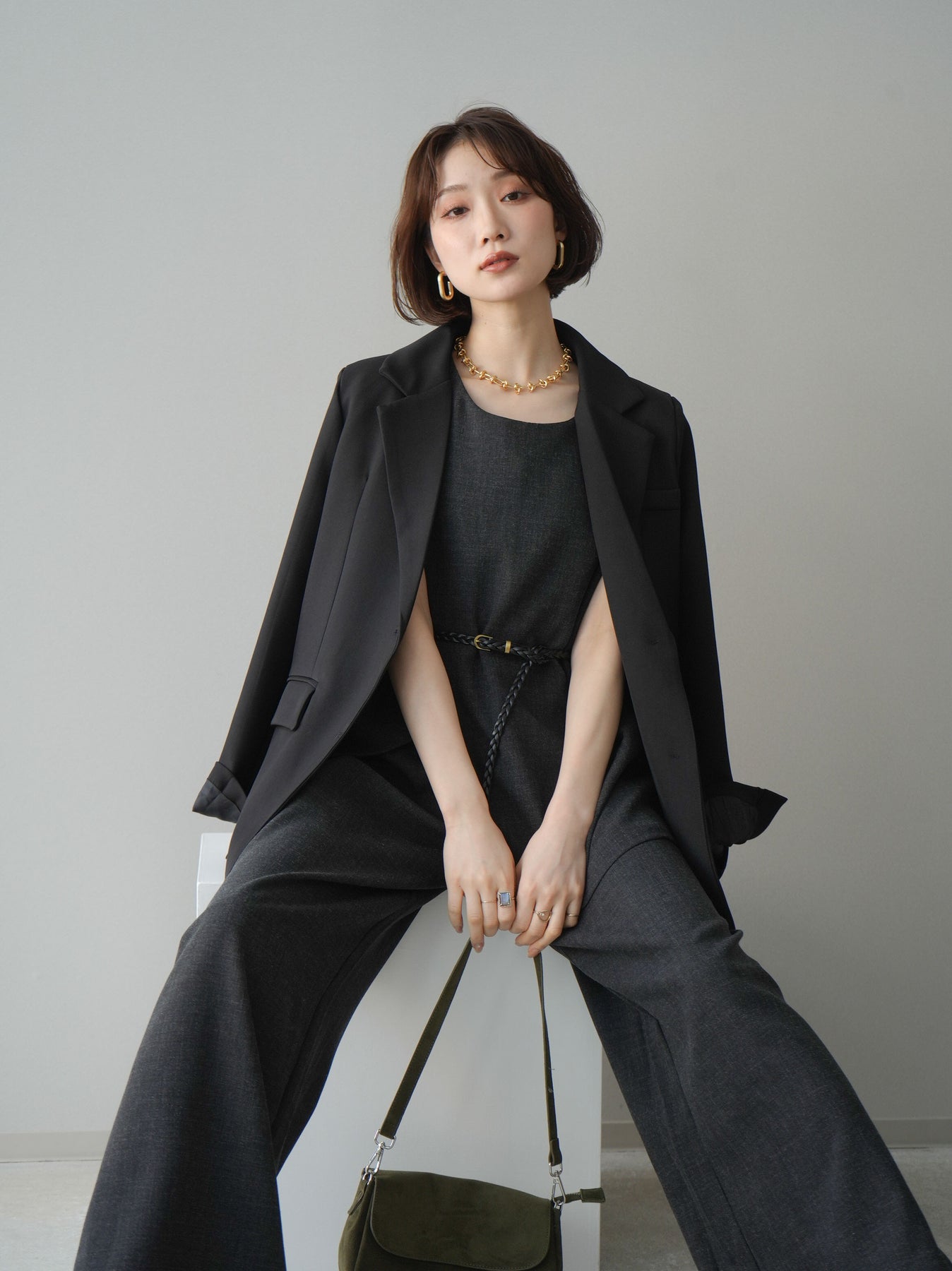 [SET]ベルト付ノースリーブトップス&ワイドパンツSETUP+バックスリットデザインジャケット(2set)