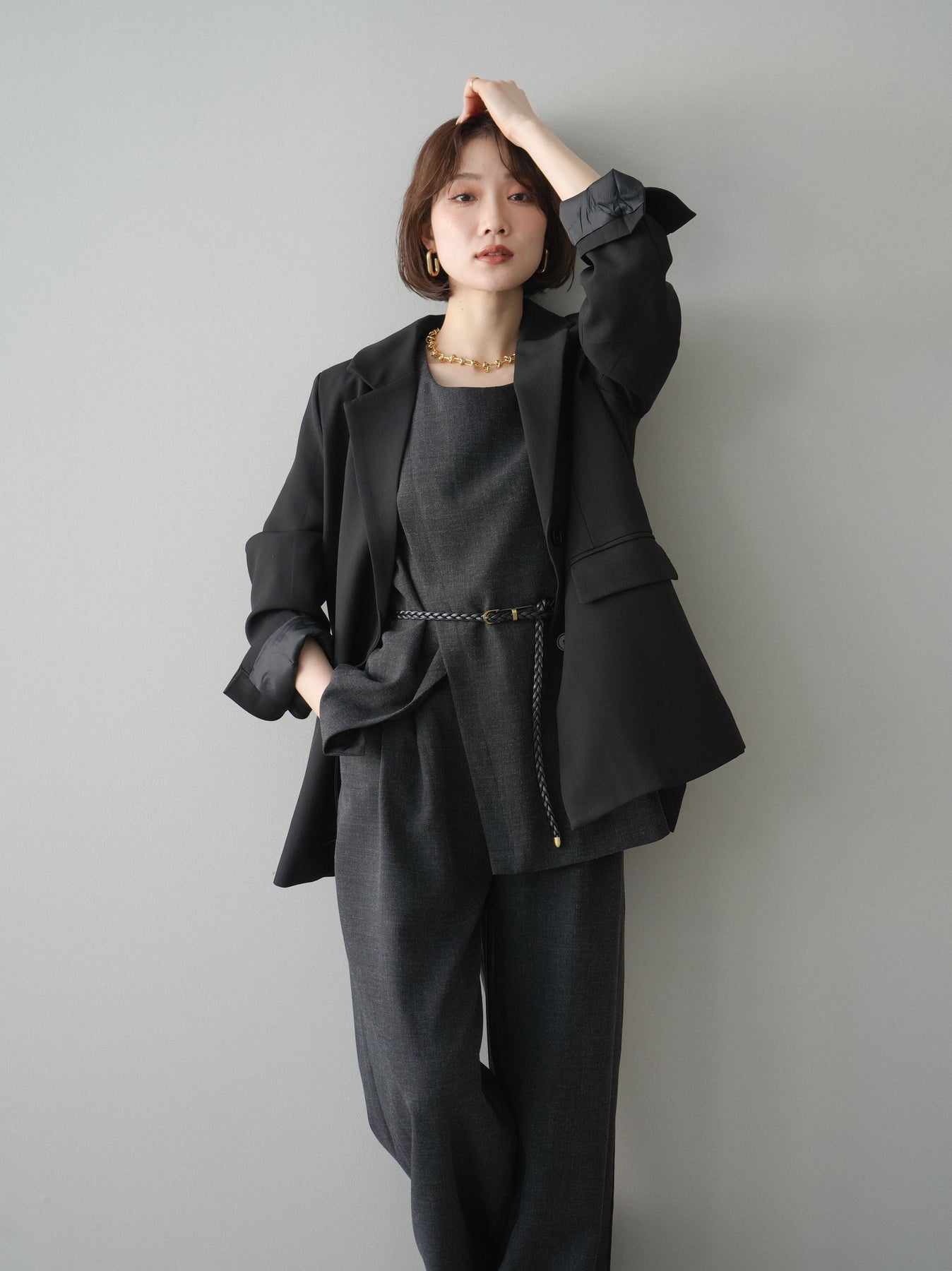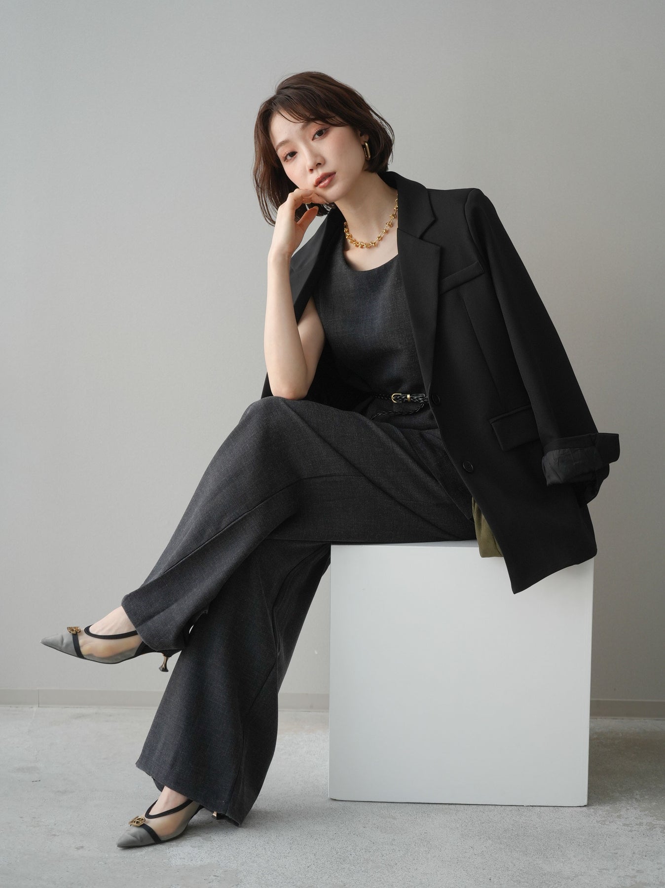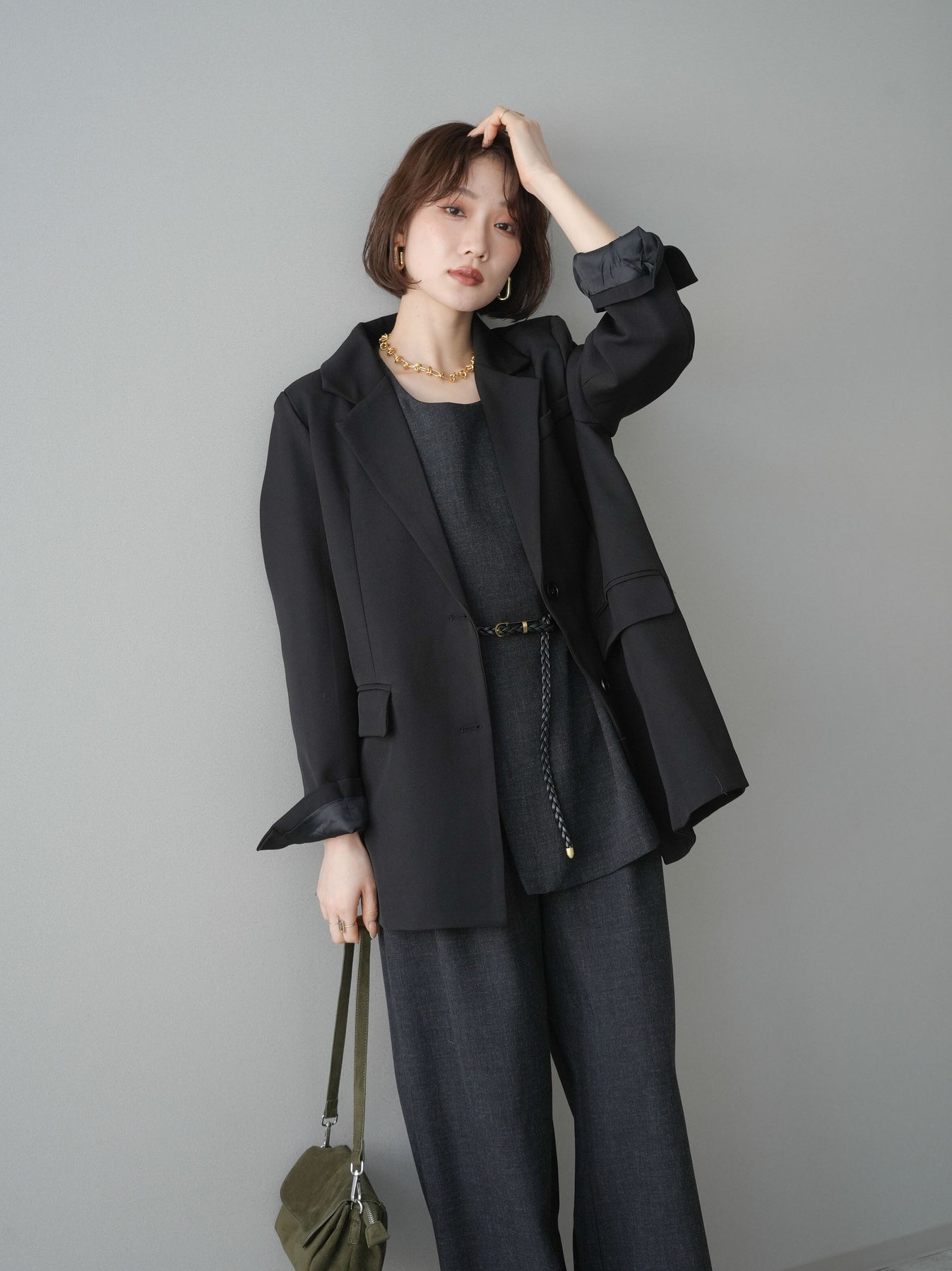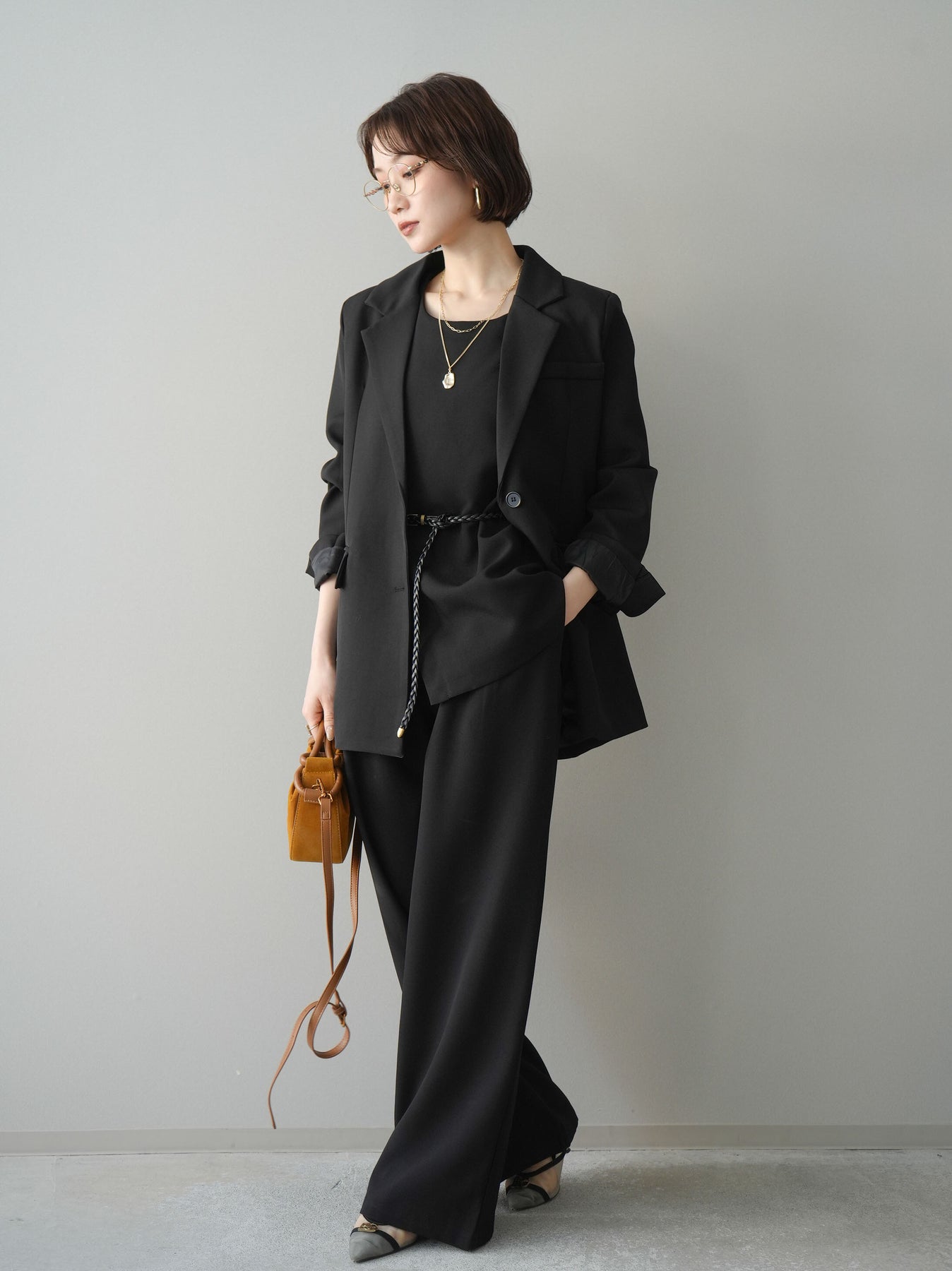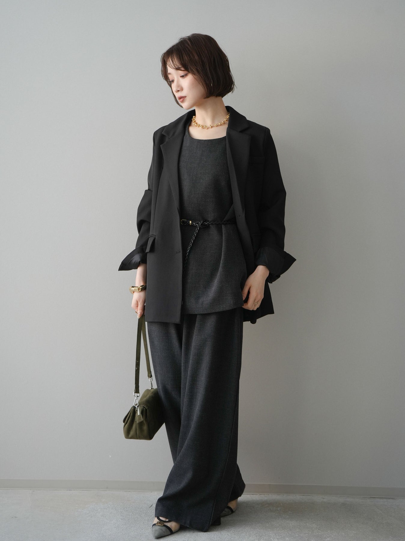 [SET]ベルト付ノースリーブトップス&ワイドパンツSETUP+バックスリットデザインジャケット(2set)