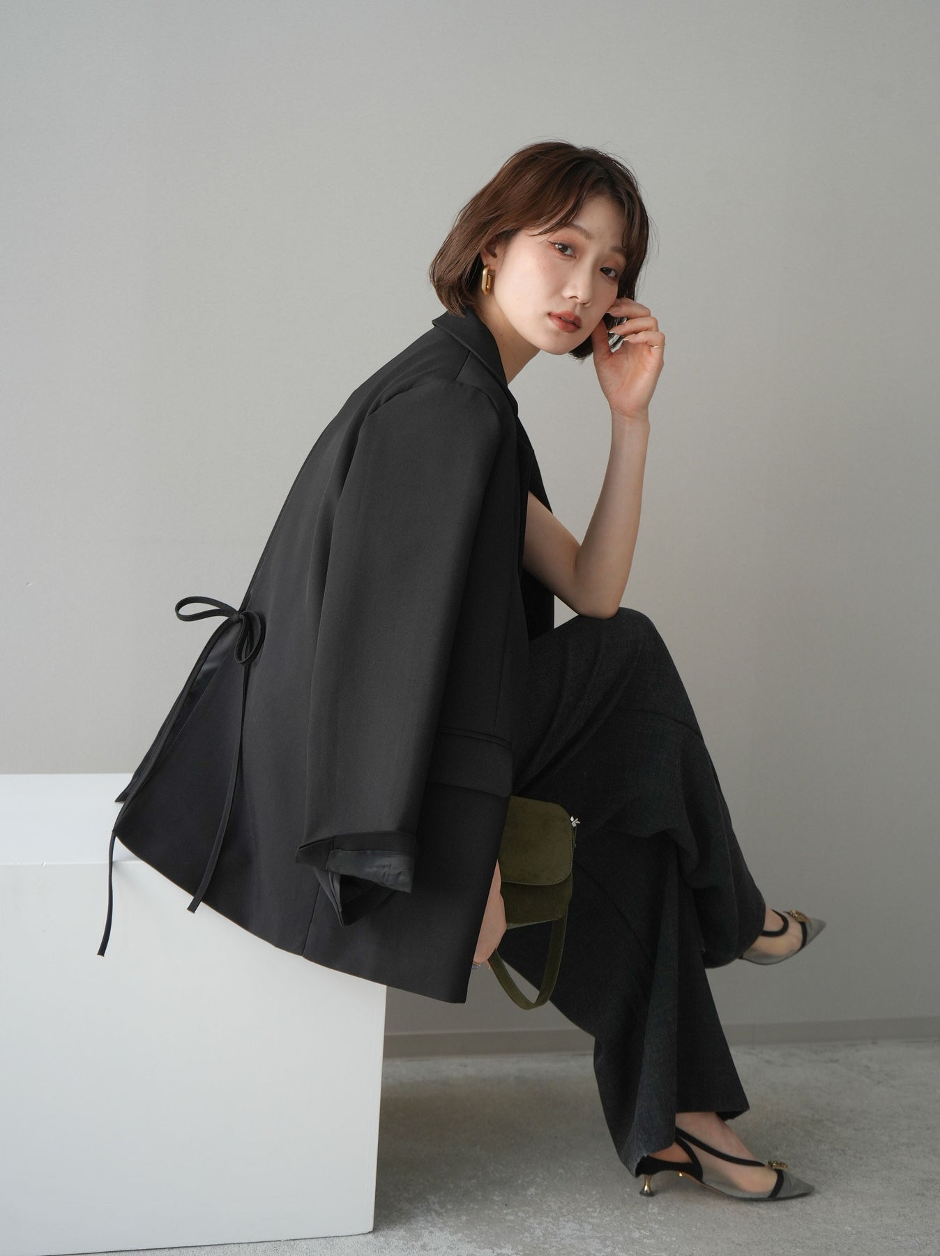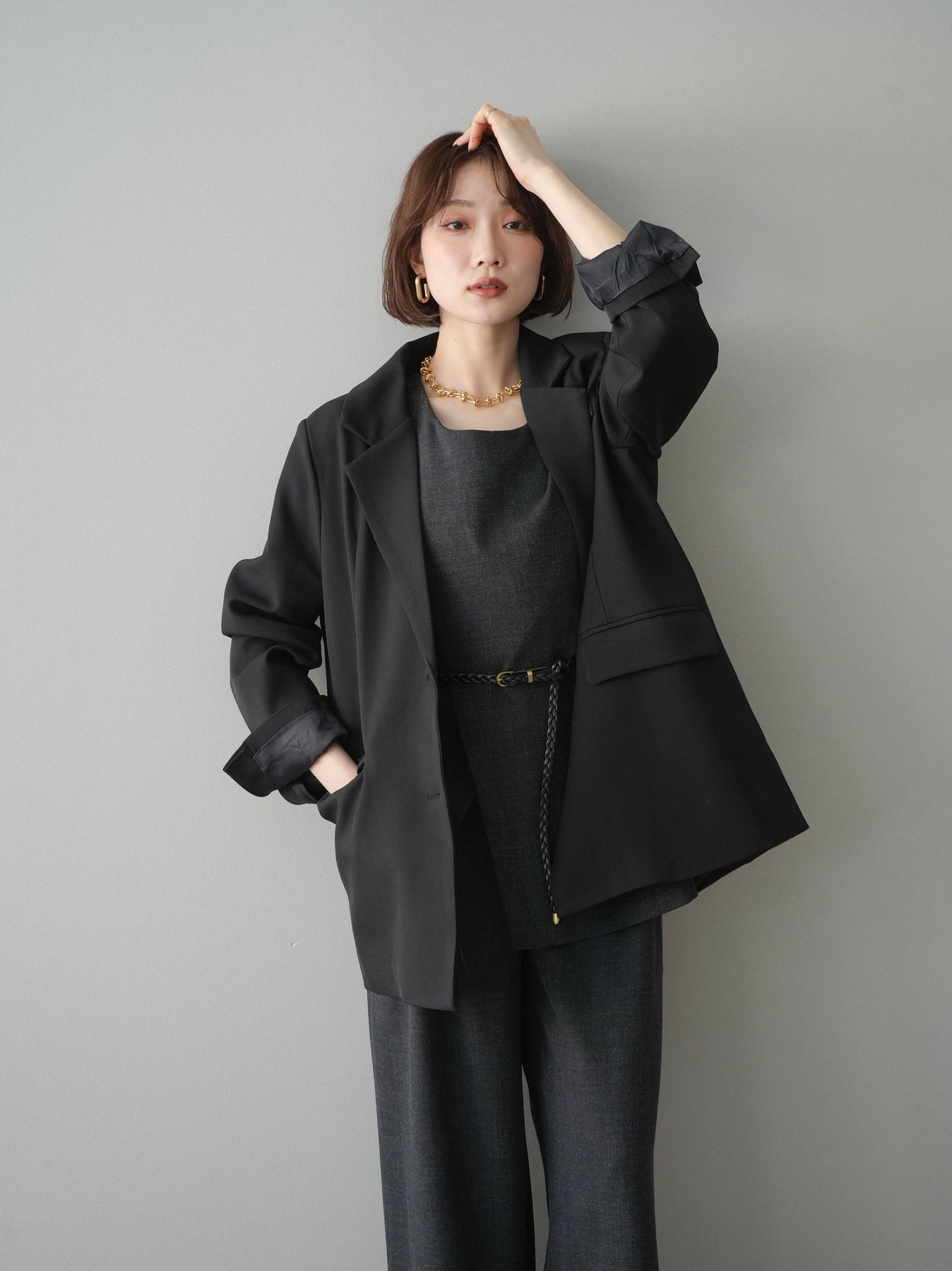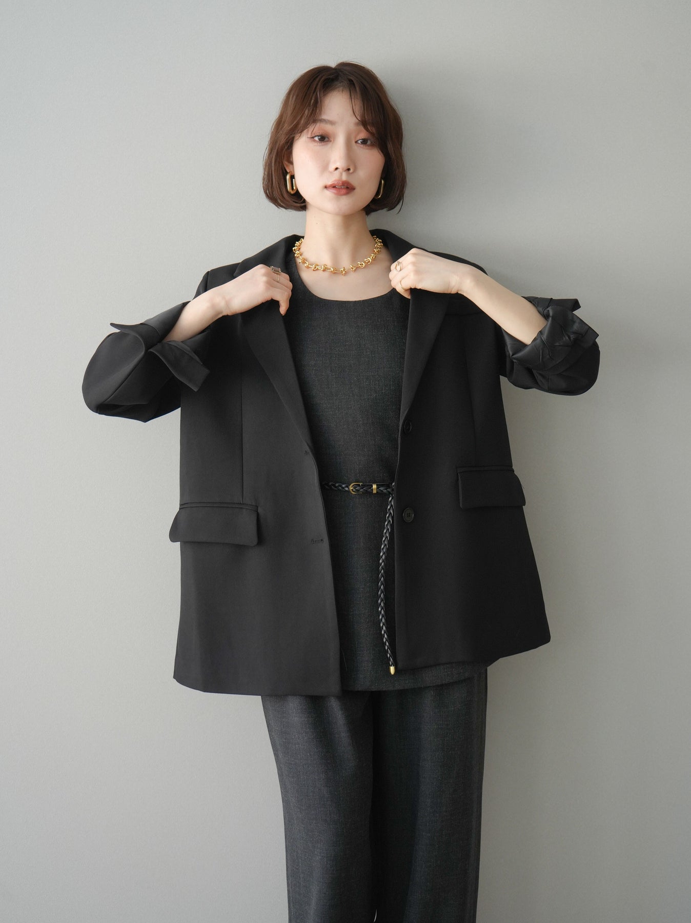 洗練されたシルエットにさりげない抜け感をプラスした、バックスリットデザインジャケット。きちんと感のあるテーラードカラーと程よくゆとりのあるシルエットが、羽織るだけで大人らしいスタイリングを完成させます。フロントはシンプルにまとめながら、後ろ姿にスリットデザインを施すことで動きのある軽やかな印象に。歩くたびに揺れるディテールが女性らしさを引き立て、ベーシックなジャケットスタイルに差をつけてくれます。デニムやワイドパンツと合わせたカジュアルコーデはもちろん、スラックスやスカートと合わせたきれいめスタイルにも好相性。オンオフ問わず活躍し、シーズンレスで着回せる一着です。 ※ボトムス、キャミソール(インナー)以外の商品は一律でインナーは付属していません。
