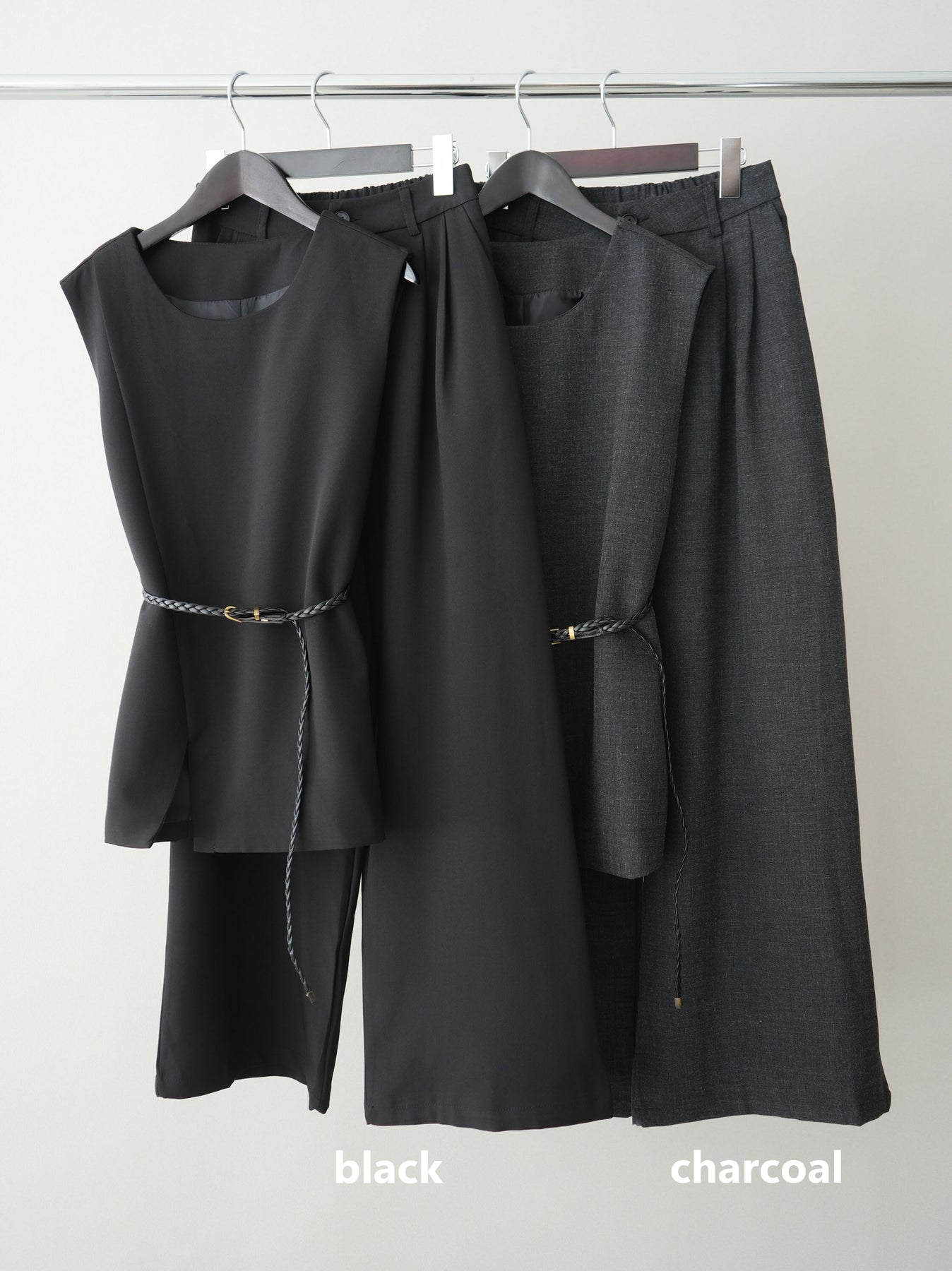 [予約]ベルト付ノースリーブトップス&ワイドパンツSETUP