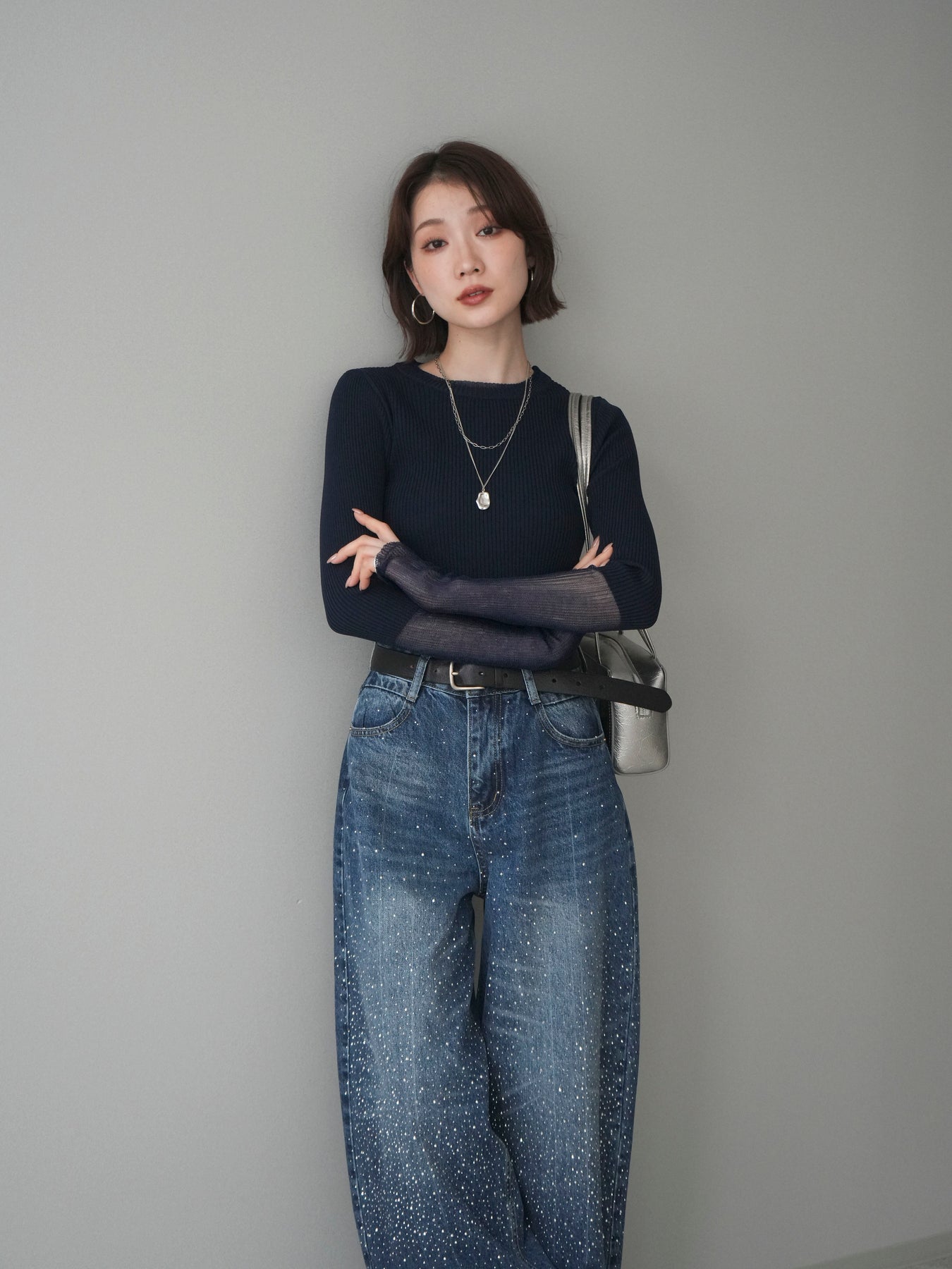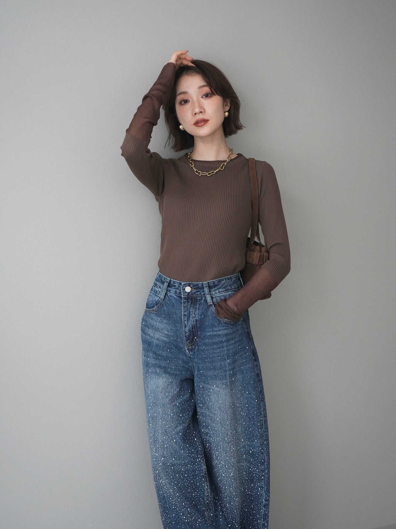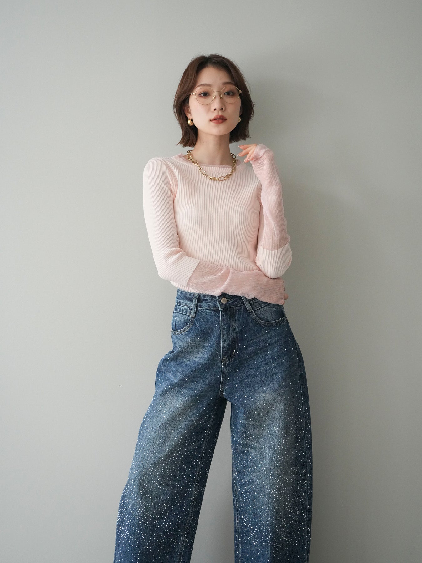 縦リブのすっきりとしたシルエットに、袖口のラメシアー切替が映えるリブニットトップス。身頃は程よくフィットし、女性らしいラインをきれいに引き立ててくれます。ほんのり透け感のある袖口デザインが抜け感をプラスし、シンプルながらも一枚で着映える仕上がりに。ジャケットやキャミワンピースのインナーとしても活躍し、ロングシーズン着回せる万能アイテムです。