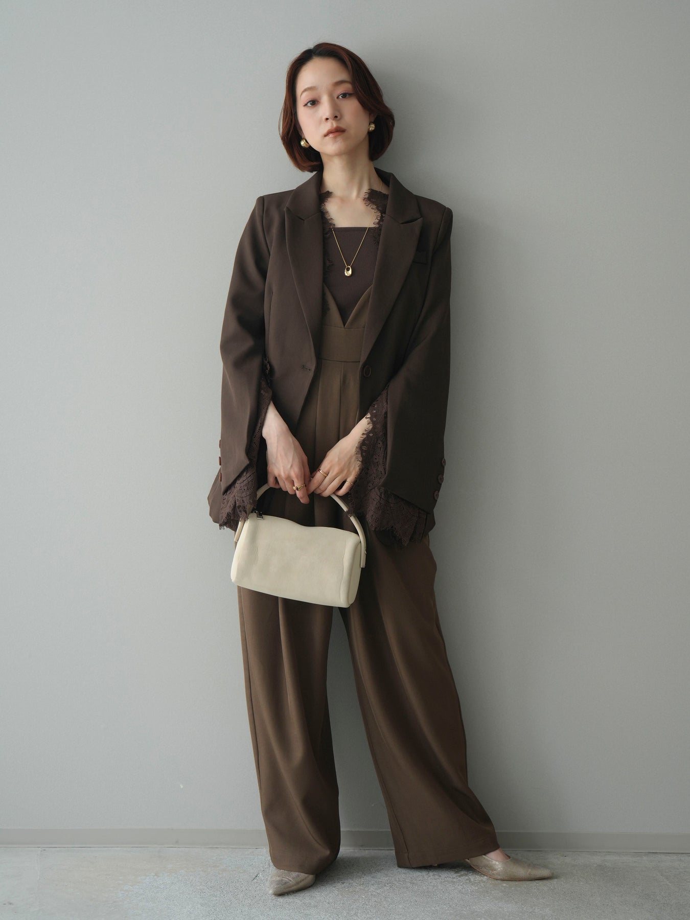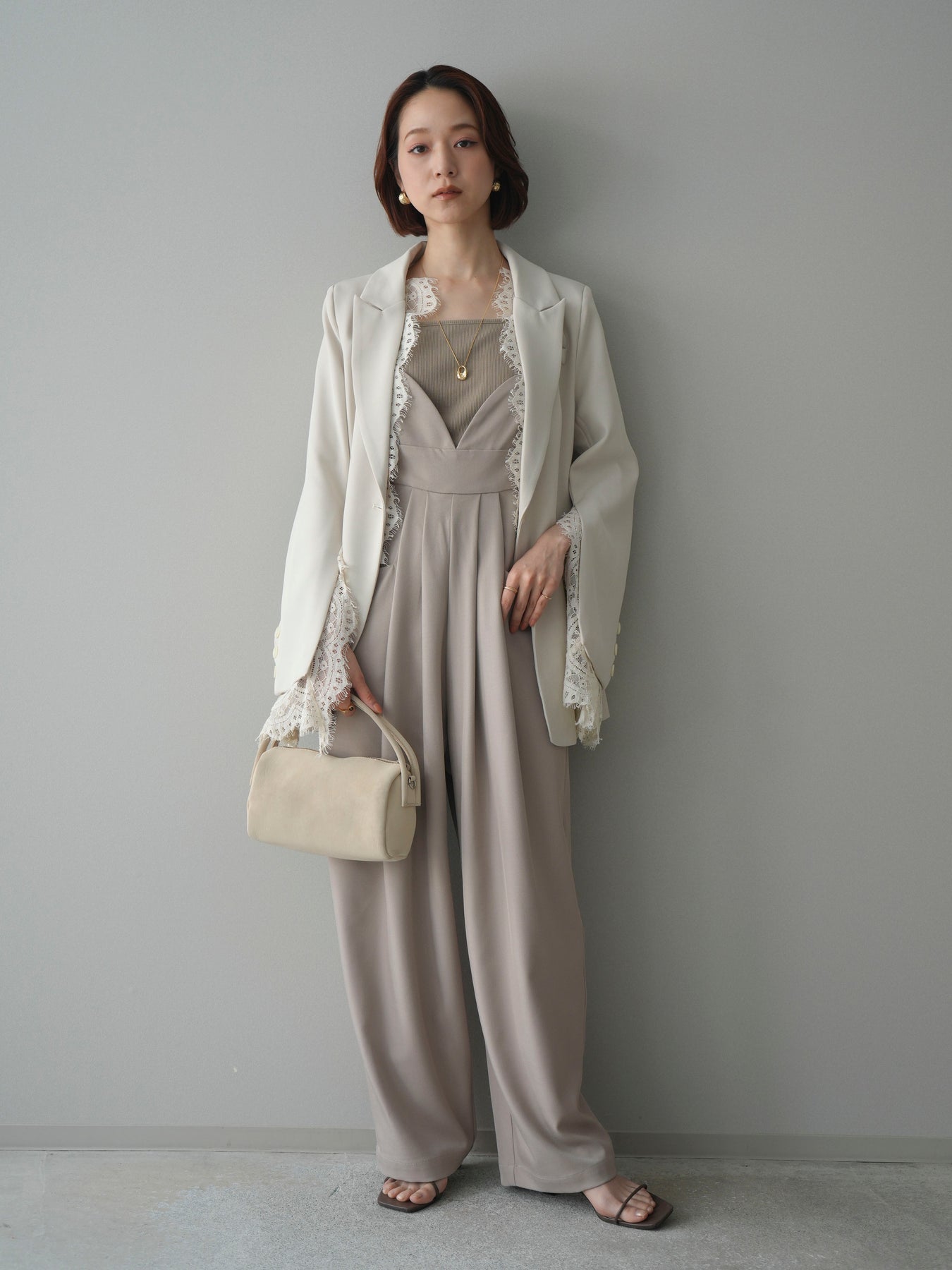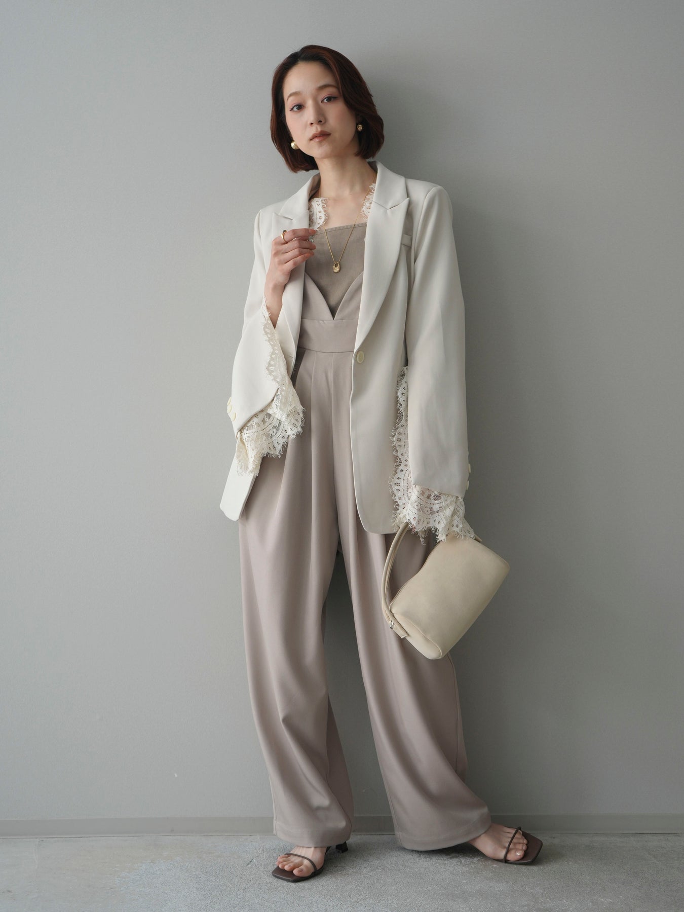 [SET]レースレイヤードスリットジャケット+バックデザインサロペット(2set)