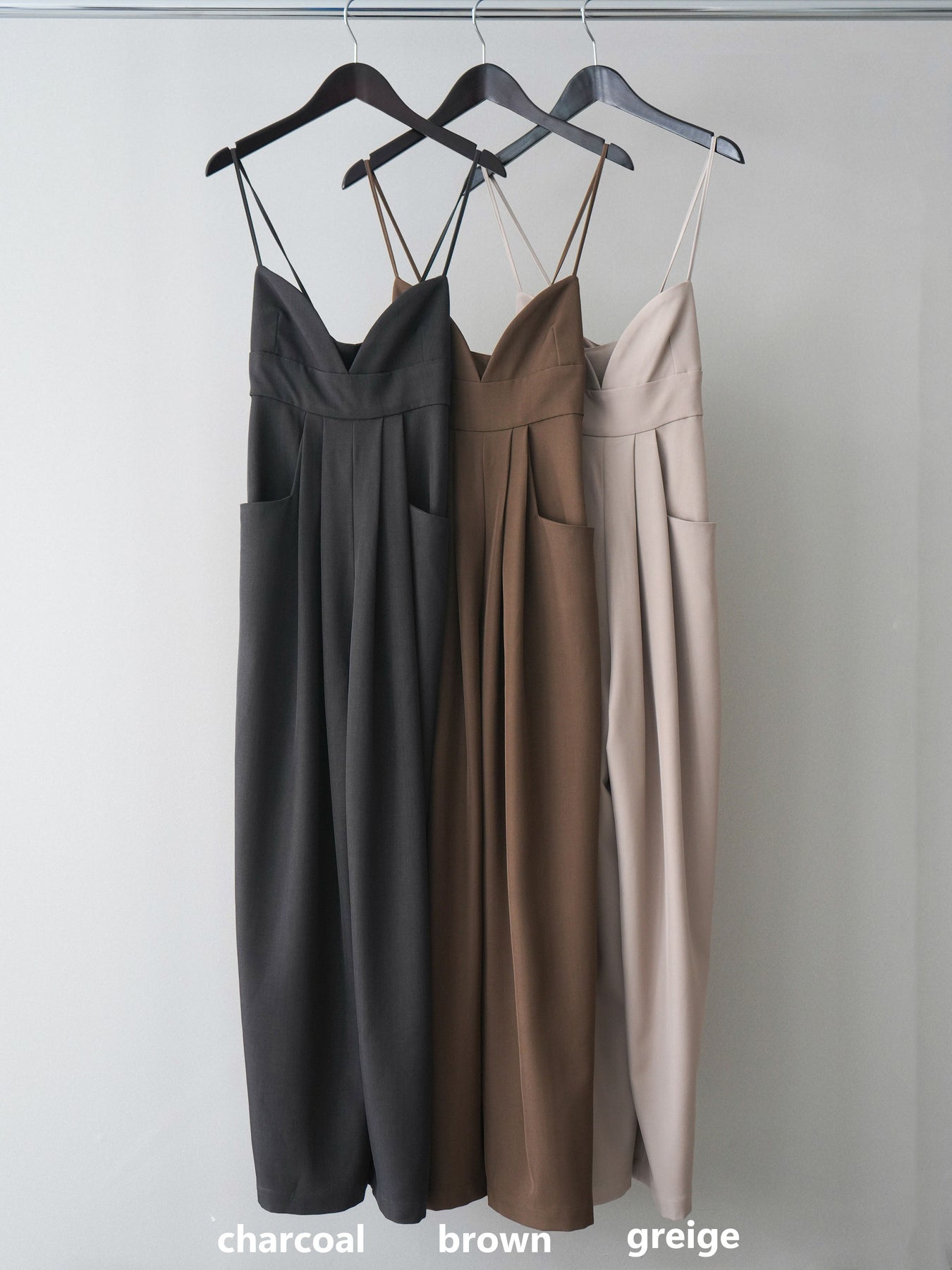 華奢なストラップとバックデザインが目を引くサロペット。 すっきりとした上半身のラインと、ゆとりのあるシルエットのボトム部分がバランスよく、自然と縦のラインを引き立てます。 フロントはシンプルに仕上げながら、バックスタイルにさりげないアクセントをプラス。 インナーを変えることで雰囲気の変化も楽しめ、シーズンを問わずスタイリングに取り入れやすい一着です。 カットソーやニット、ブラウスなど幅広いトップスと相性が良く、着こなしの幅が広がるアイテムです。