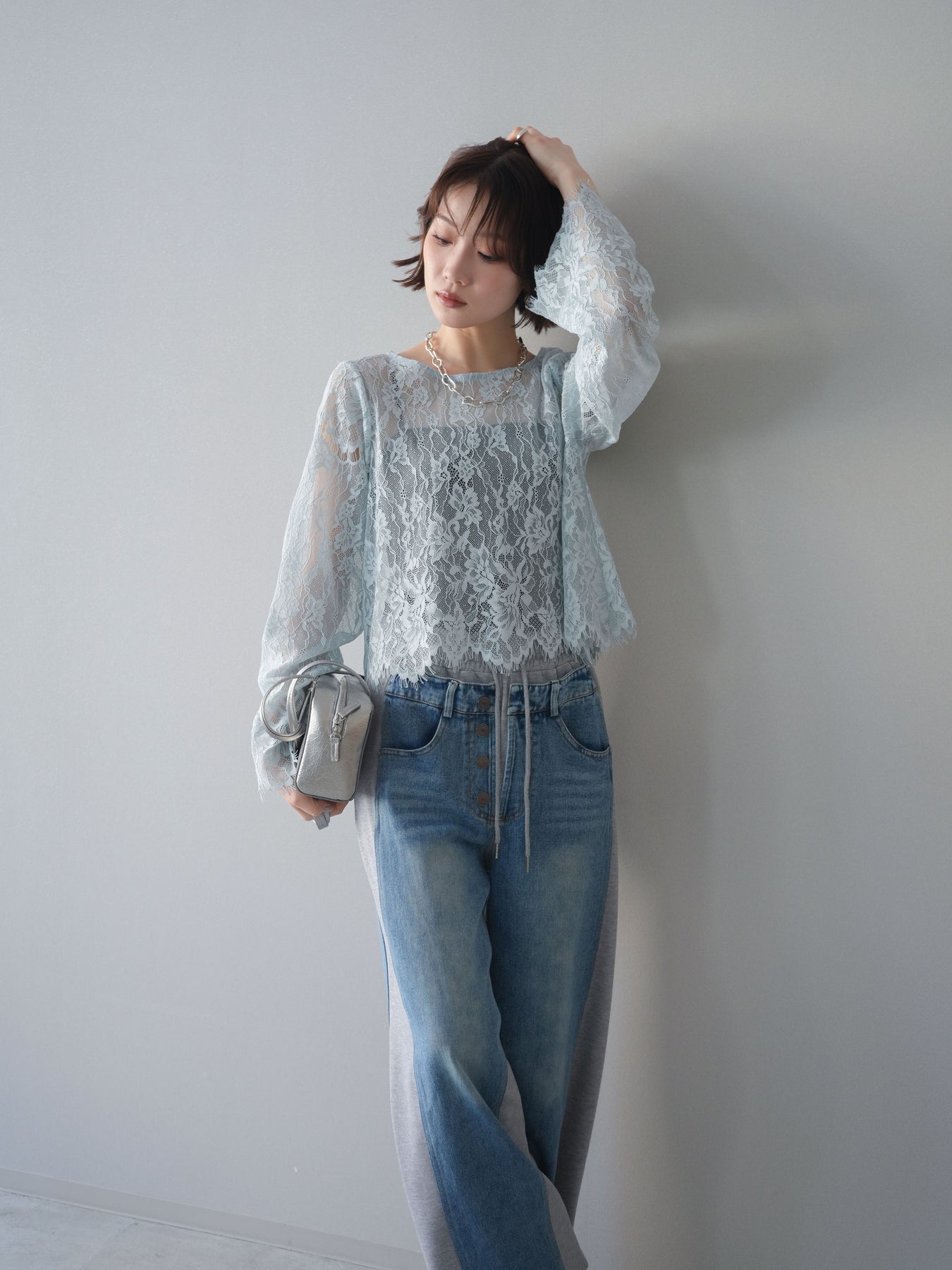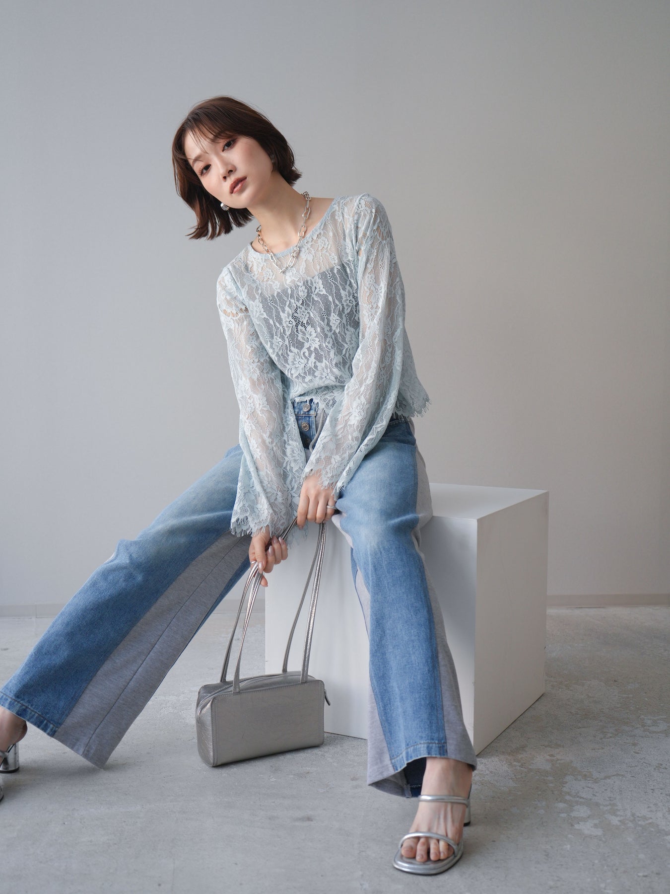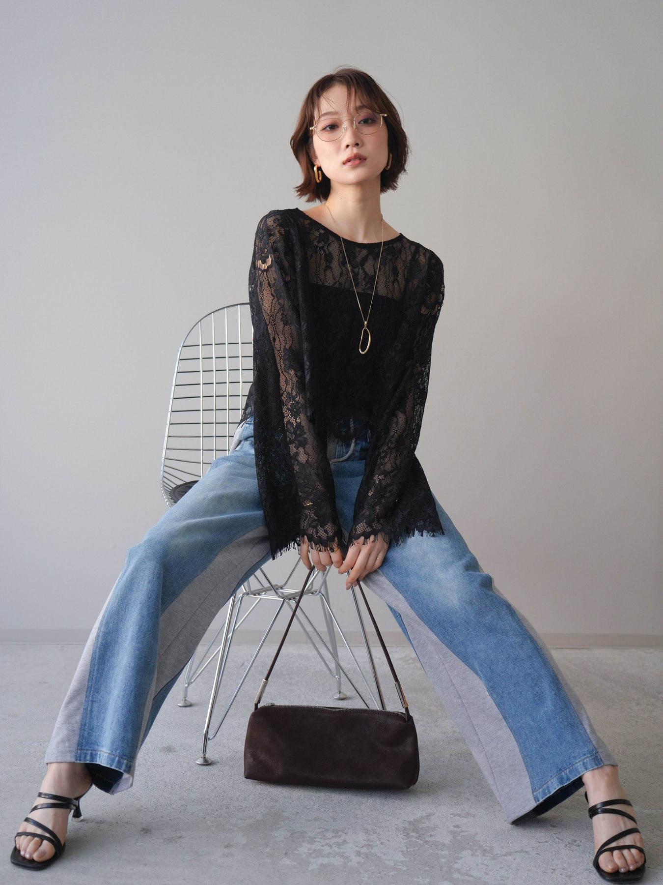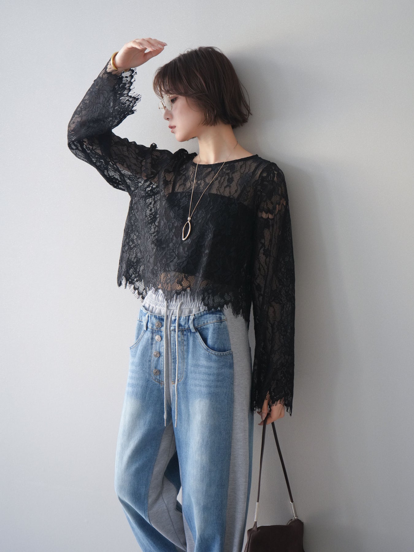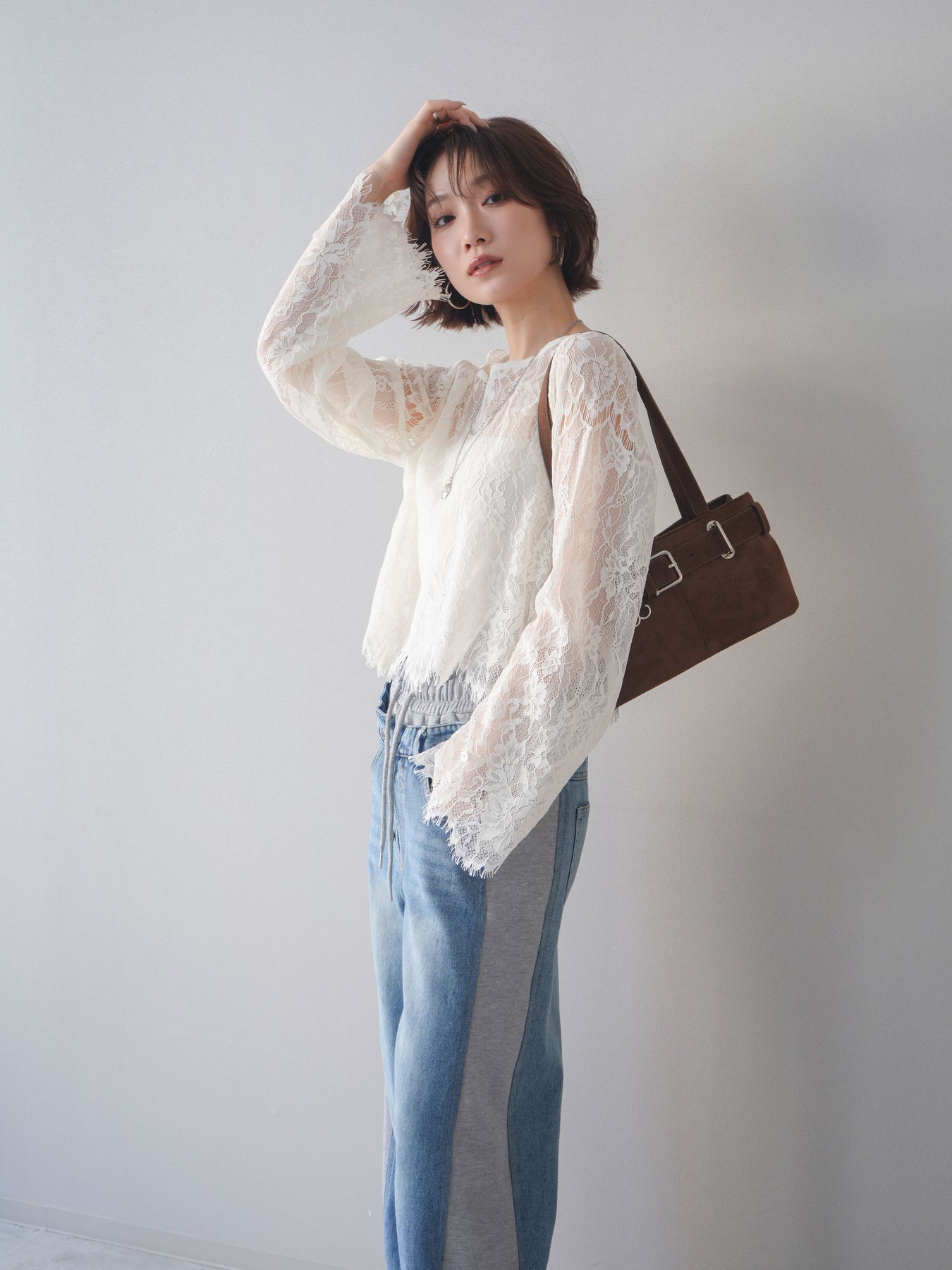 繊細な総レース素材が目を惹くロングスリーブトップス。透け感のある軽やかな風合いで、スタイリングに抜け感をプラスしてくれます。すっきりとしたシルエットでインナー使いにも重宝し、キャミソールやタンクトップを重ねてヘルシーに着こなすのもおすすめ。デニムやスラックス、ジャンパースカートのインナーなど、幅広いコーディネートに取り入れやすい一枚です。 ※ボトムス、キャミソール(インナー)以外の商品は一律でインナーは付属していません
