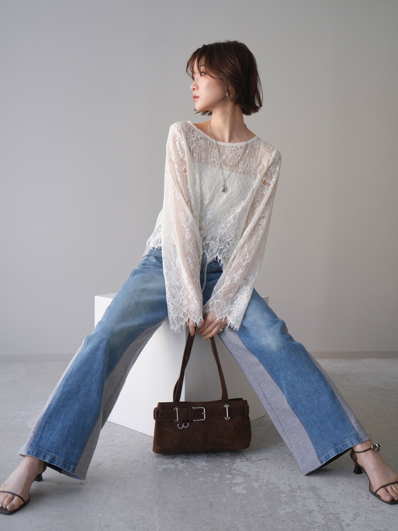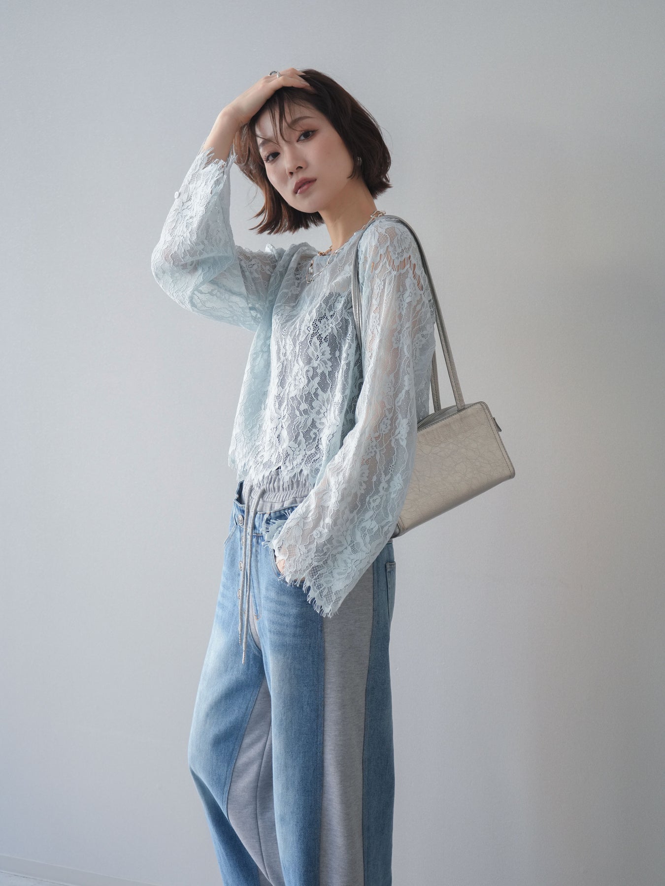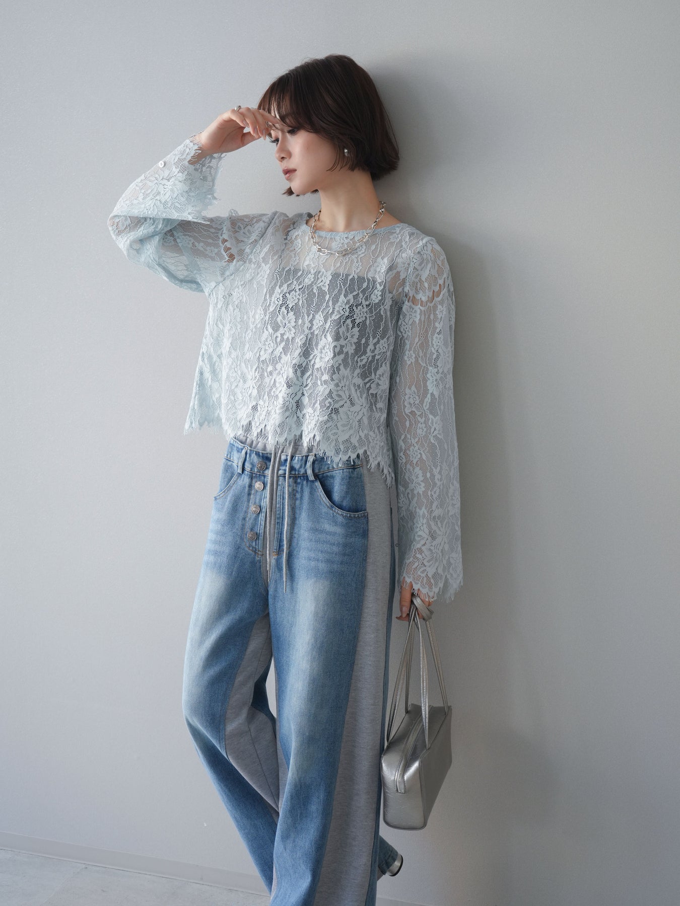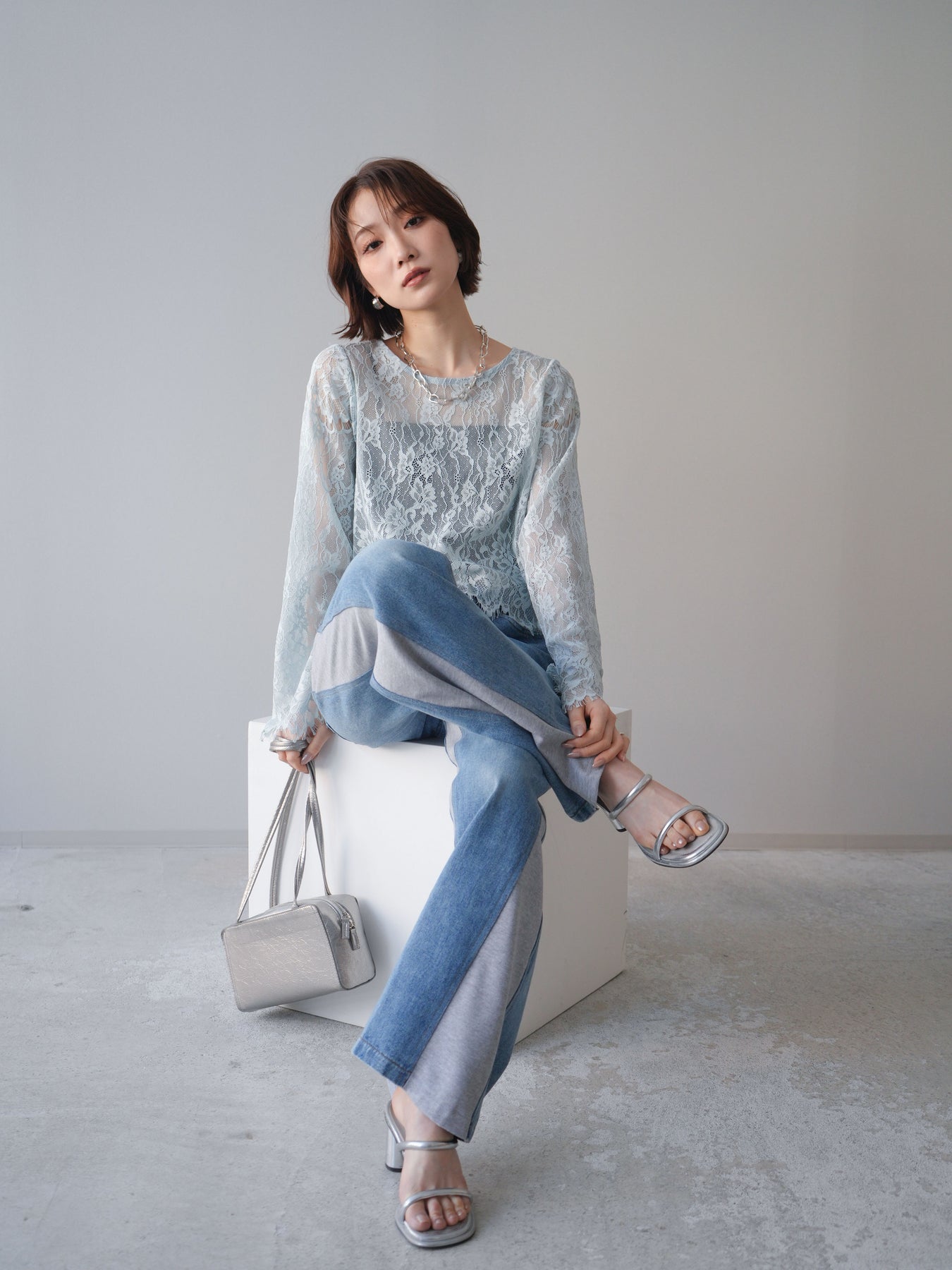 繊細な総レース素材が目を惹くロングスリーブトップス。透け感のある軽やかな風合いで、スタイリングに抜け感をプラスしてくれます。すっきりとしたシルエットでインナー使いにも重宝し、キャミソールやタンクトップを重ねてヘルシーに着こなすのもおすすめ。デニムやスラックス、ジャンパースカートのインナーなど、幅広いコーディネートに取り入れやすい一枚です。 ※ボトムス、キャミソール(インナー)以外の商品は一律でインナーは付属していません