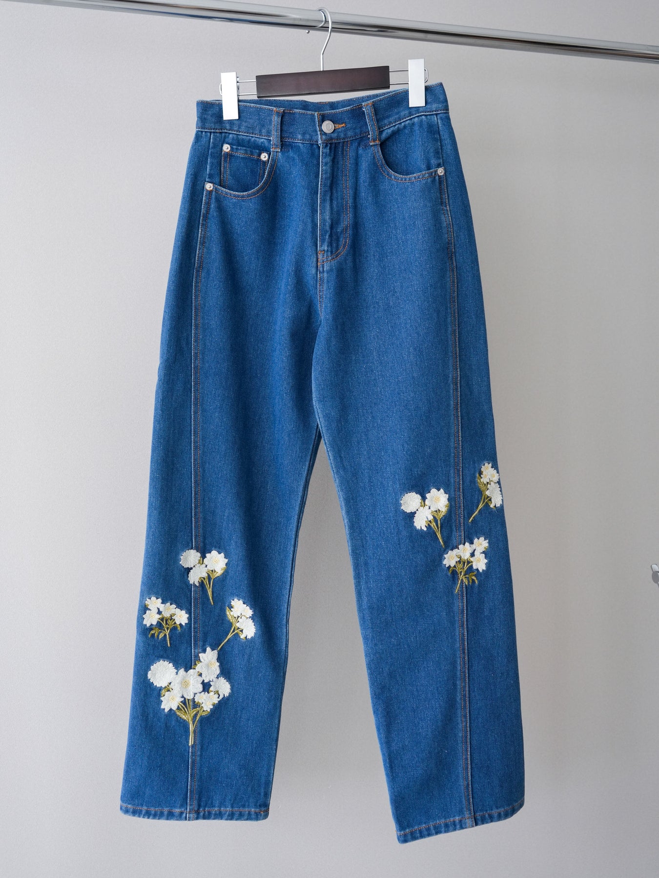 [予約]フラワー刺繍ストレートデニム