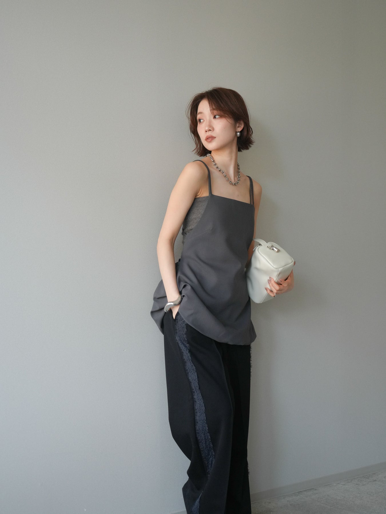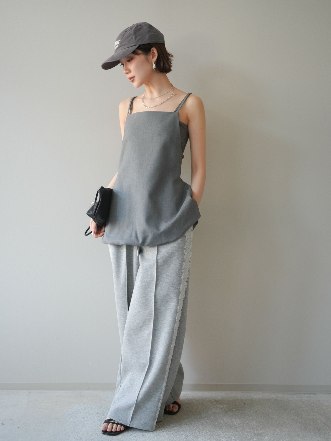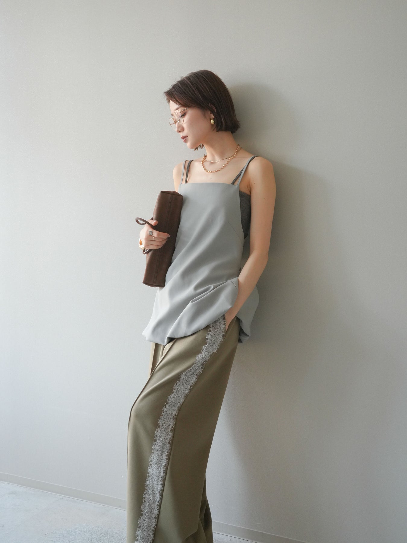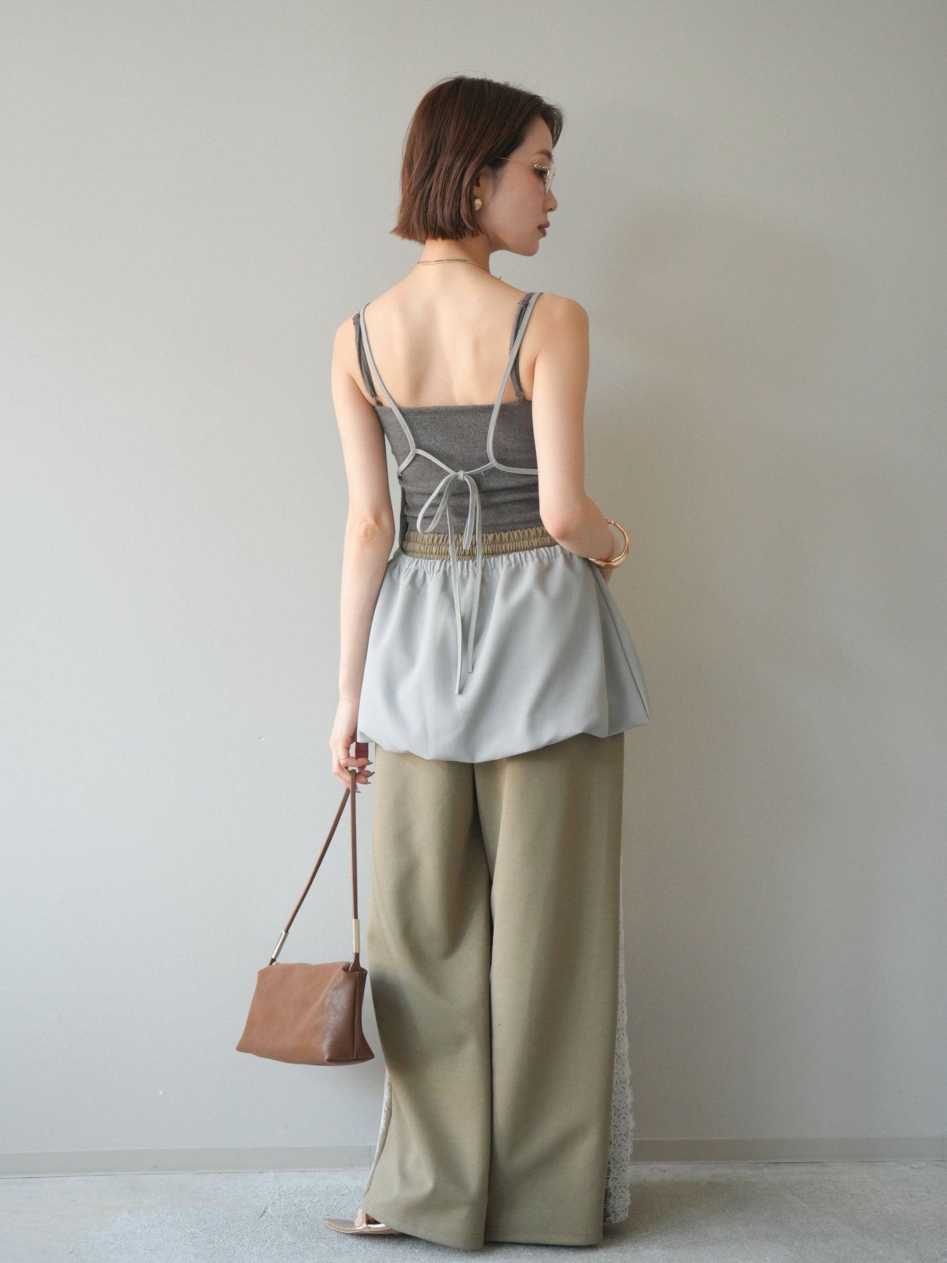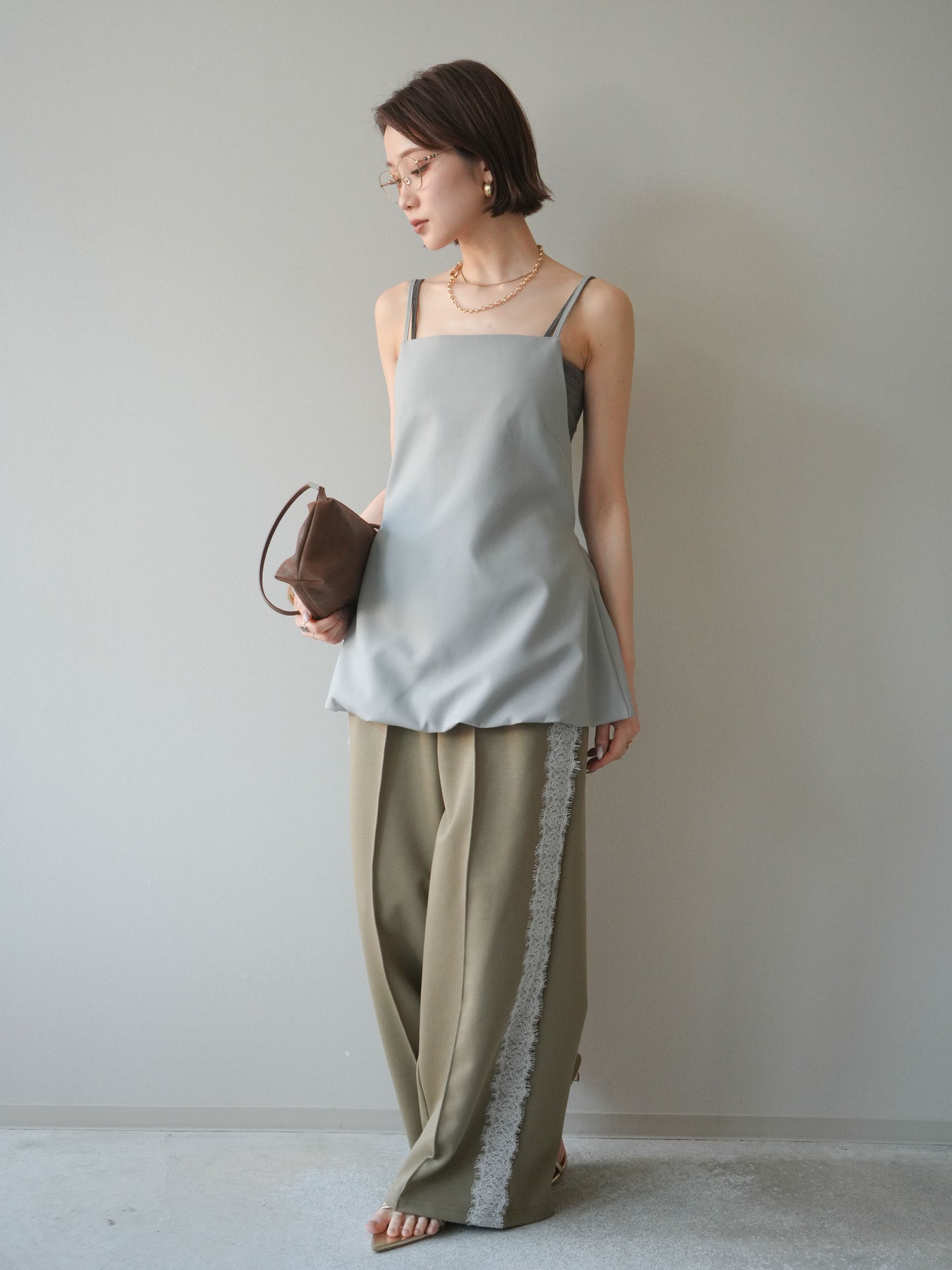[SET]バックリボンバルーンチュニックキャミ+サイドレースポンチワイドパンツ(2set)