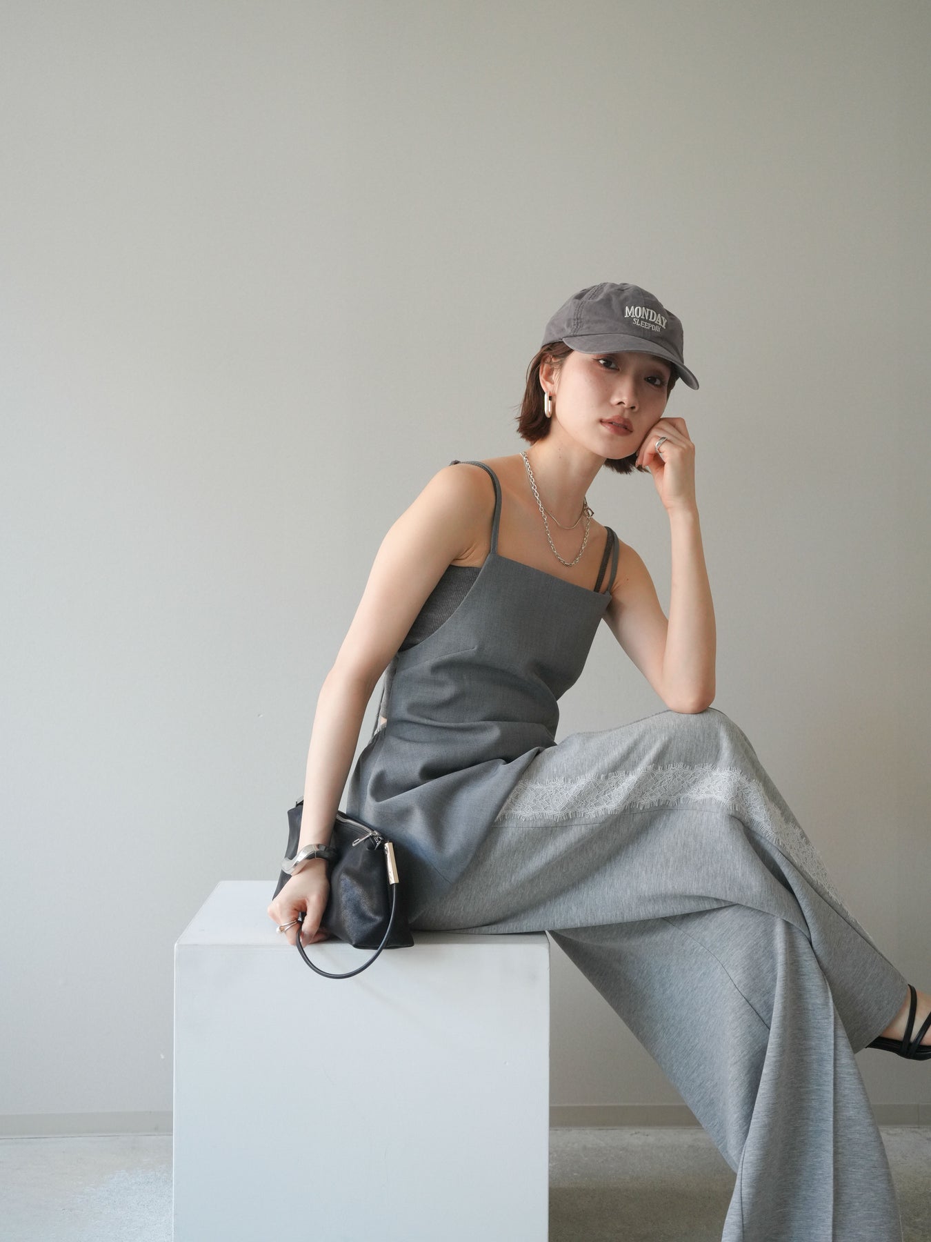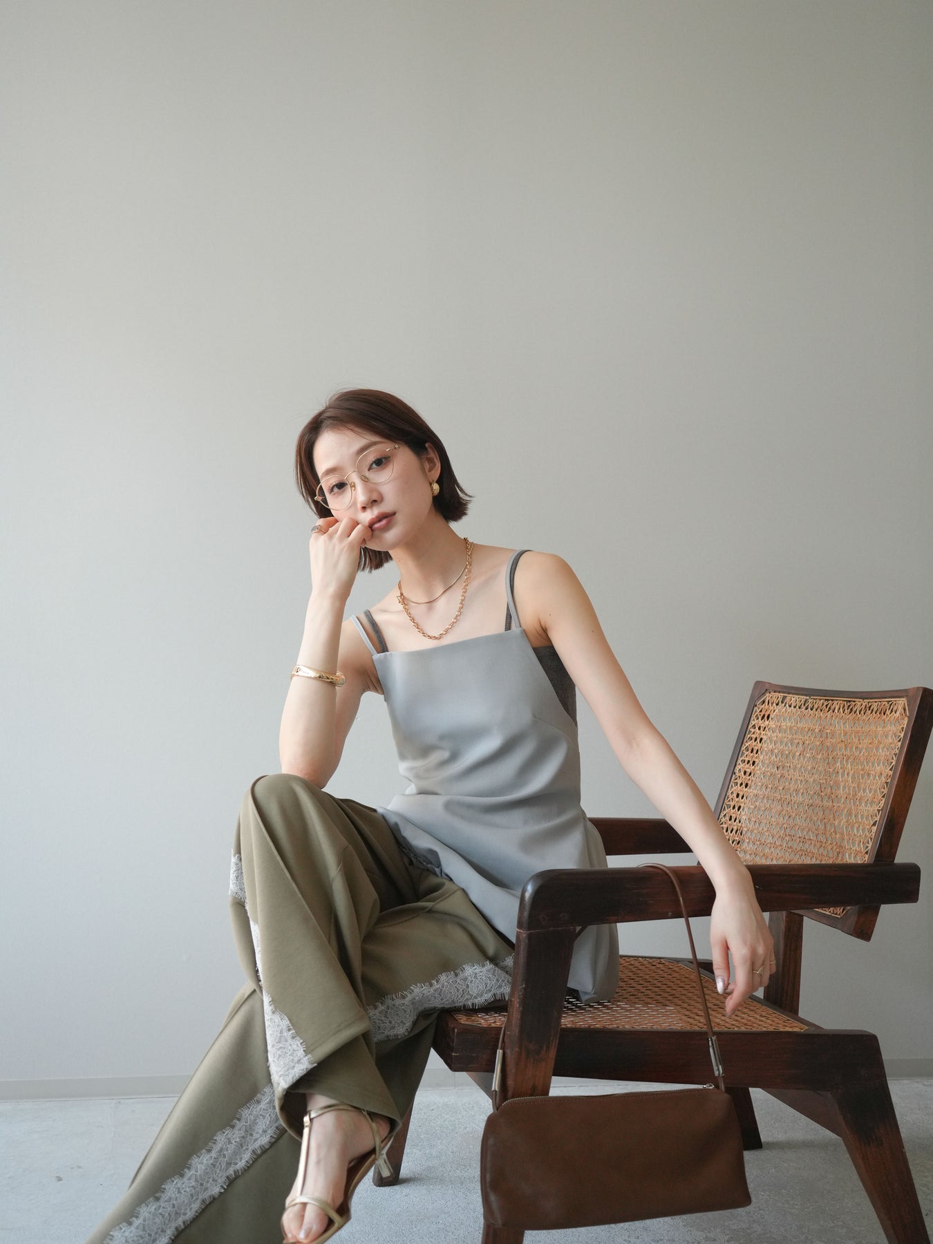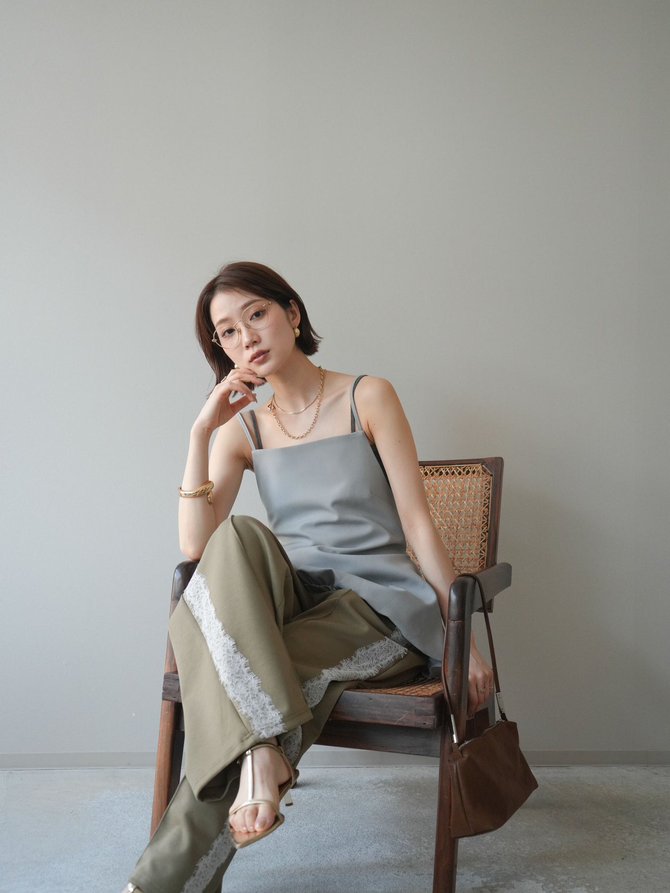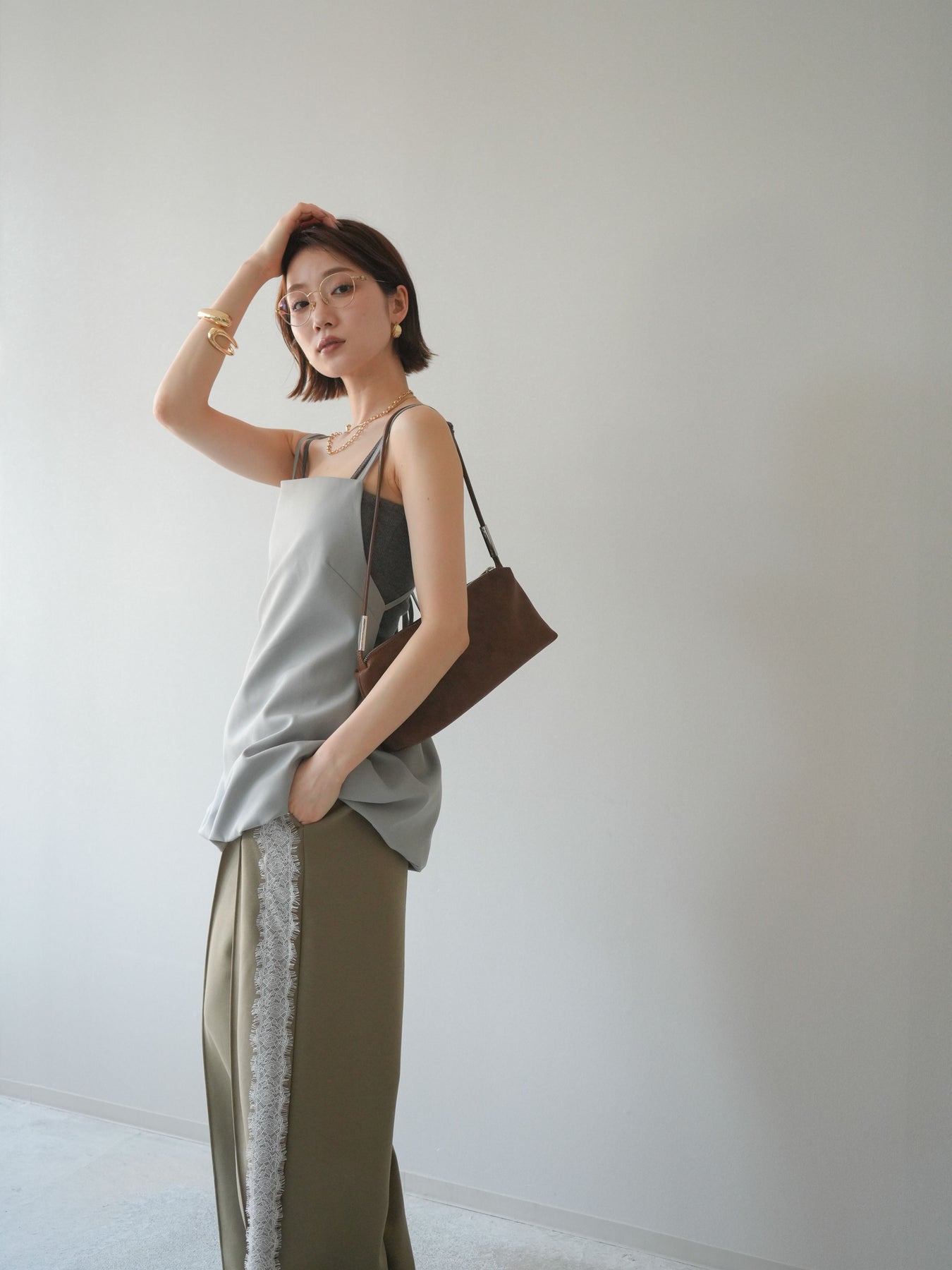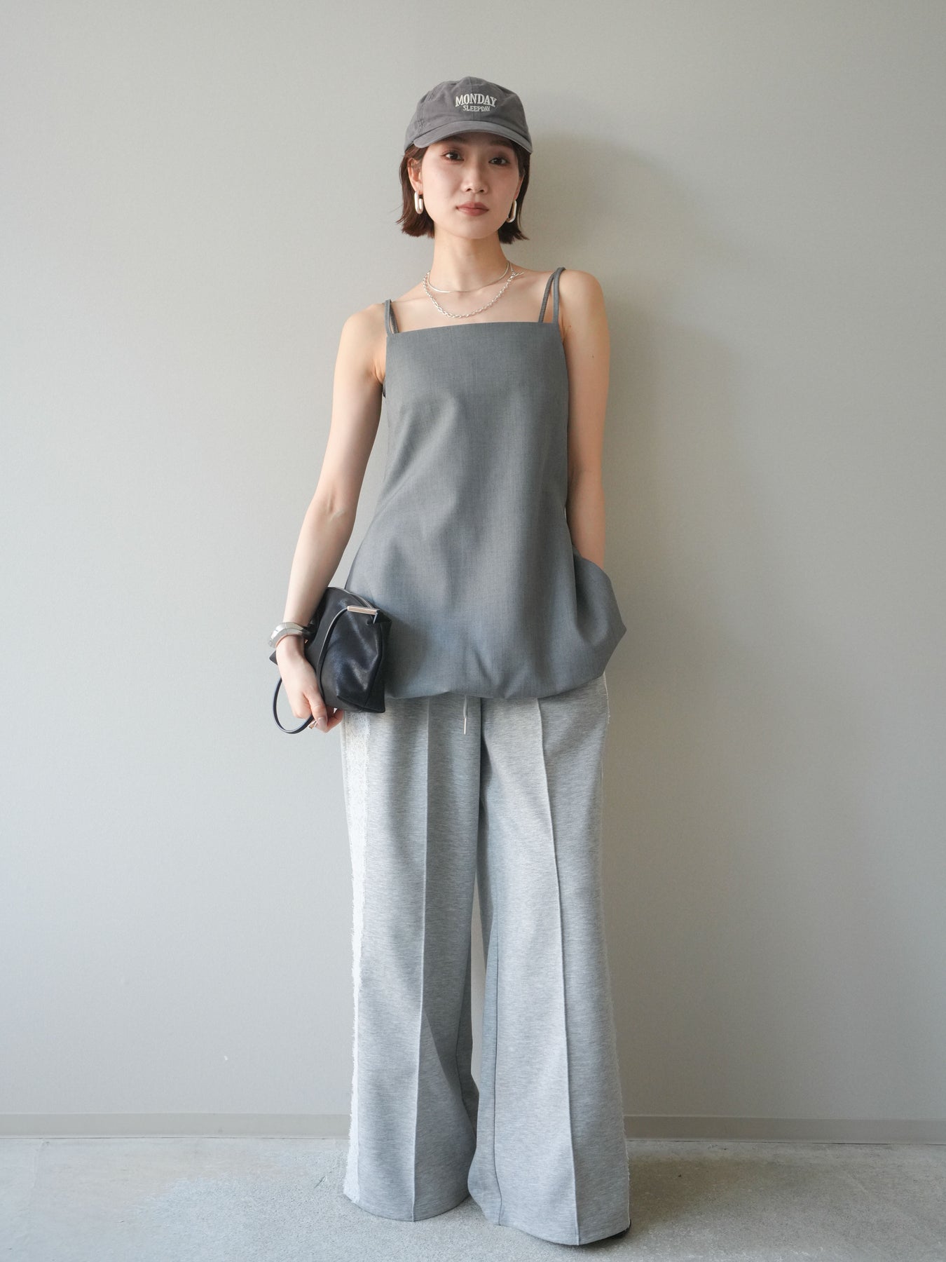[SET]バックリボンバルーンチュニックキャミ+サイドレースポンチワイドパンツ(2set)
