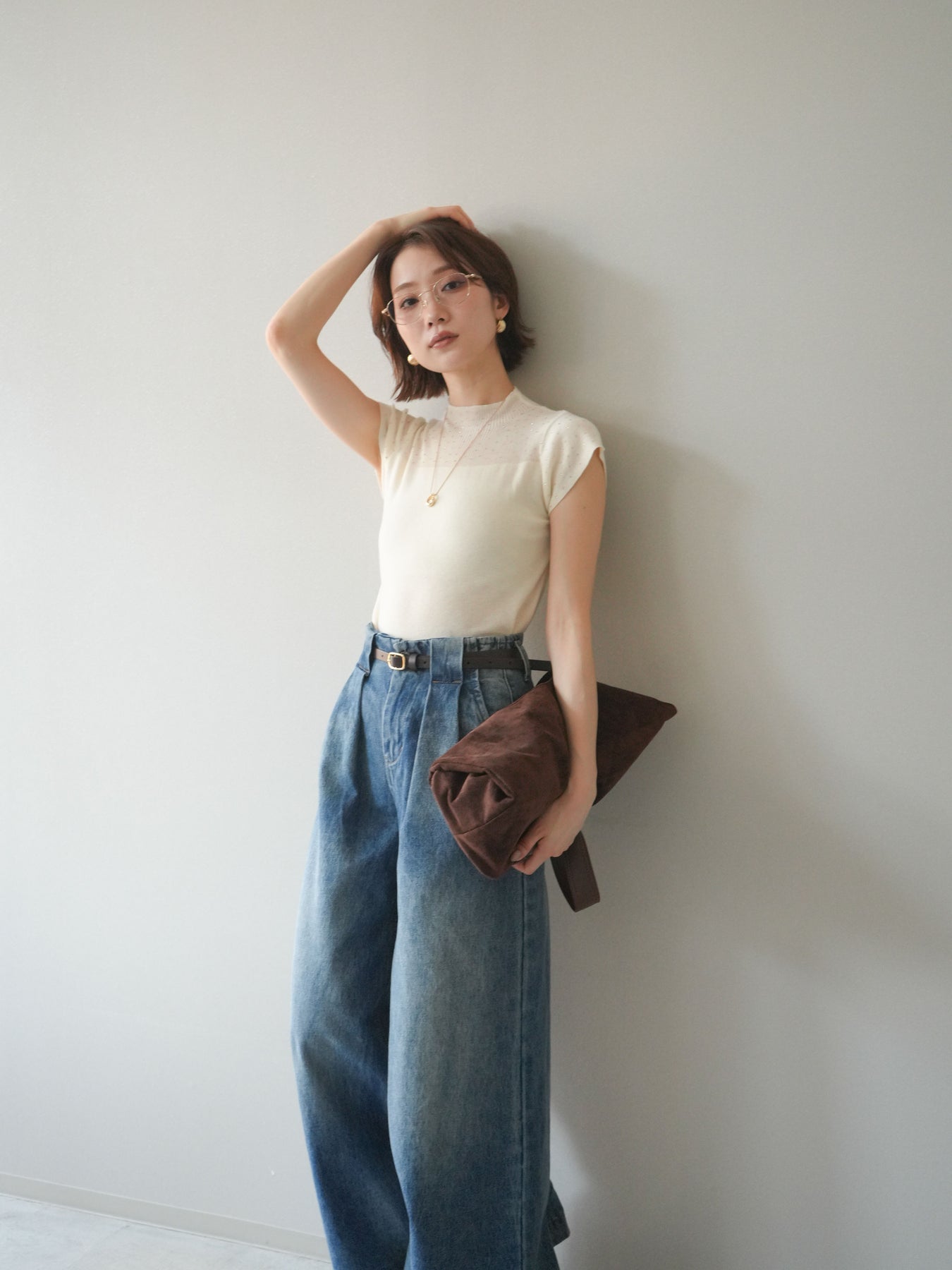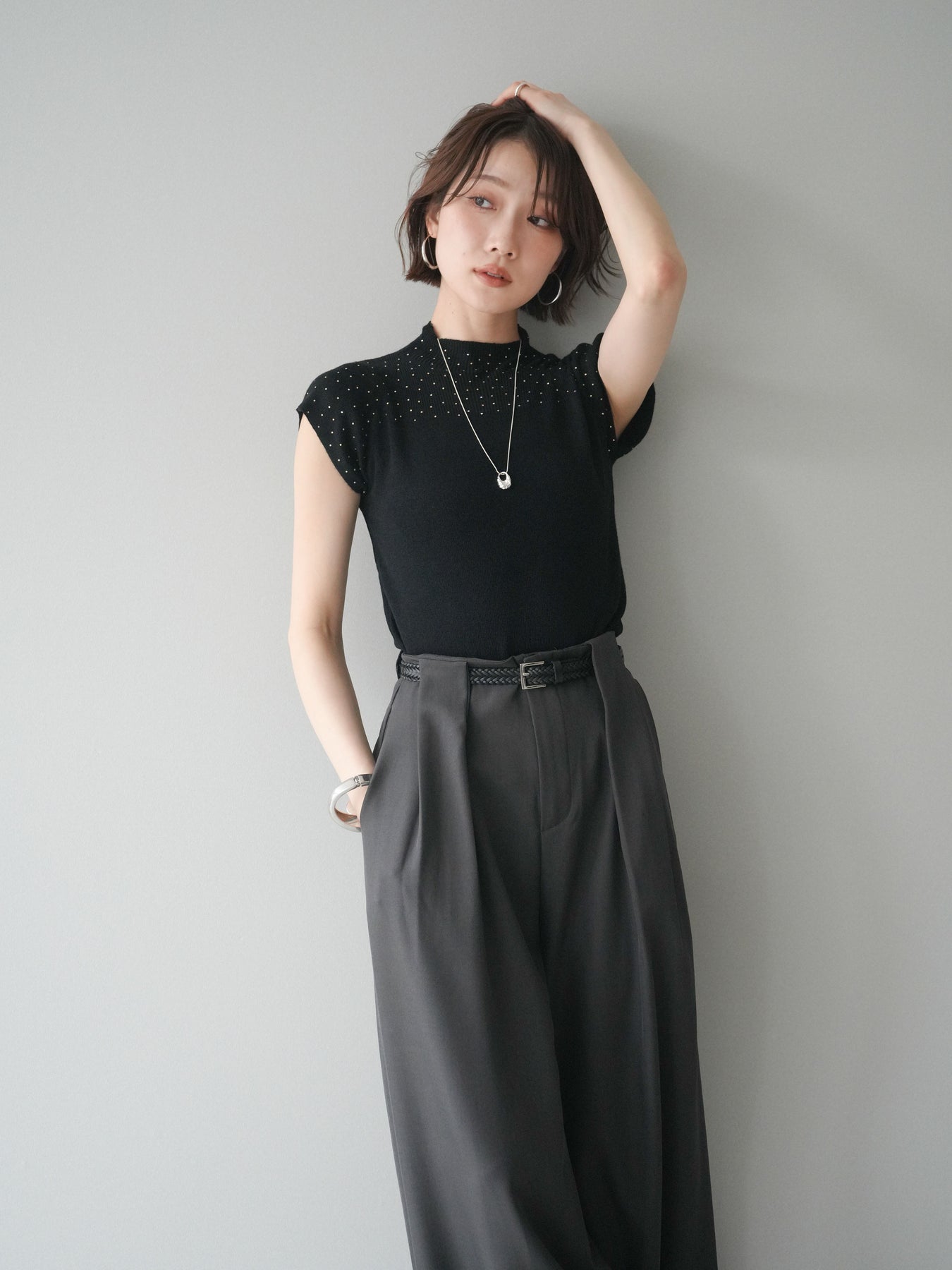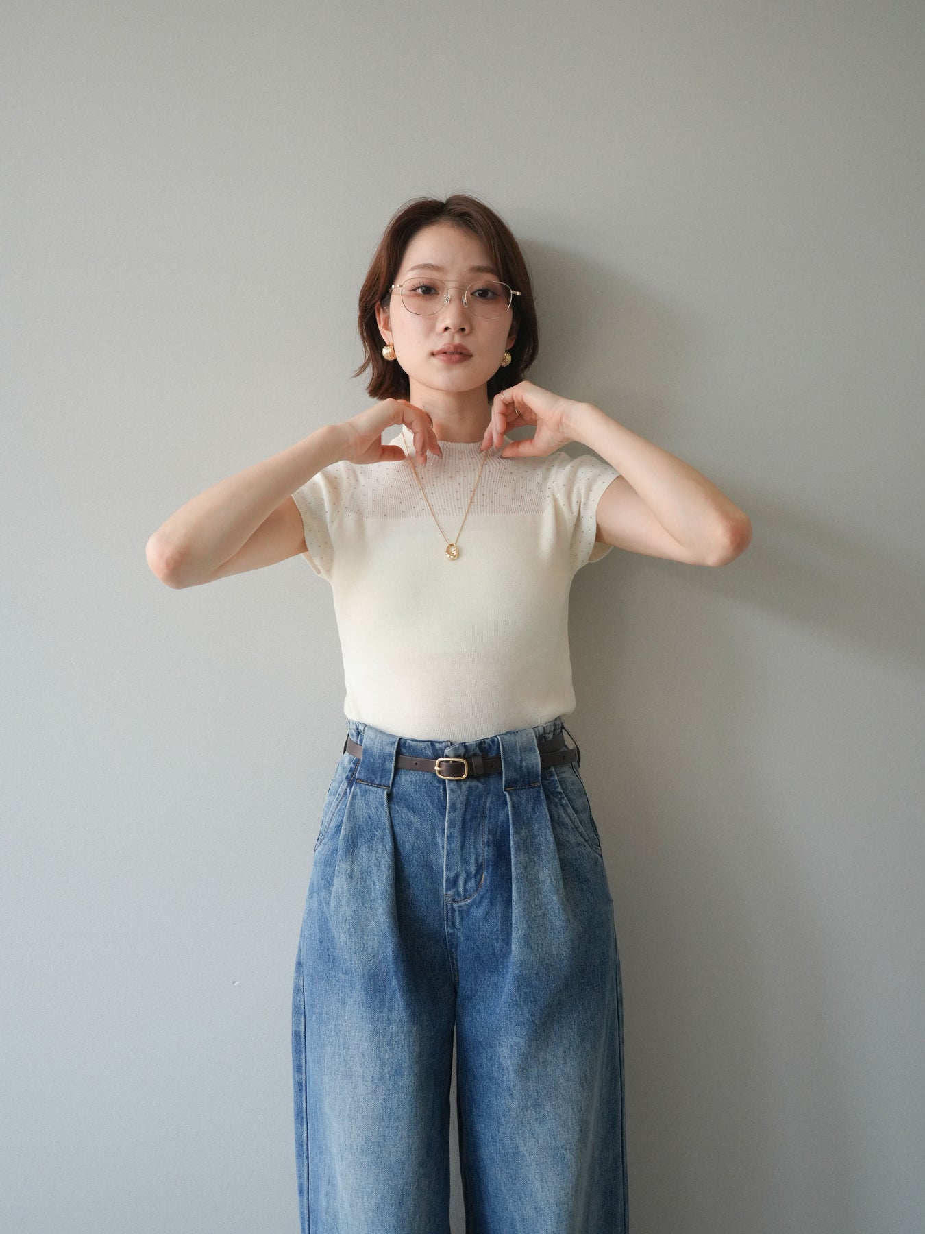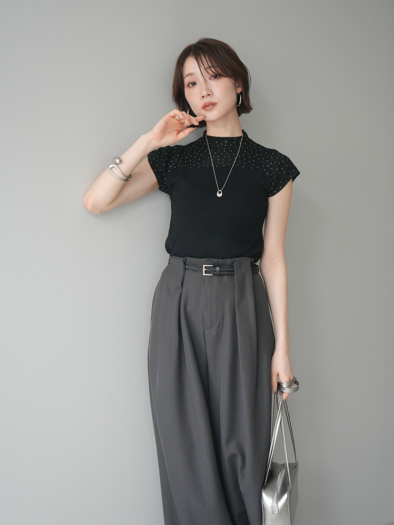[SET]ビジューシアーフレンチニット+選べるアクセセット(2set)