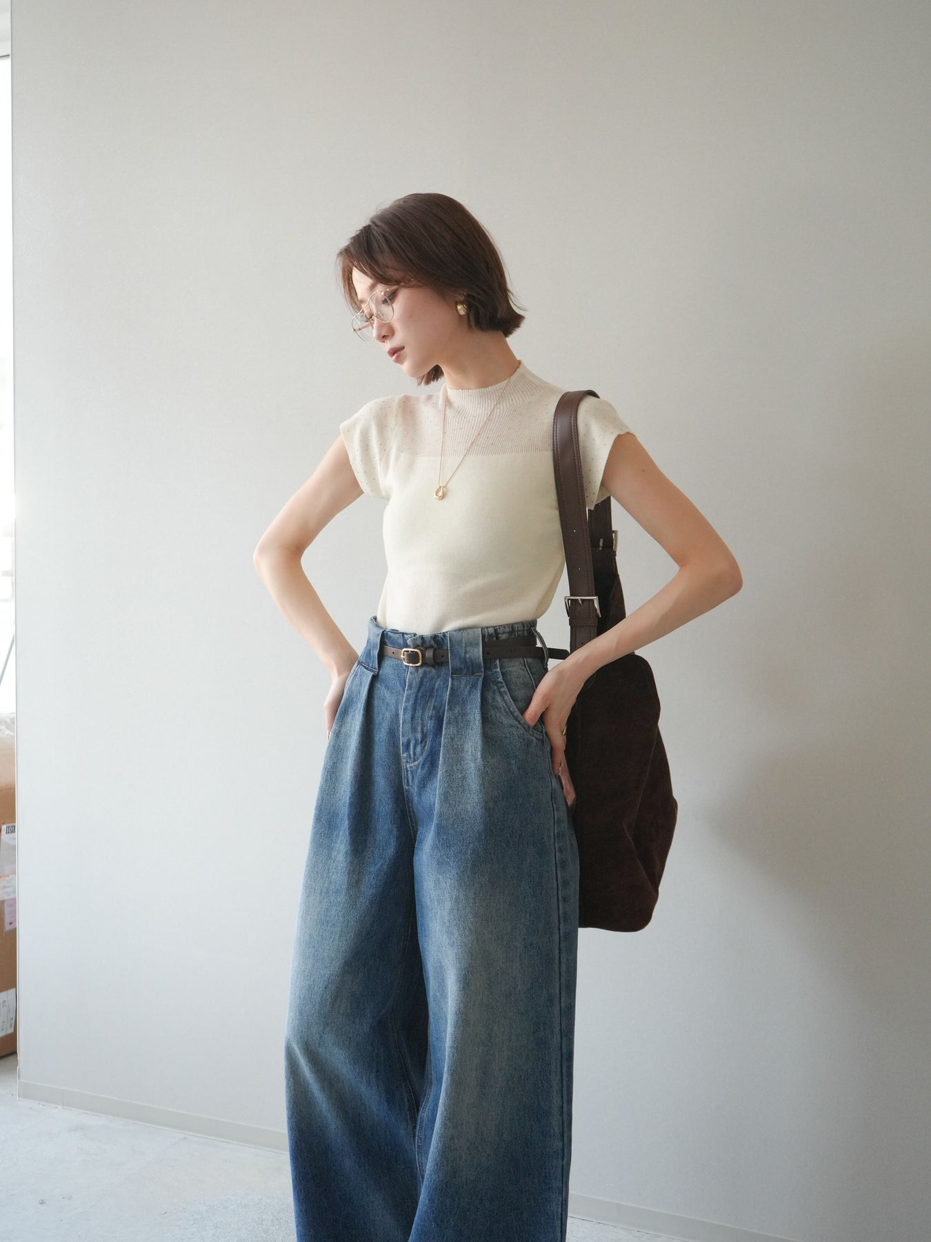 ・お手入れ方法:水温30℃以下手洗いでのお洗濯をお薦めします。素材の特性上、洗濯の際に色落ち・縮みが生じる恐れがありますので単独で・短時間でのお洗濯をお薦めします。裏返してネットに入れ手洗いコースで洗濯、洗濯後は形を整えてから干してください。※タンブラー乾燥は控えてください。濡れたままの状態で擦れると、色落ち色移りすることがあります。つけ置き洗いや雨や汗で濡れたまま放置は避け、速やかに処理してください。着用中の摩擦や汗、水濡れ、濃淡差があるものとの重ね着にご注意ください。また、素材の特性上伸びやすい為ハンガーの使用はお控えいただき畳んで保管ください。