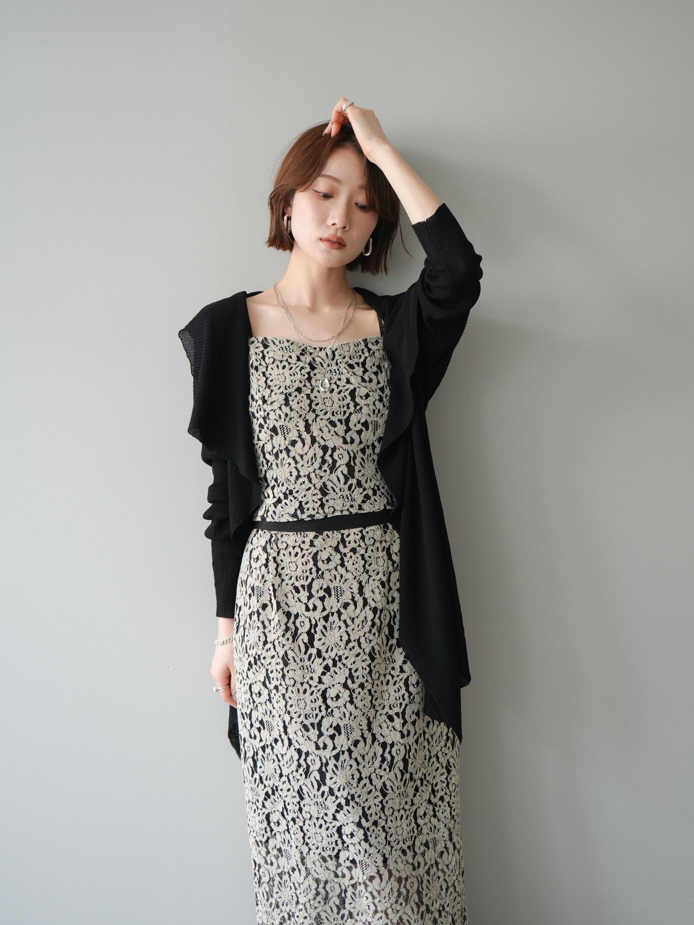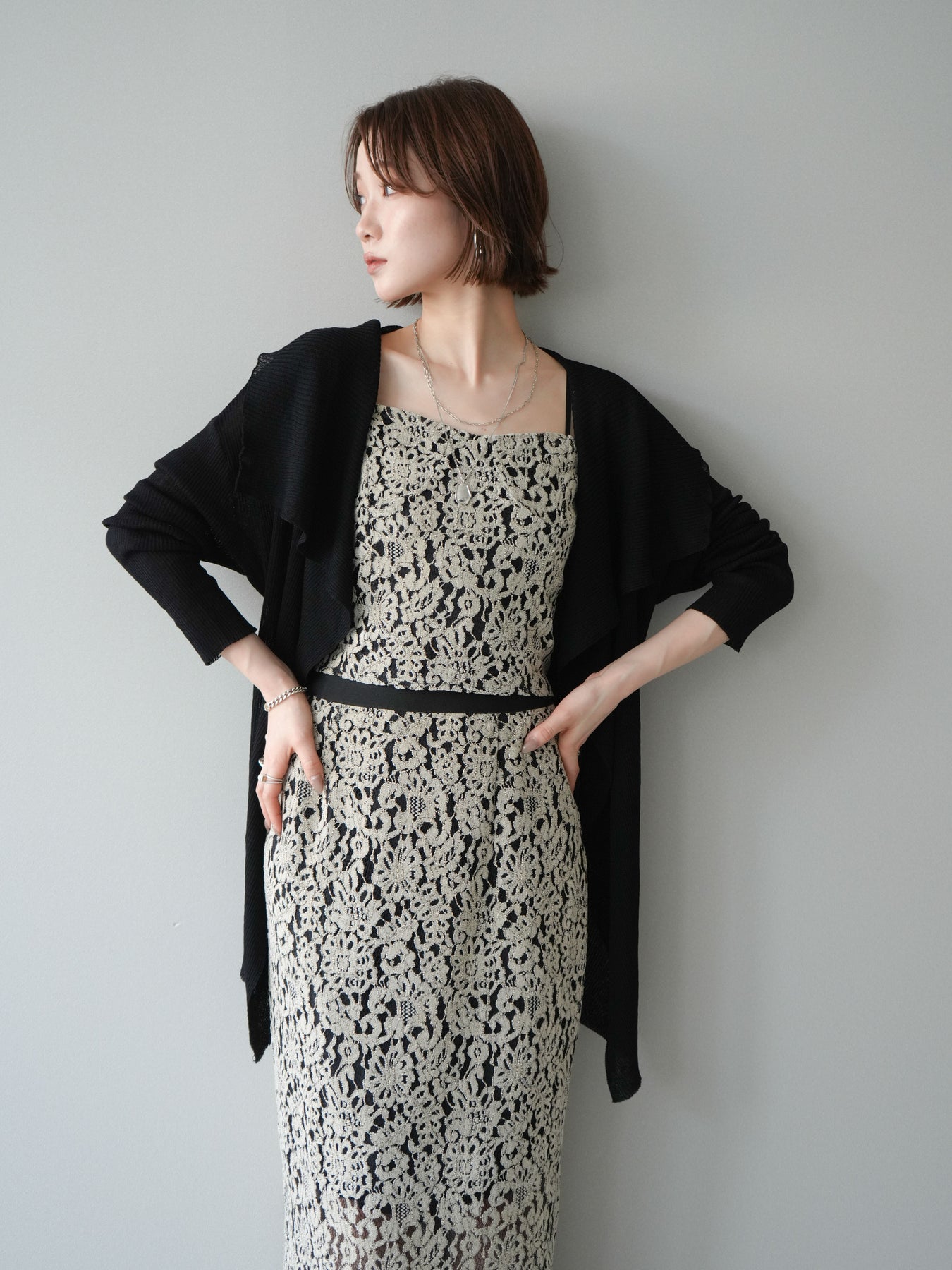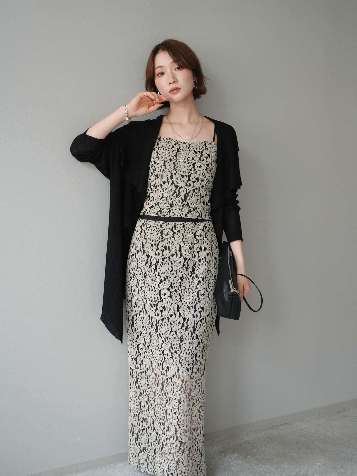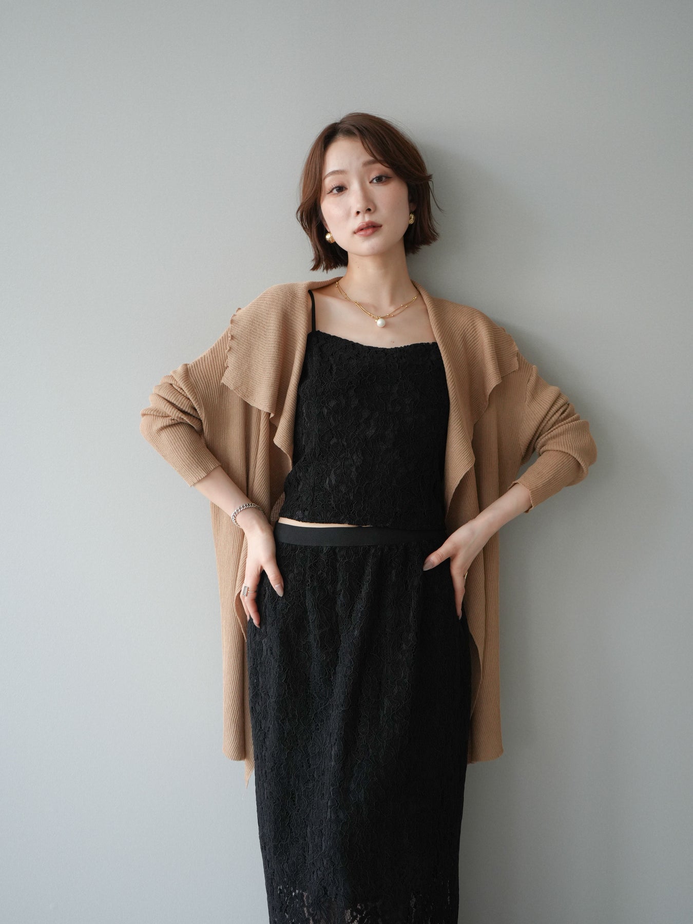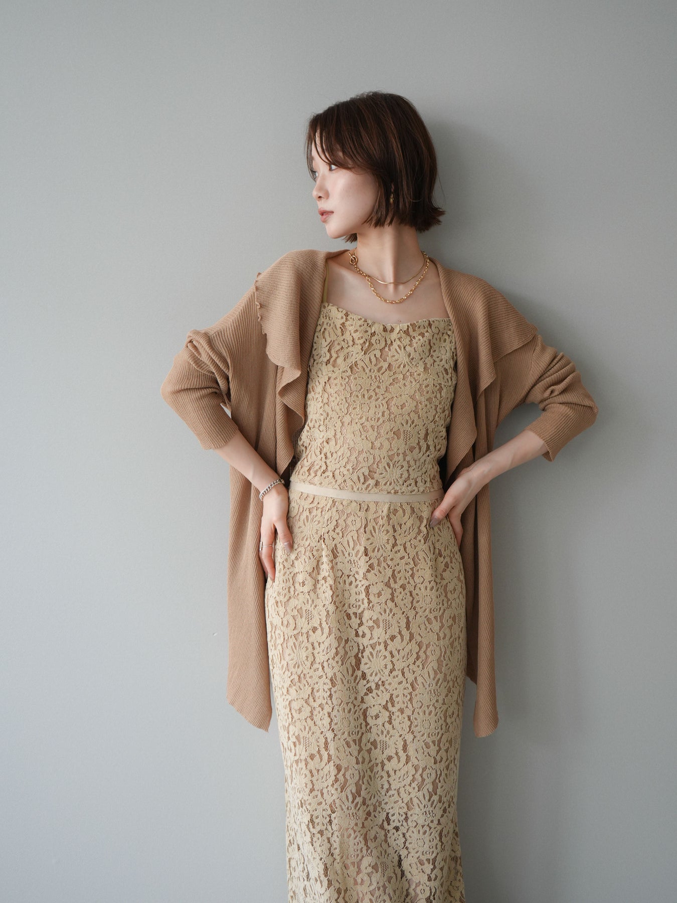 [SET]ドレープリブニットガウン+フルレースキャミ&IラインスカートSET UP(2set)