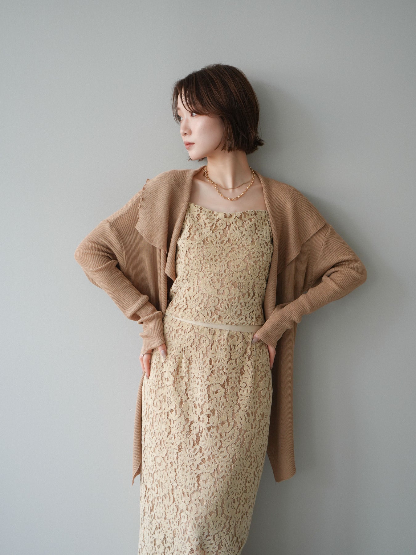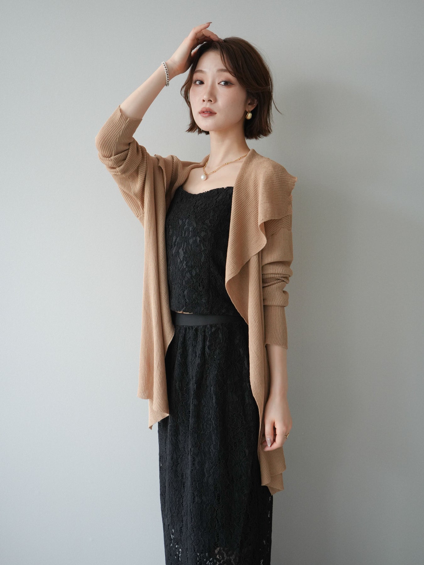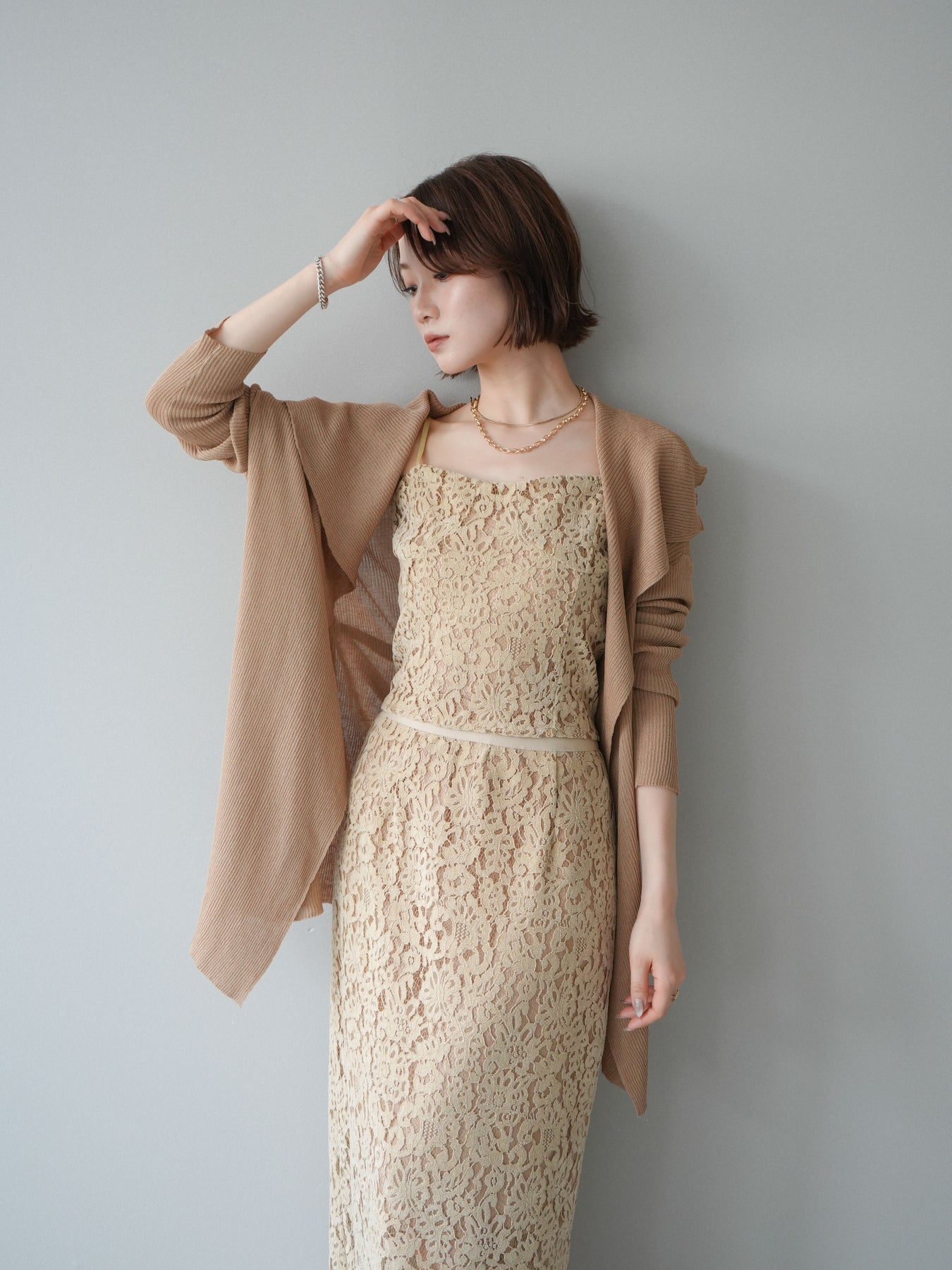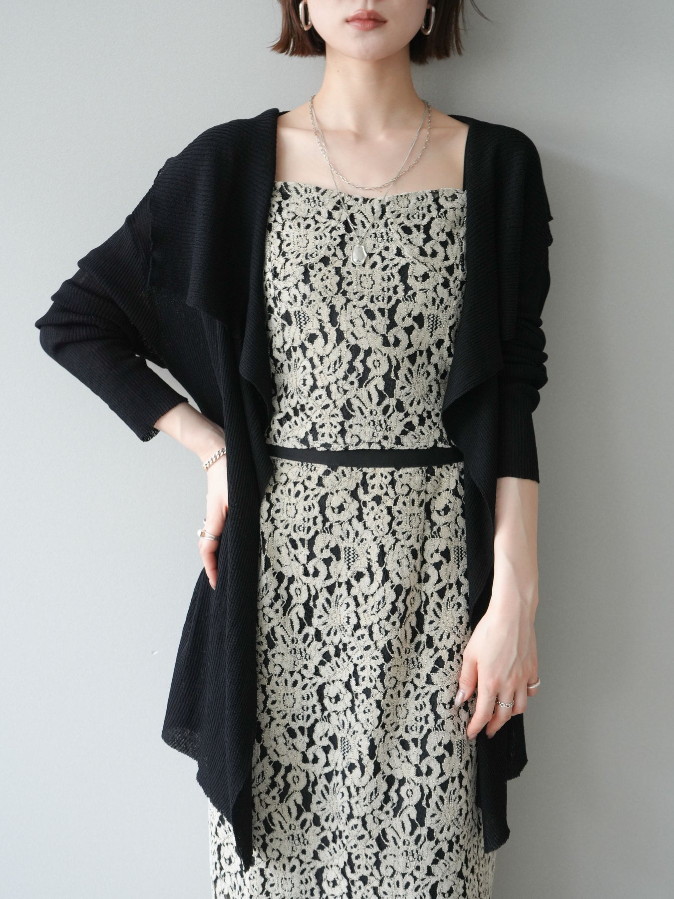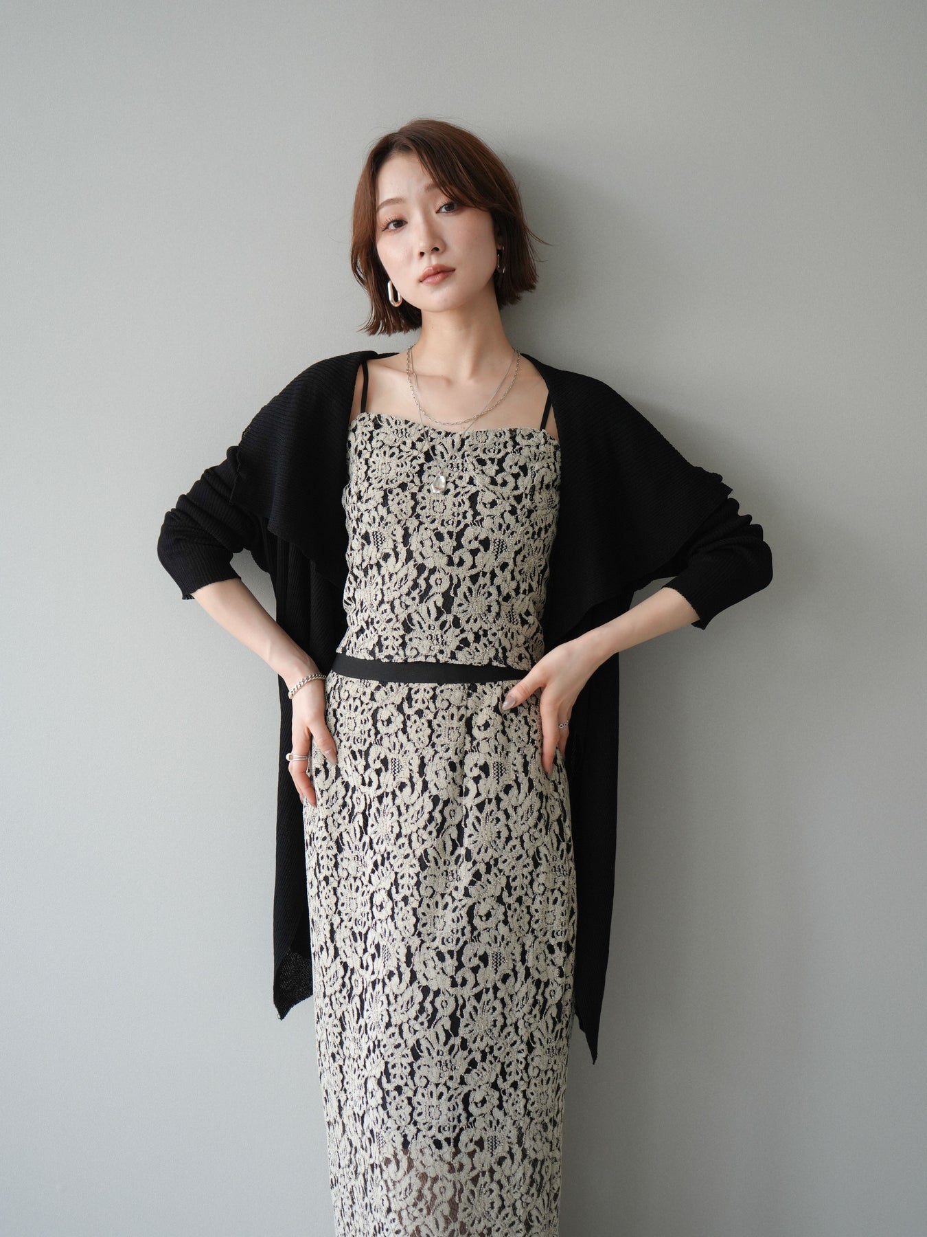 [SET]ドレープリブニットガウン+フルレースキャミ&IラインスカートSET UP(2set)
