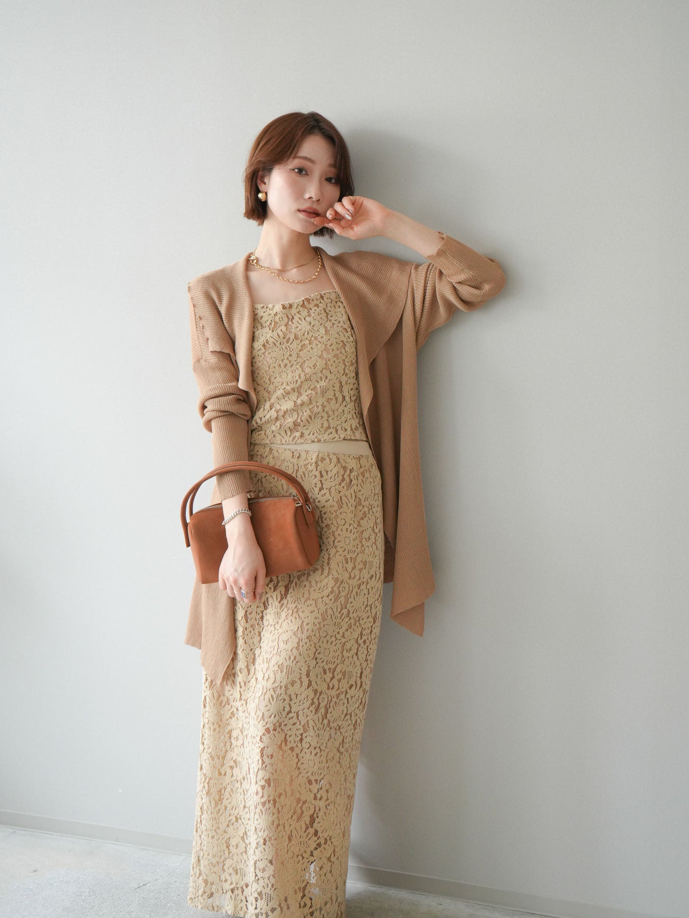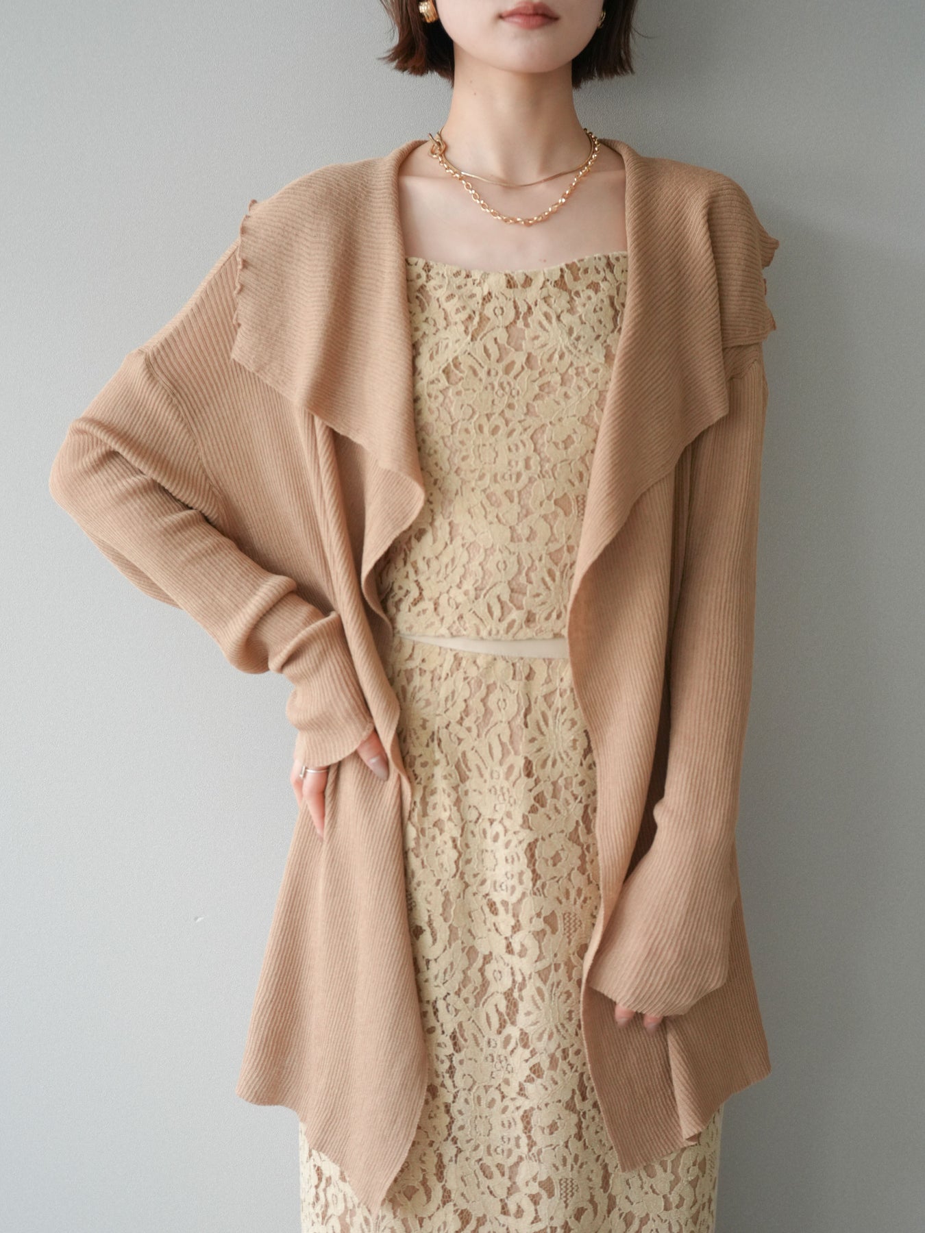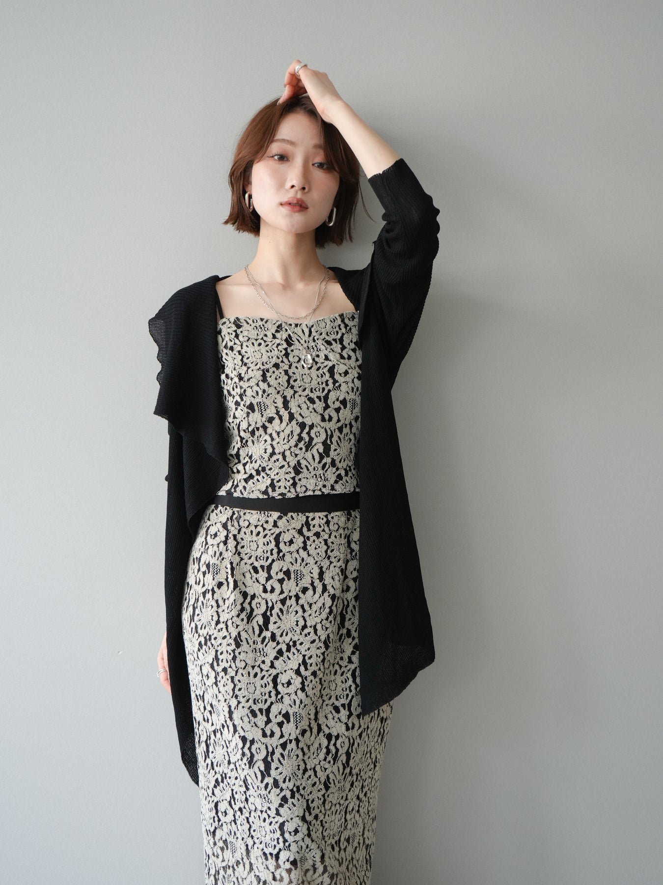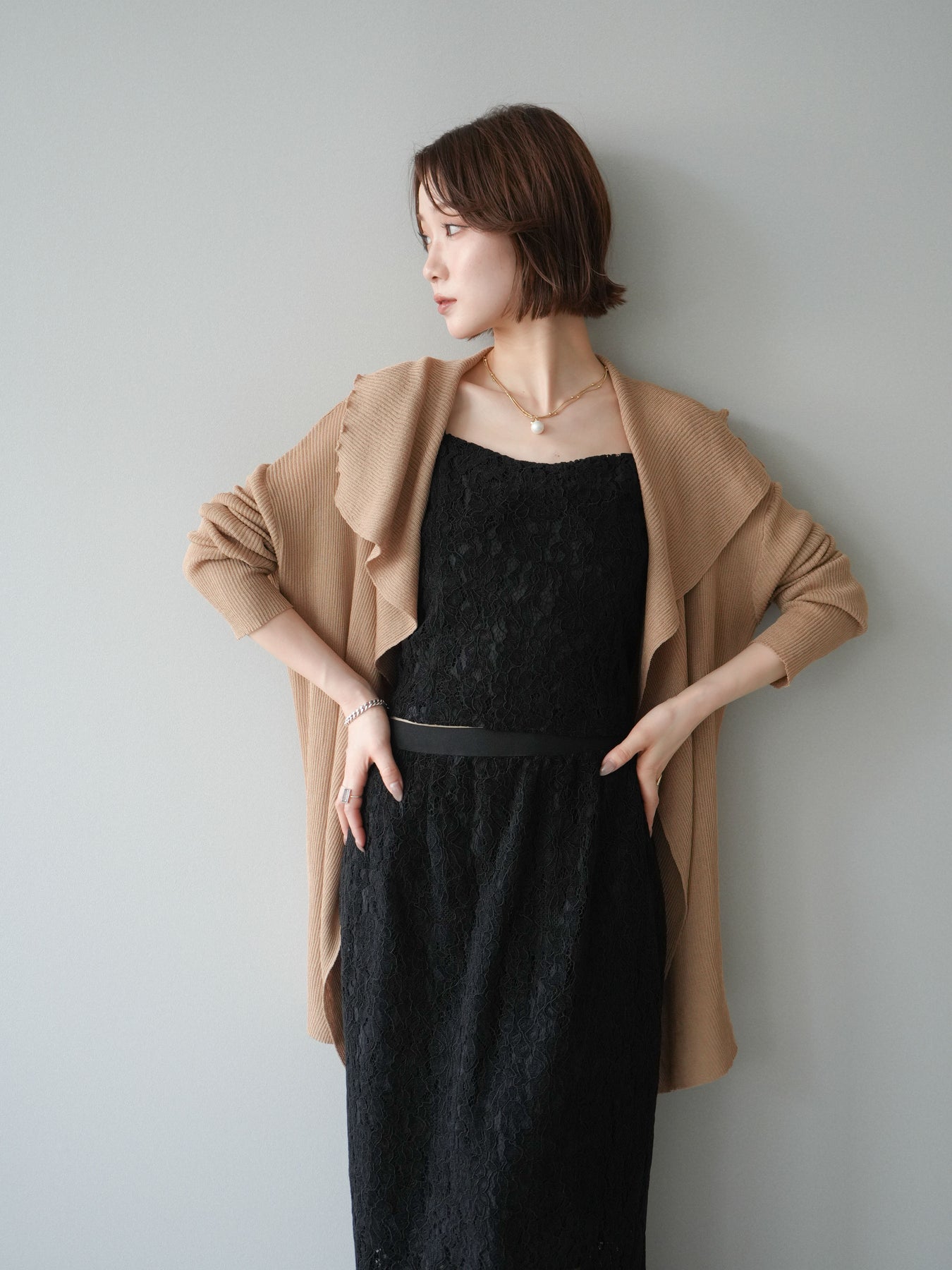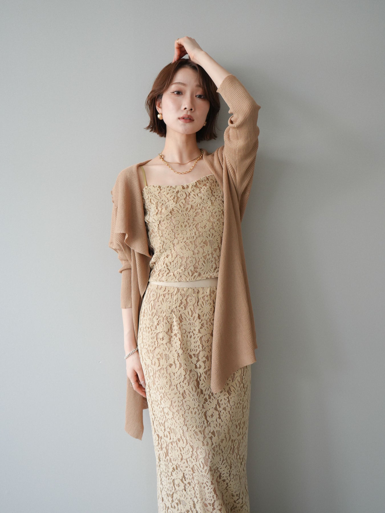 [SET]ドレープリブニットガウン+フルレースキャミ&IラインスカートSET UP(2set)