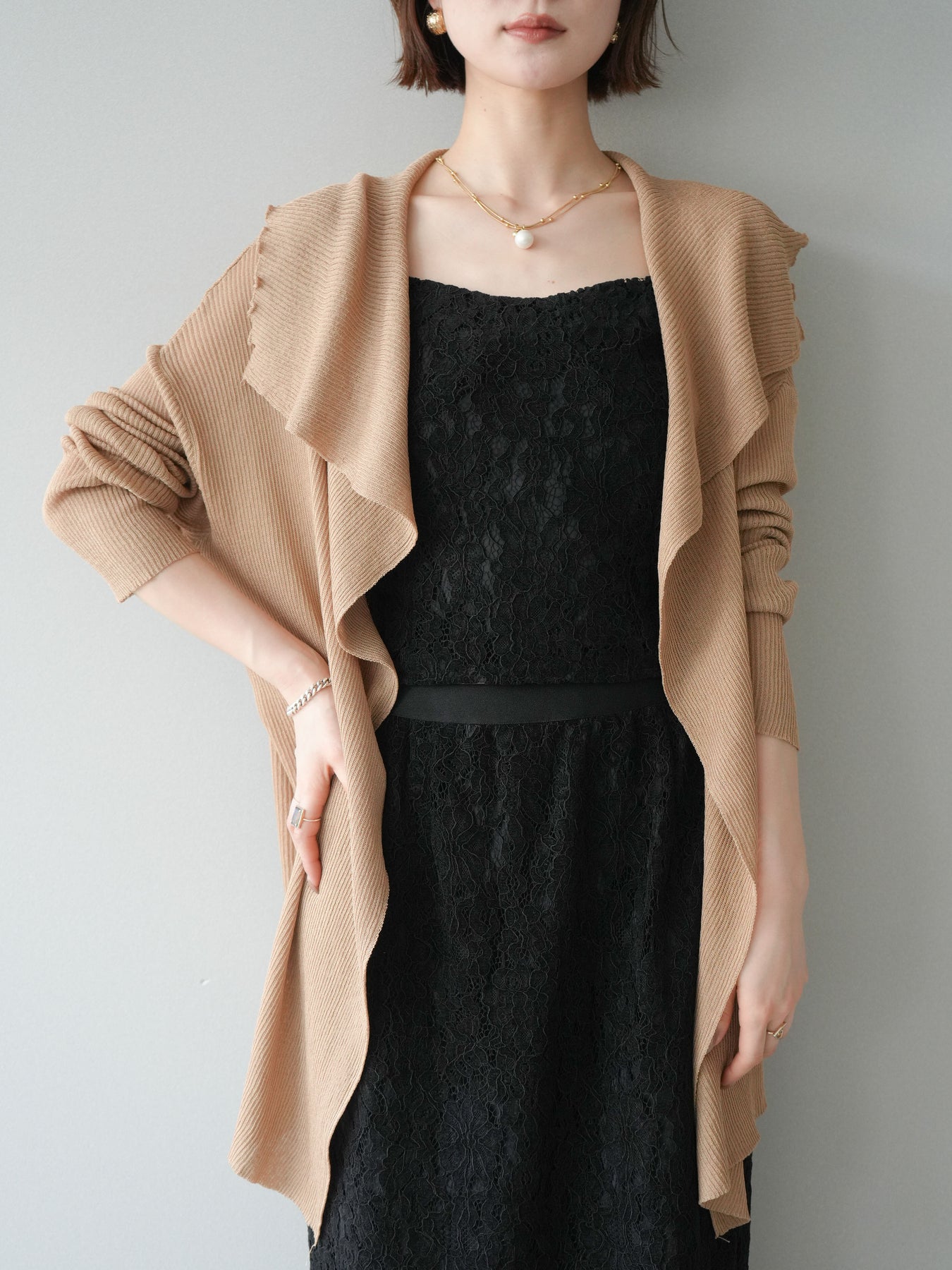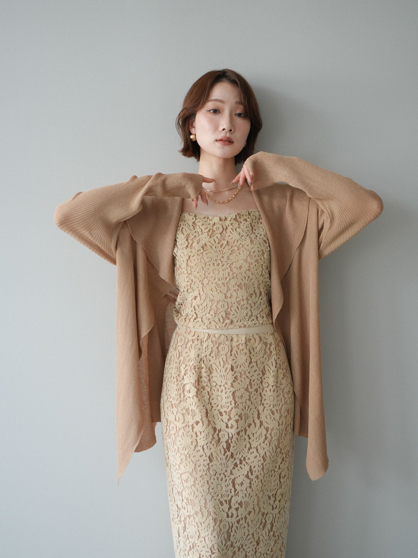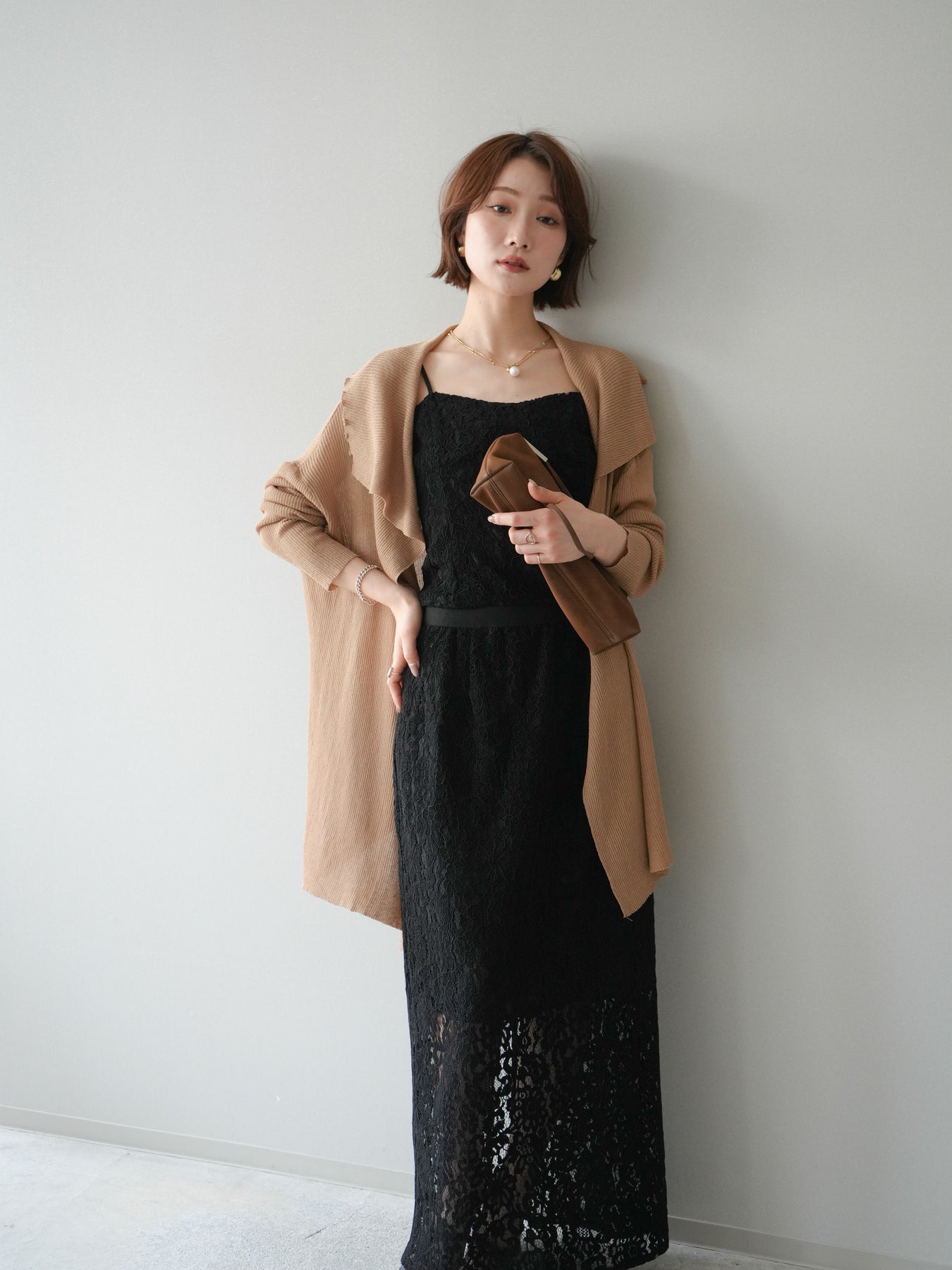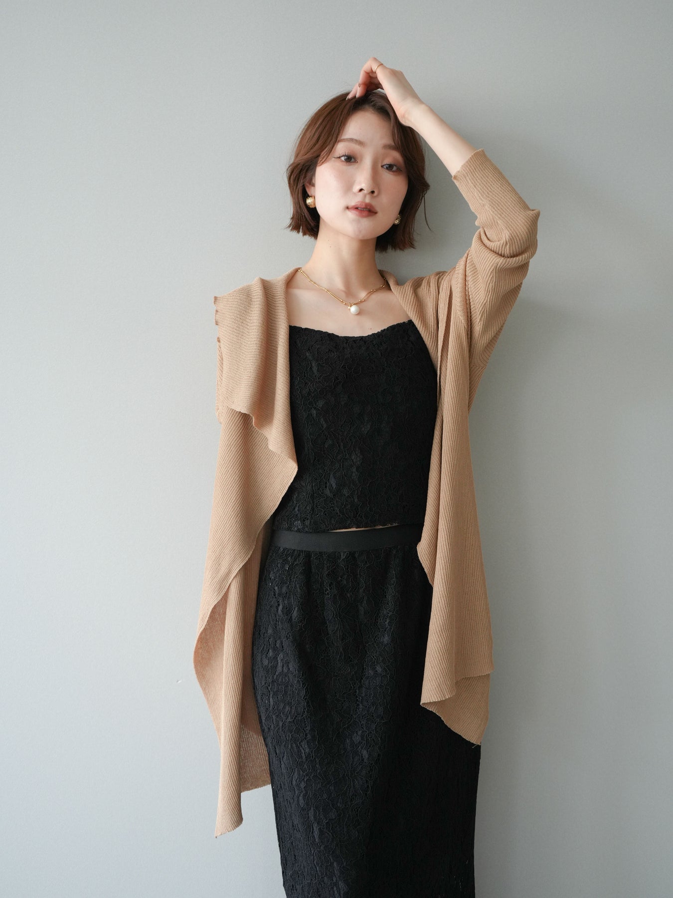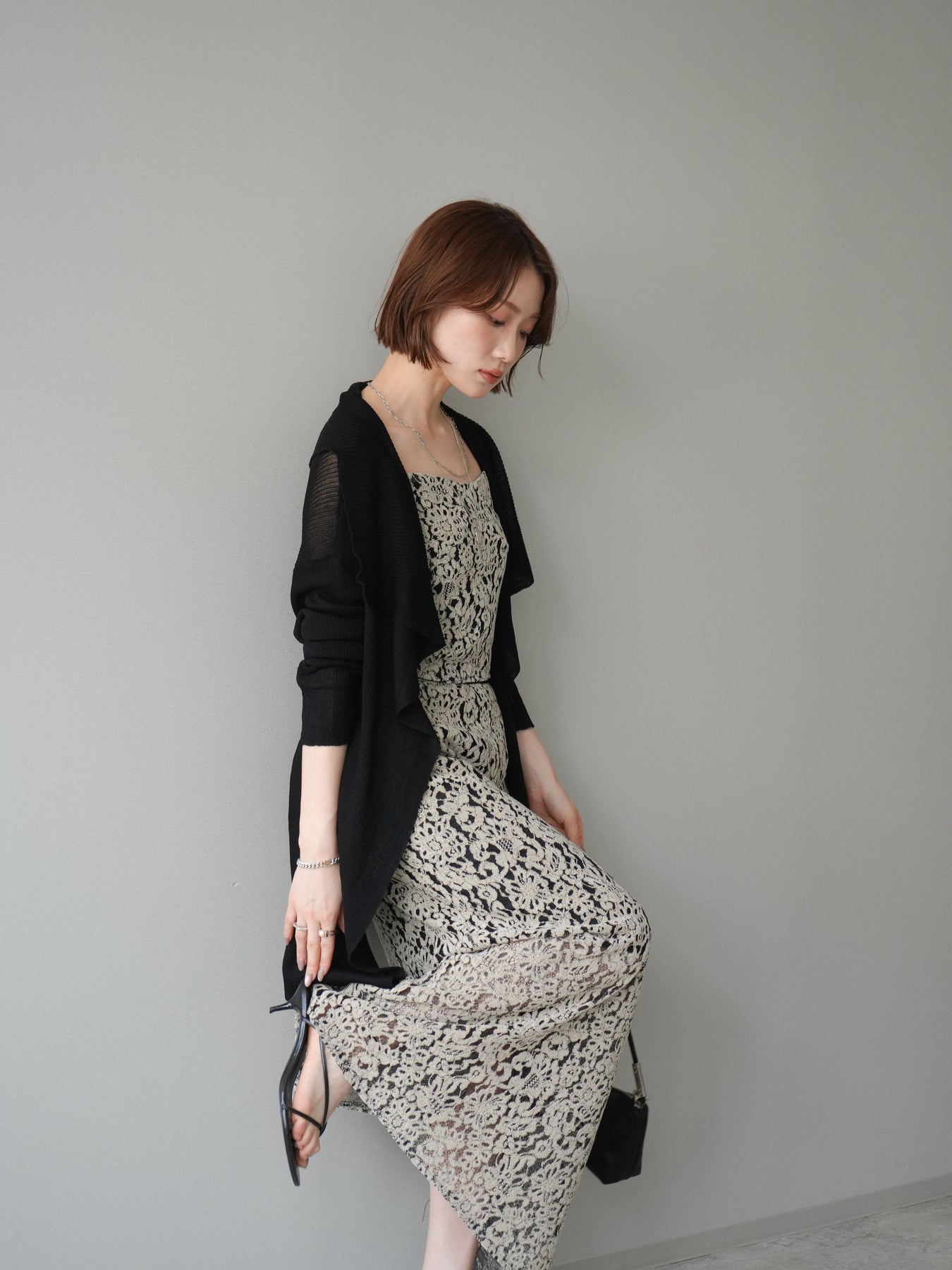 [SET]ドレープリブニットガウン+フルレースキャミ&IラインスカートSET UP(2set)