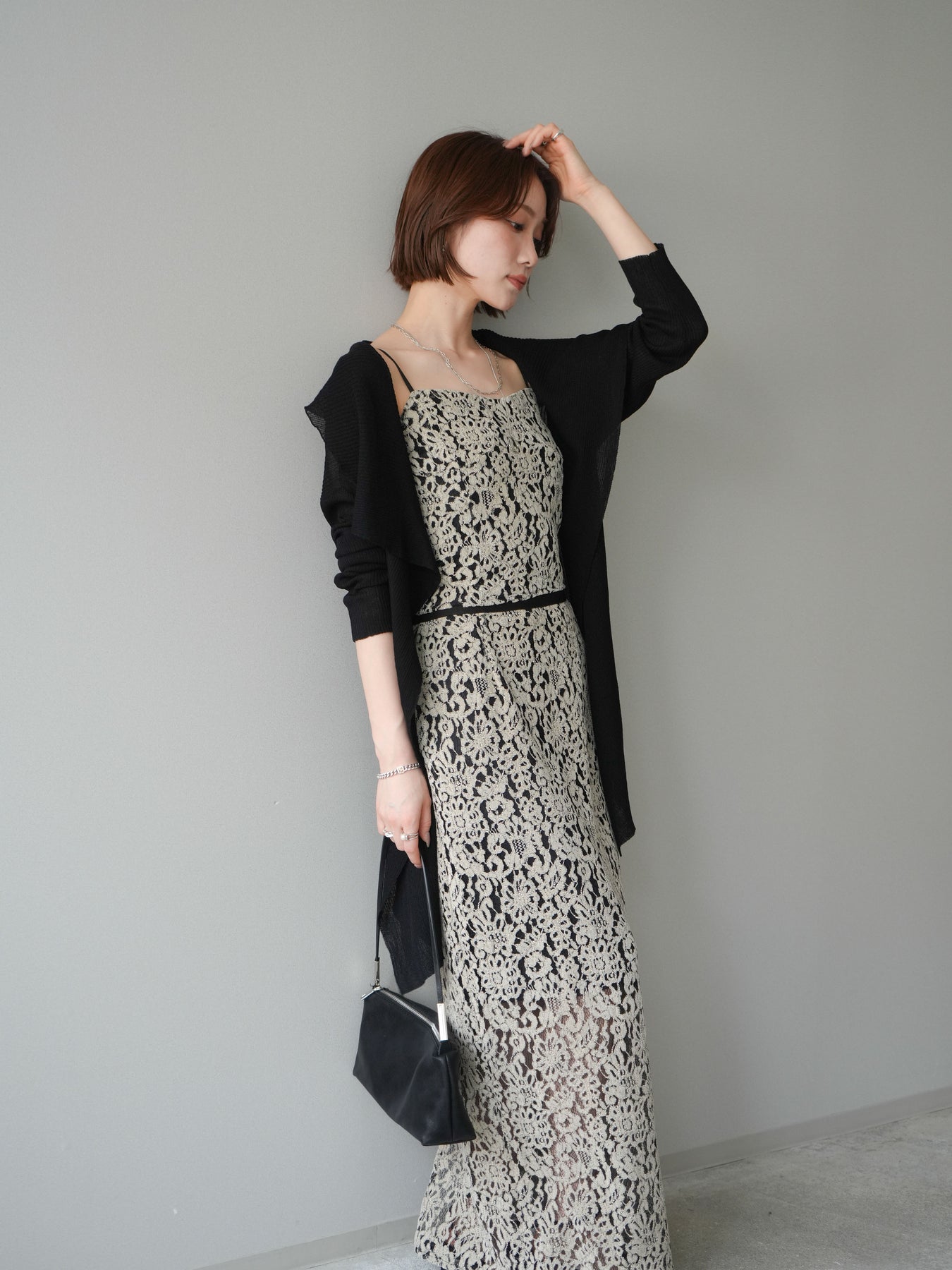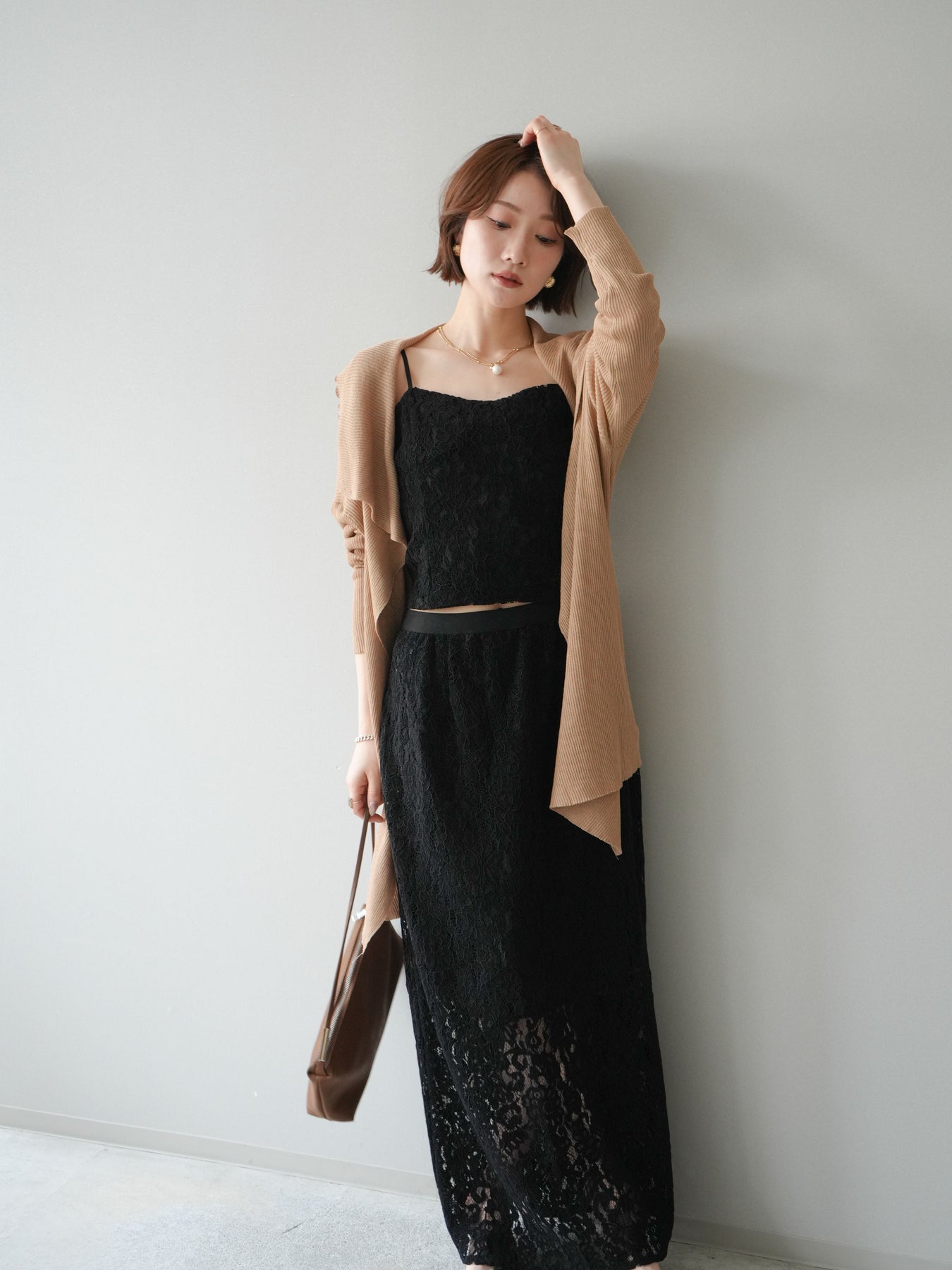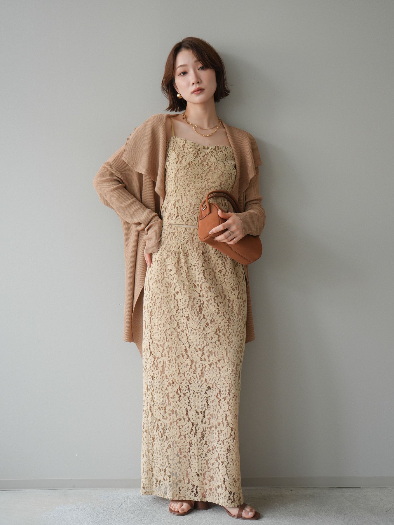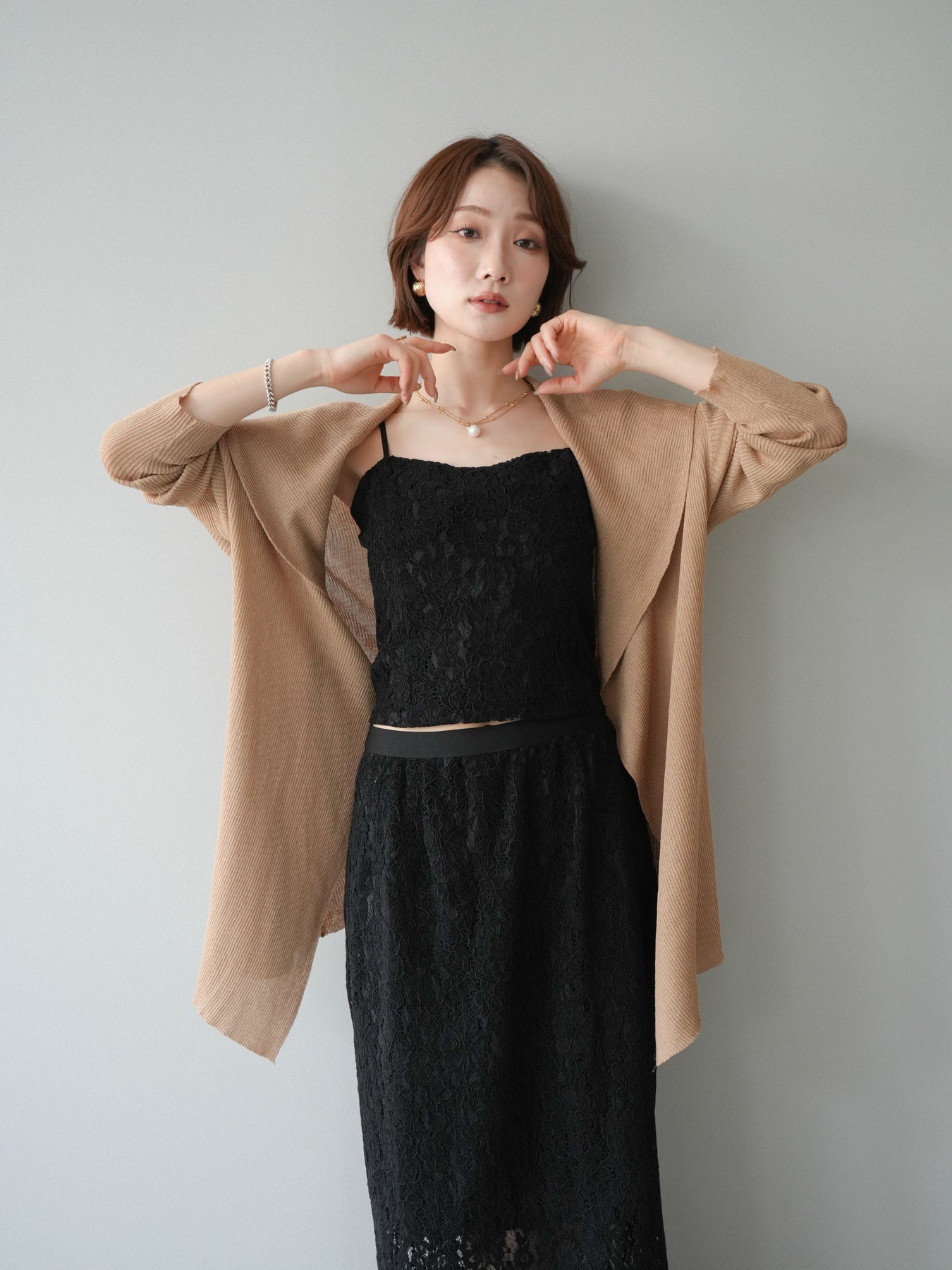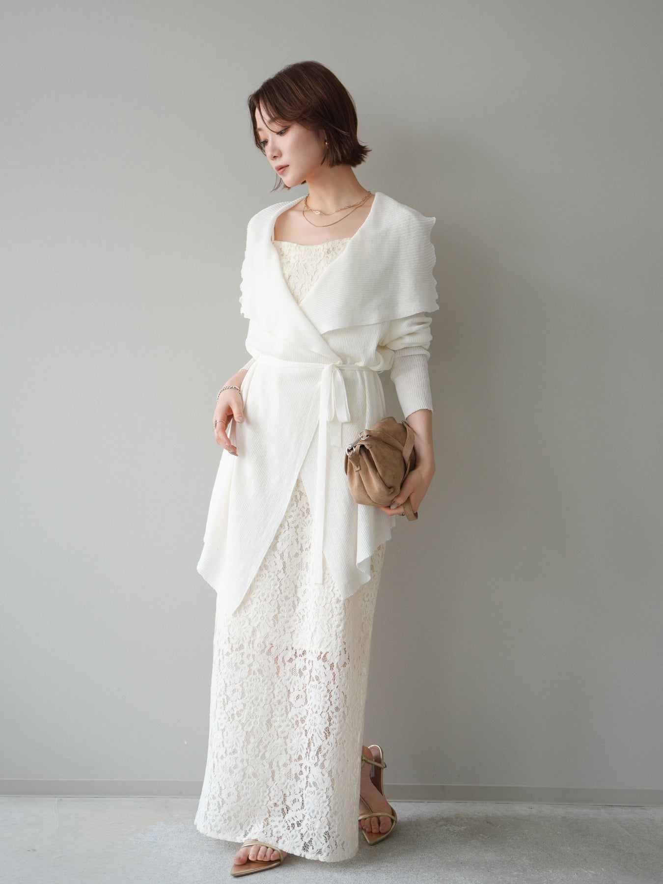 [SET]ドレープリブニットガウン+フルレースキャミ&IラインスカートSET UP(2set)