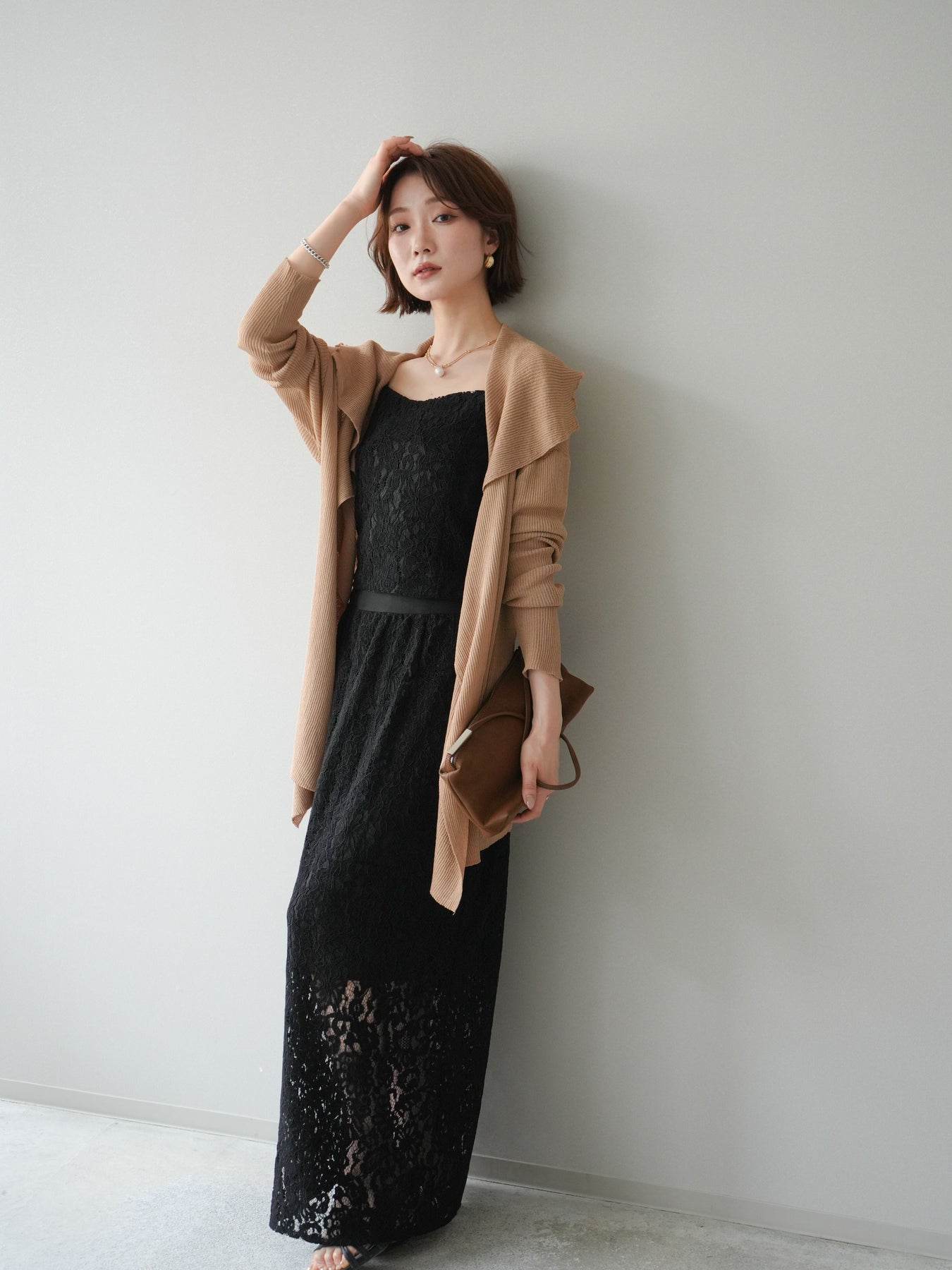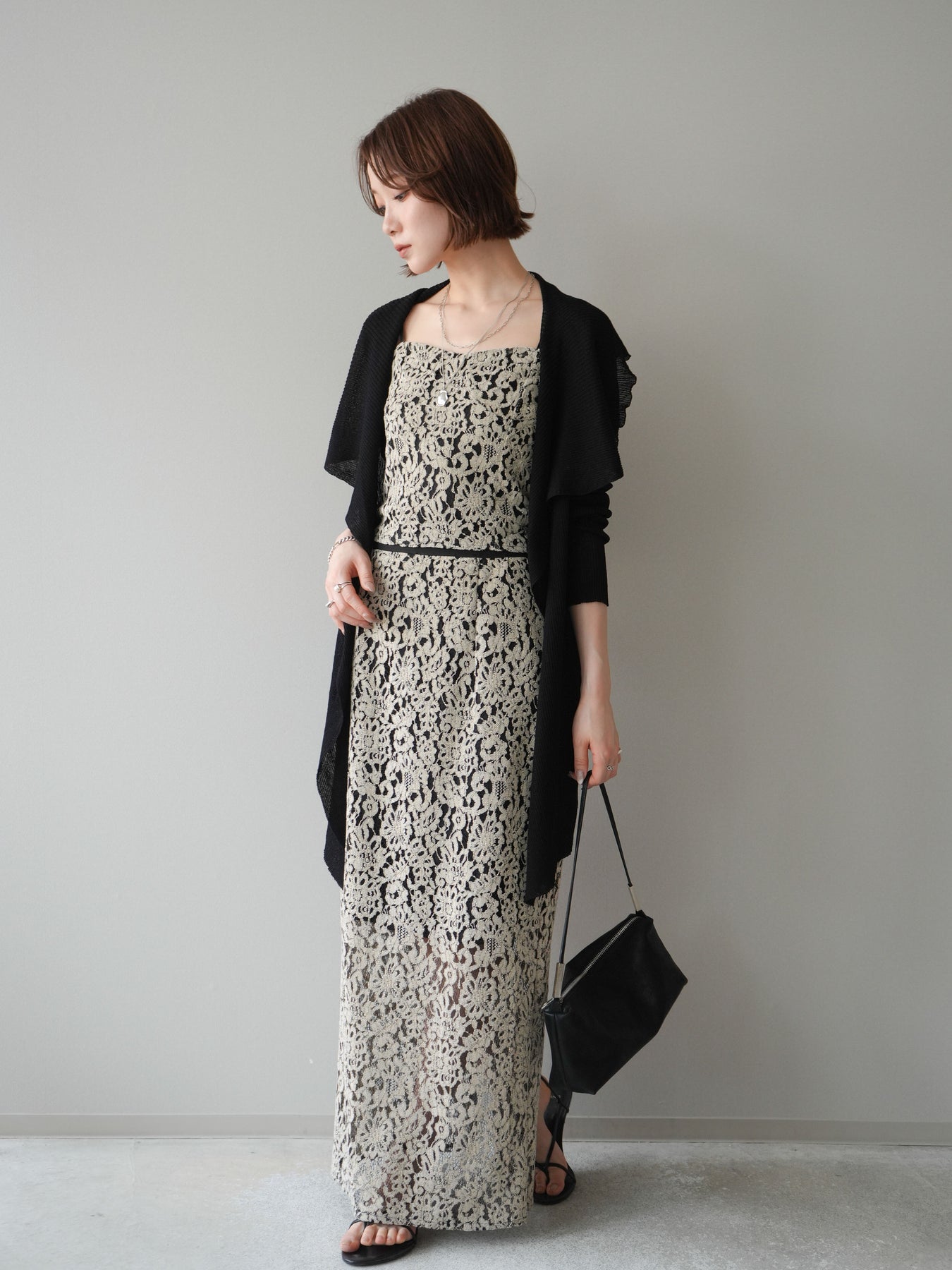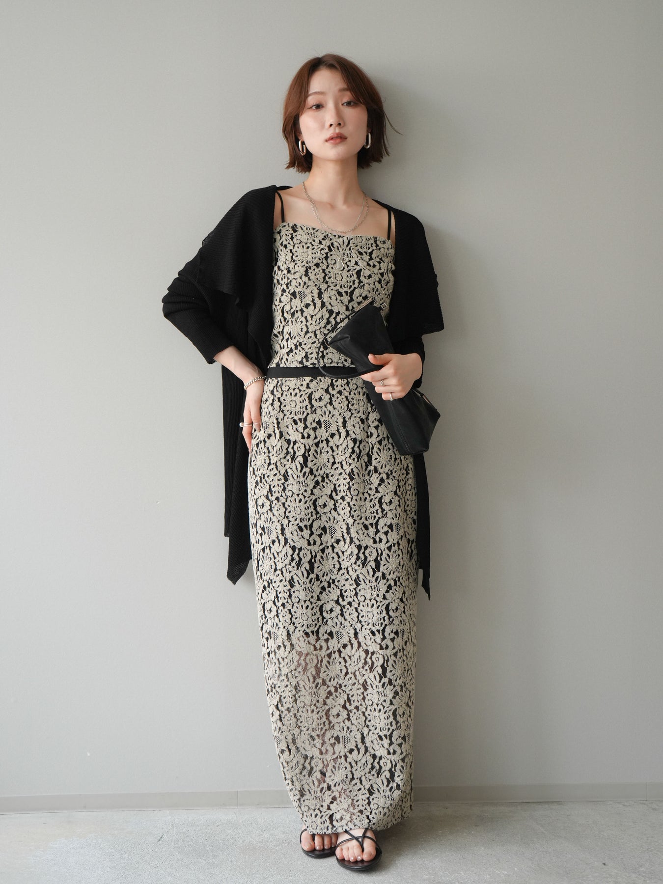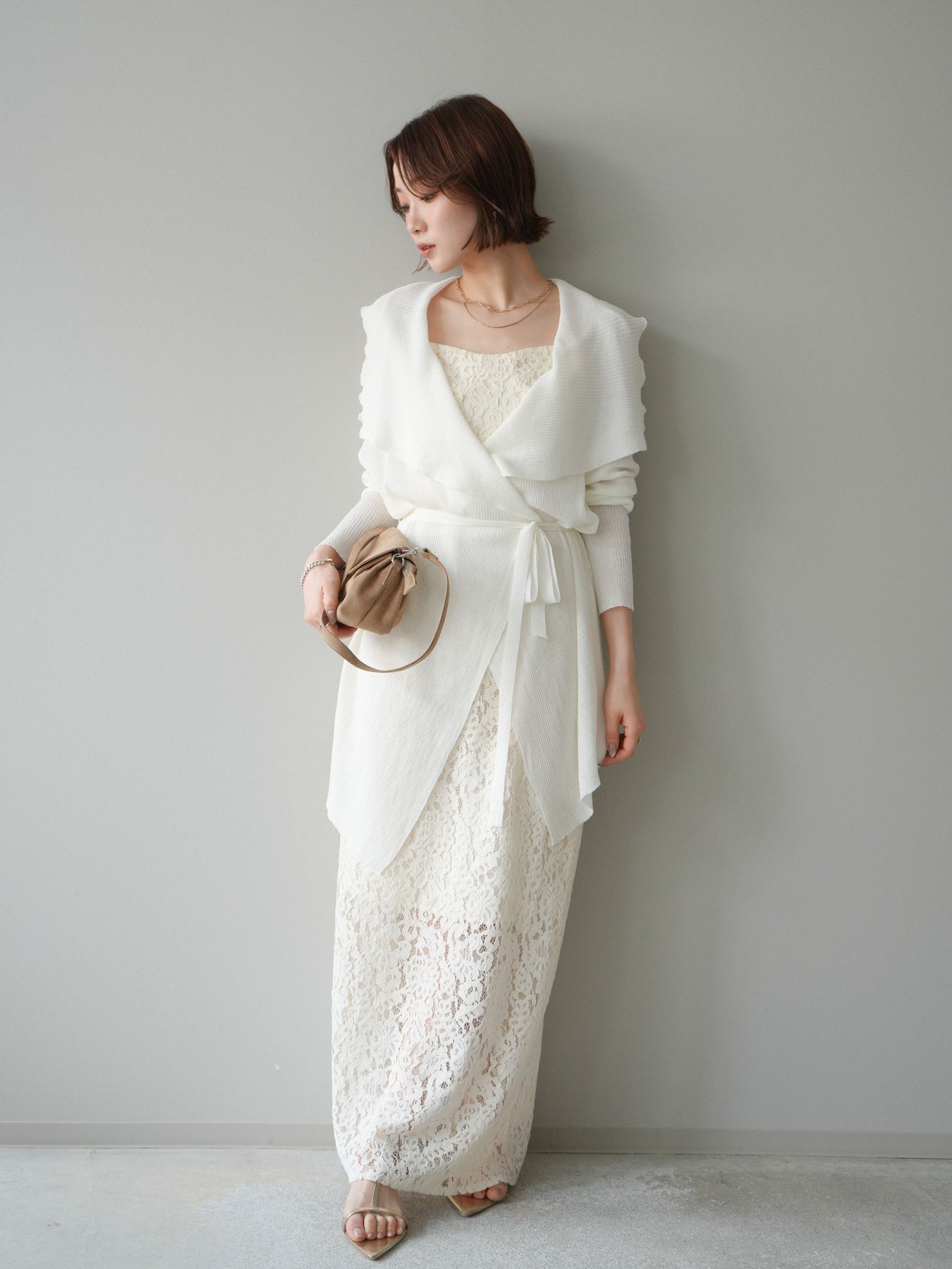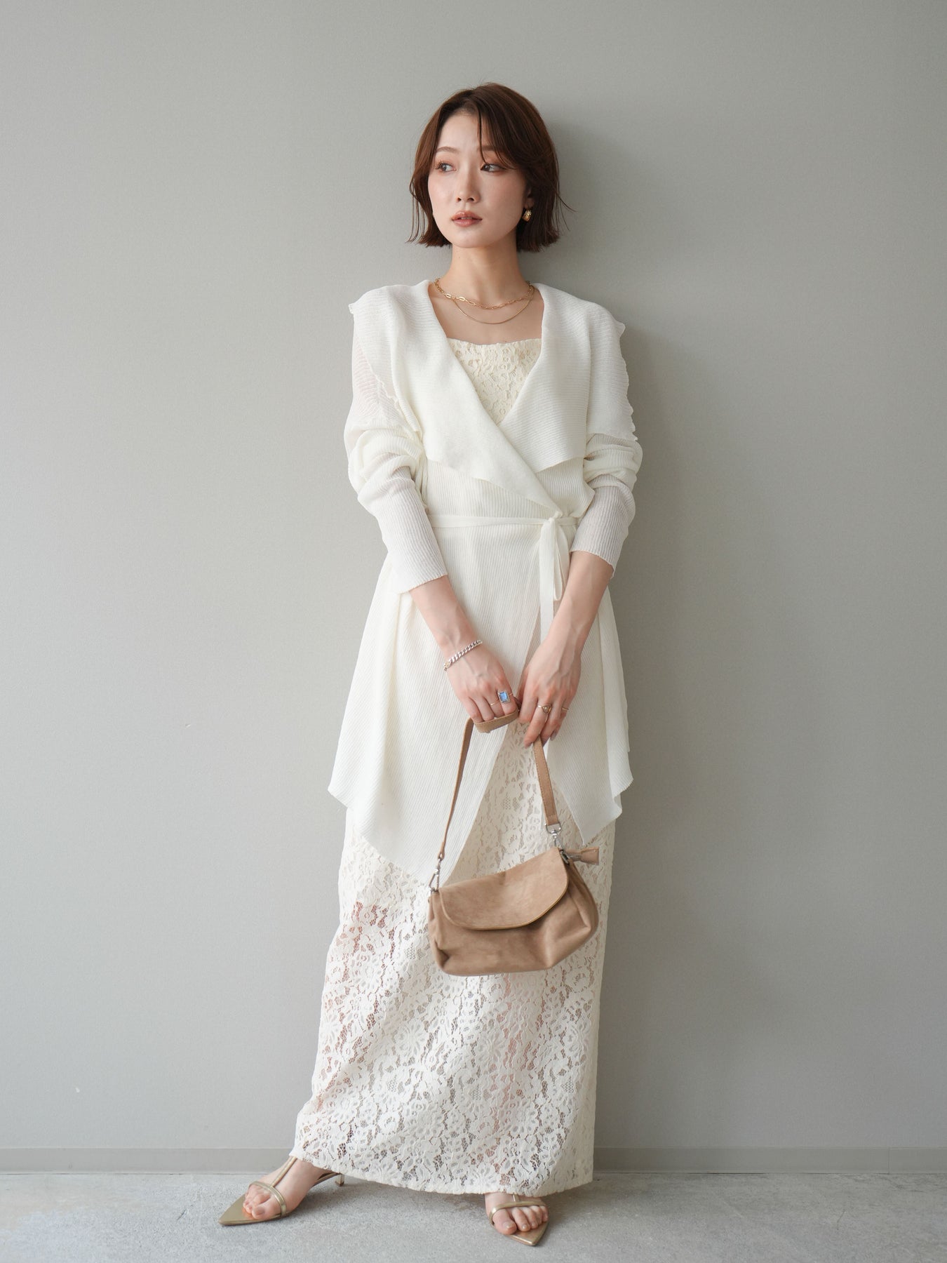 [SET]ドレープリブニットガウン+フルレースキャミ&IラインスカートSET UP(2set)