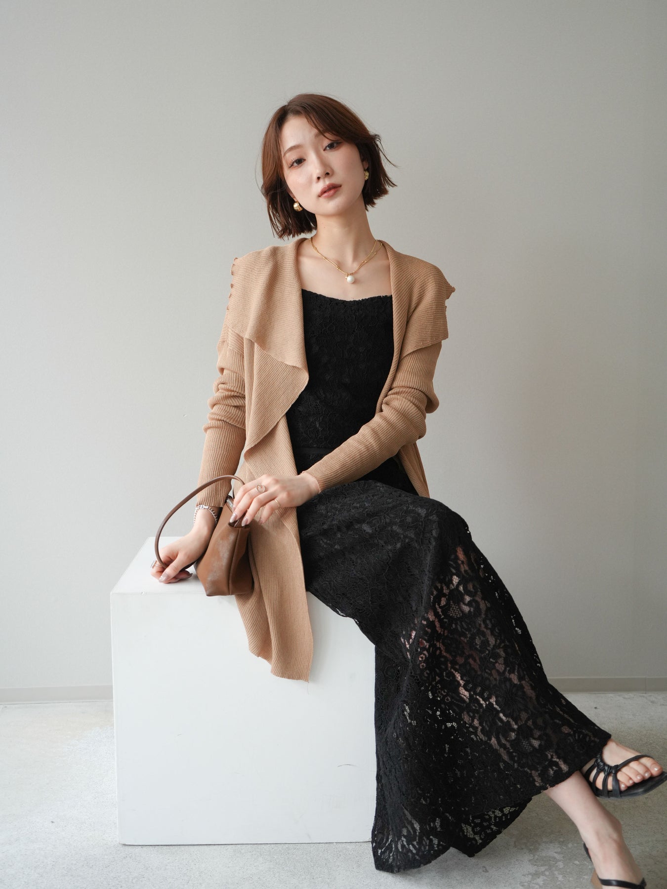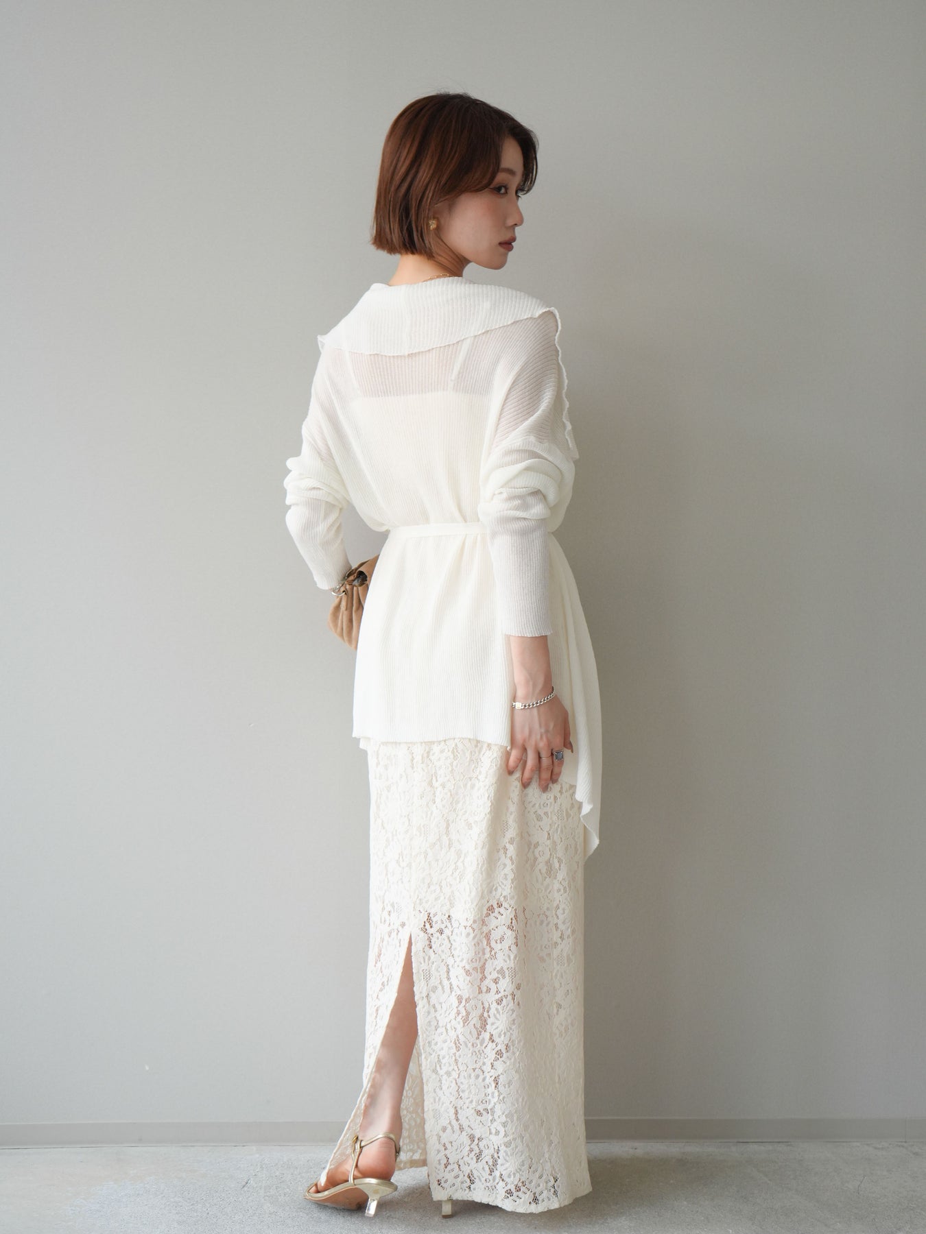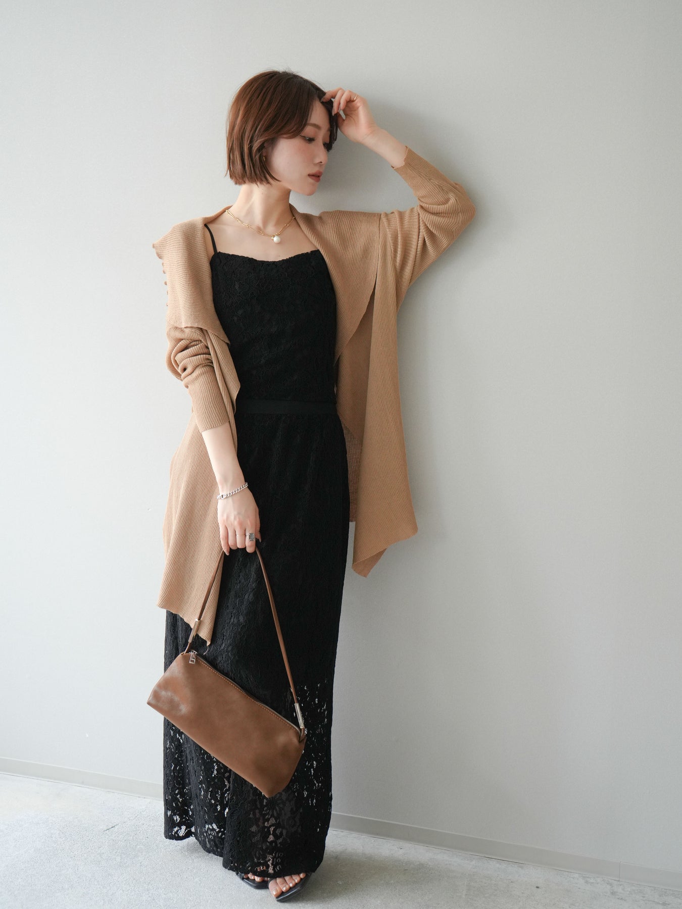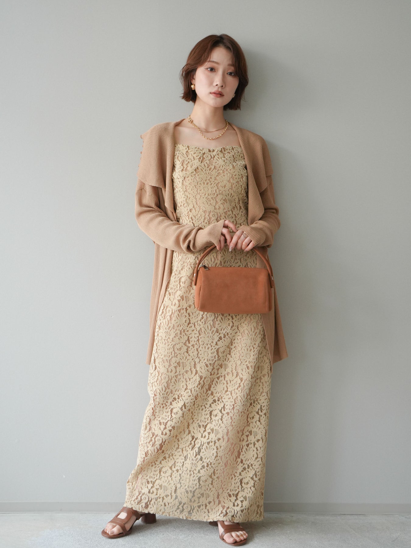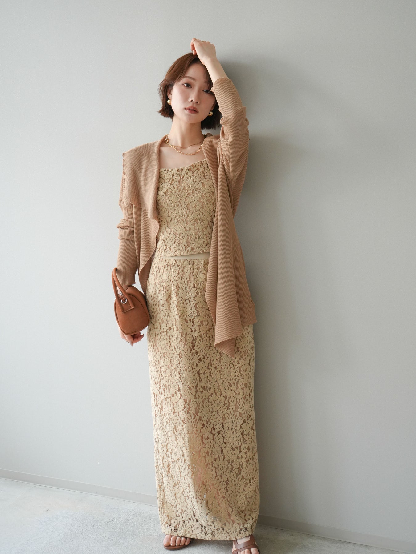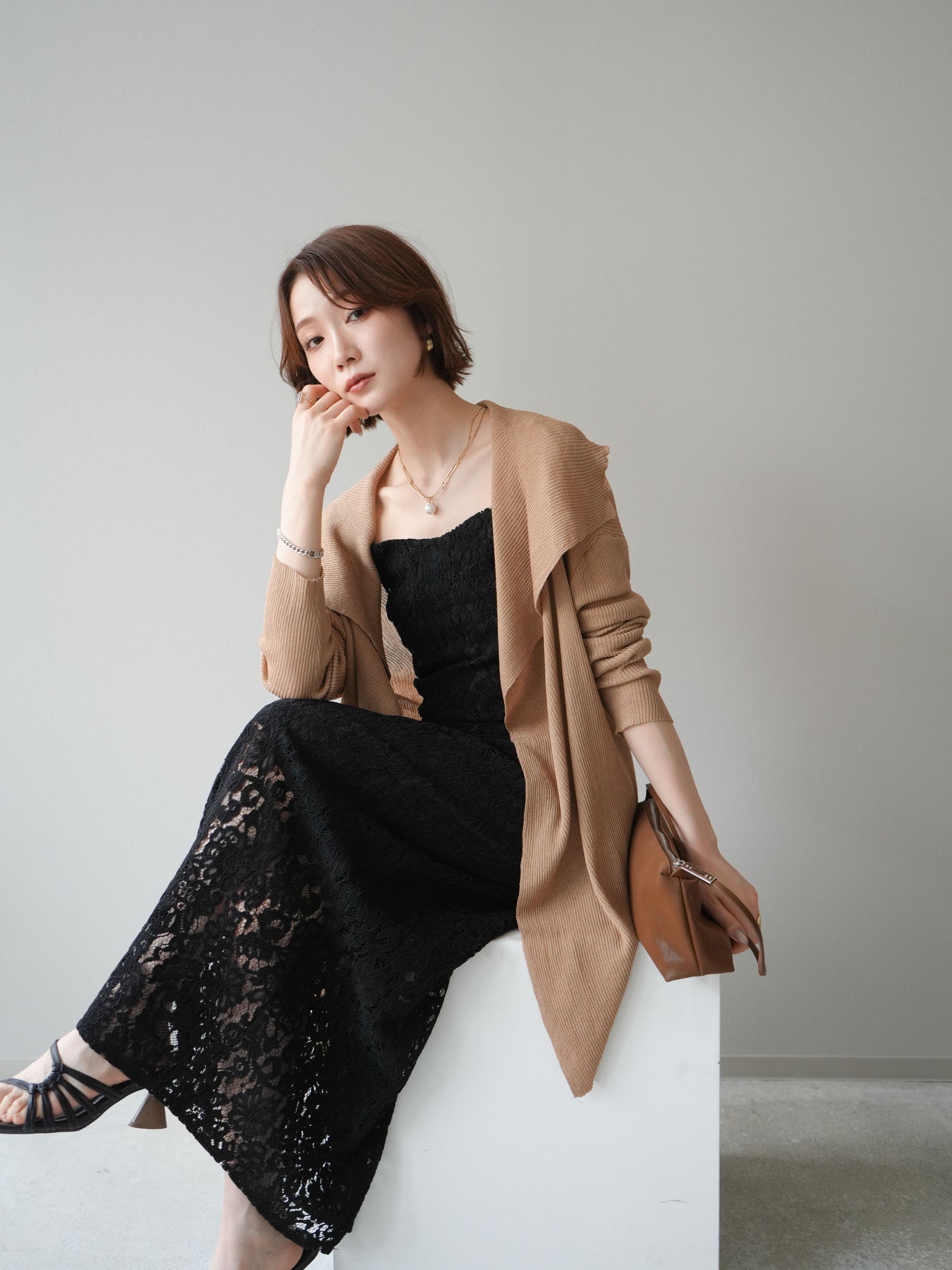 [SET]ドレープリブニットガウン+フルレースキャミ&IラインスカートSET UP(2set)