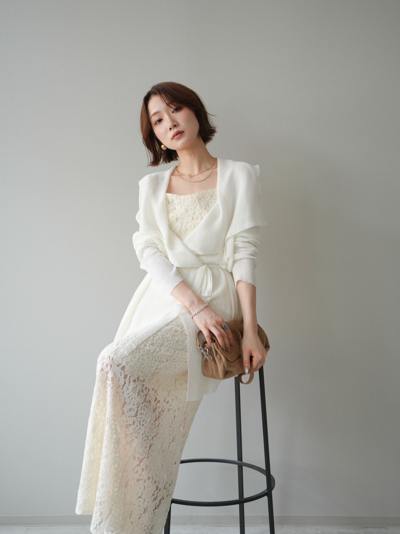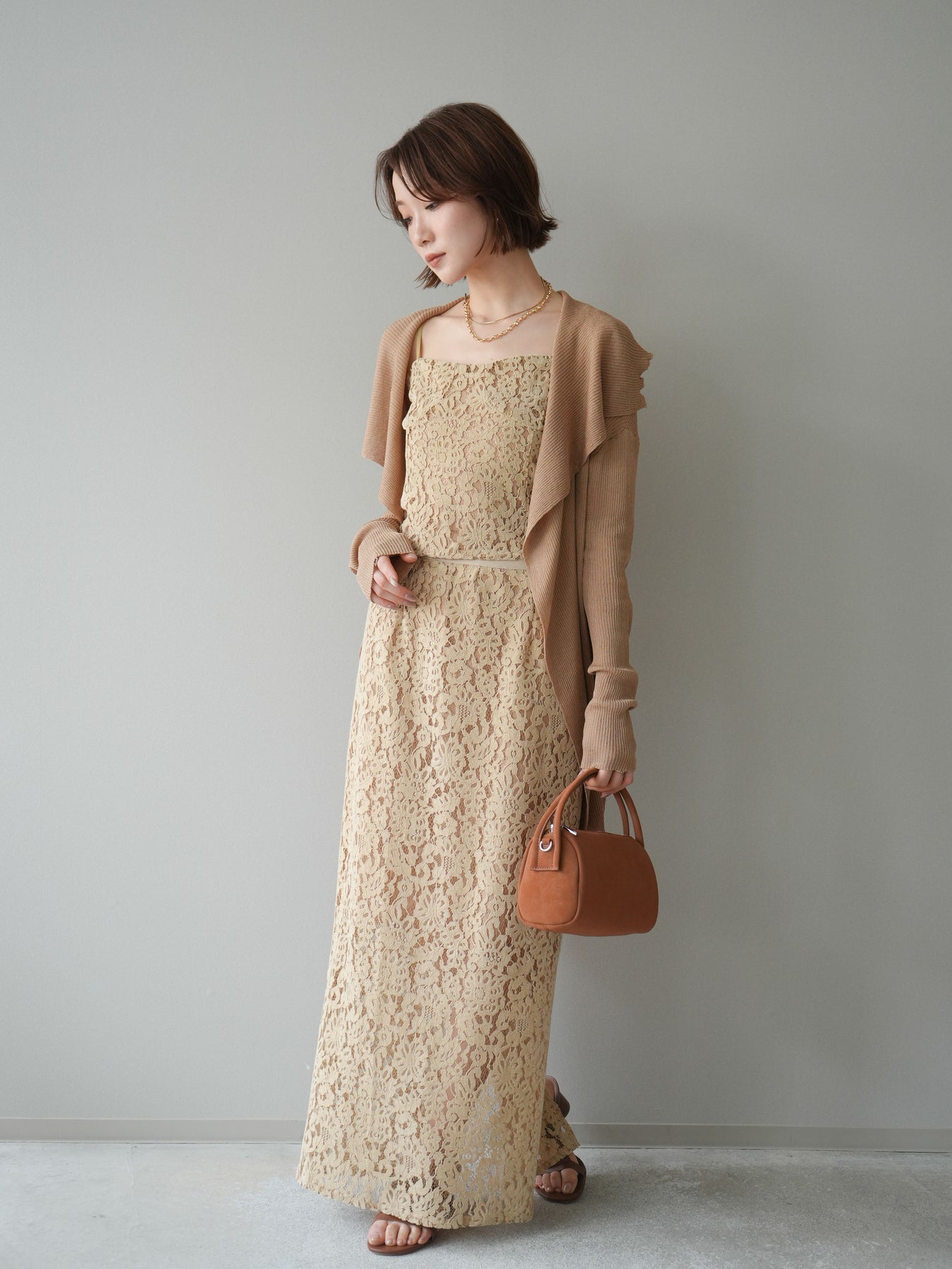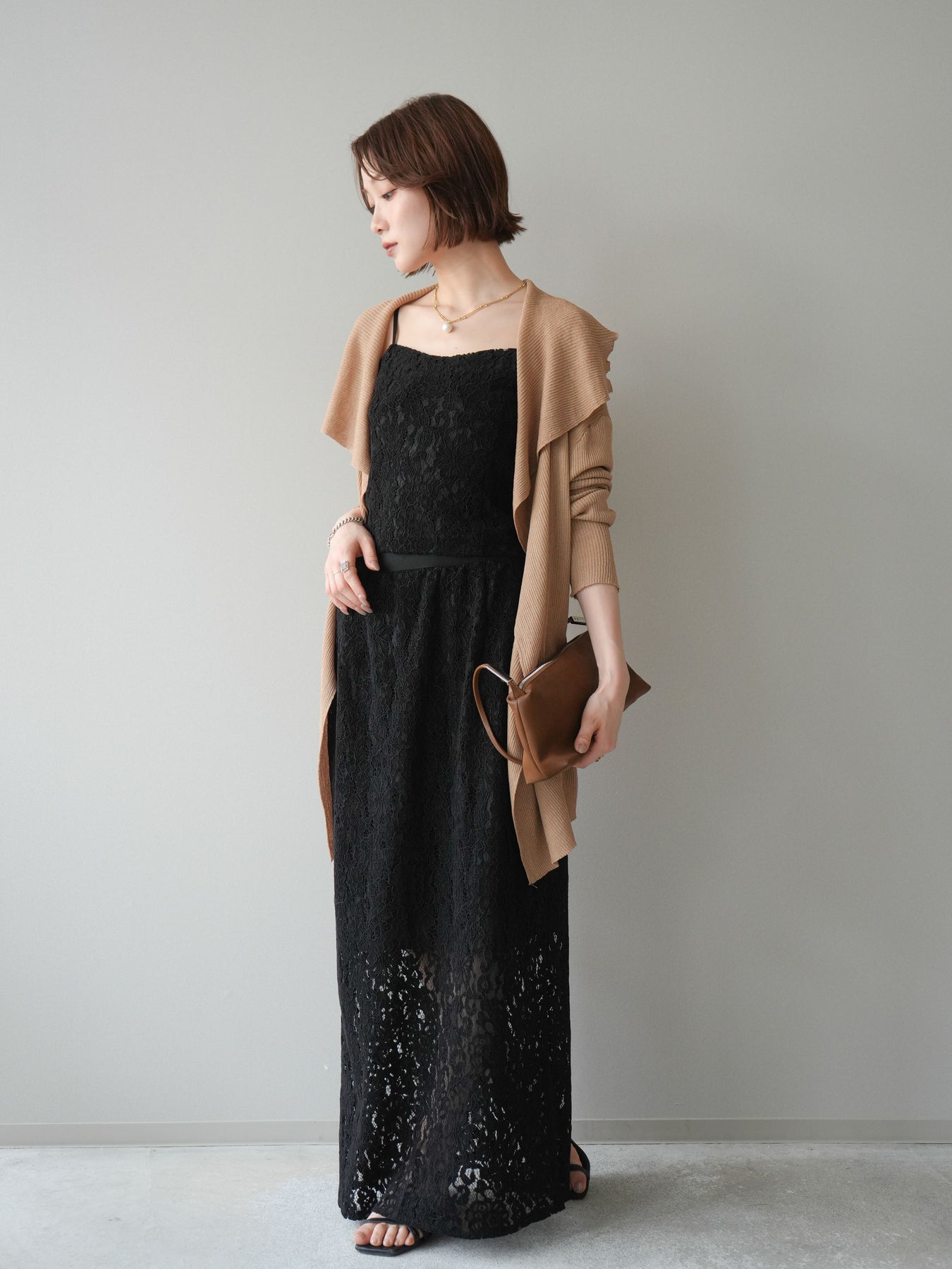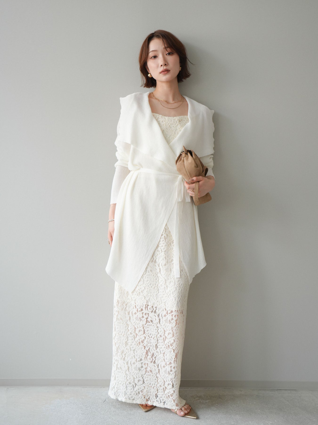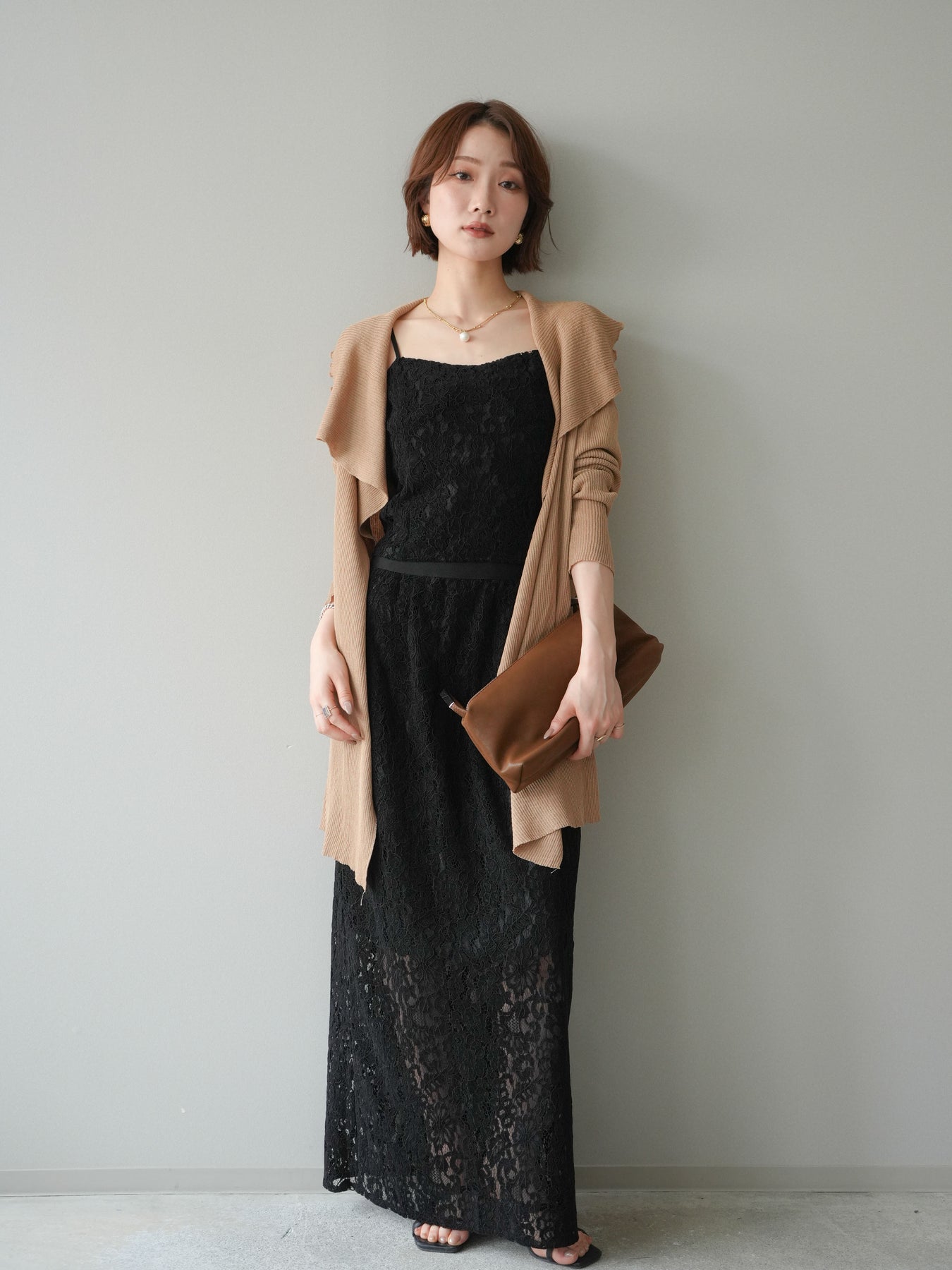 [SET]ドレープリブニットガウン+フルレースキャミ&IラインスカートSET UP(2set)