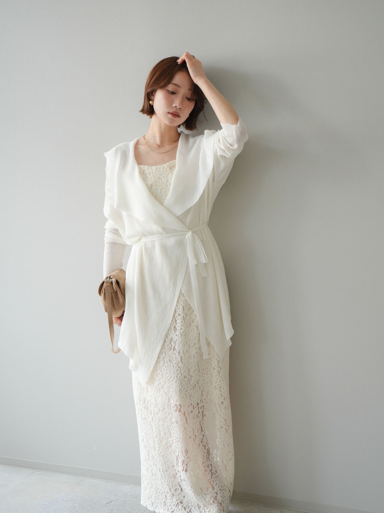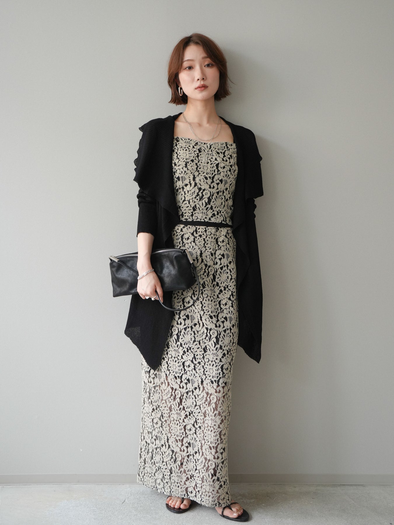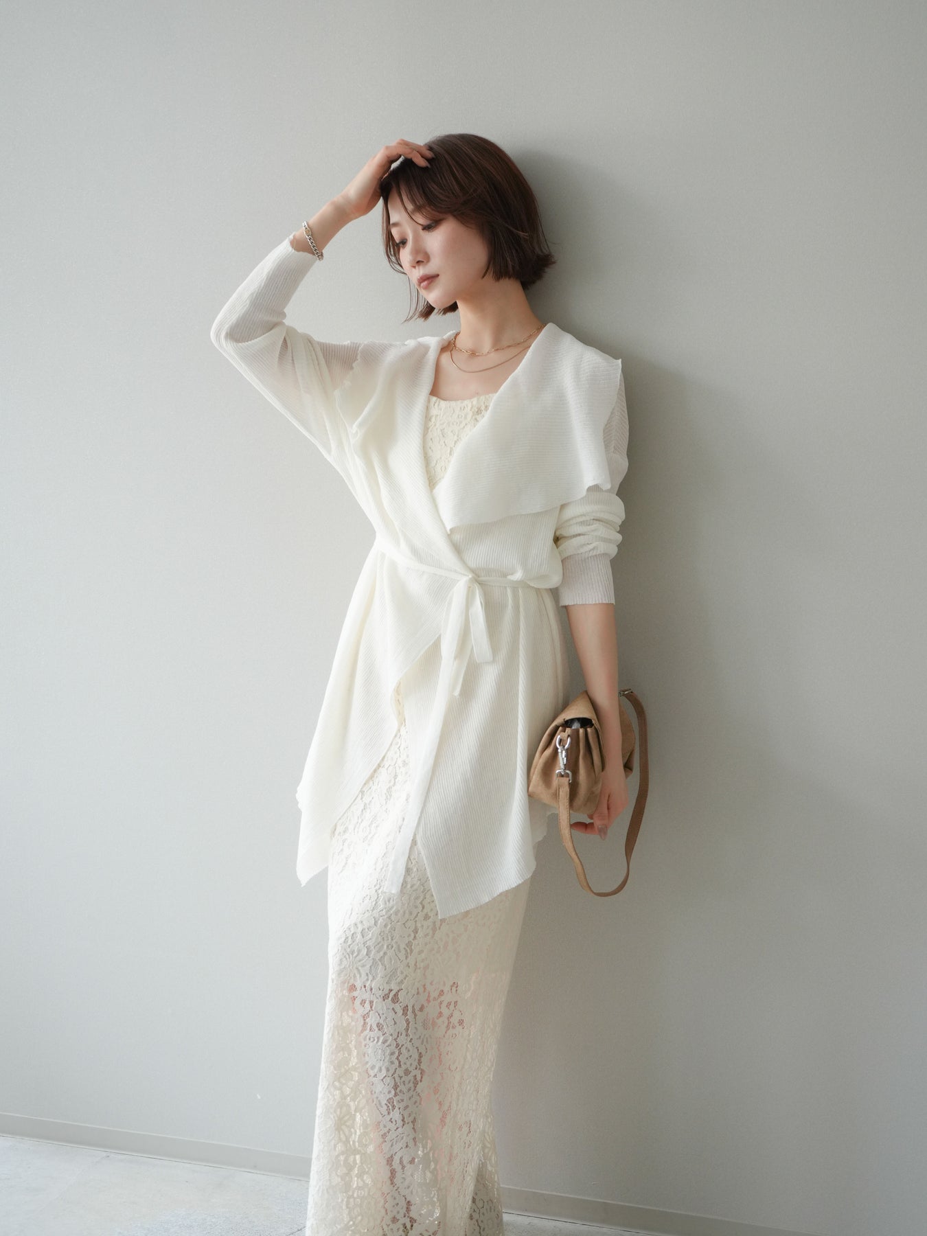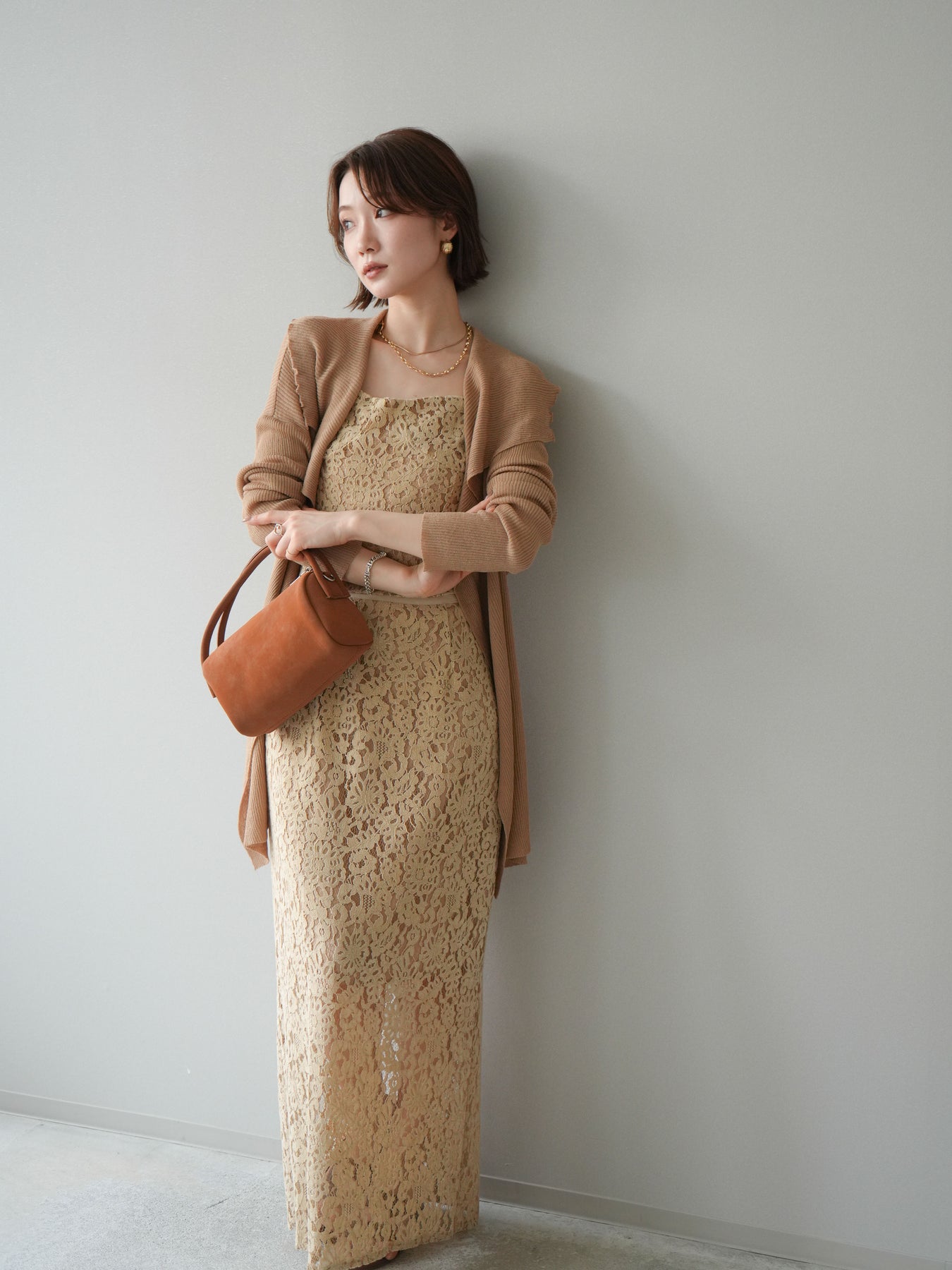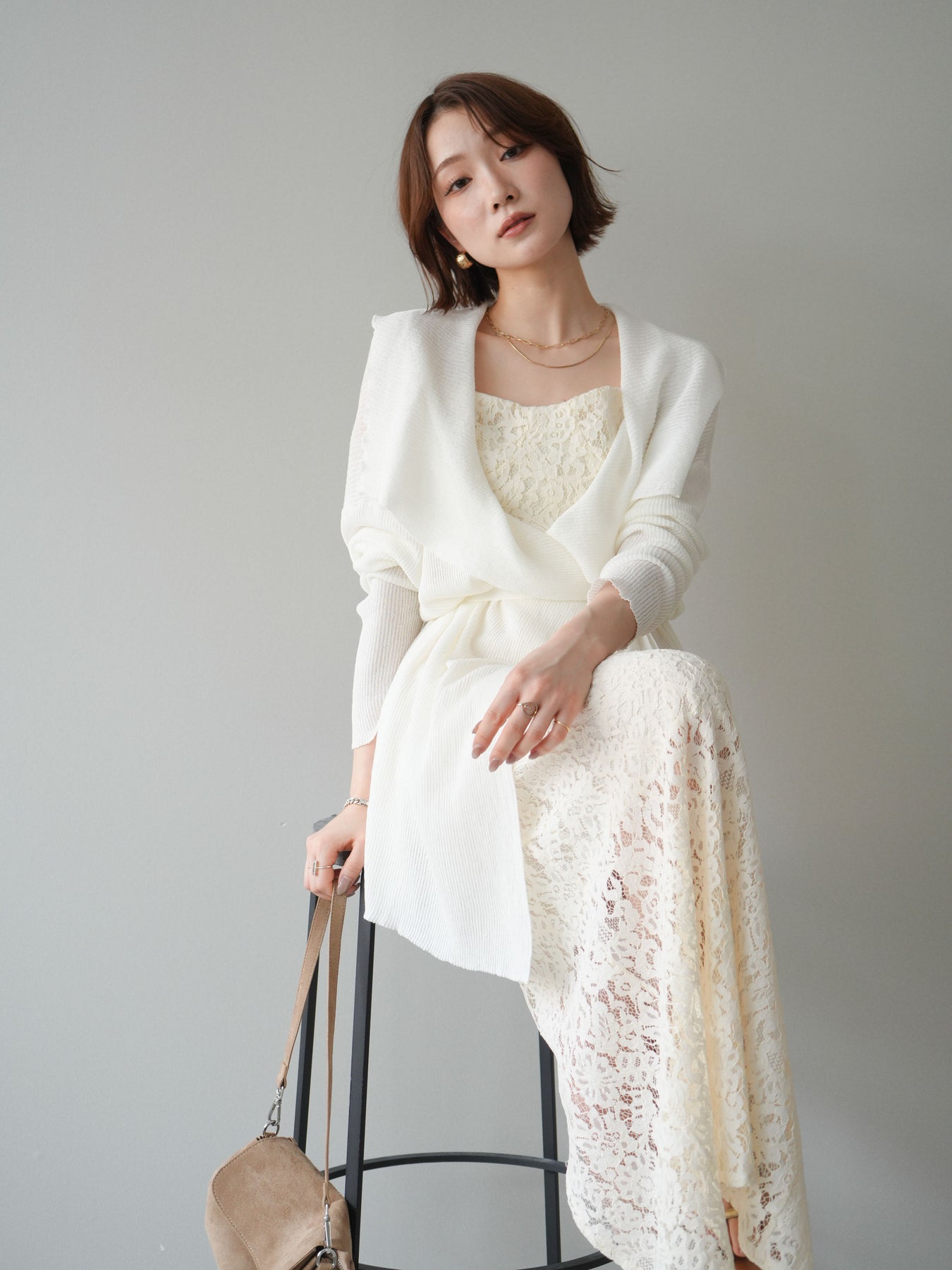 [SET]ドレープリブニットガウン+フルレースキャミ&IラインスカートSET UP(2set)