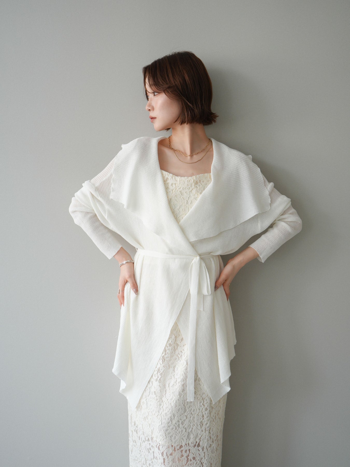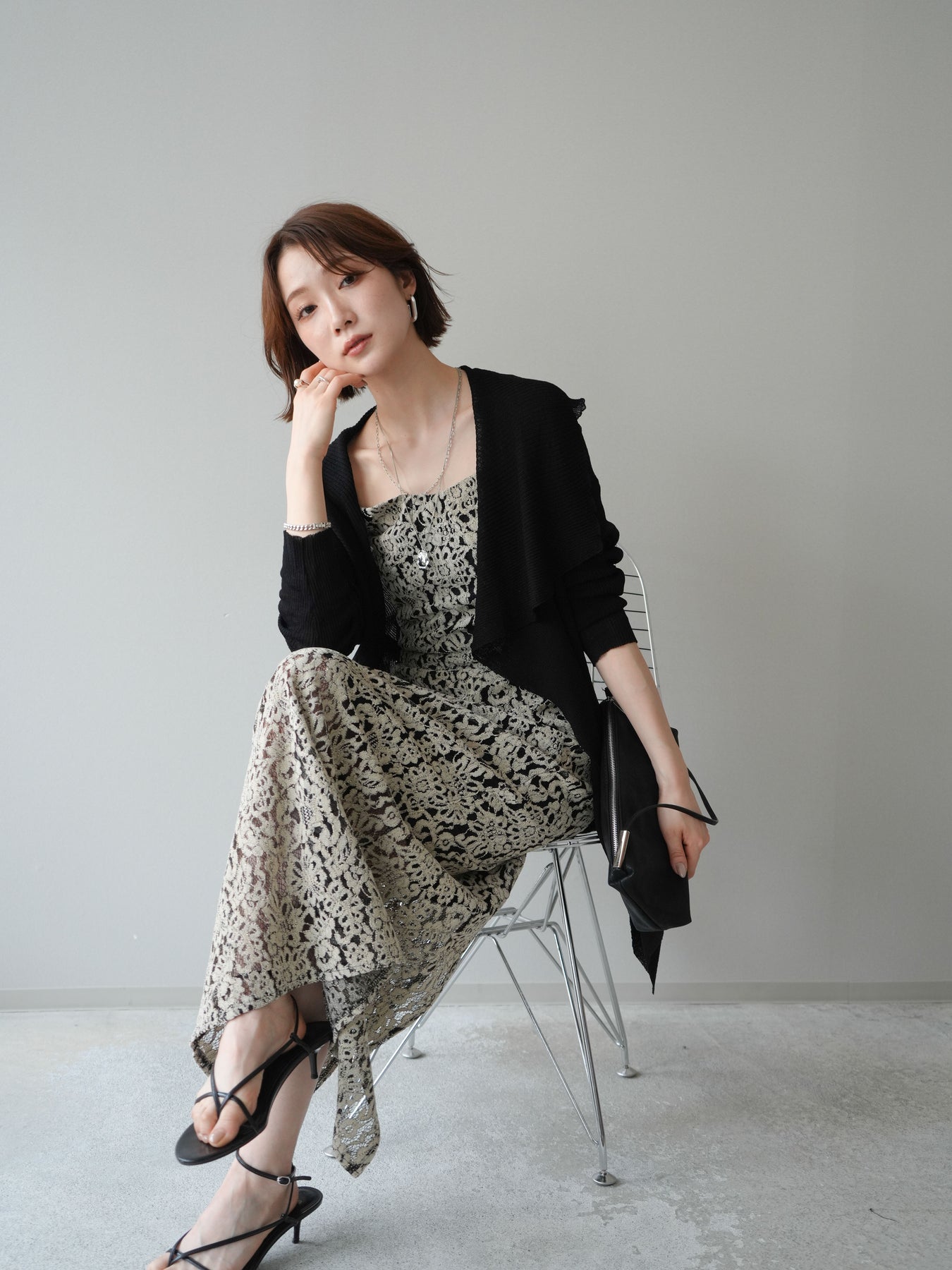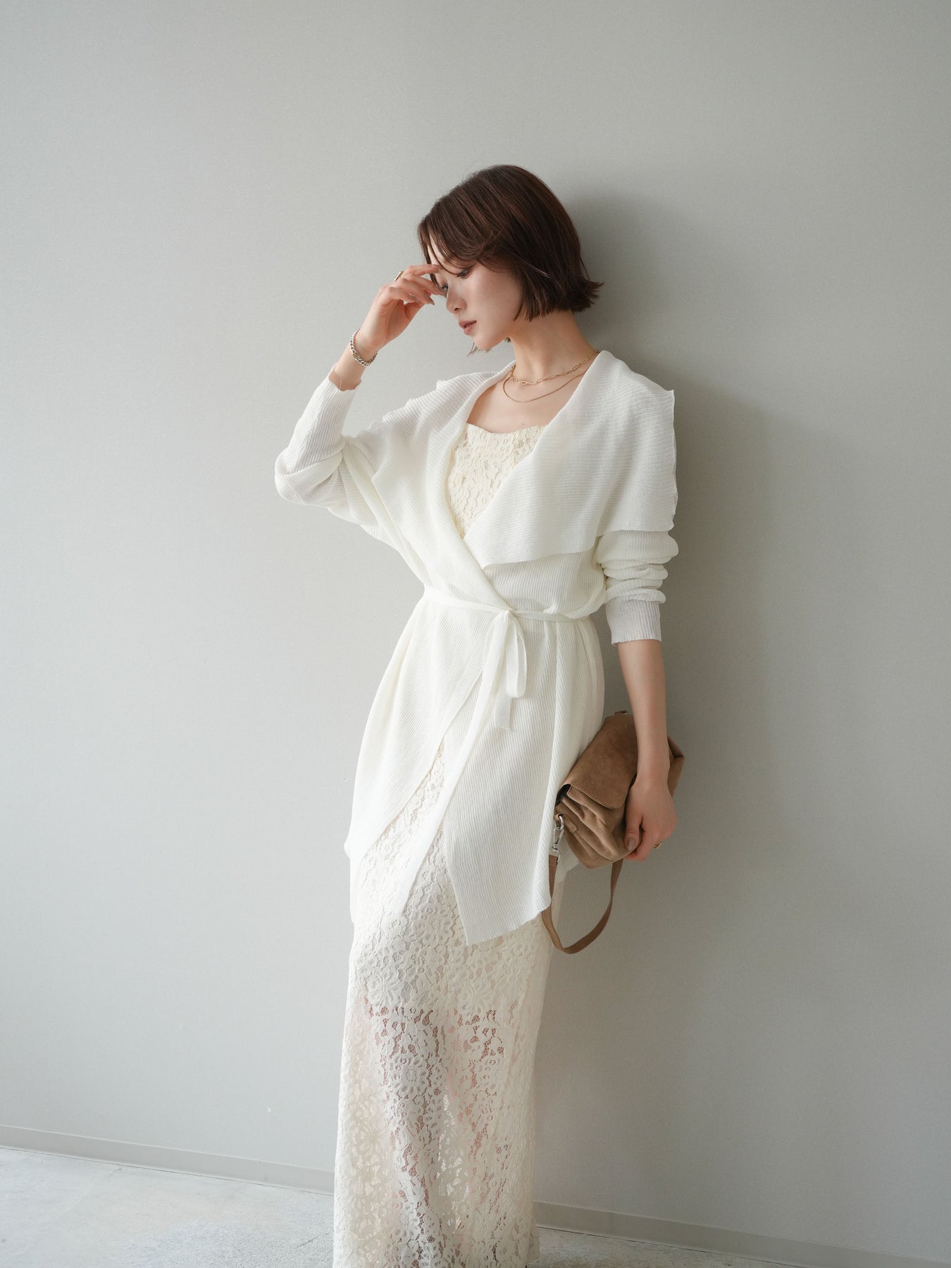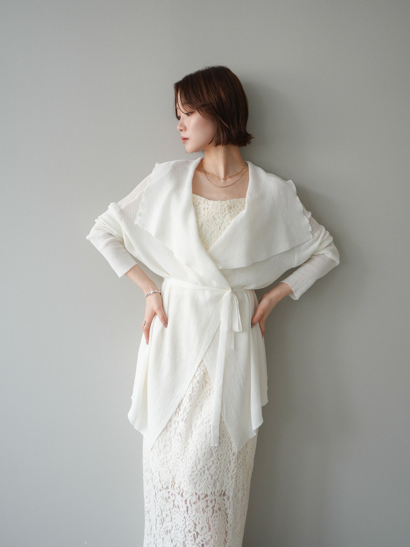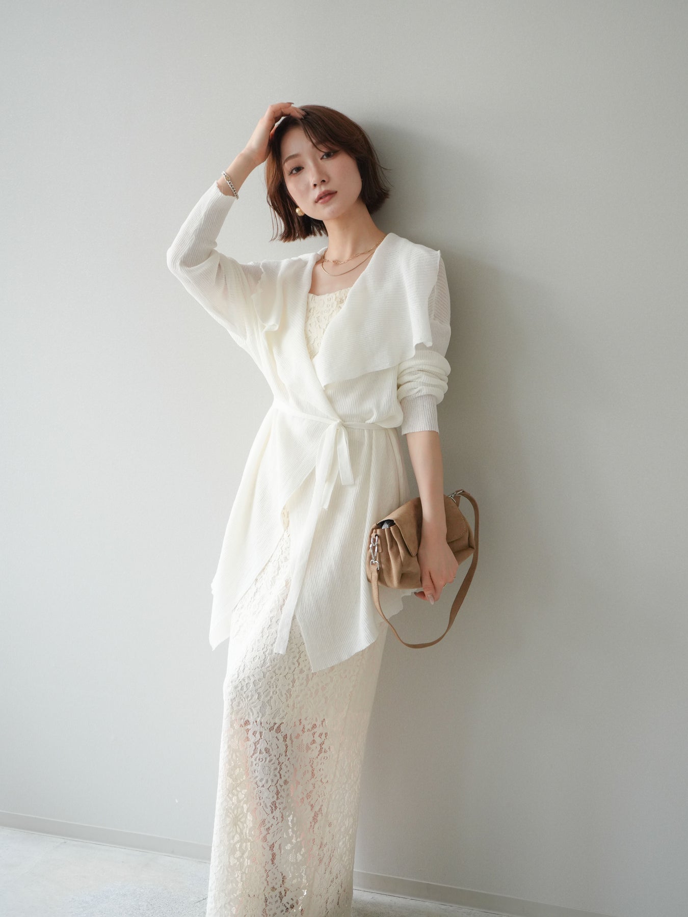 [SET]ドレープリブニットガウン+フルレースキャミ&IラインスカートSET UP(2set)