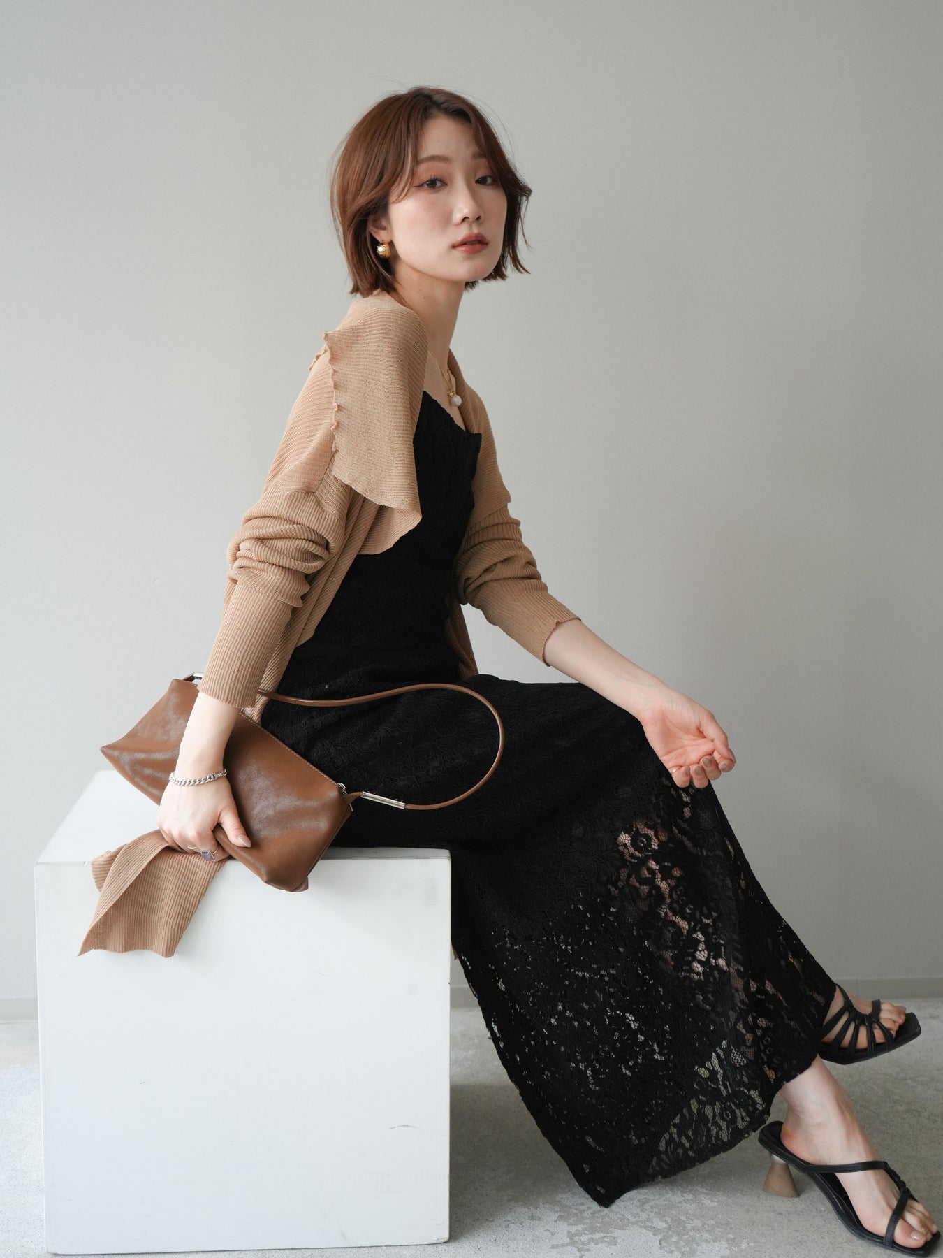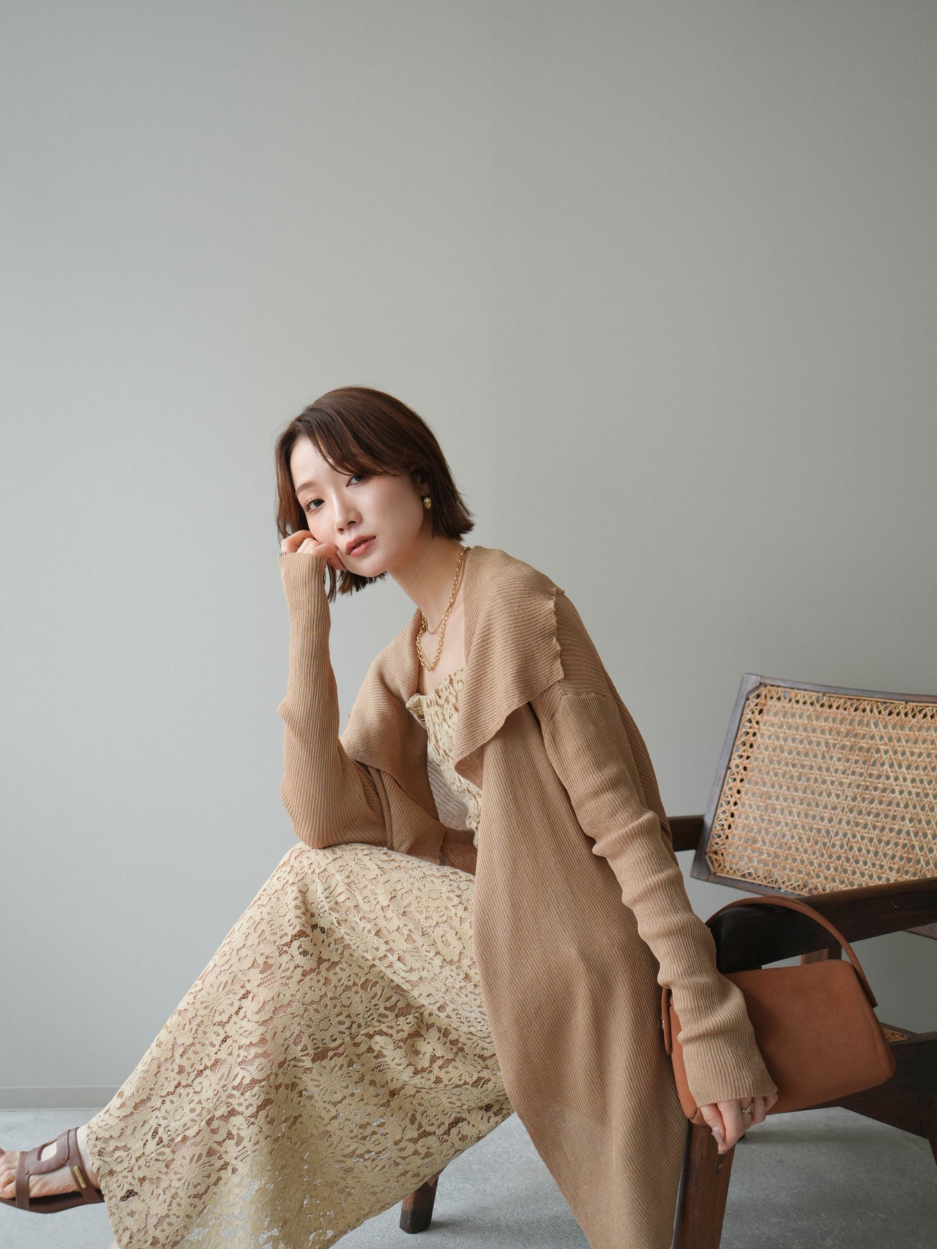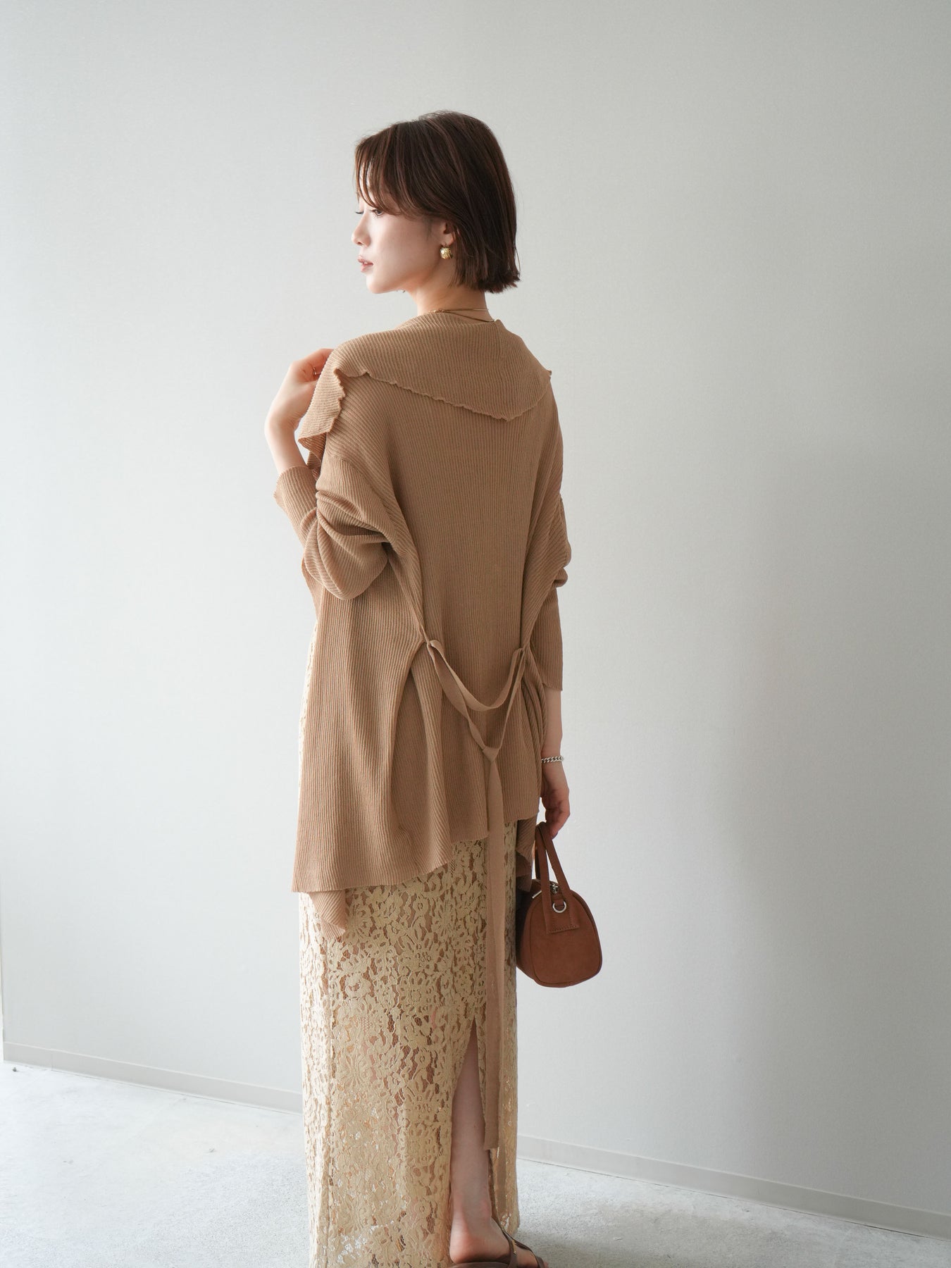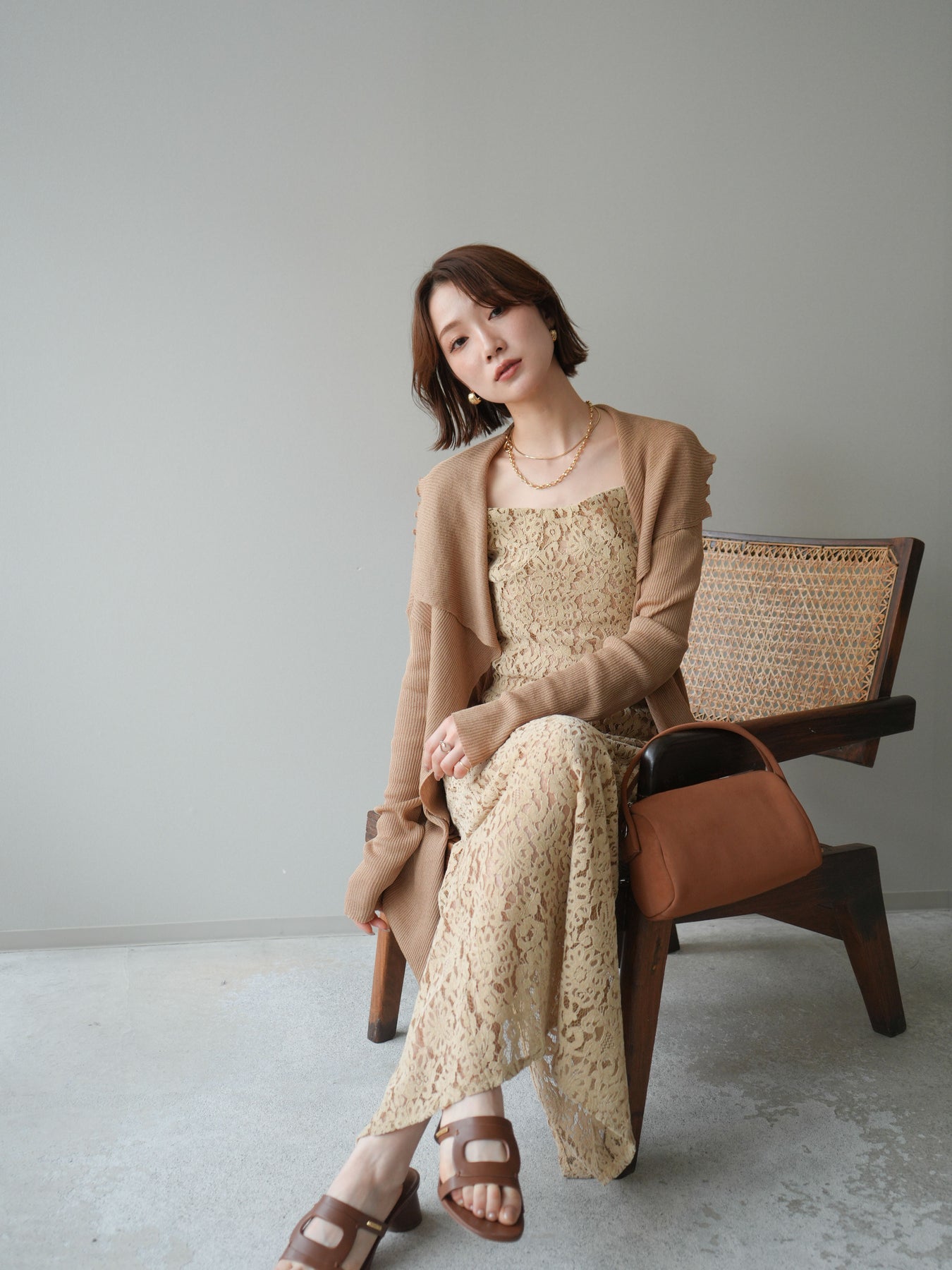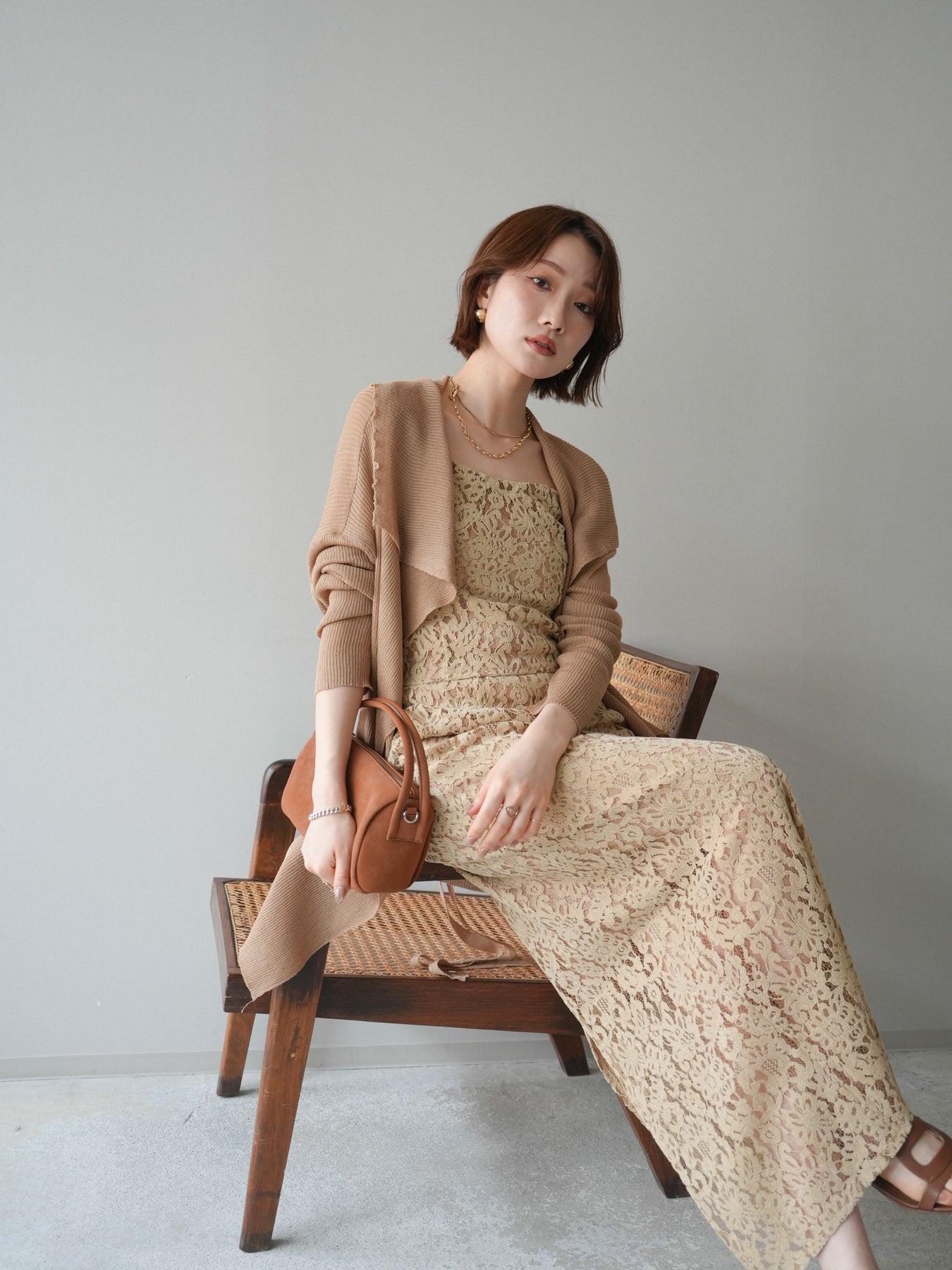 [SET]ドレープリブニットガウン+フルレースキャミ&IラインスカートSET UP(2set)