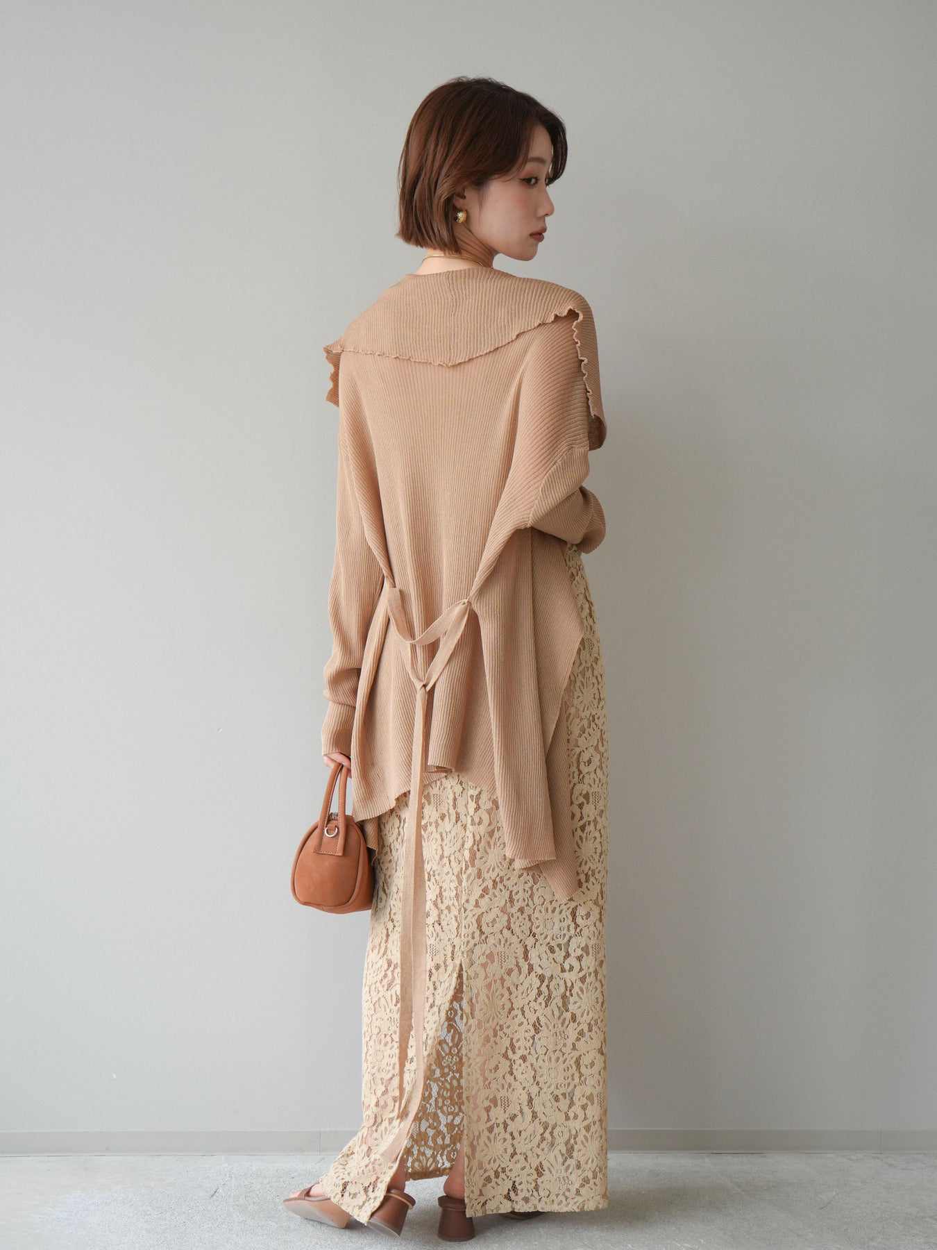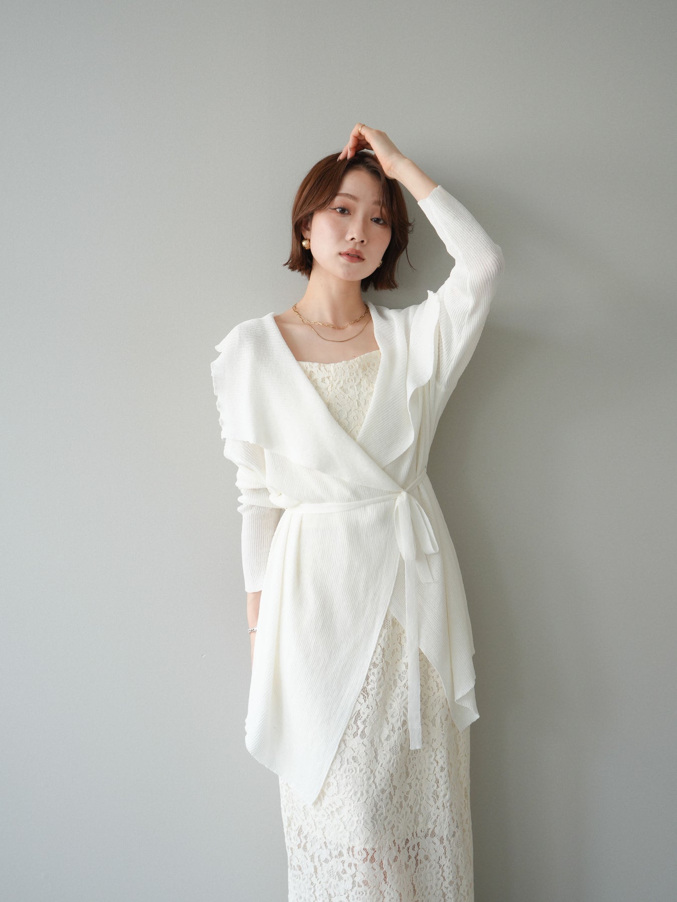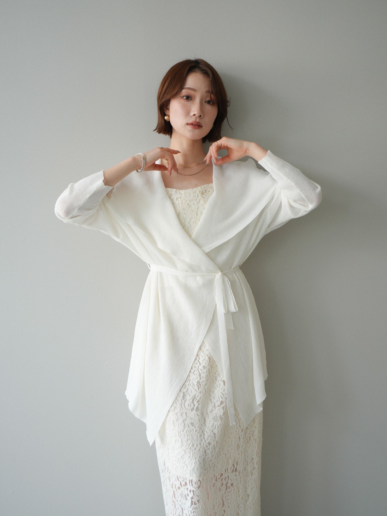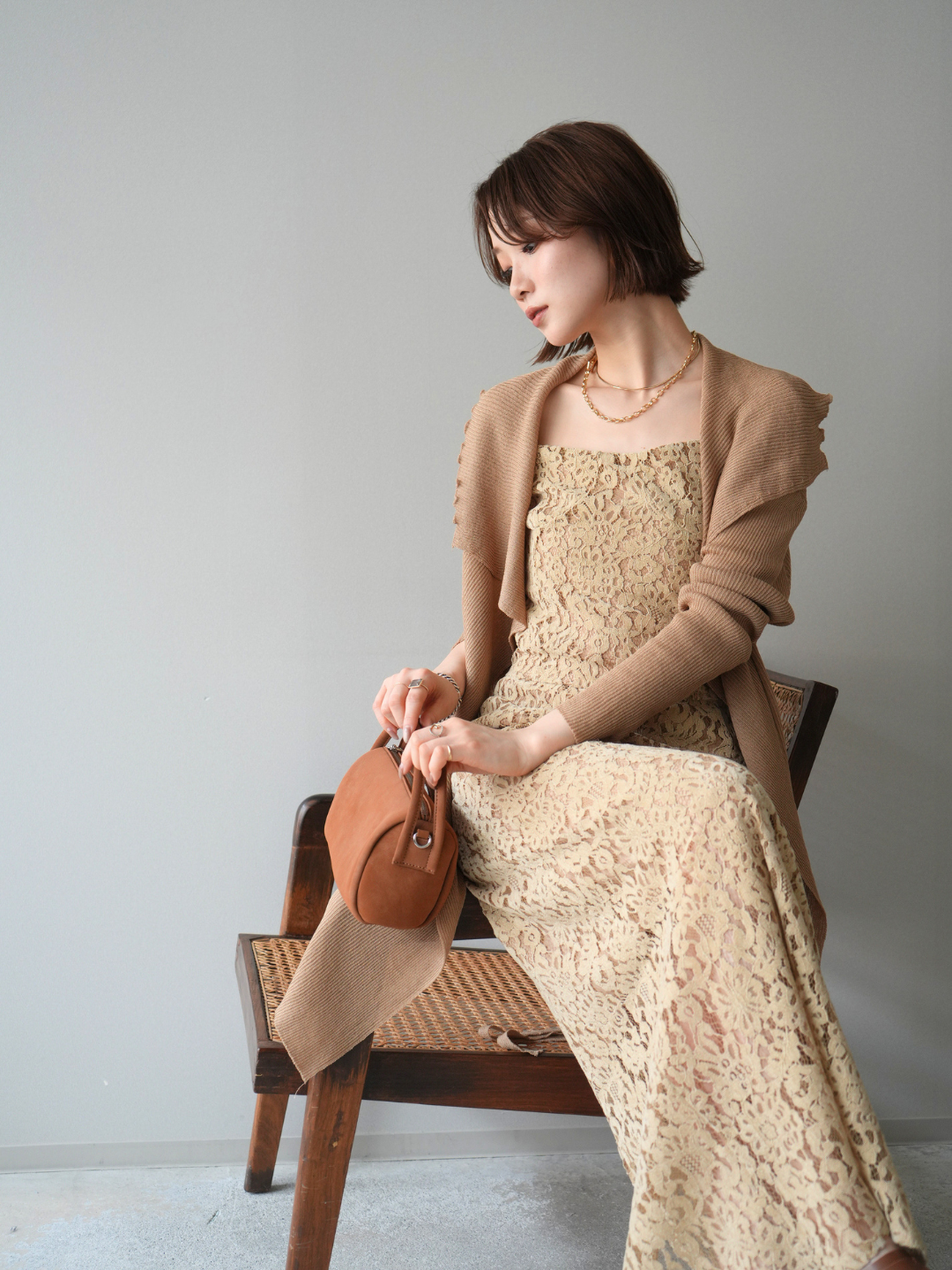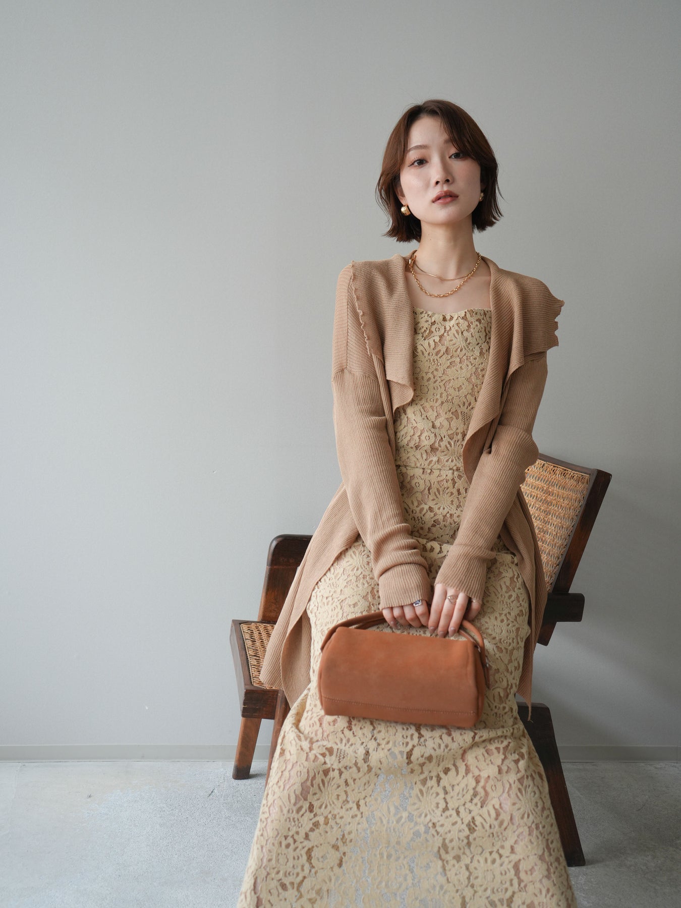 [SET]ドレープリブニットガウン+フルレースキャミ&IラインスカートSET UP(2set)