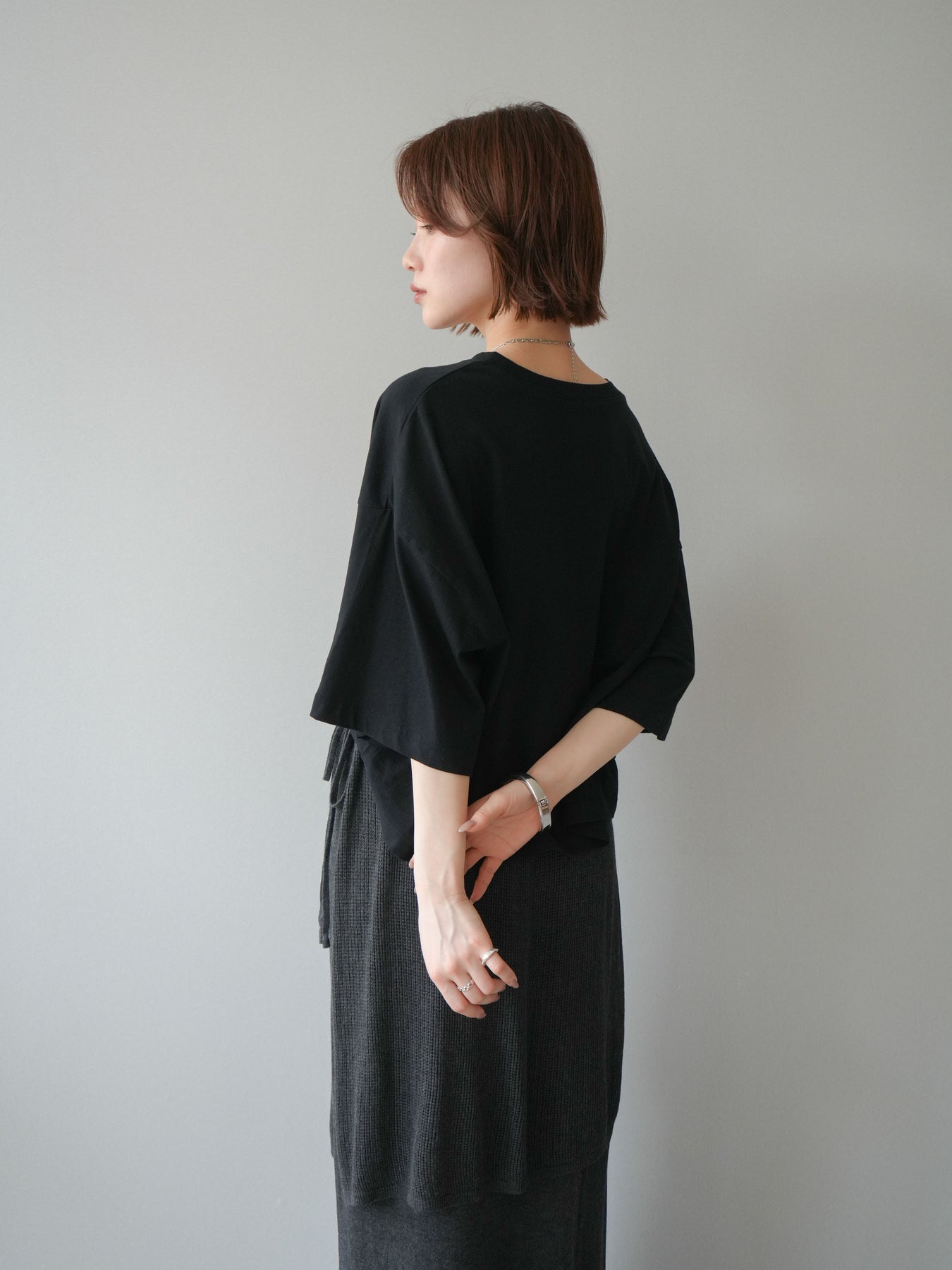 ・お手入れ方法:水温30℃以下手洗いでのお洗濯をお薦めします。素材の特性上、洗濯の際に色落ち・縮みが生じる恐れがありますので単独で・短時間でのお洗濯をお薦めします。裏返してネットに入れ手洗いコースで洗濯、洗濯後は形を整えてから干してください。※タンブラー乾燥は控えてください。濡れたままの状態で擦れると、色落ち色移りすることがあります。つけ置き洗いや雨や汗で濡れたまま放置は避け、速やかに処理してください。着用中の摩擦や汗、水濡れ、濃淡差があるものとの重ね着にご注意ください。また、素材の特性上伸びやすい為ハンガーの使用はお控えいただき畳んで保管ください。