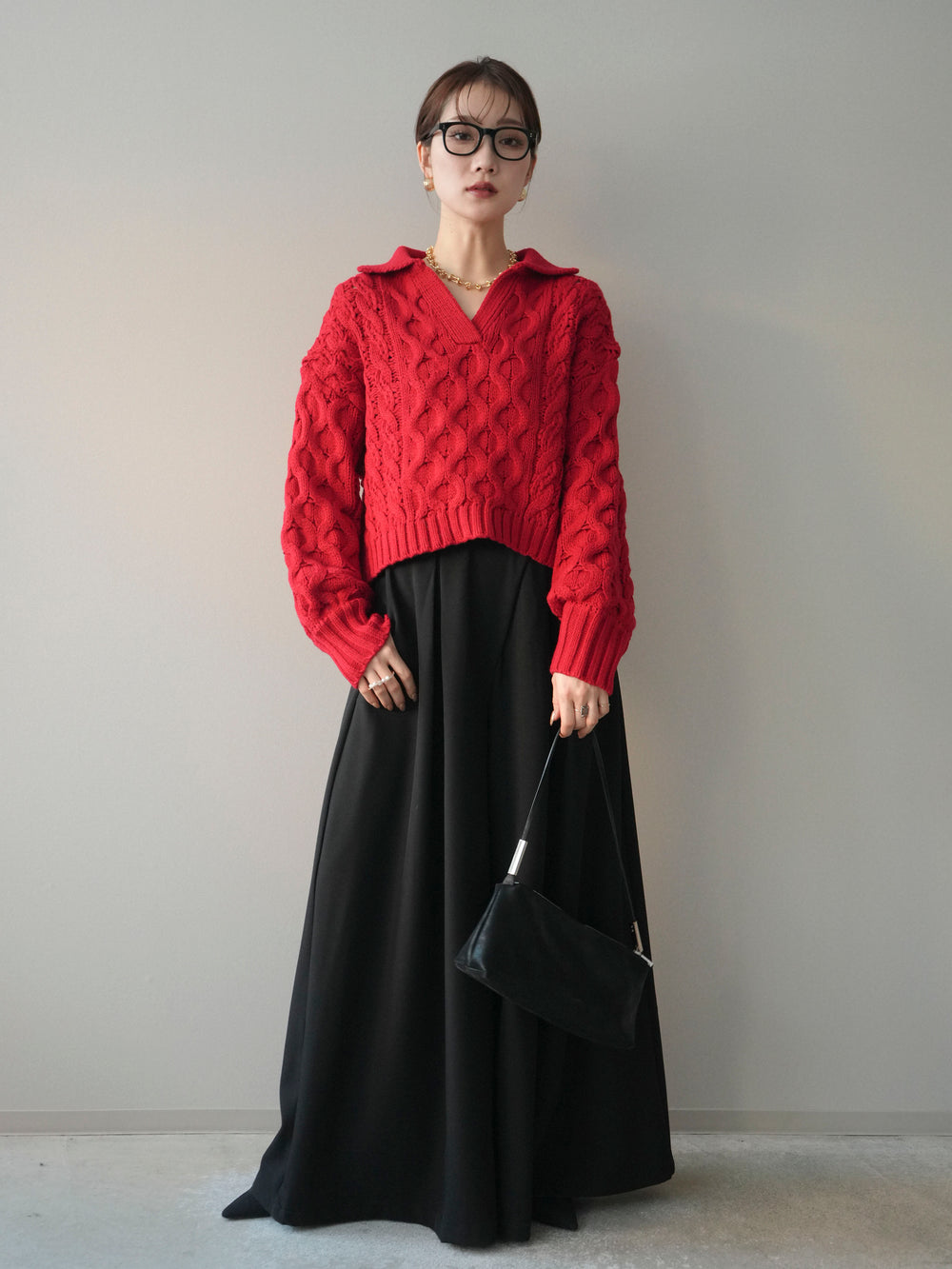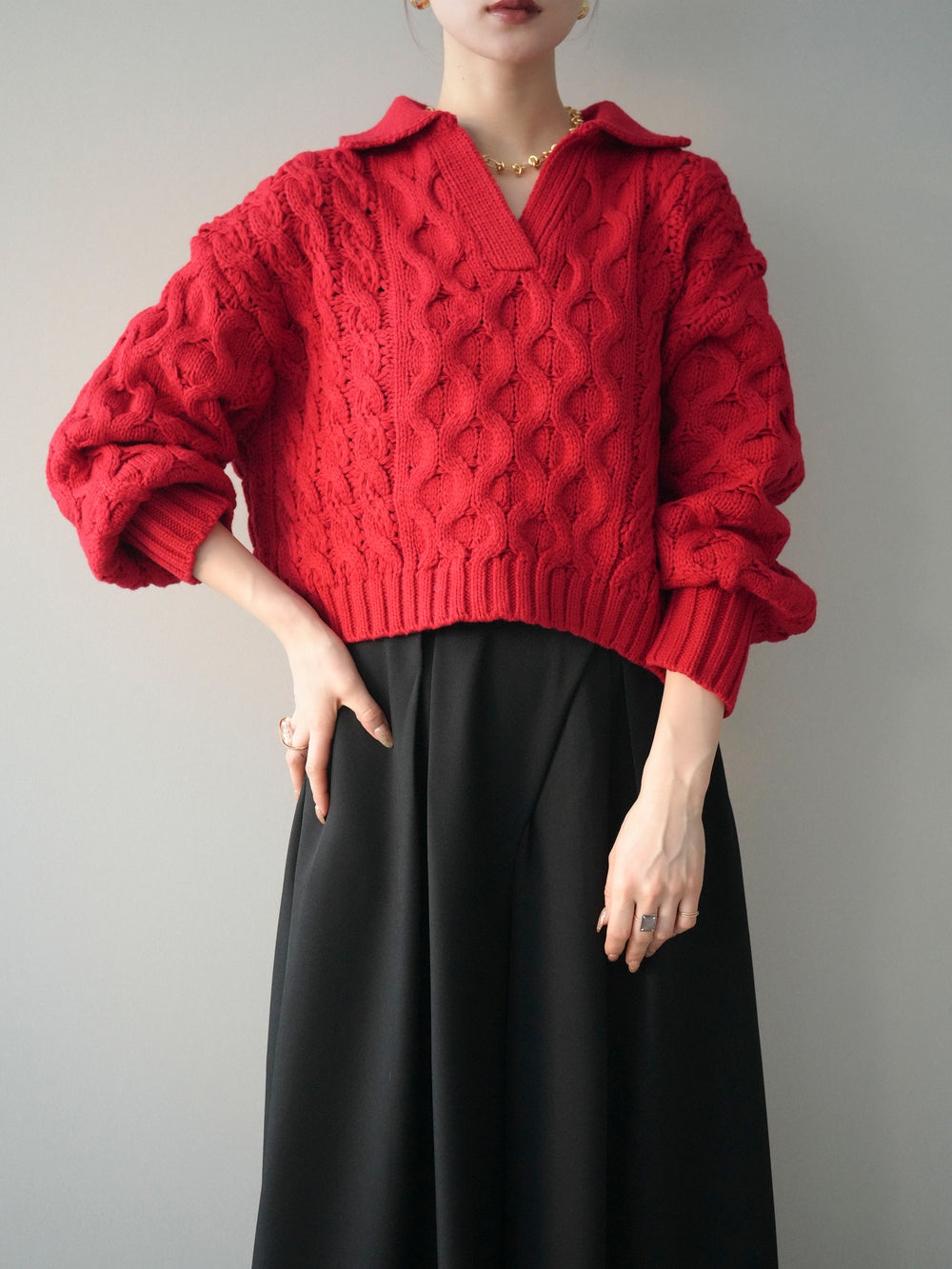 [SET]バルキーケーブルクロップド開襟プルオーバー+バルキーケーブルクロップド開襟プルオーバー(2set)