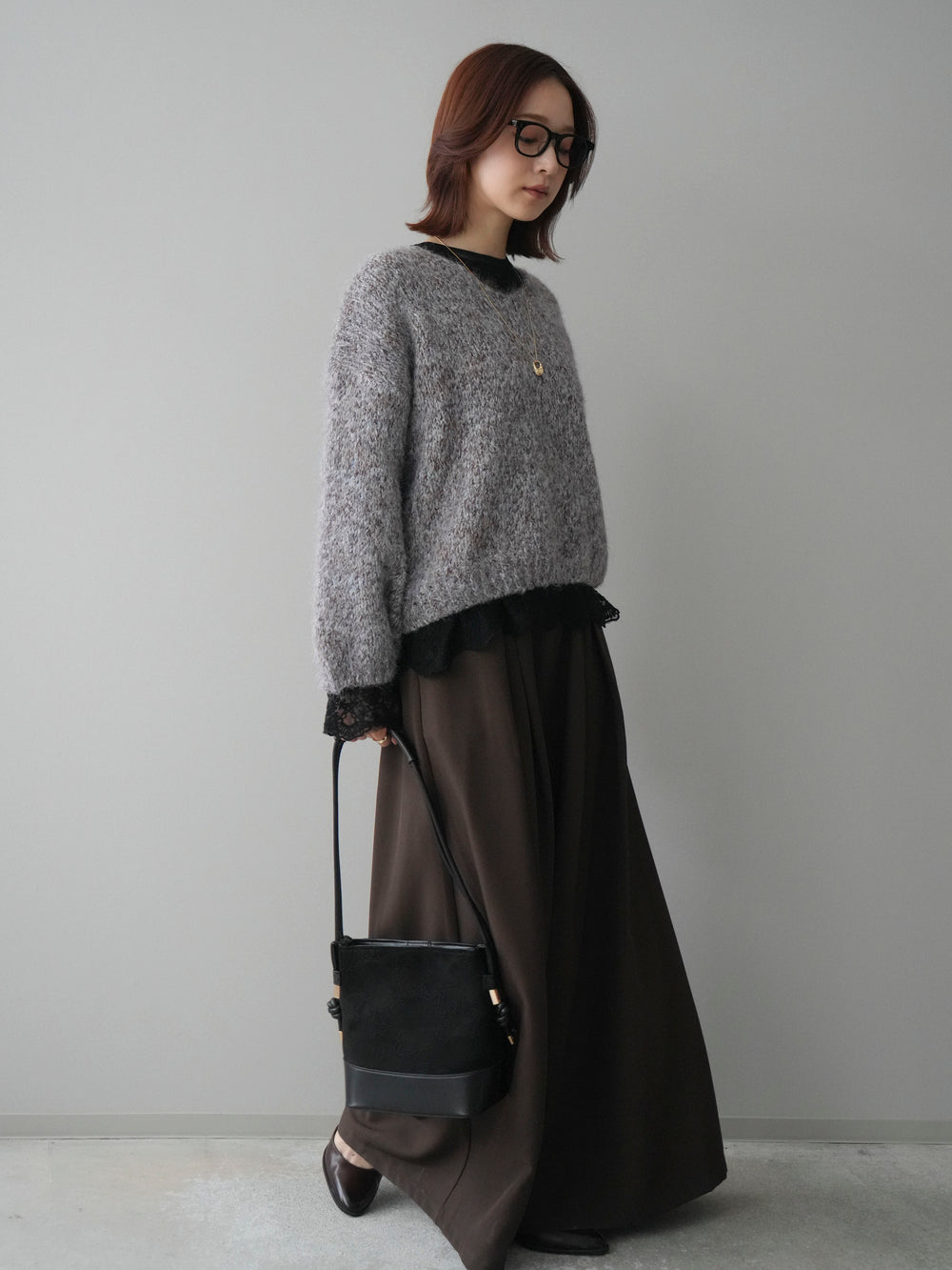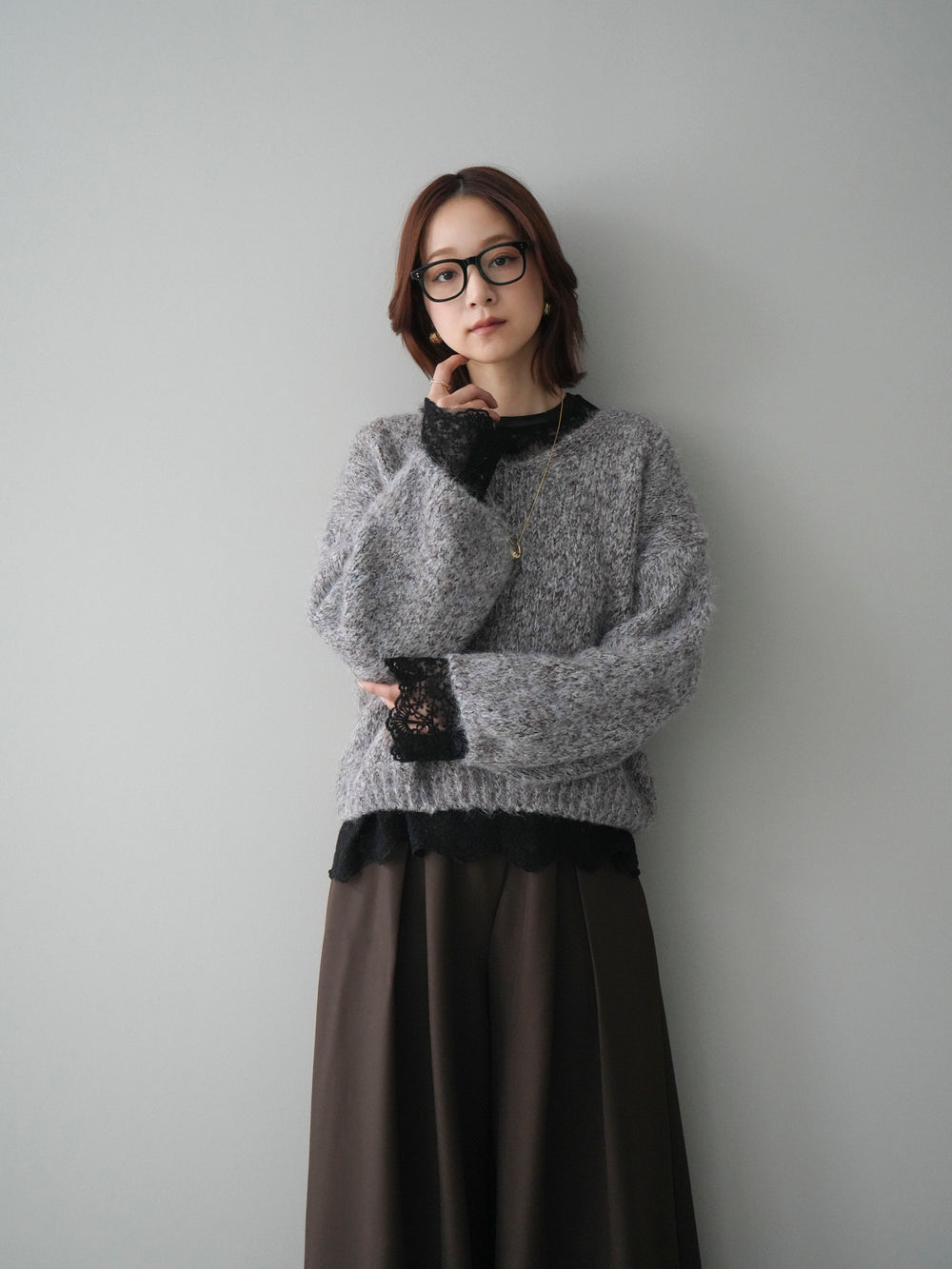 [SET]Vネックミックスヤーンニットプルオーバー+選べるアクセセット(2set)