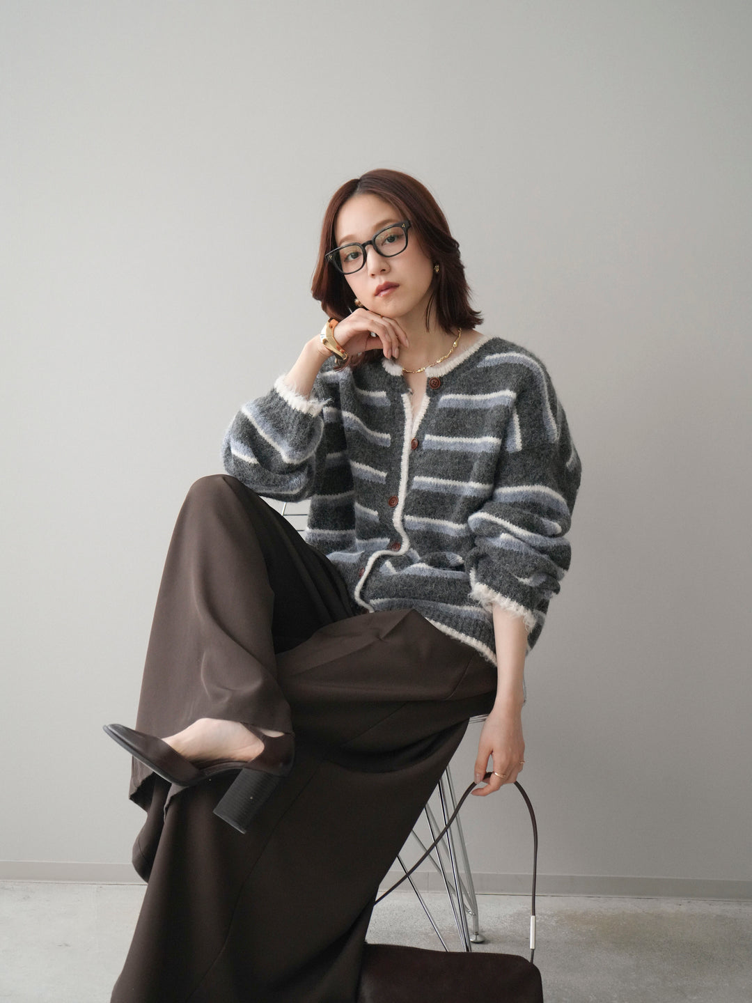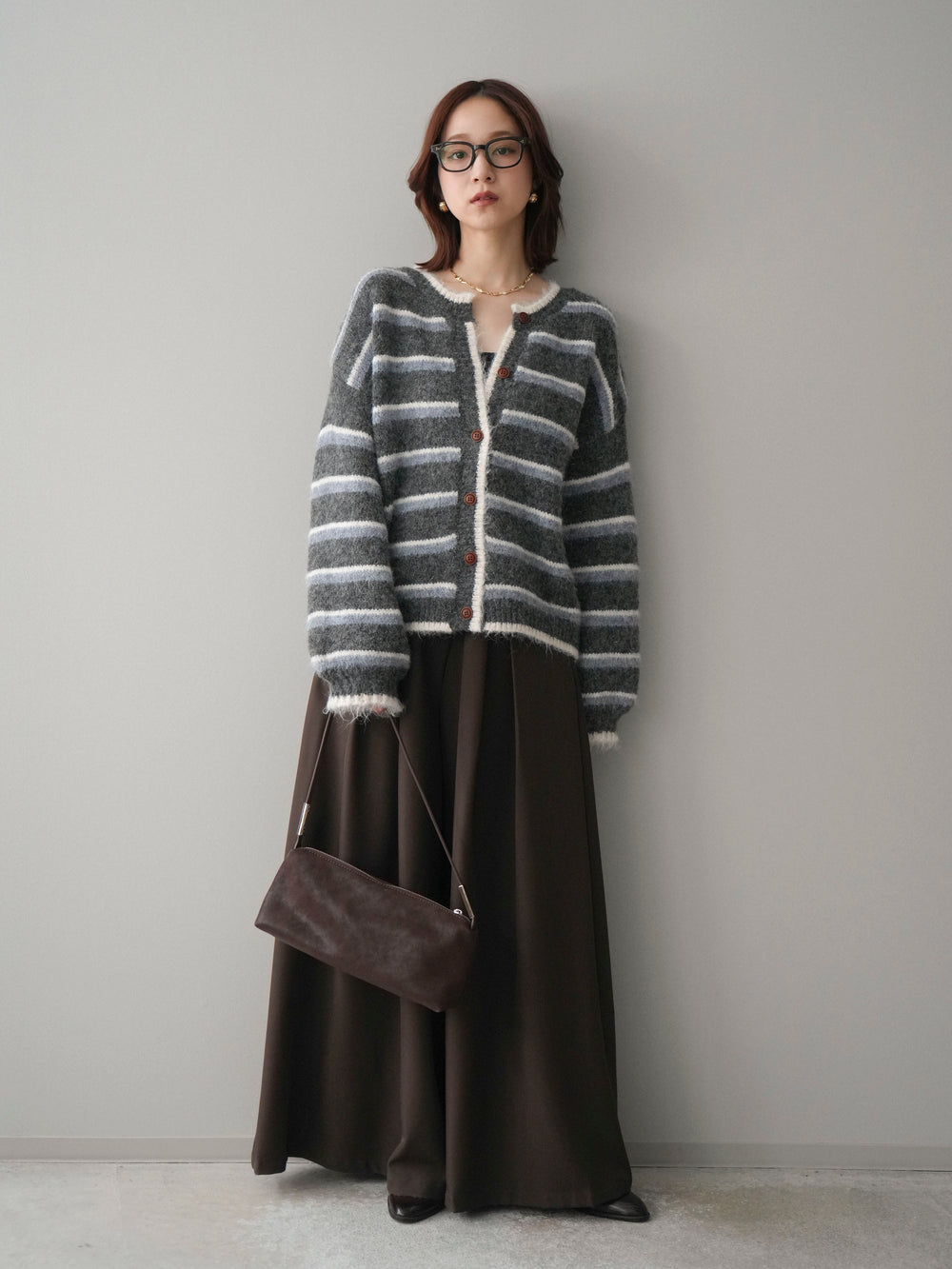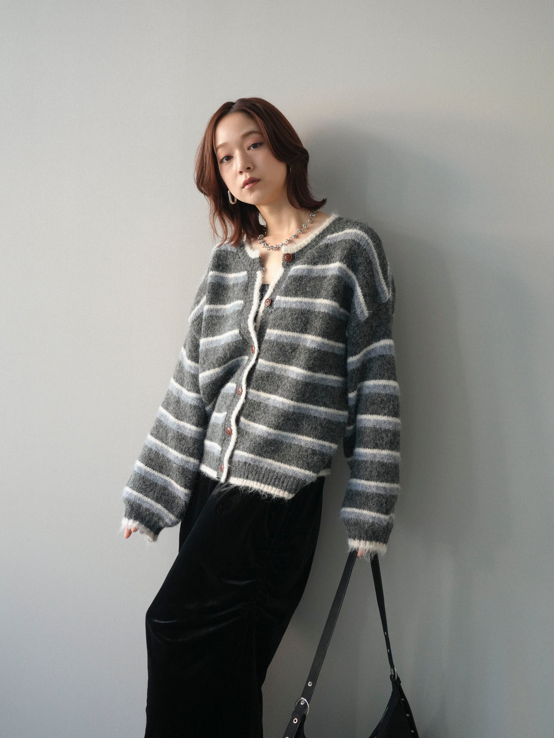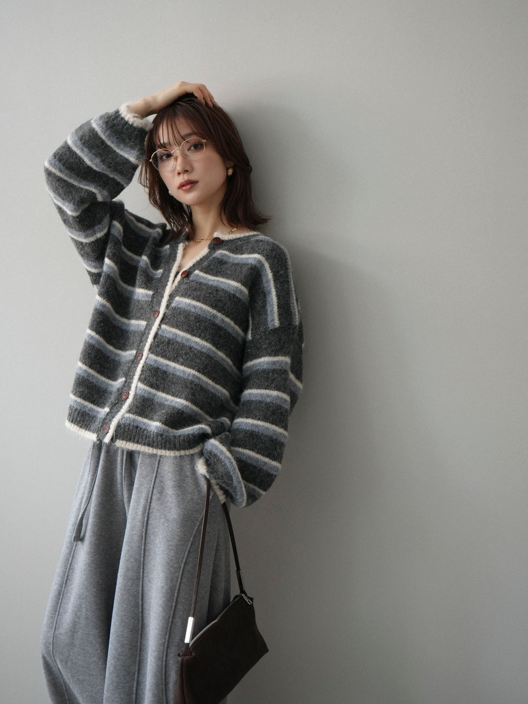 [SET]ウールタッチ配色ボーダーニットカーディガン+選べるアクセセット(2set)