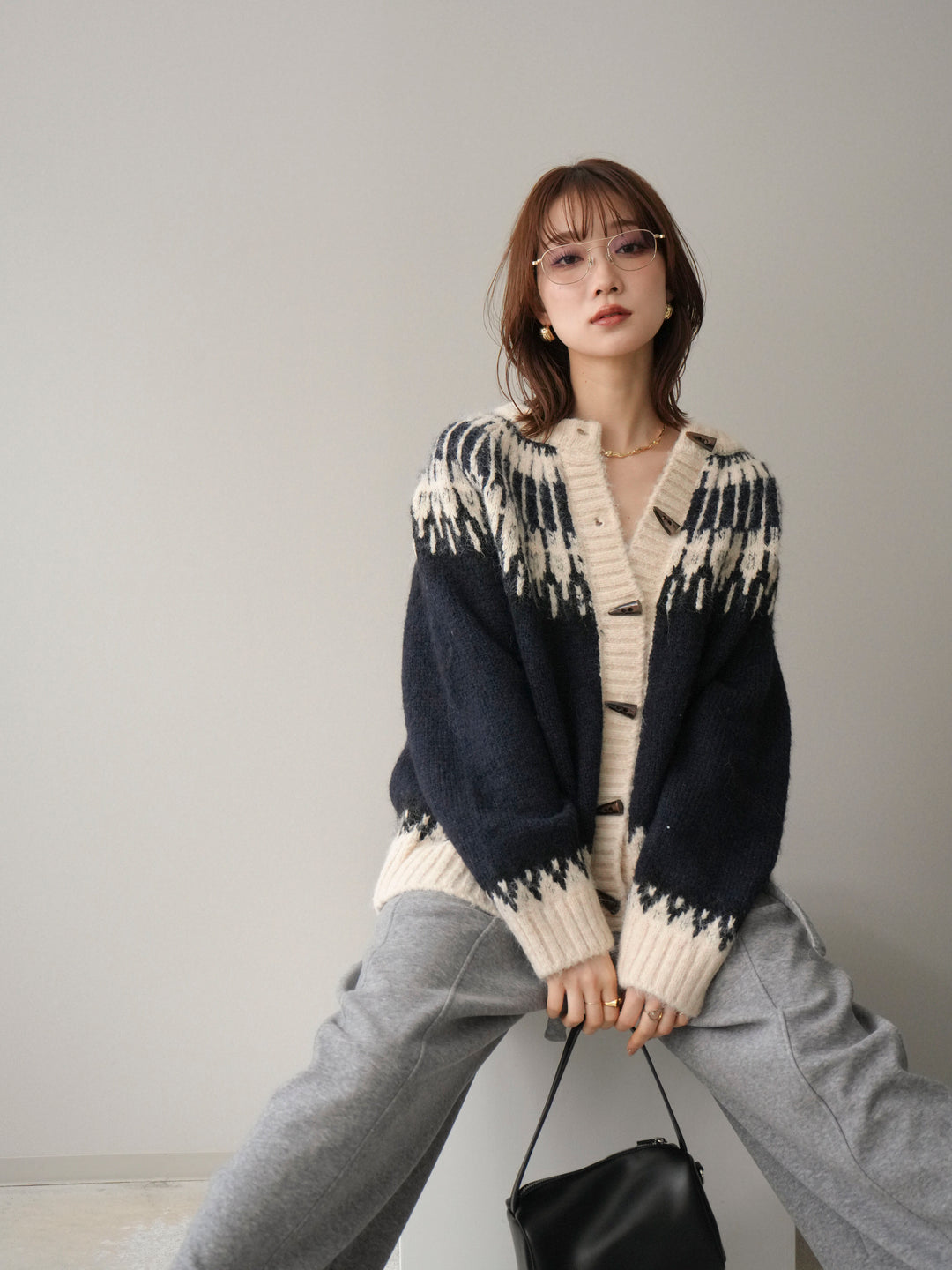 [SET]トグルボタン求心柄ニットカーディガン+選べるアクセセット(2set)