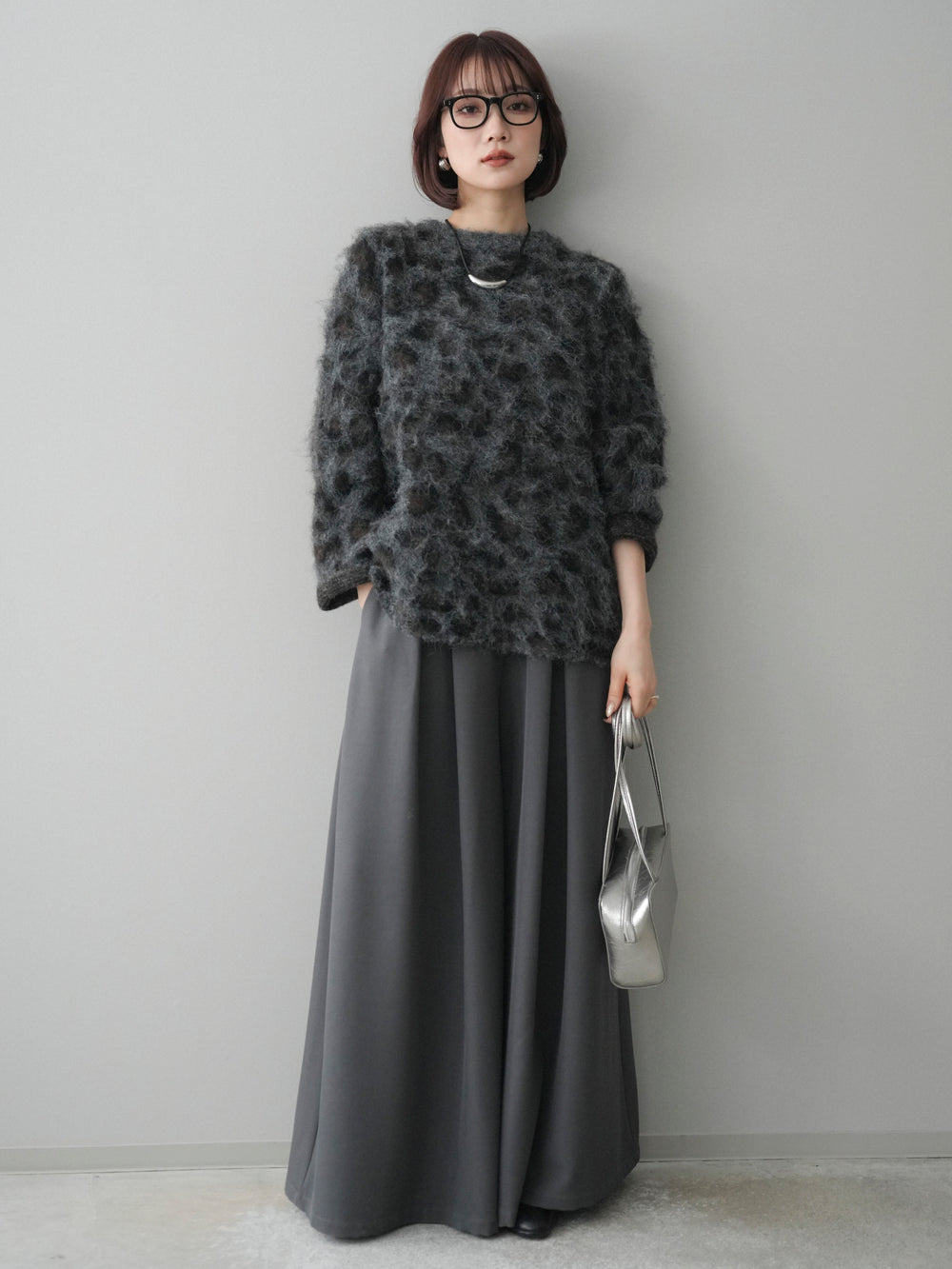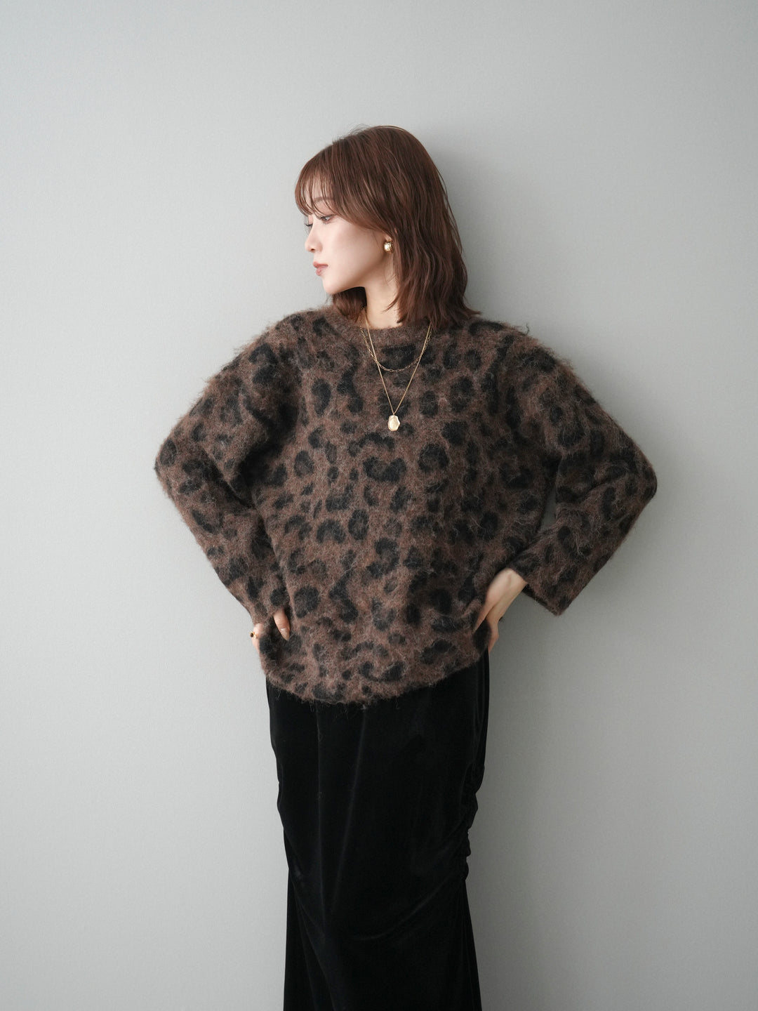 [SET]レオパードシャギーニットプルオーバー+選べるアクセセット(2set)
