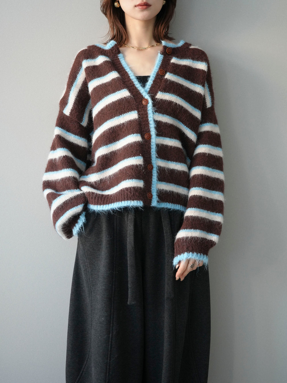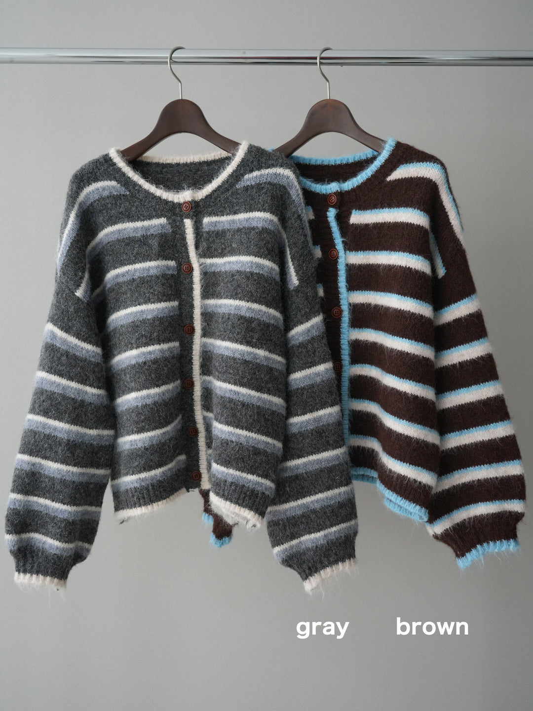 [SET]ウールタッチ配色ボーダーニットカーディガン+ウールタッチ配色ボーダーニットカーディガン(2set)
