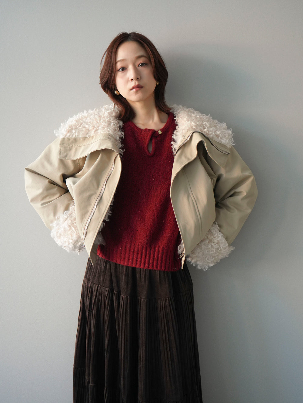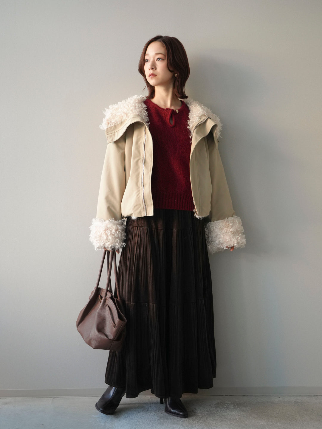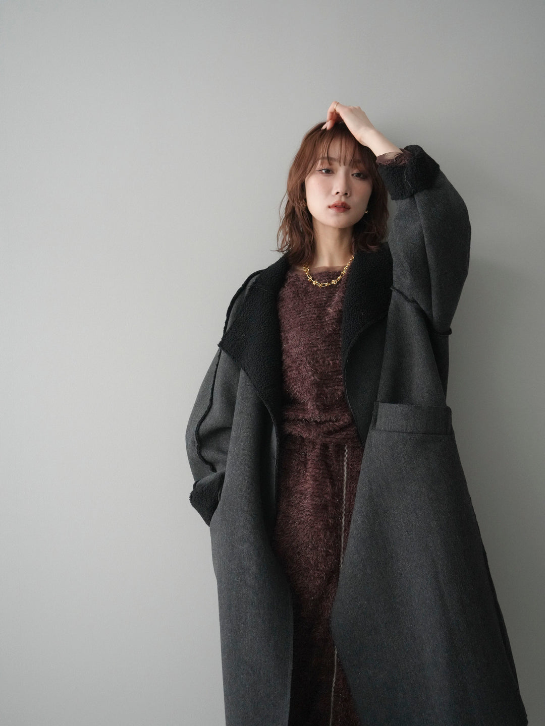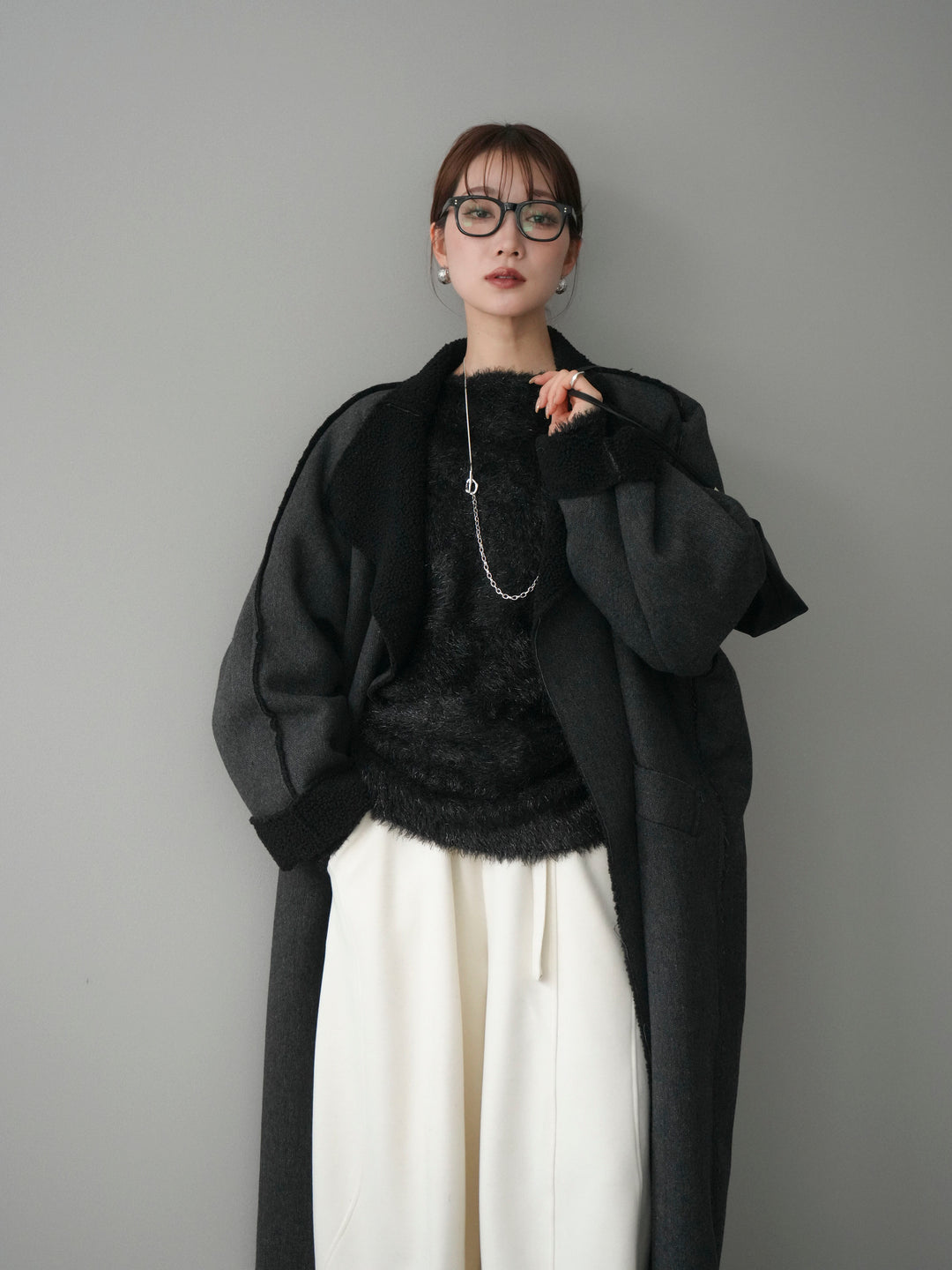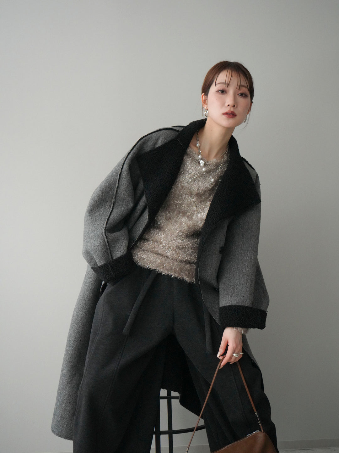 [SET]アウトシーム裏ボアコート+ラメシャギードルマンニットプルオーバー(2set)