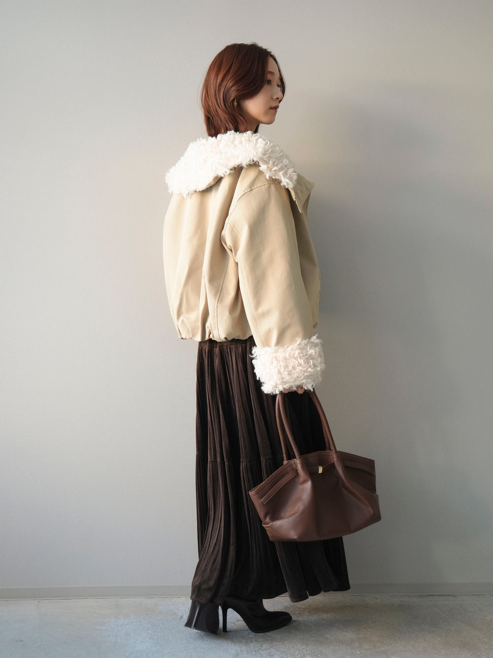 [SET]アウトシーム裏ボアコート+ラメシャギーフロントジップスカート(2set)
