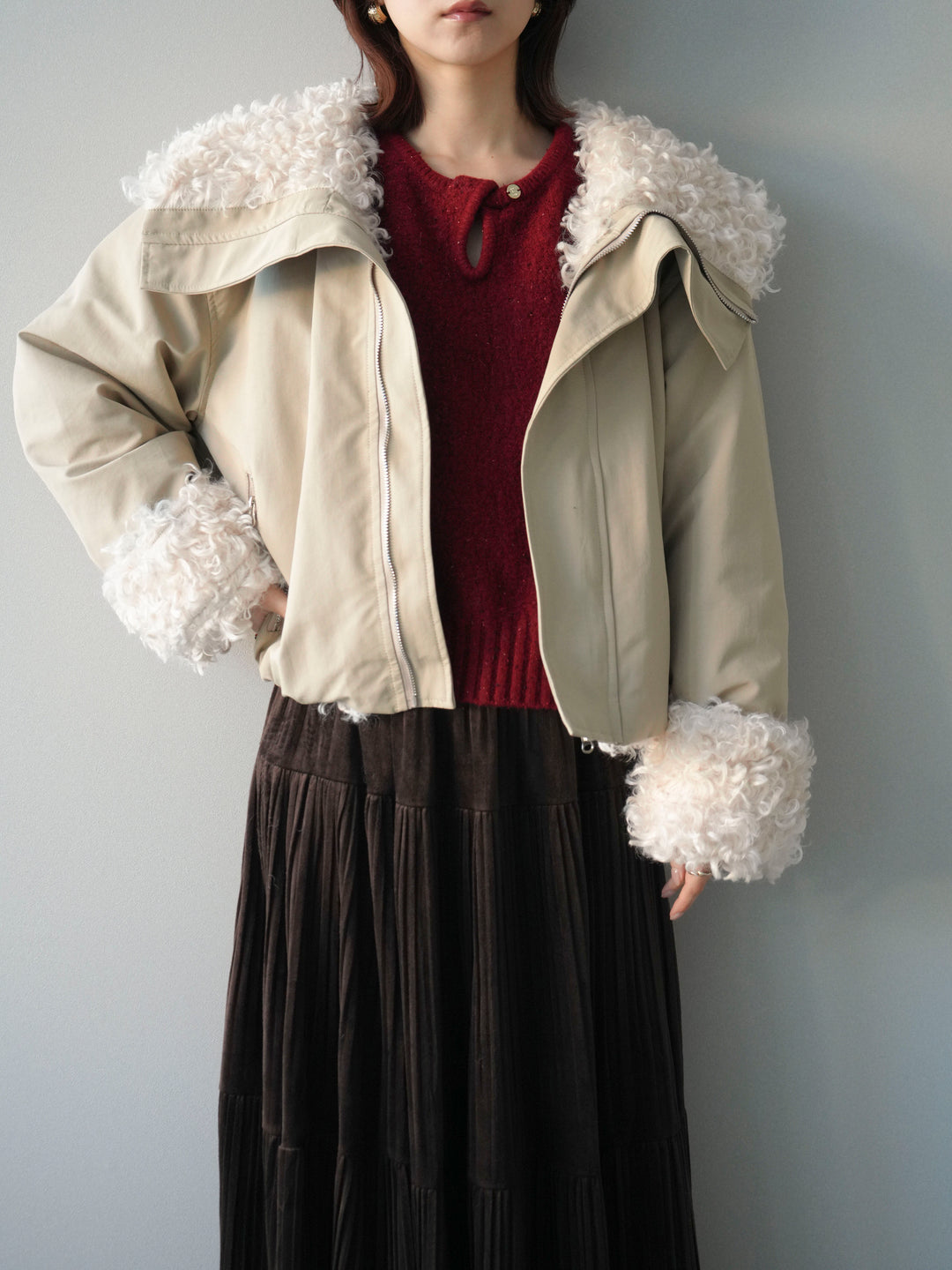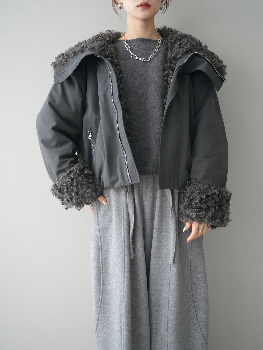 [SET]プードルファーダウンジャケット+アンゴラタッチボートネッククロップドプルオーバー(2set)