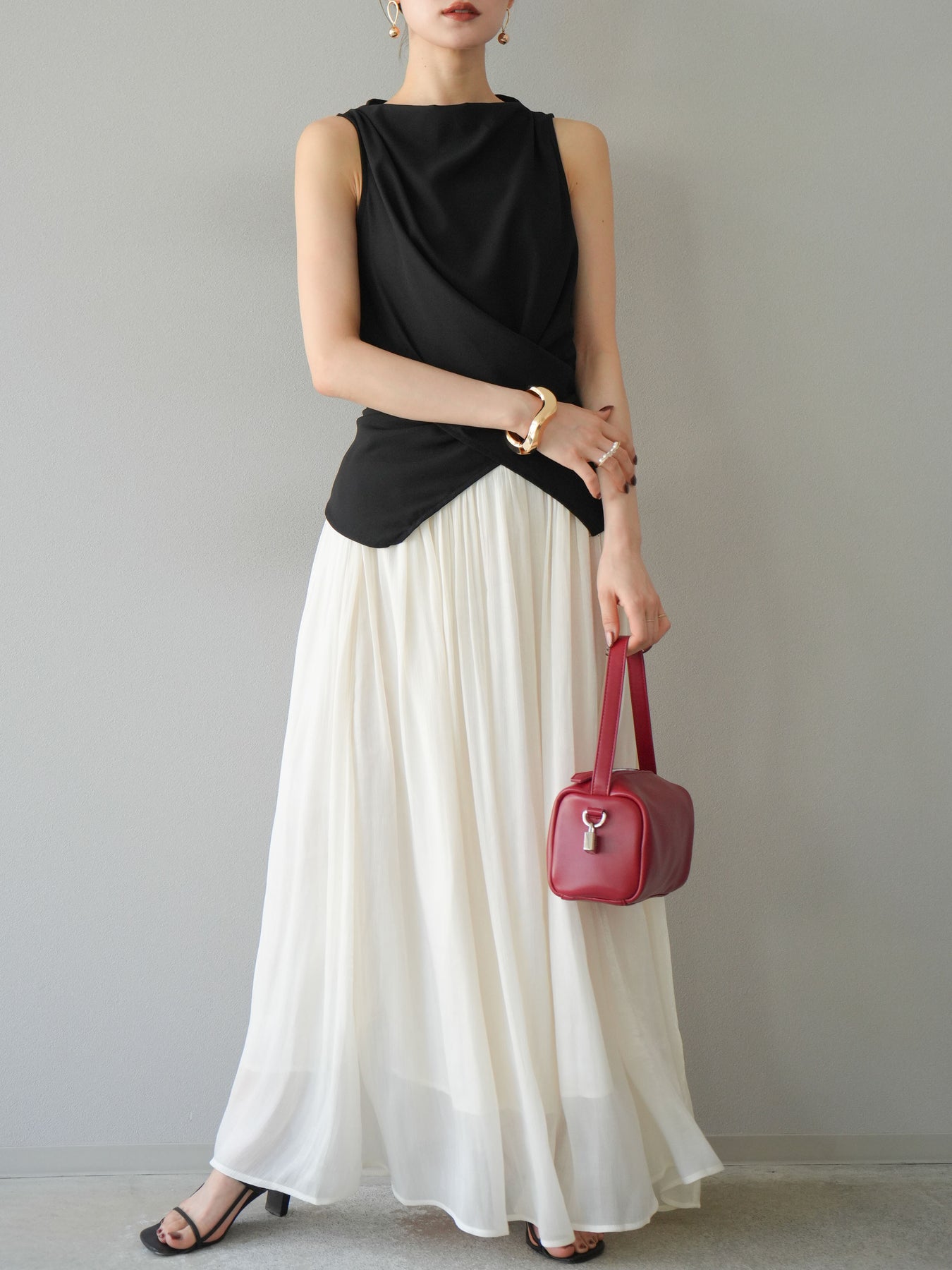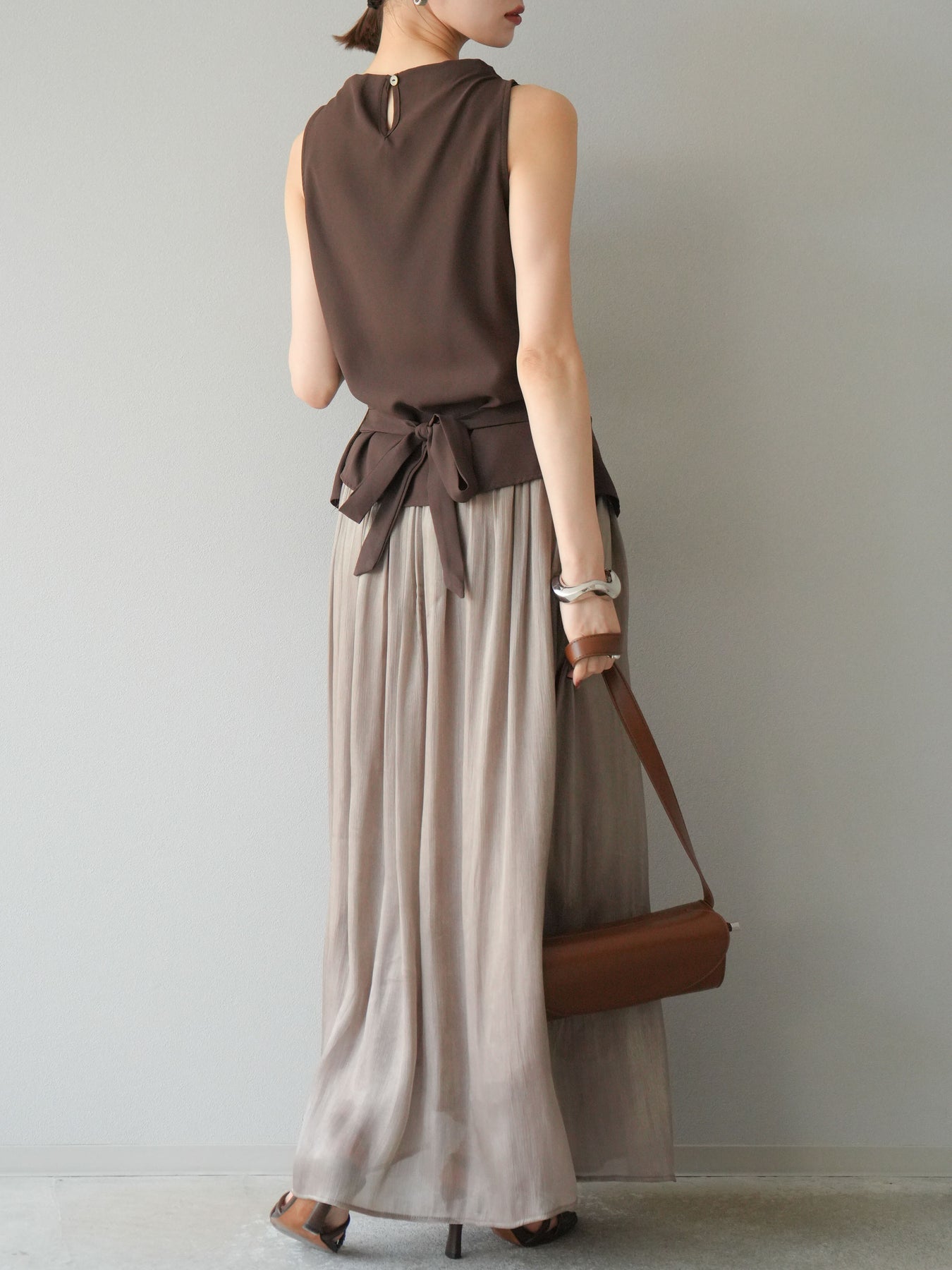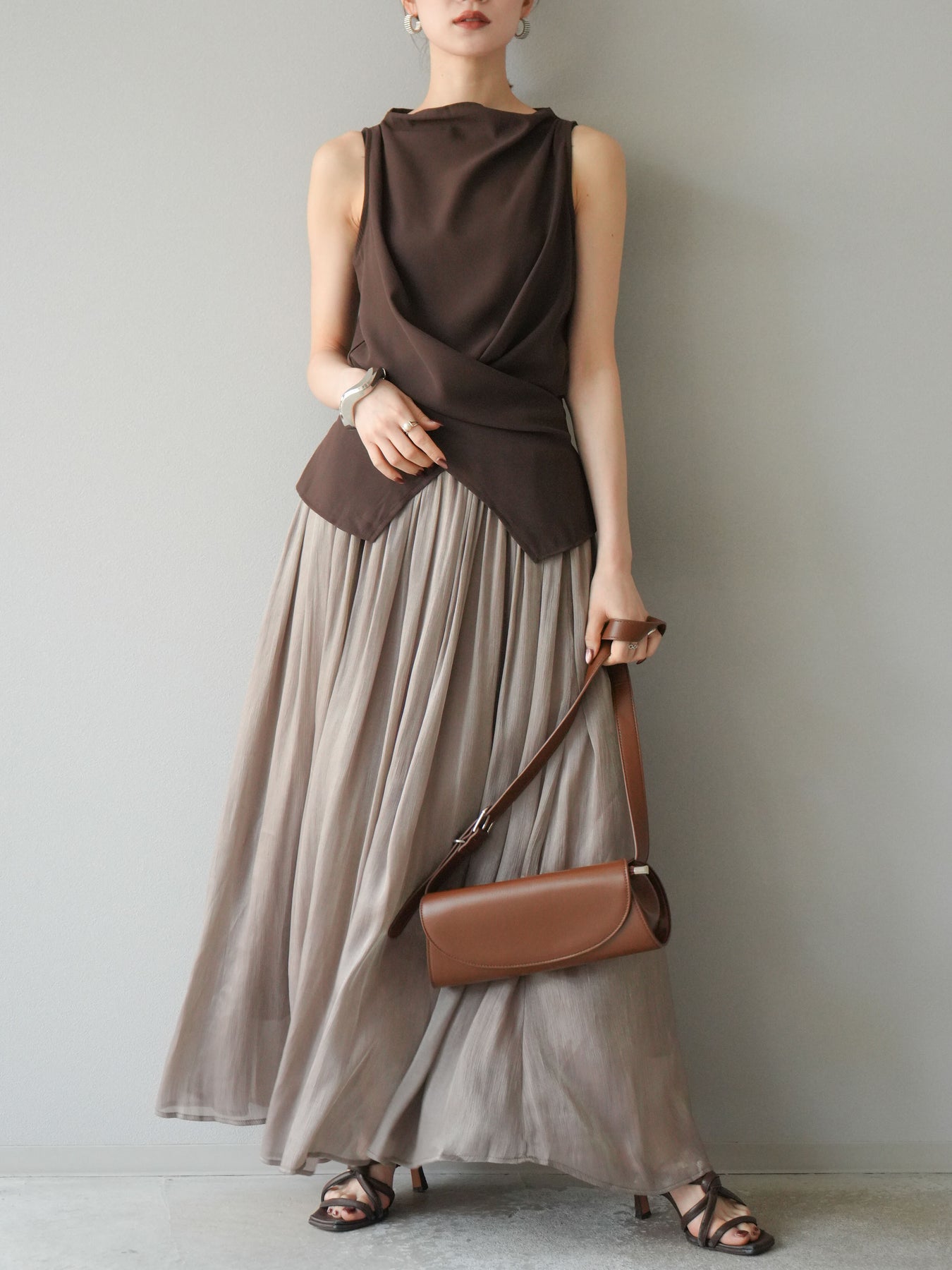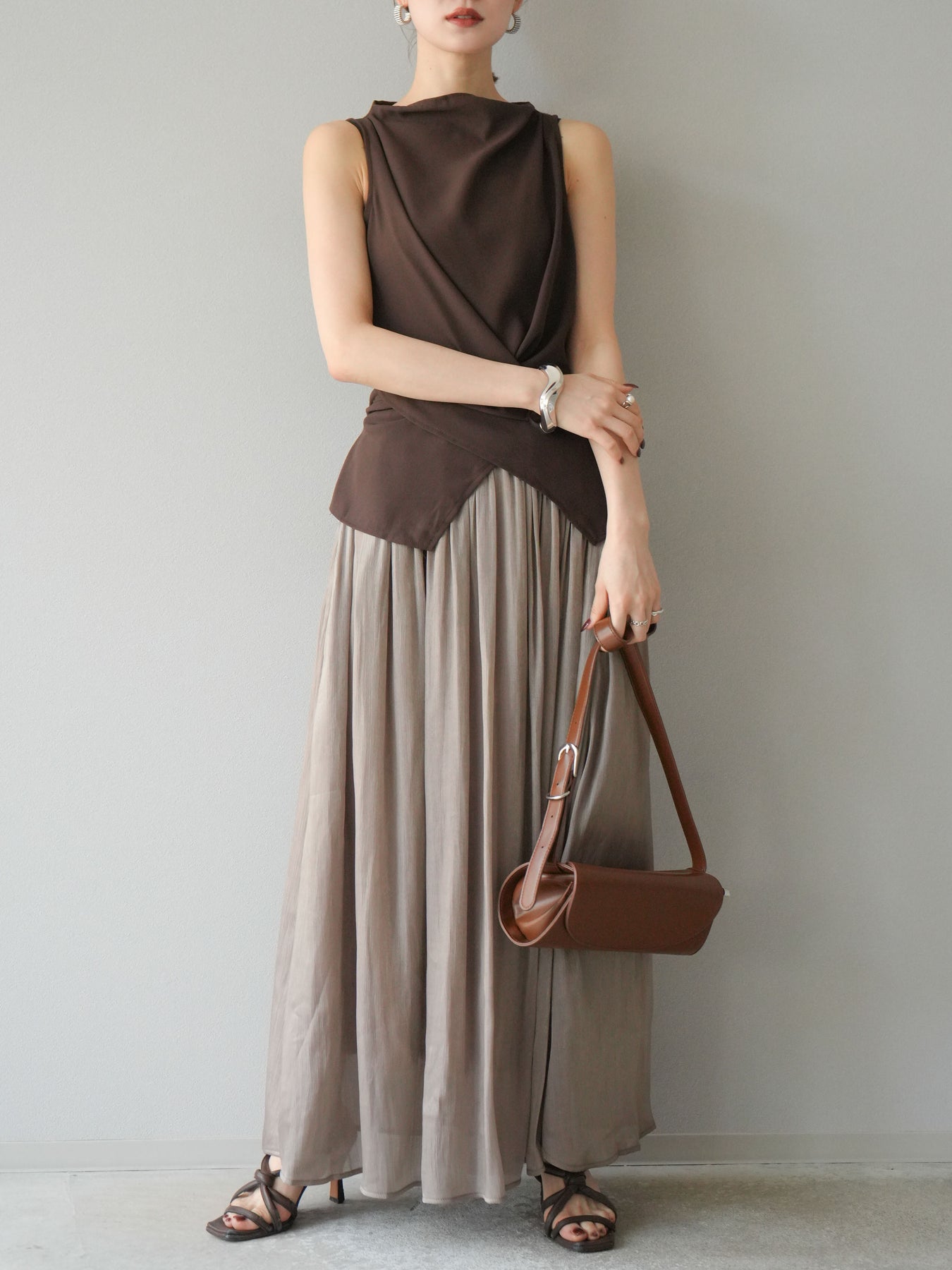 [SET]ノースリーブトップス&シャイニーフレアスカートSET UP/(2set)