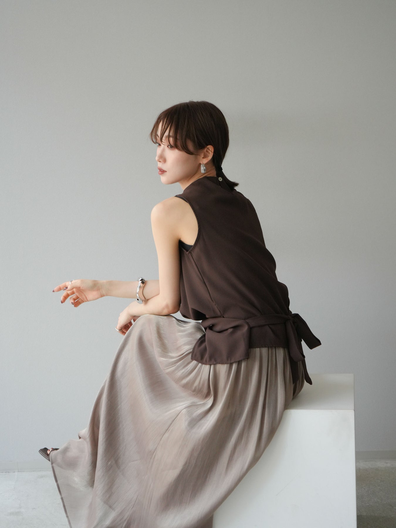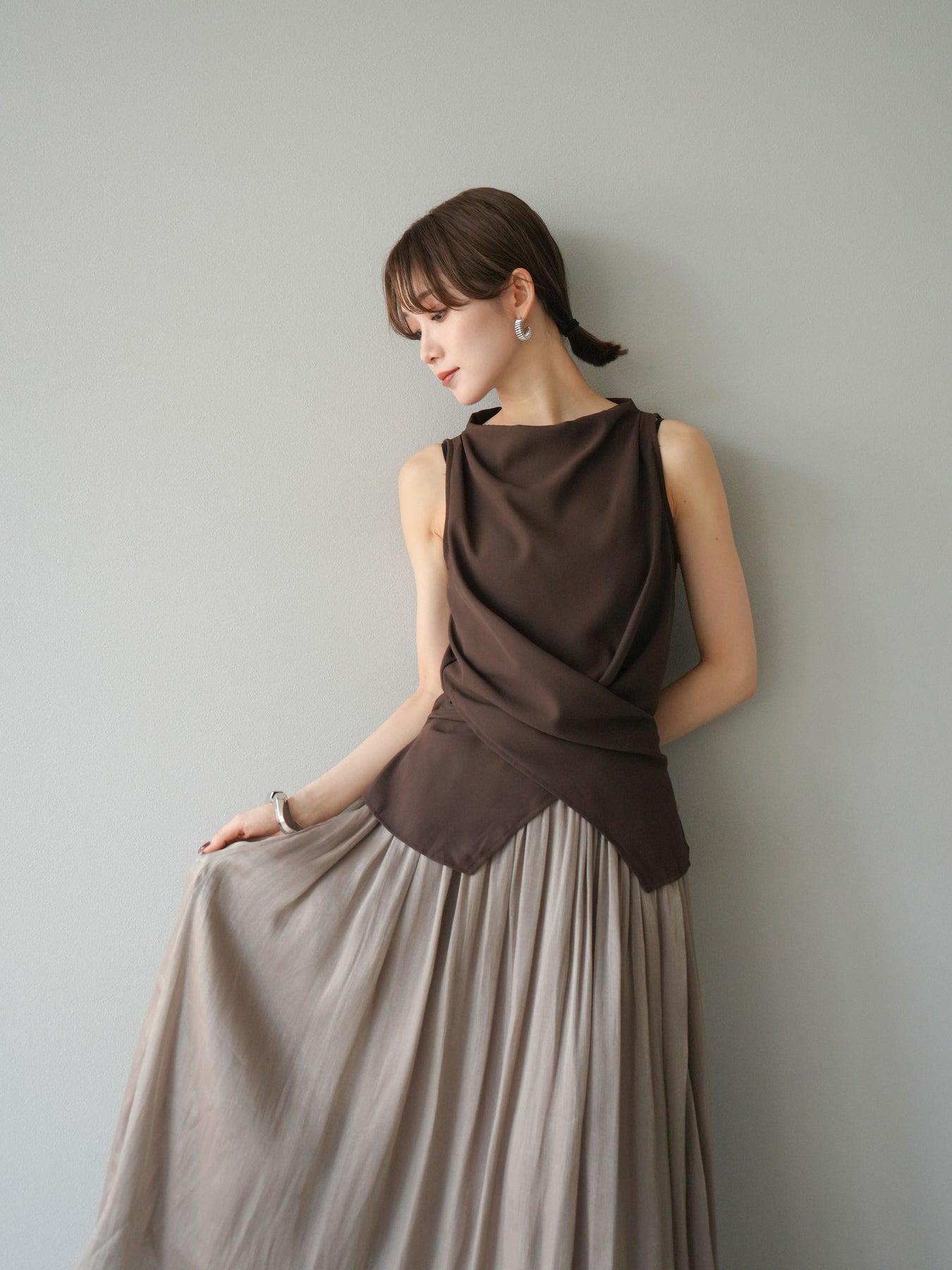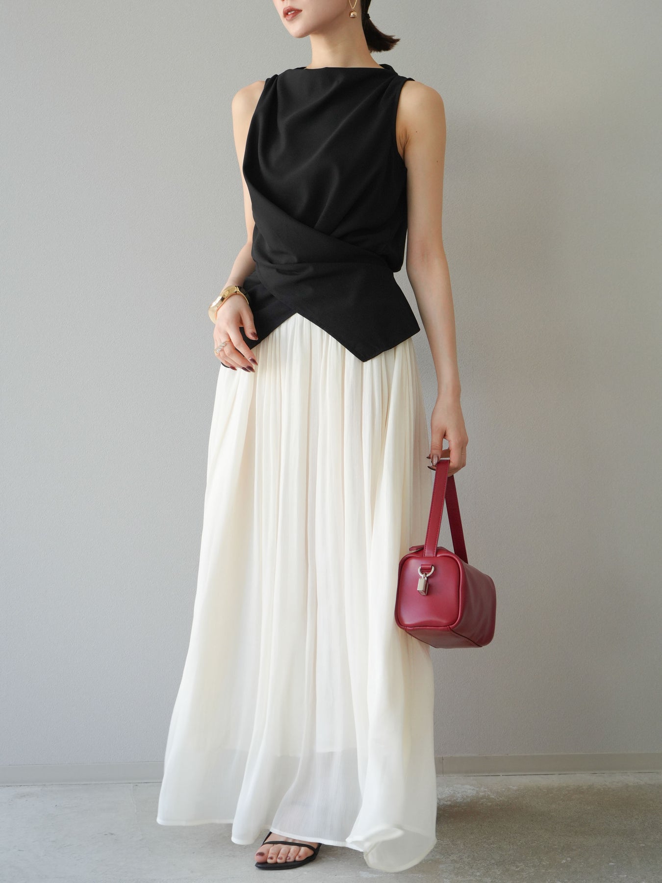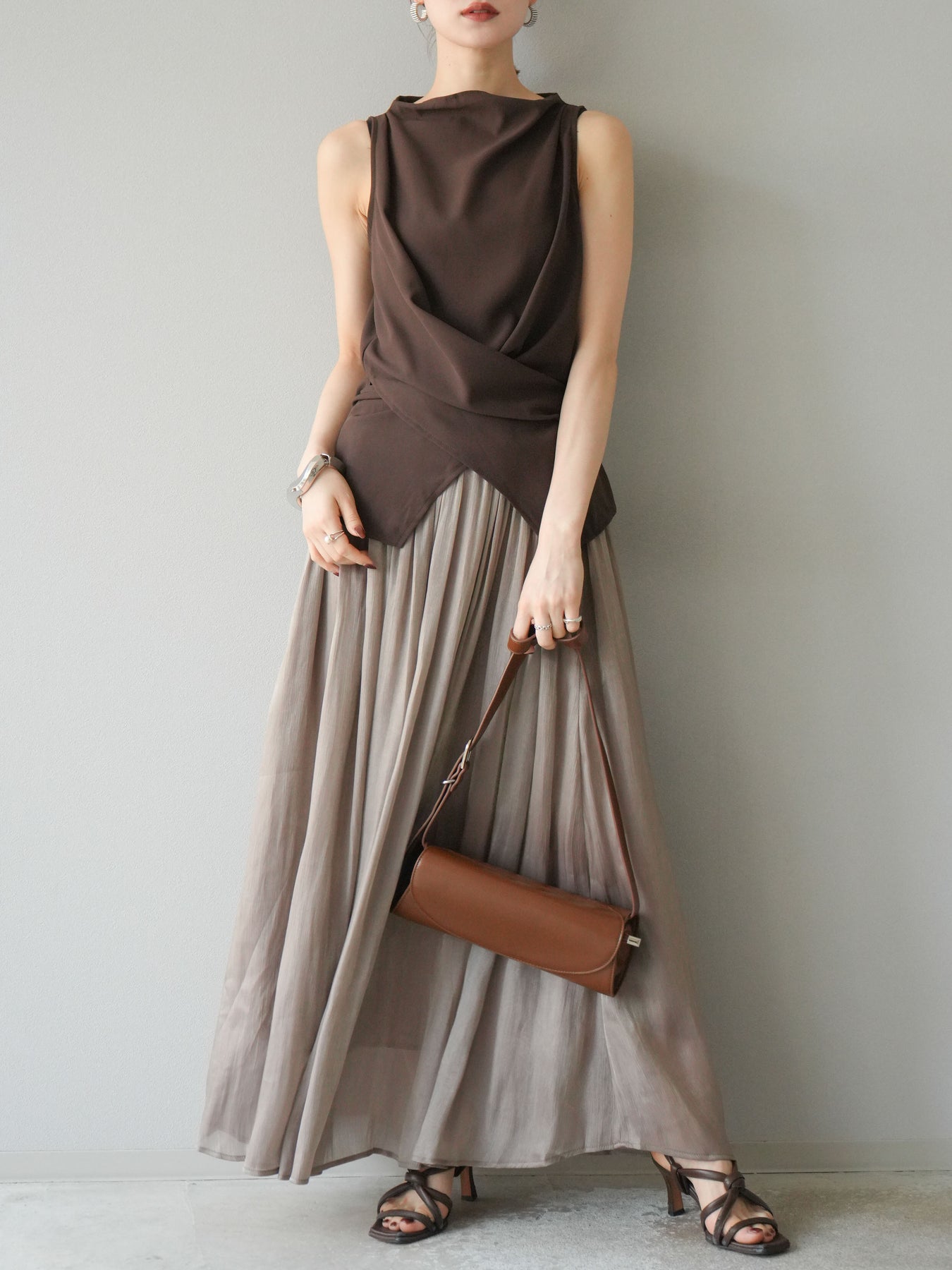 [SET]ノースリーブトップス&シャイニーフレアスカートSET UP/(2set)
